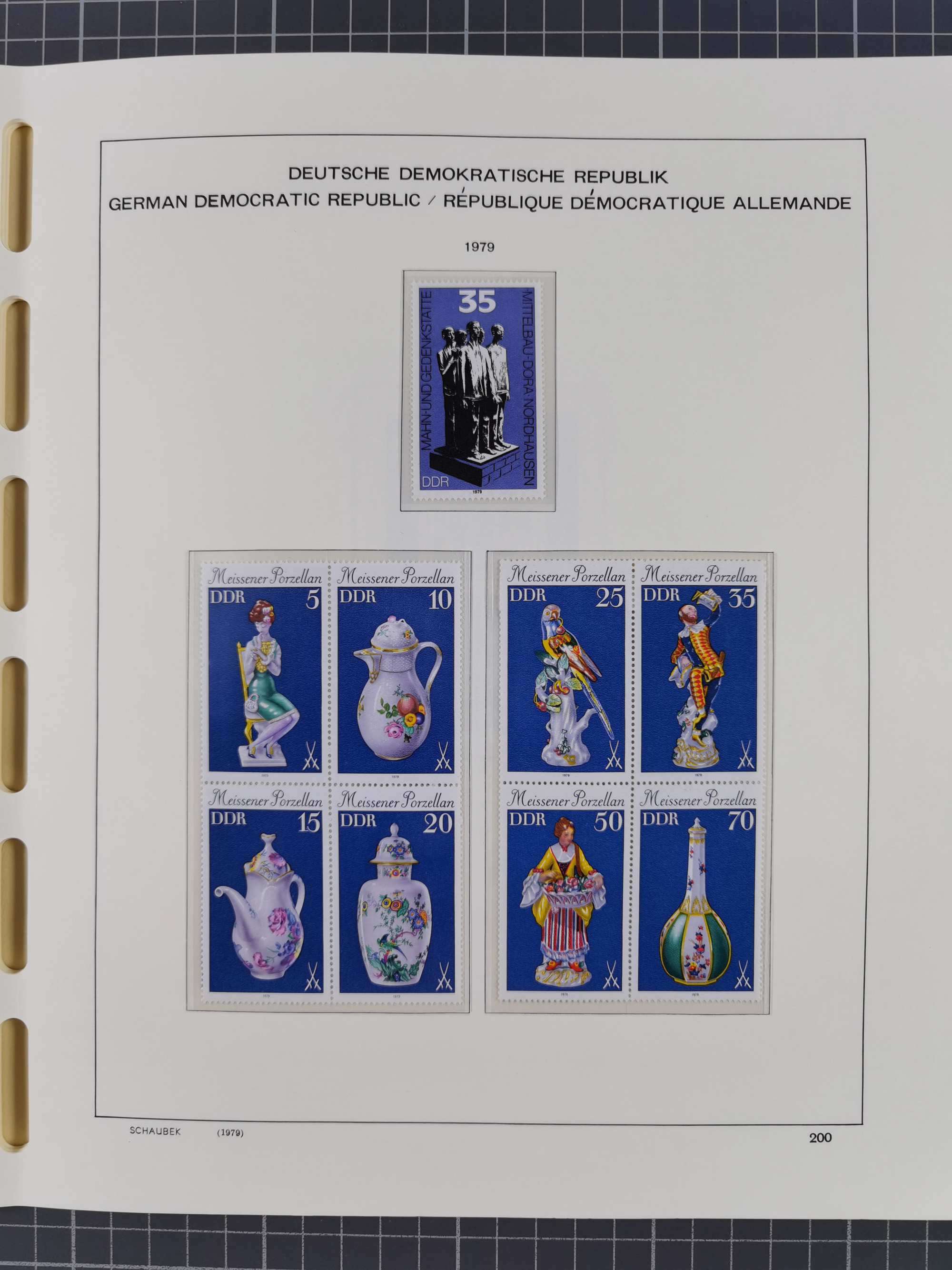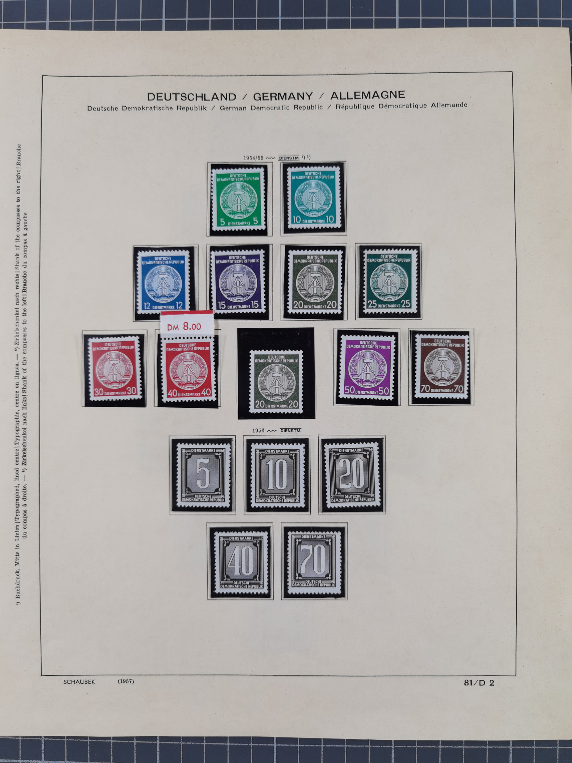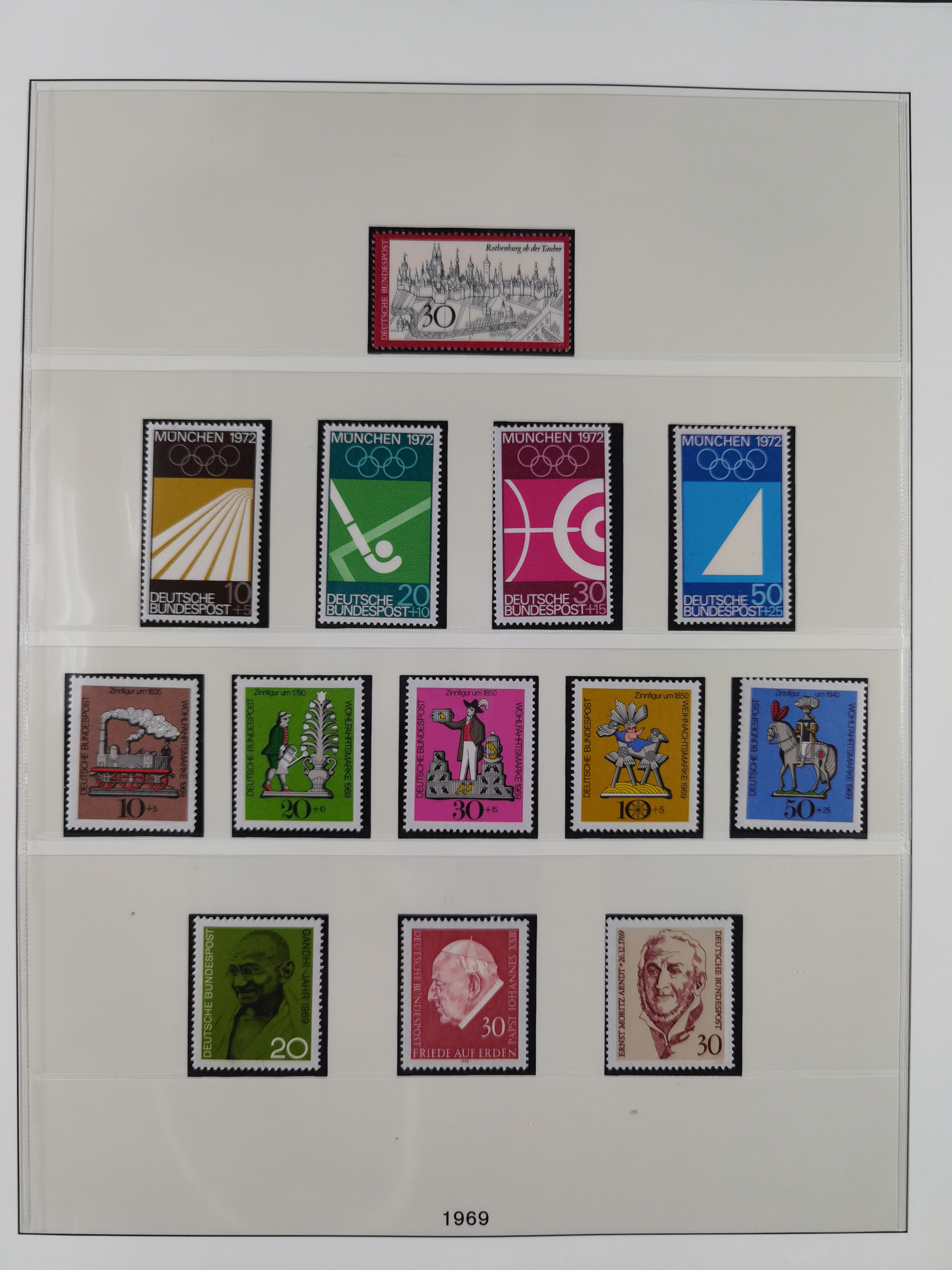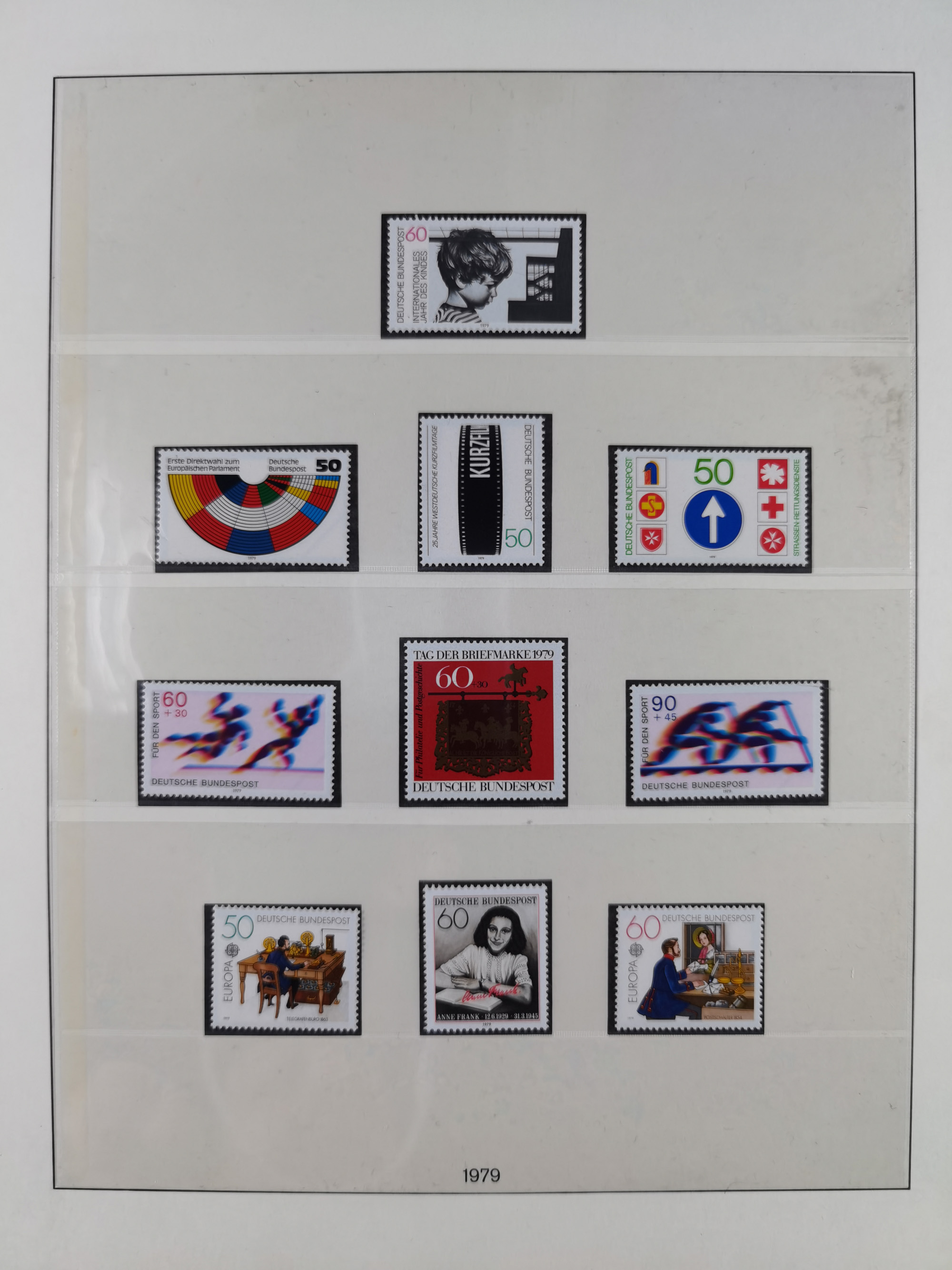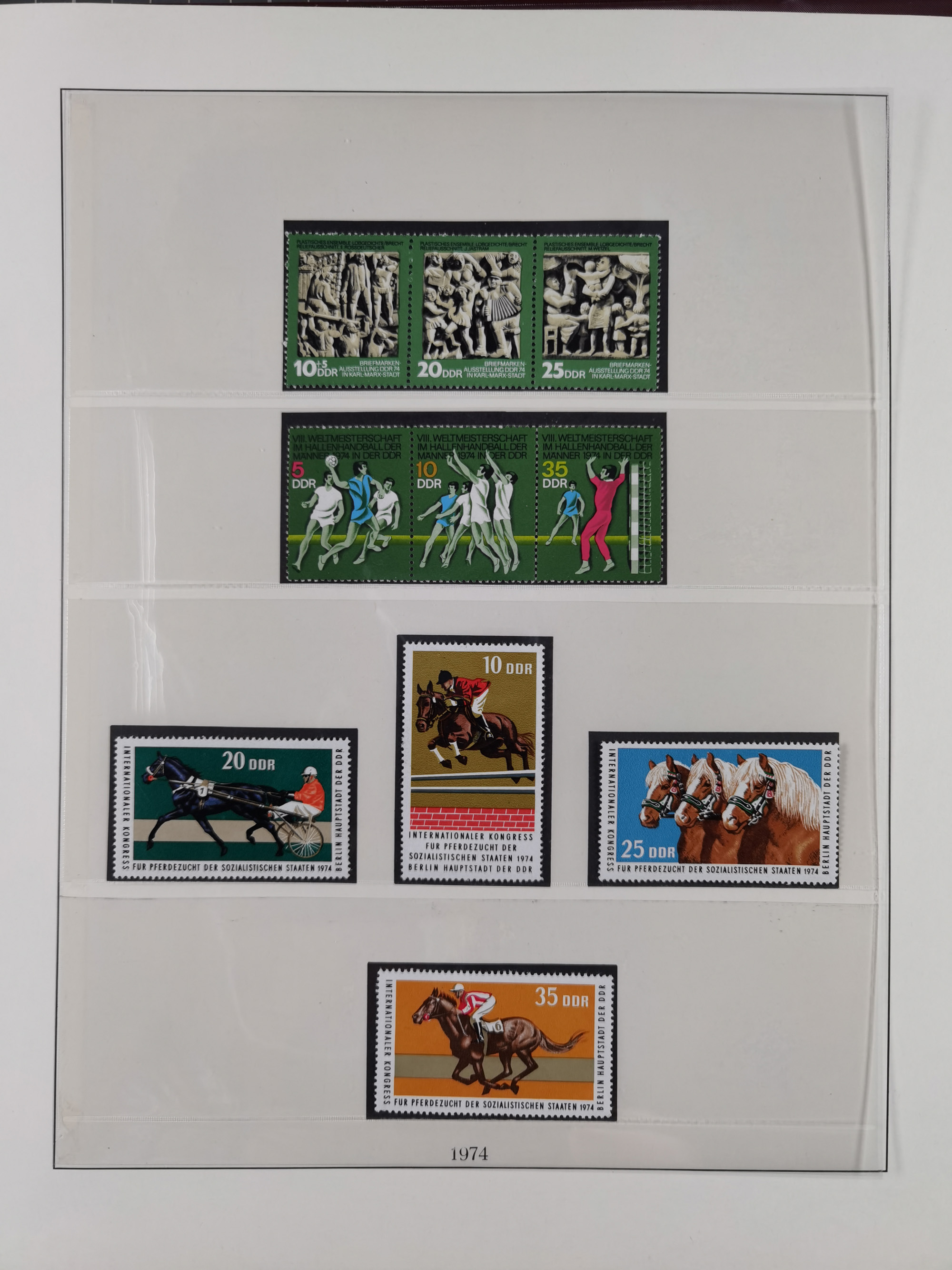 1948/90, in den Hauptnummern bis 1960 komplette postfrische Sammlungen Berlin 1948-90 inkl. Schwarzaufdruck, Rotaufdruck sign. Dub und Block 1, Bundesrepublik 1949-72 inkl. Posthornsatz, sowie DDR 1949-71 inkl. ausgiebigen Teilen Zusammendrucke, es fehlen bei den späten modernen Ausgaben teils einzelne Werte oder Sätze, gute Erhaltung, Alben mit Lagerspuren, in 11 Vordruckalben
