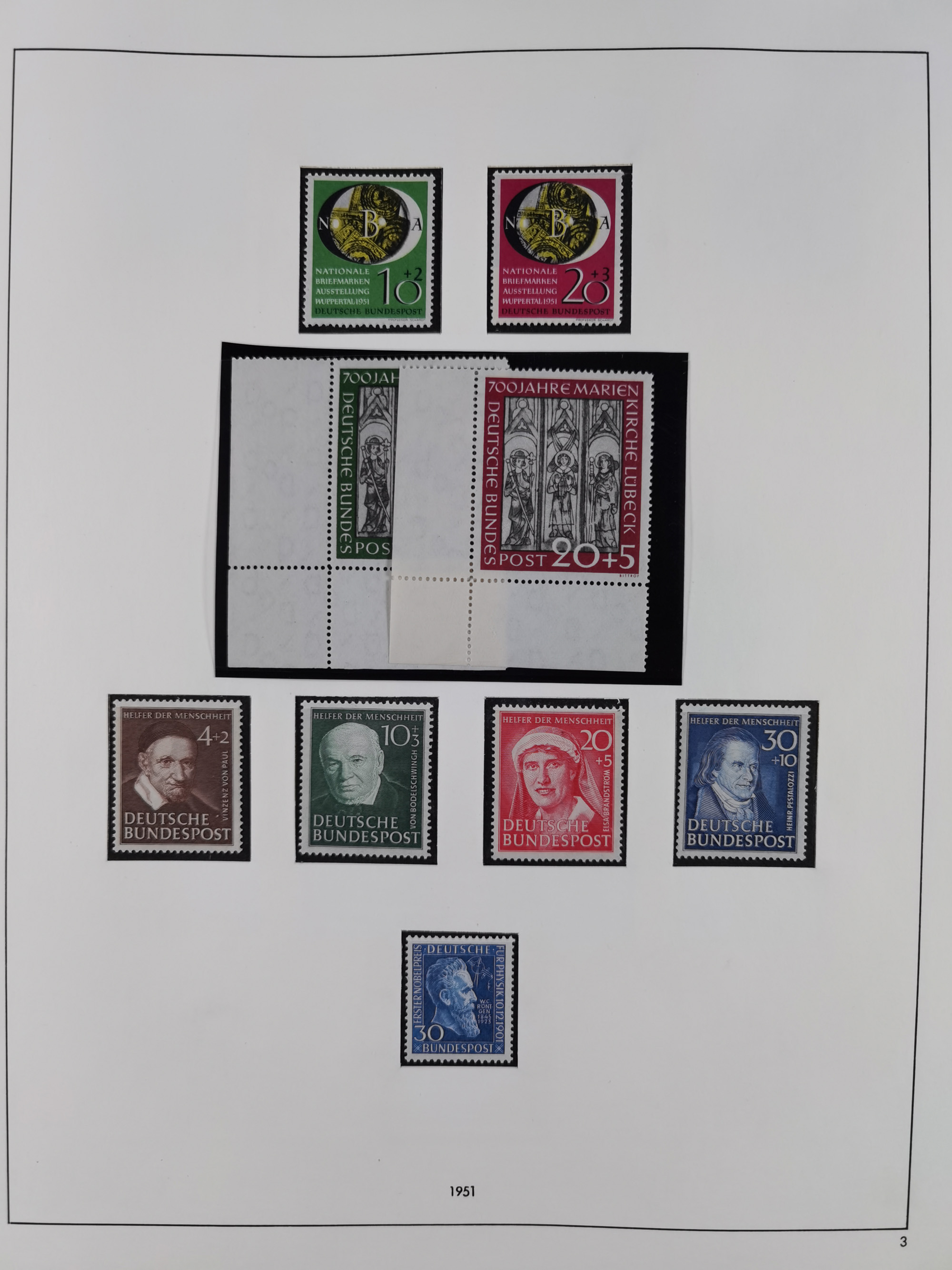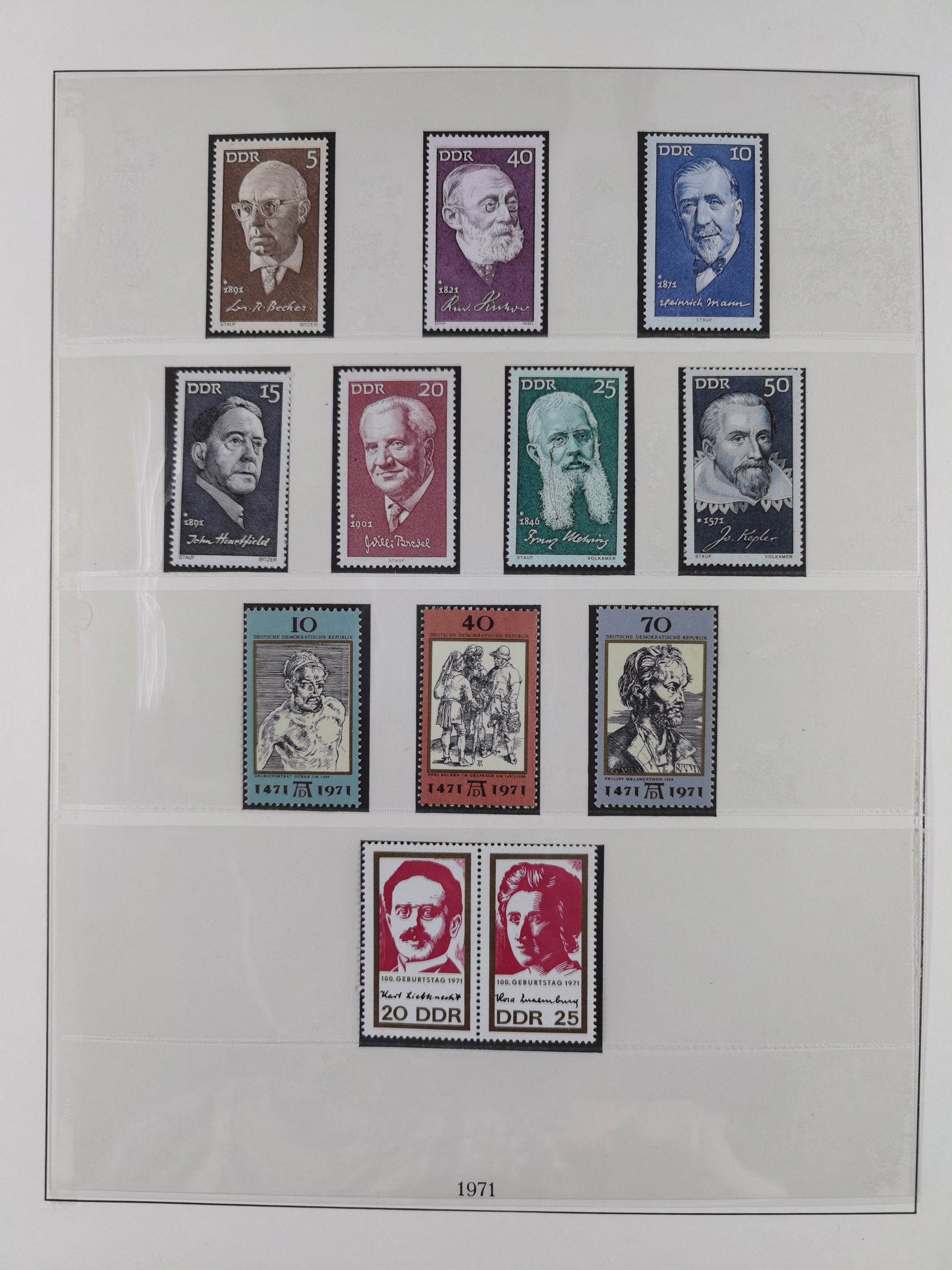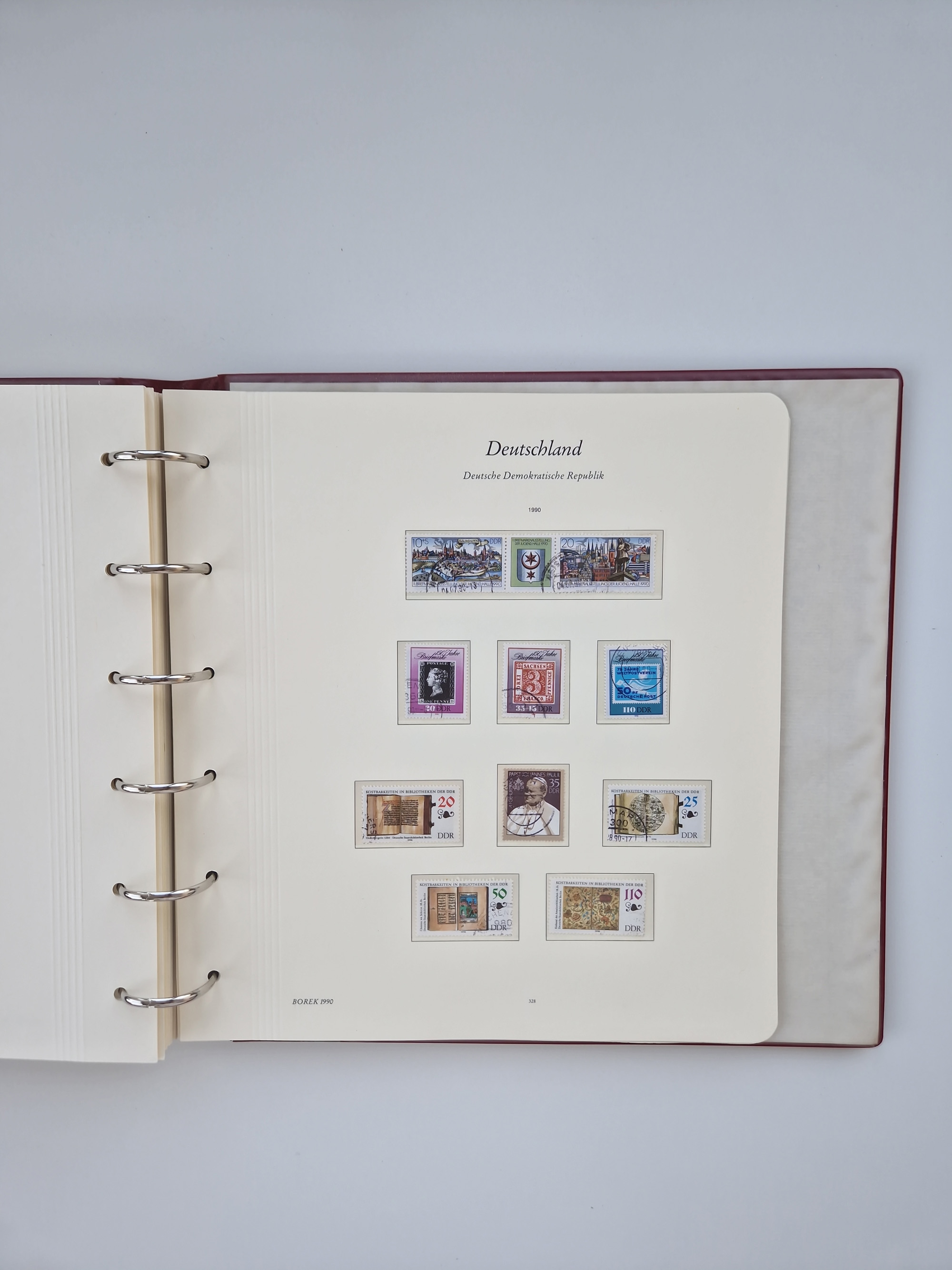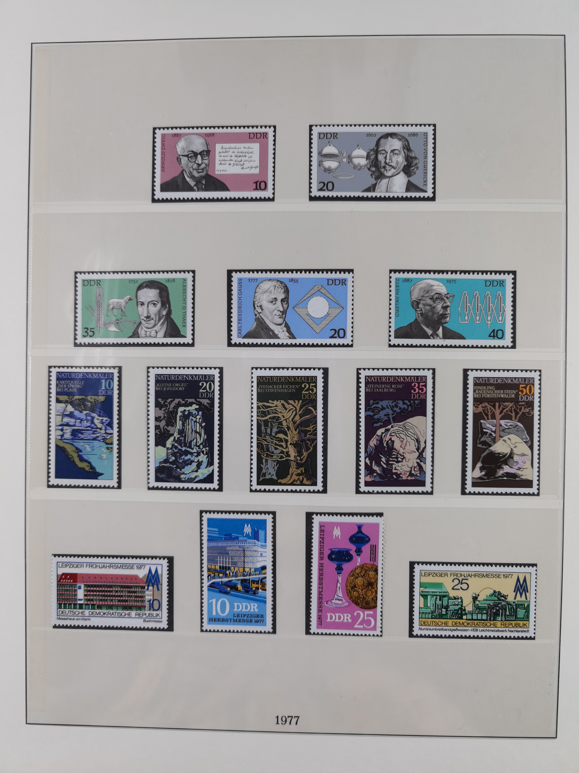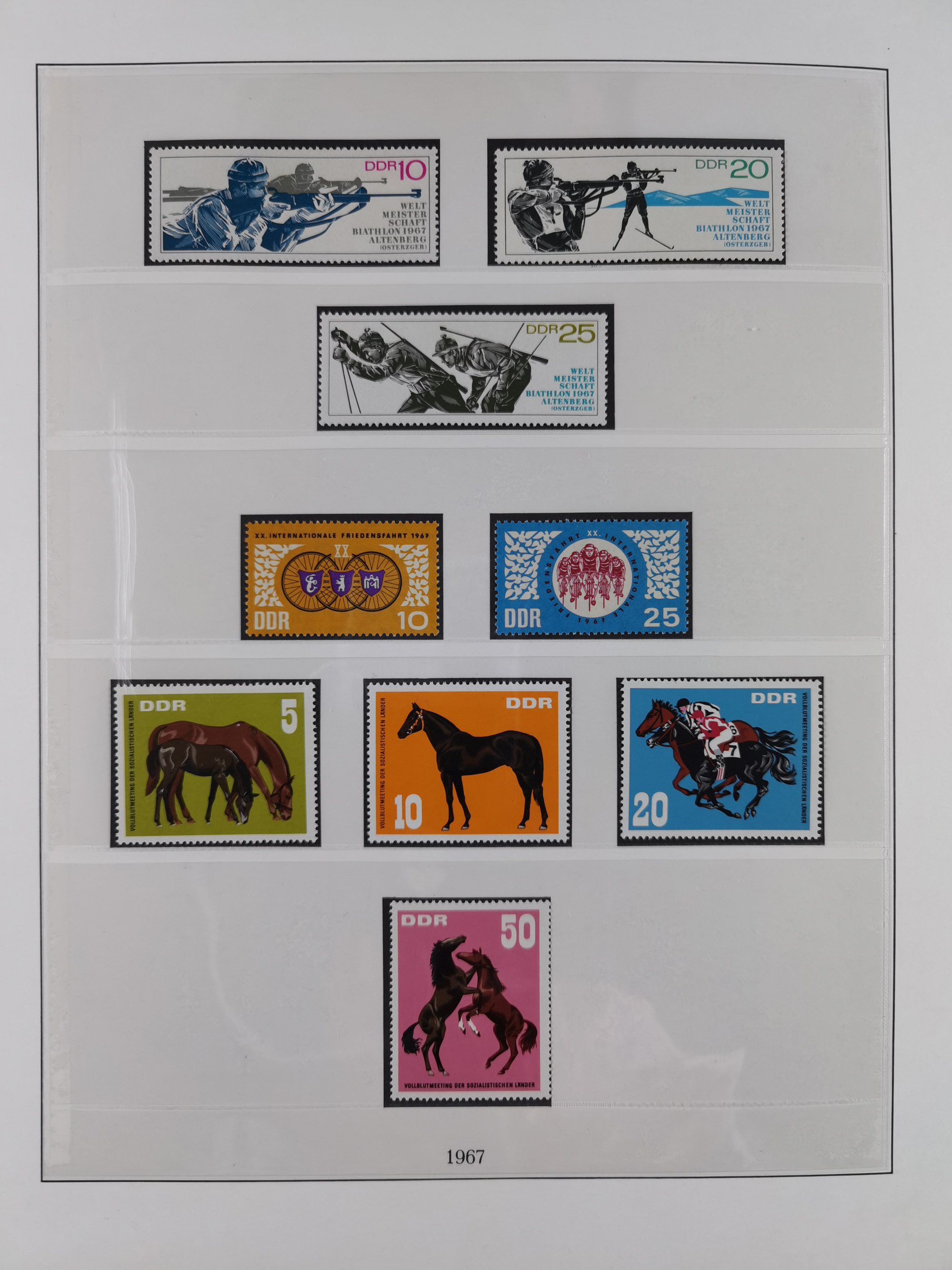 1948/90, in den Hauptnummern bis 1960 komplette postfrische Sammlungen Berlin 1948-90 inkl. Schwarzaufdruck, Rotaufdruck sign. Dub und Block 1, Bundesrepublik 1949-72 inkl. Posthornsatz, sowie DDR 1949-71 inkl. ausgiebigen Teilen Zusammendrucke, es fehlen bei den späten modernen Ausgaben teils einzelne Werte oder Sätze, gute Erhaltung, Alben mit Lagerspuren, in 11 Vordruckalben