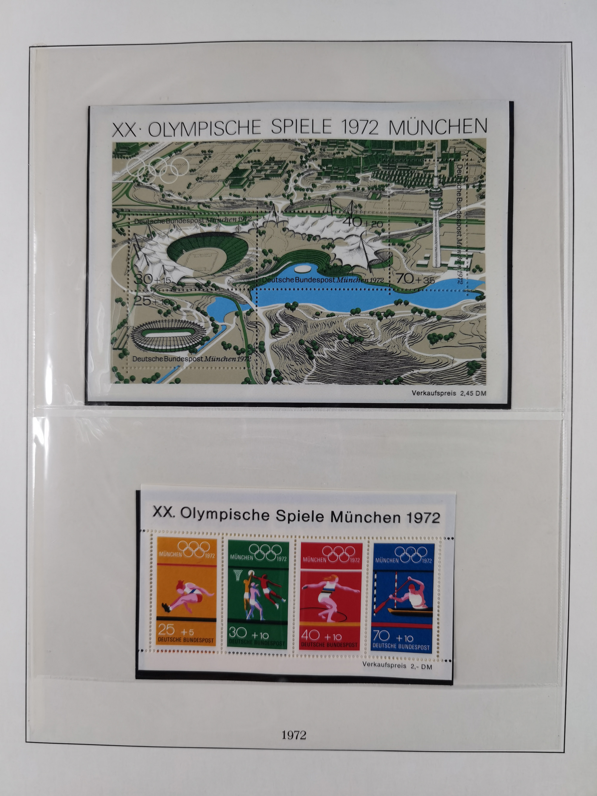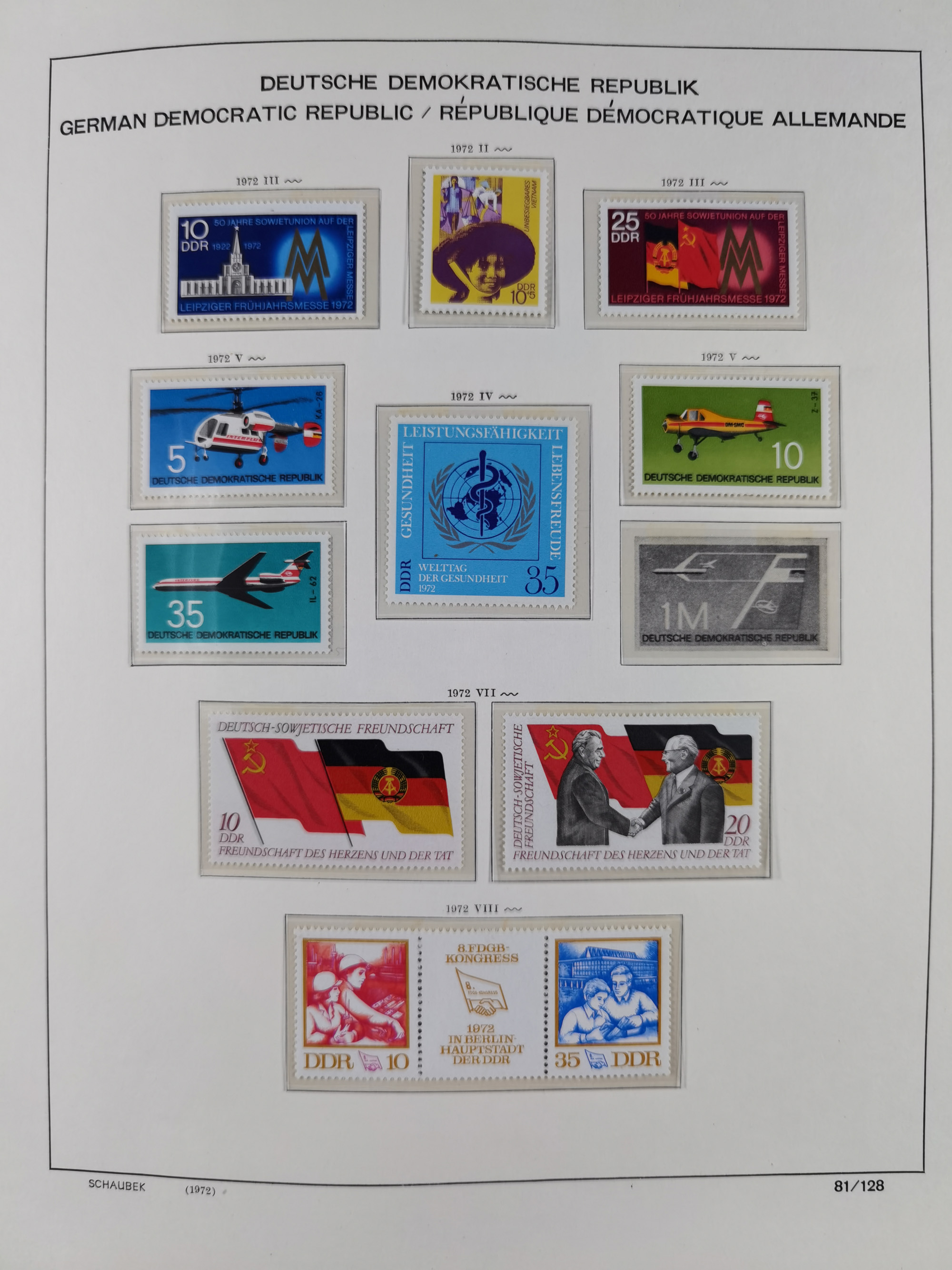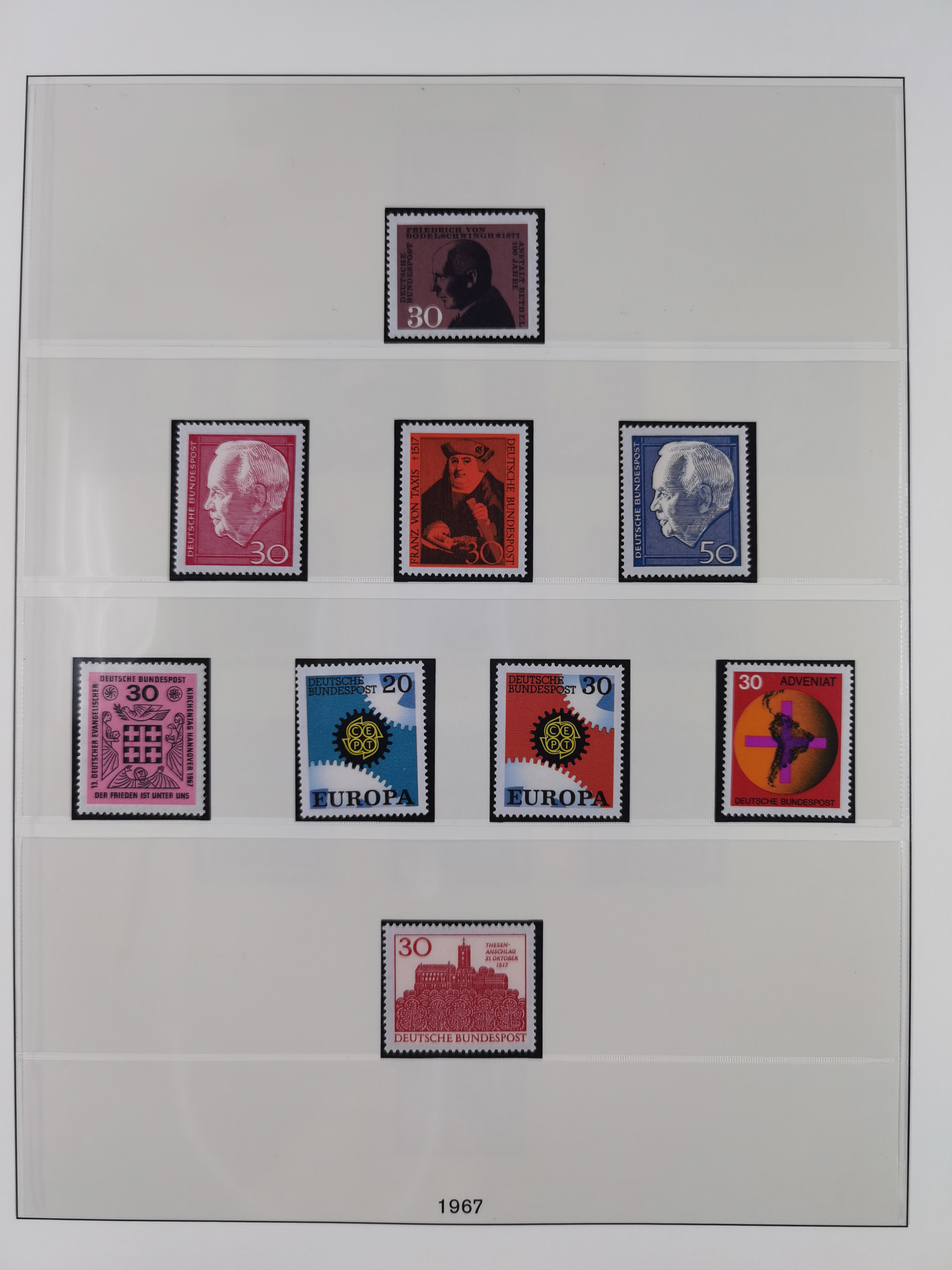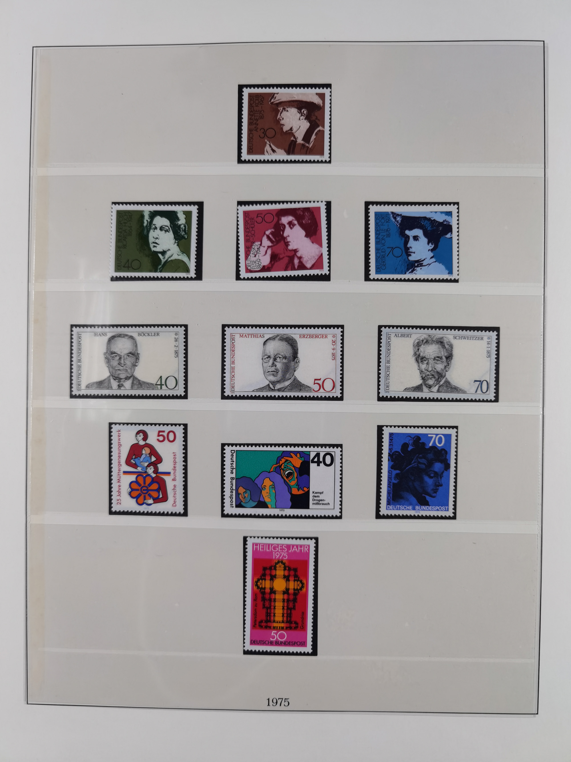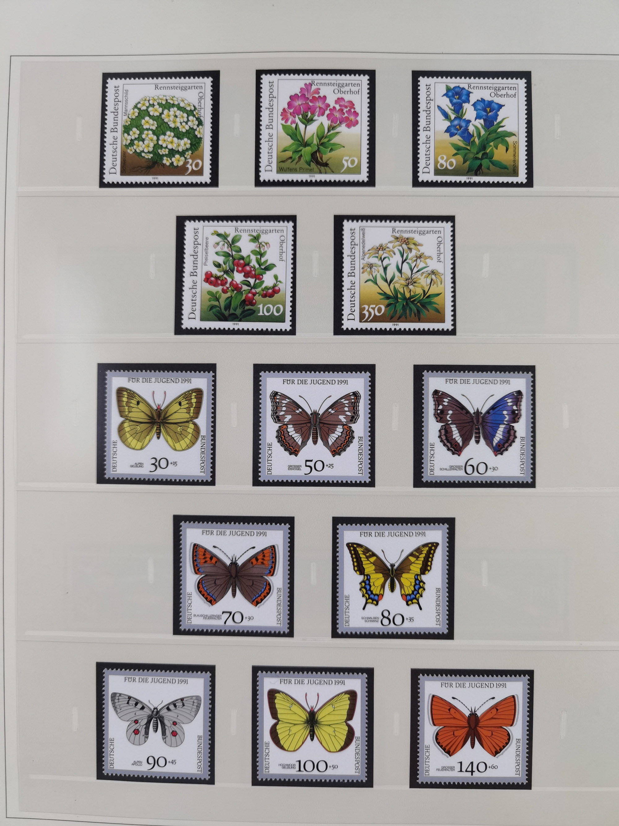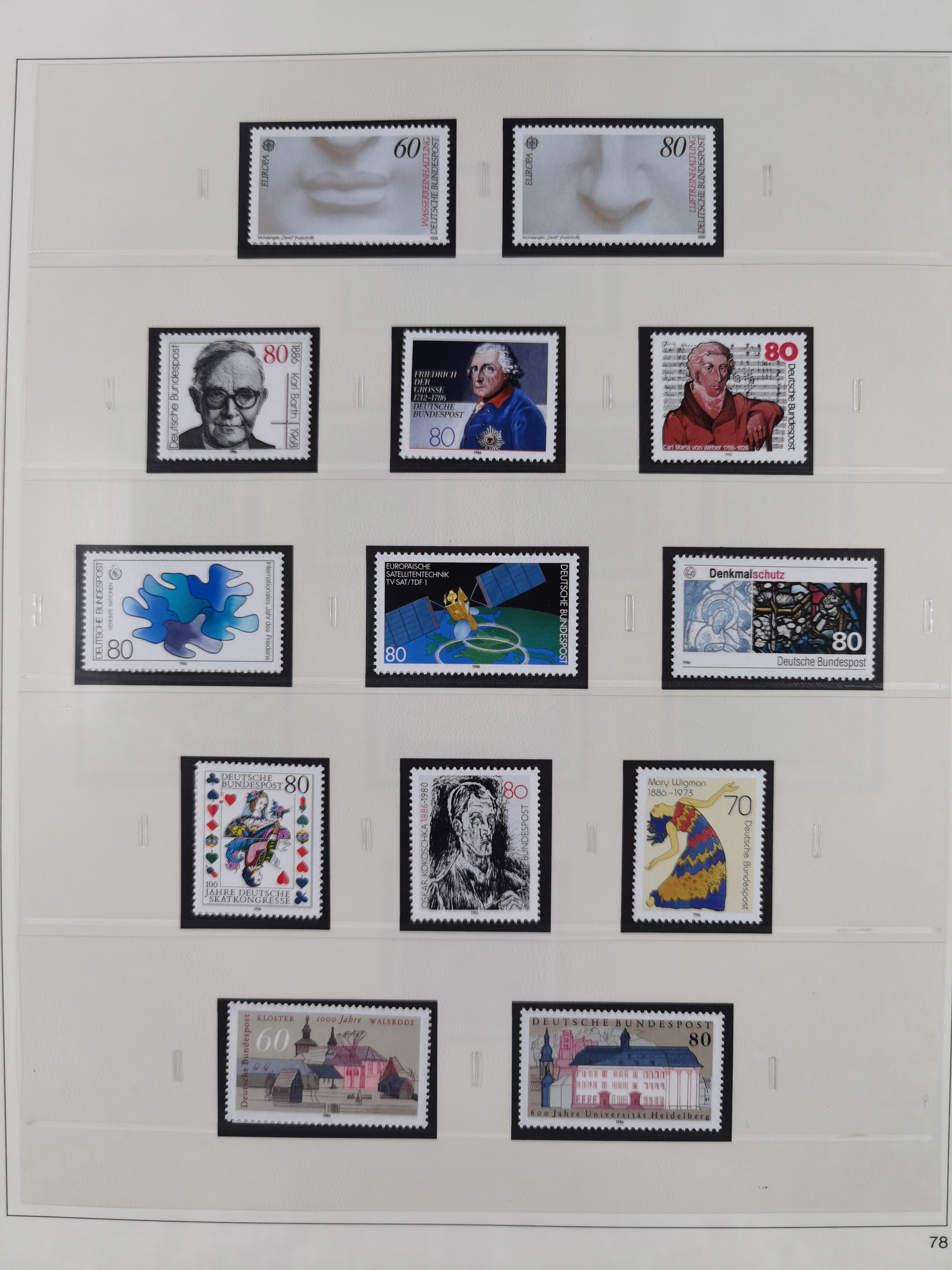 1948/90, in den Hauptnummern bis 1960 komplette postfrische Sammlungen Berlin 1948-90 inkl. Schwarzaufdruck, Rotaufdruck sign. Dub und Block 1, Bundesrepublik 1949-72 inkl. Posthornsatz, sowie DDR 1949-71 inkl. ausgiebigen Teilen Zusammendrucke, es fehlen bei den späten modernen Ausgaben teils einzelne Werte oder Sätze, gute Erhaltung, Alben mit Lagerspuren, in 11 Vordruckalben