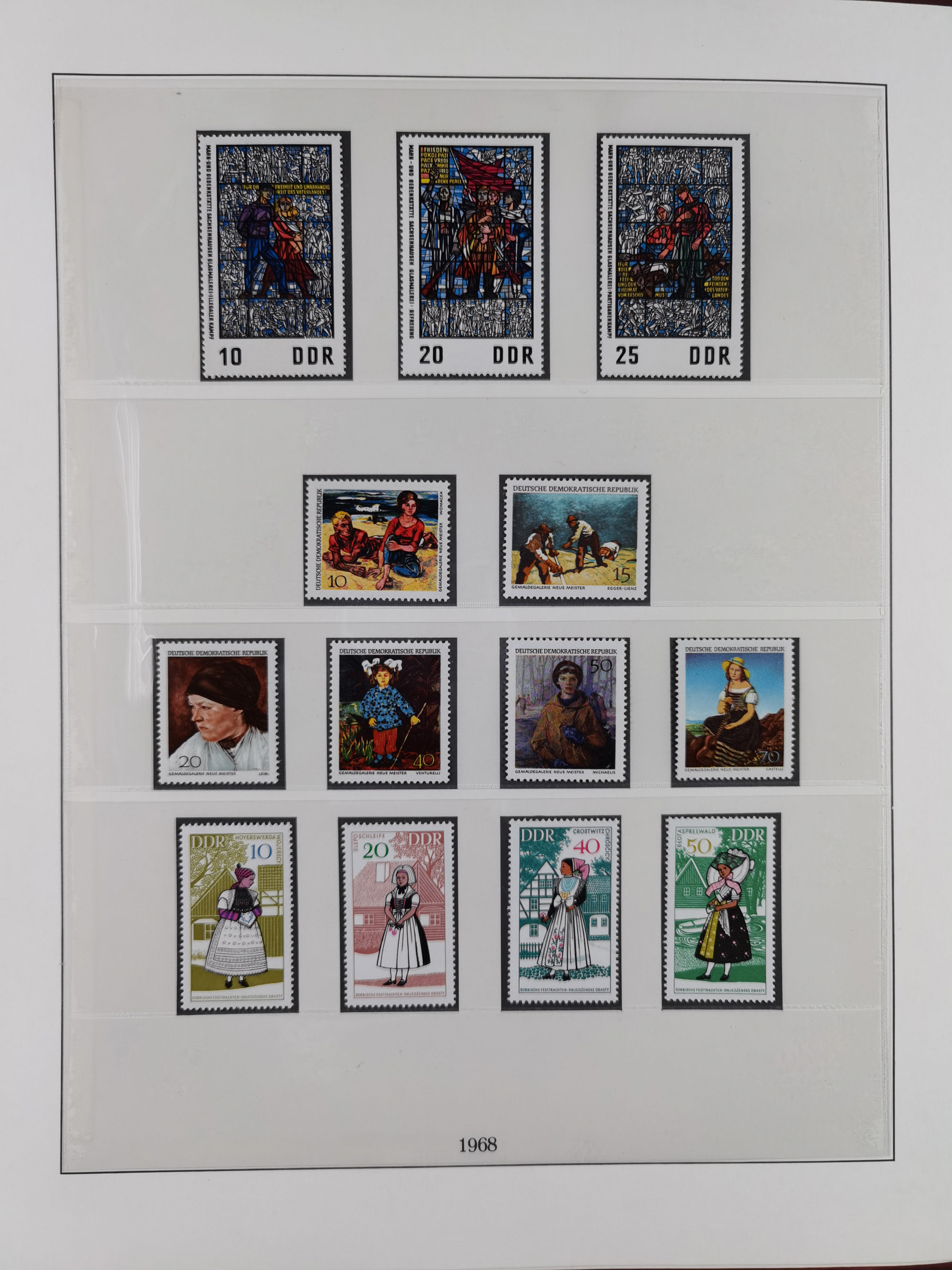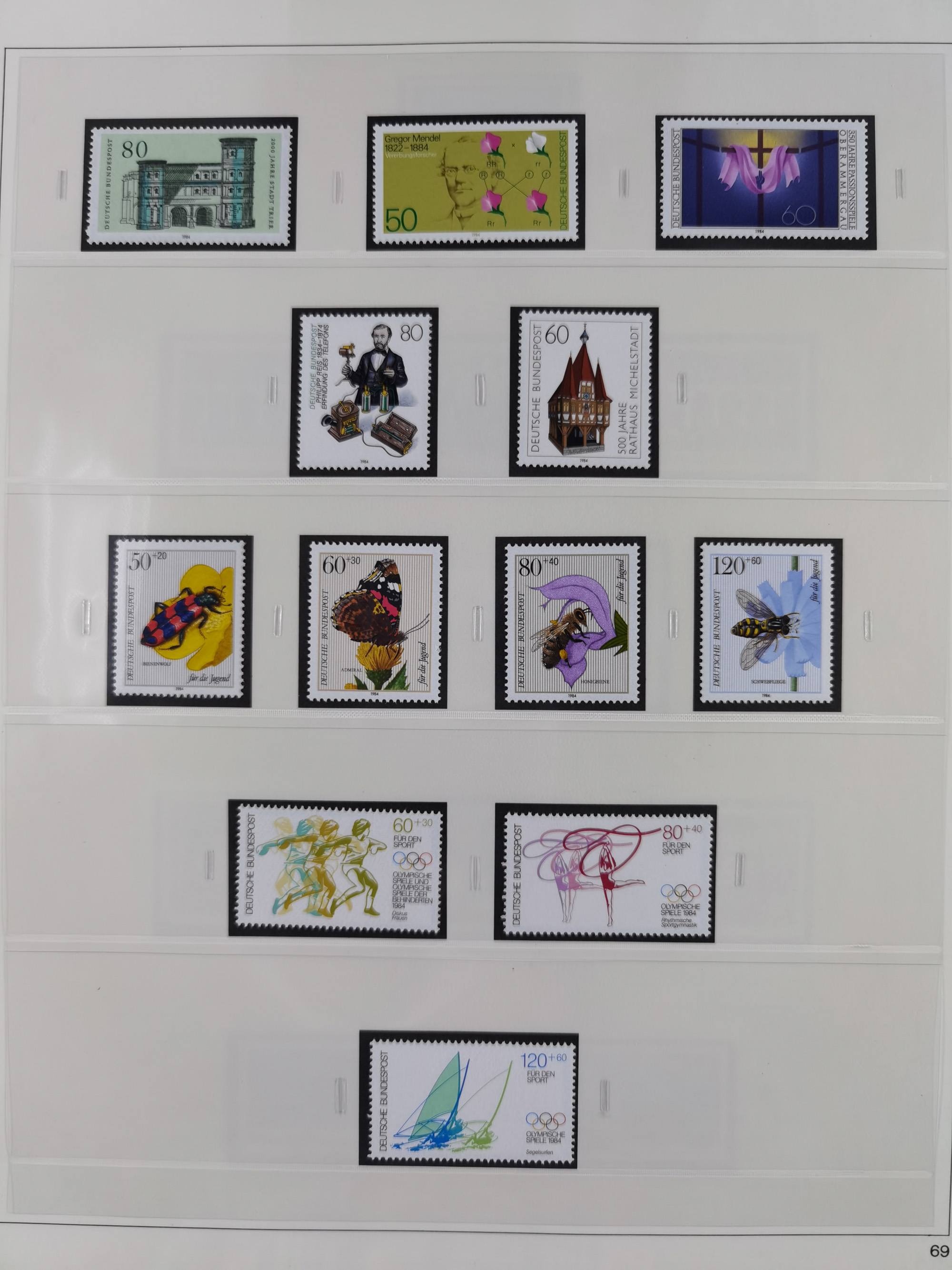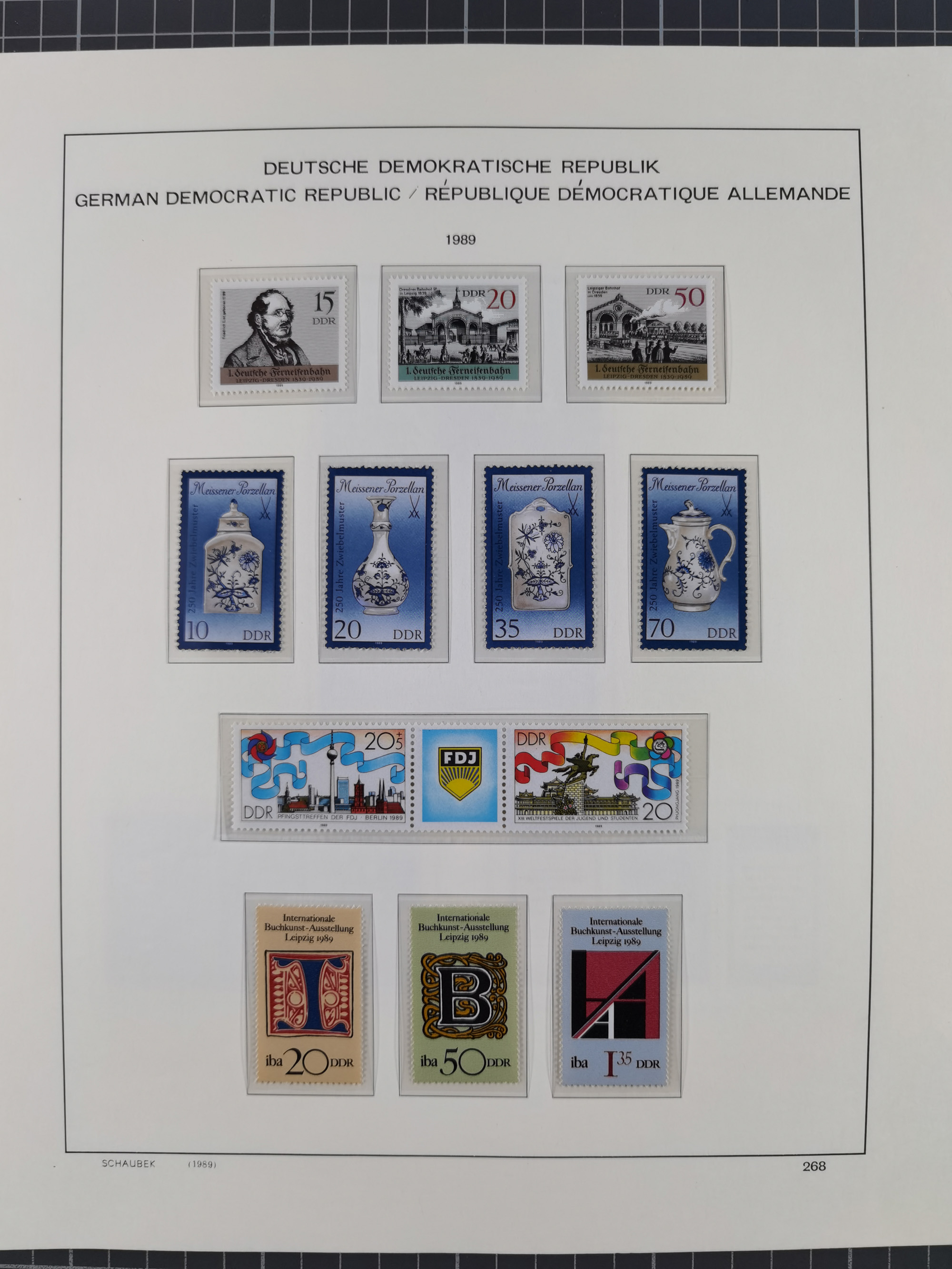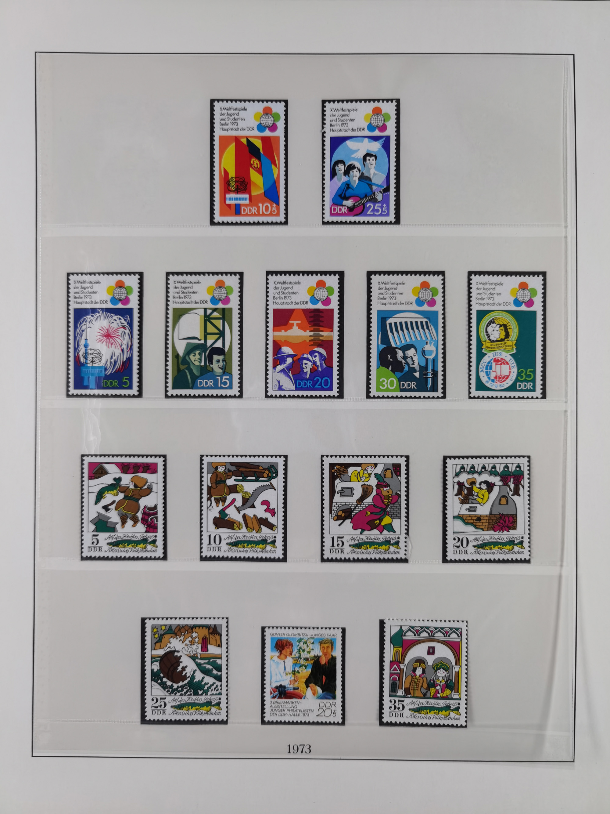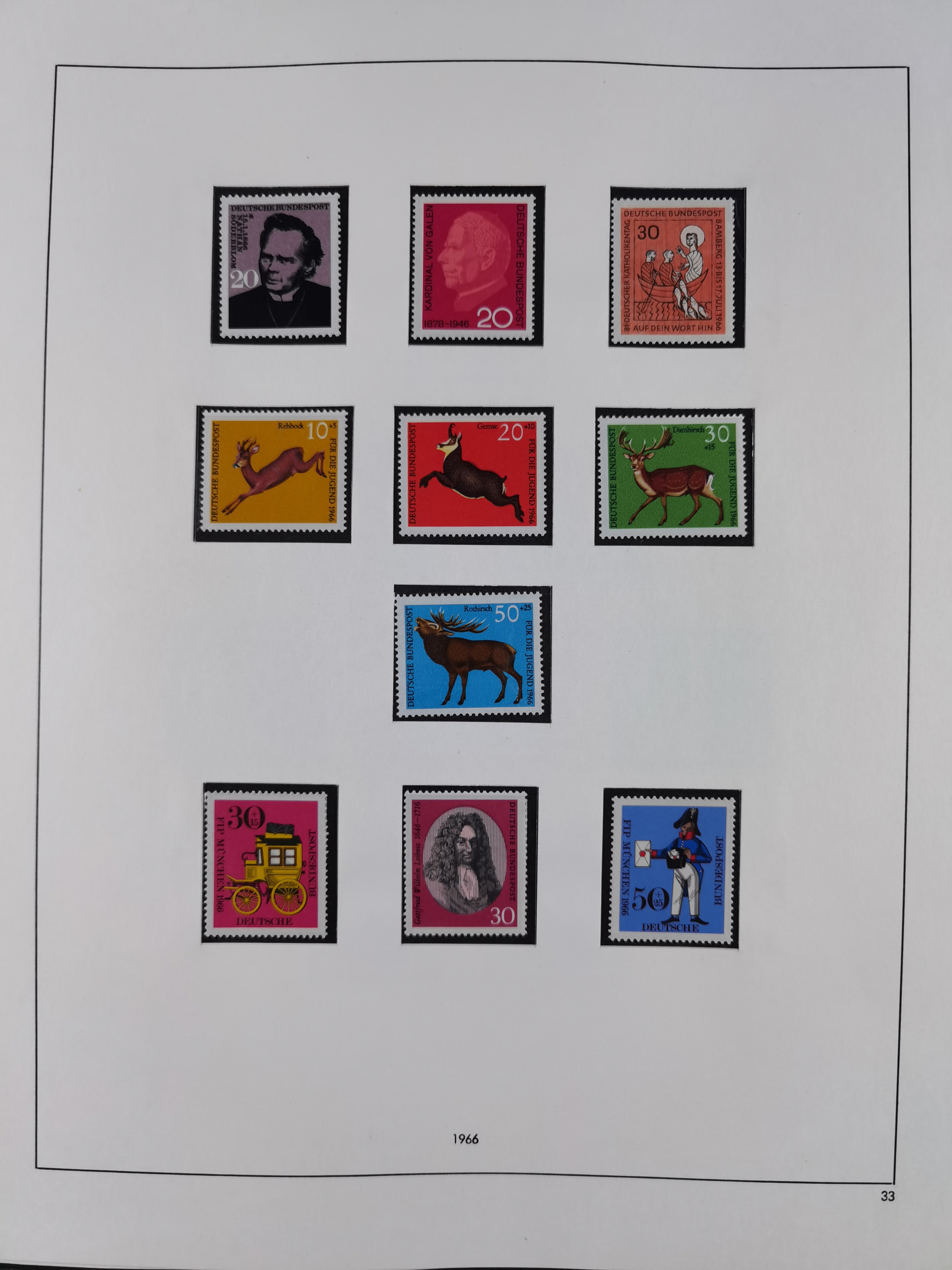 1948/90, in den Hauptnummern bis 1960 komplette postfrische Sammlungen Berlin 1948-90 inkl. Schwarzaufdruck, Rotaufdruck sign. Dub und Block 1, Bundesrepublik 1949-72 inkl. Posthornsatz, sowie DDR 1949-71 inkl. ausgiebigen Teilen Zusammendrucke, es fehlen bei den späten modernen Ausgaben teils einzelne Werte oder Sätze, gute Erhaltung, Alben mit Lagerspuren, in 11 Vordruckalben