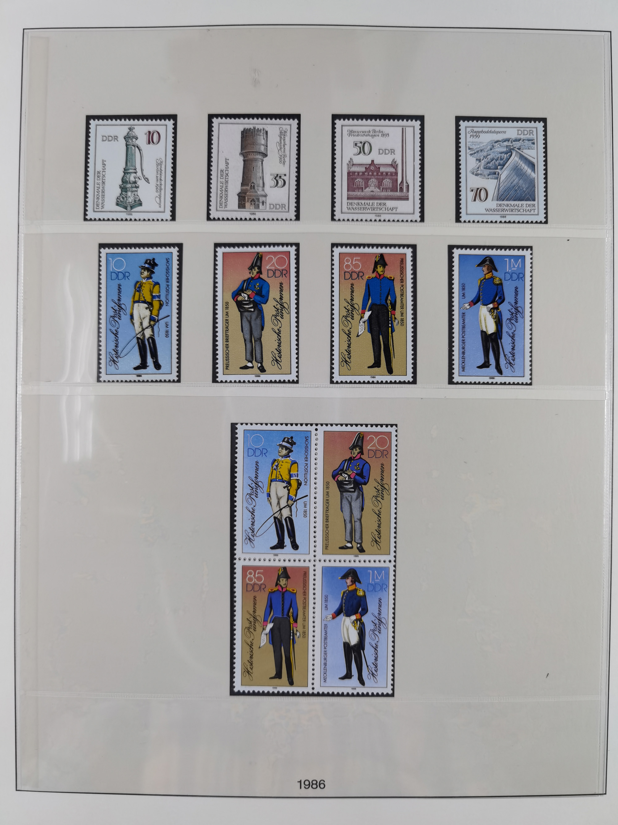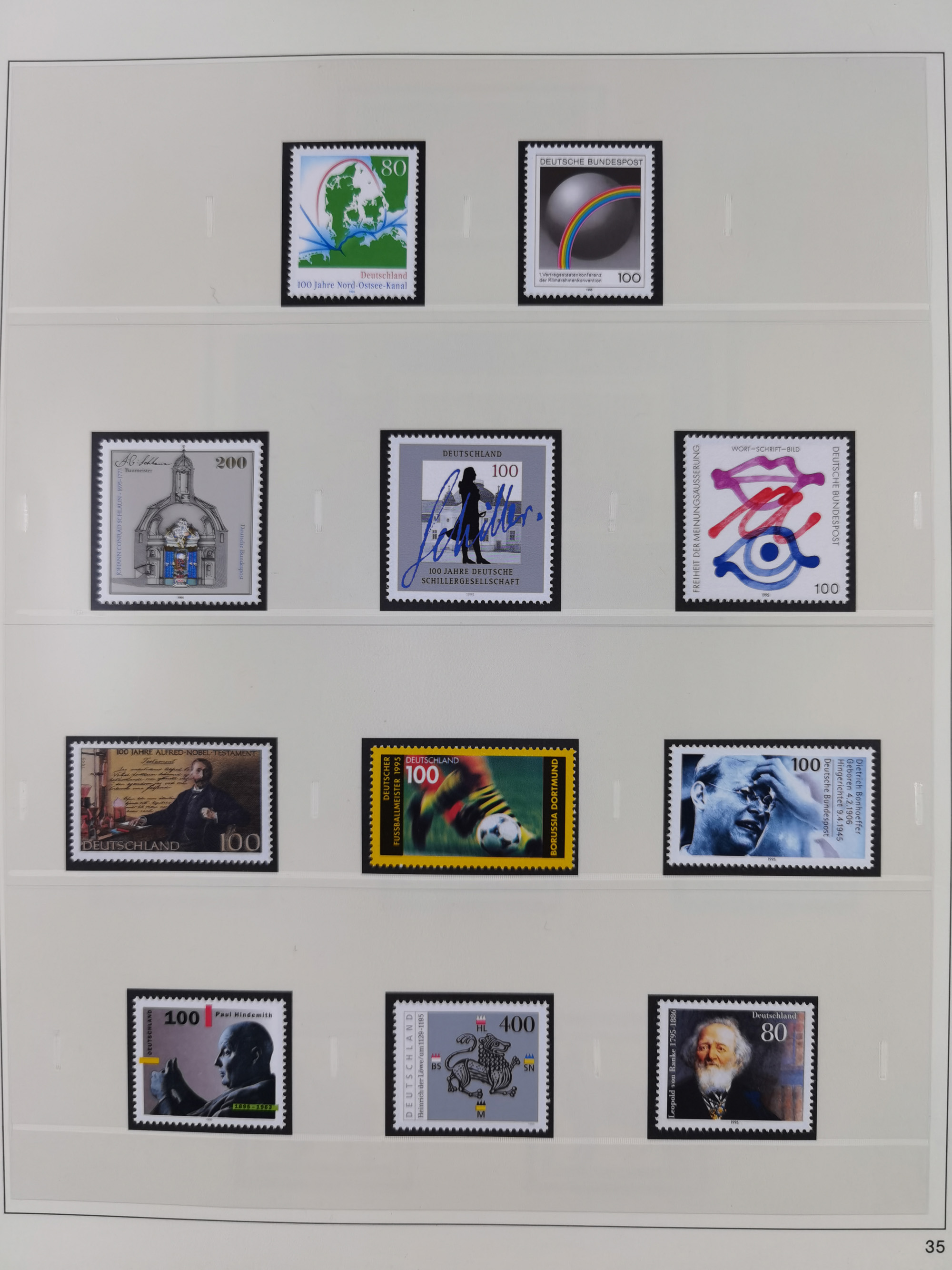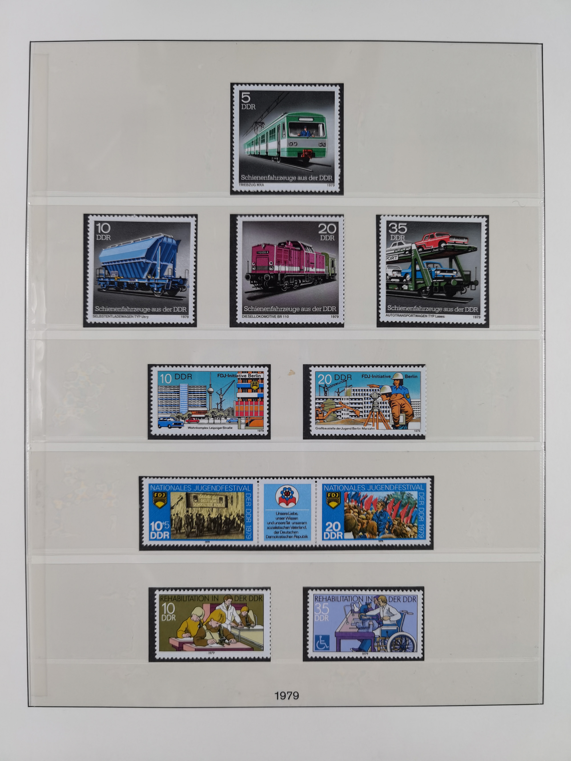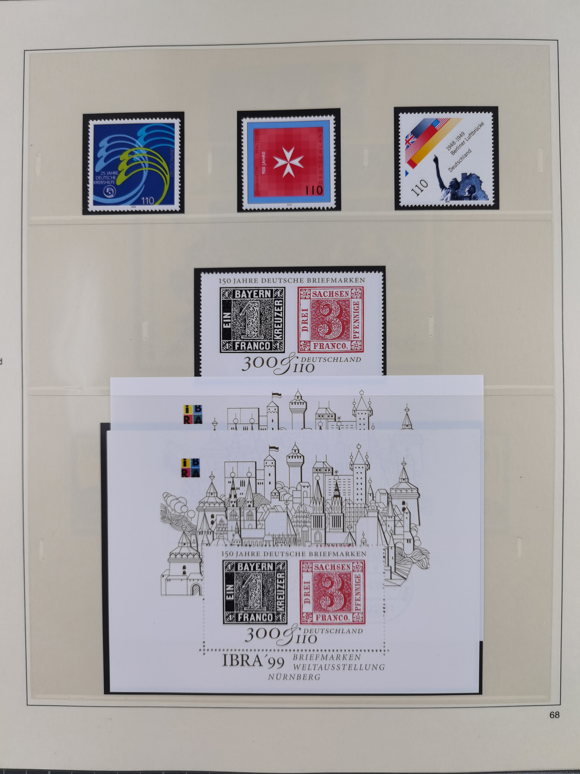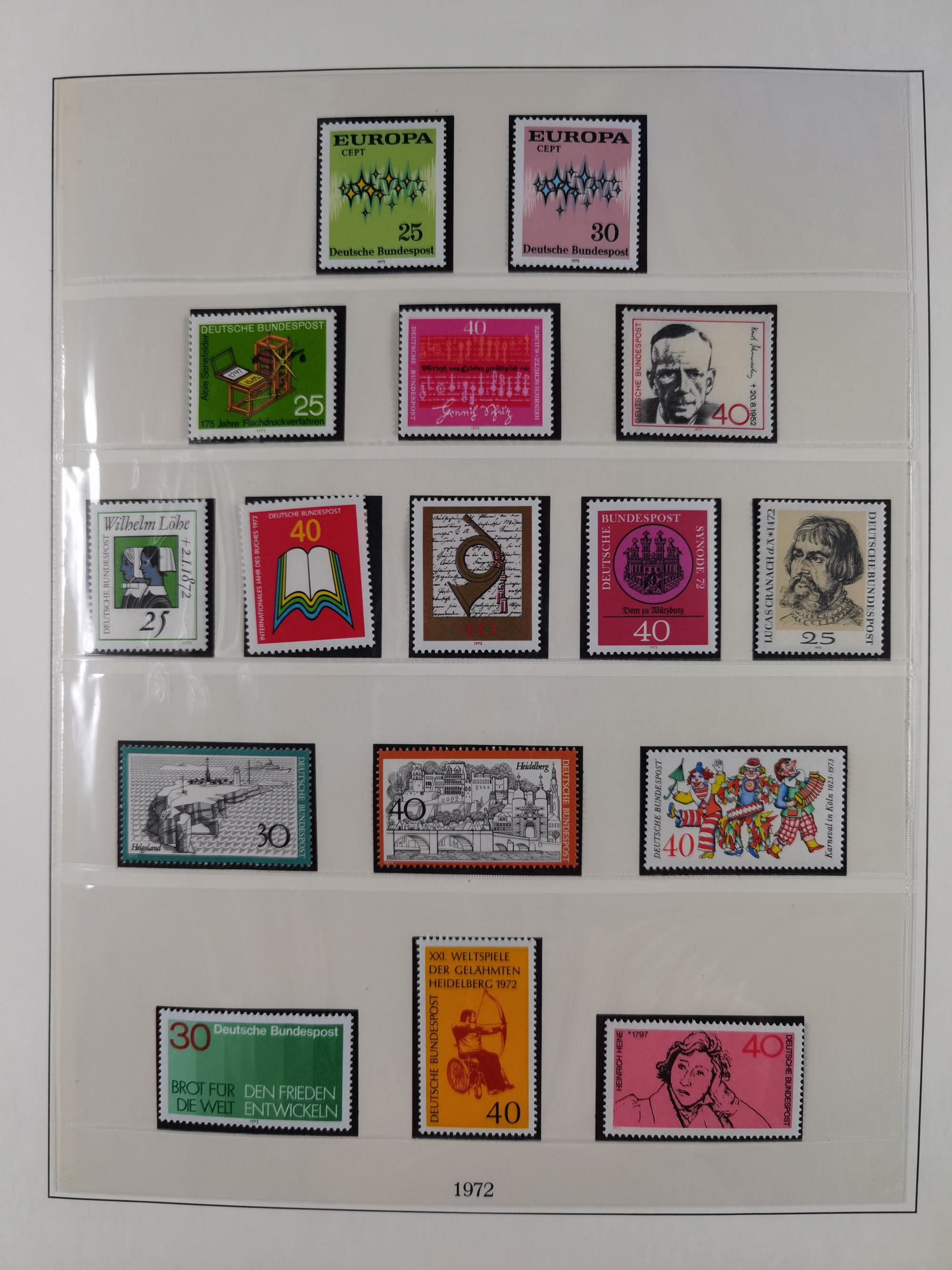 1948/90, in den Hauptnummern bis 1960 komplette postfrische Sammlungen Berlin 1948-90 inkl. Schwarzaufdruck, Rotaufdruck sign. Dub und Block 1, Bundesrepublik 1949-72 inkl. Posthornsatz, sowie DDR 1949-71 inkl. ausgiebigen Teilen Zusammendrucke, es fehlen bei den späten modernen Ausgaben teils einzelne Werte oder Sätze, gute Erhaltung, Alben mit Lagerspuren, in 11 Vordruckalben