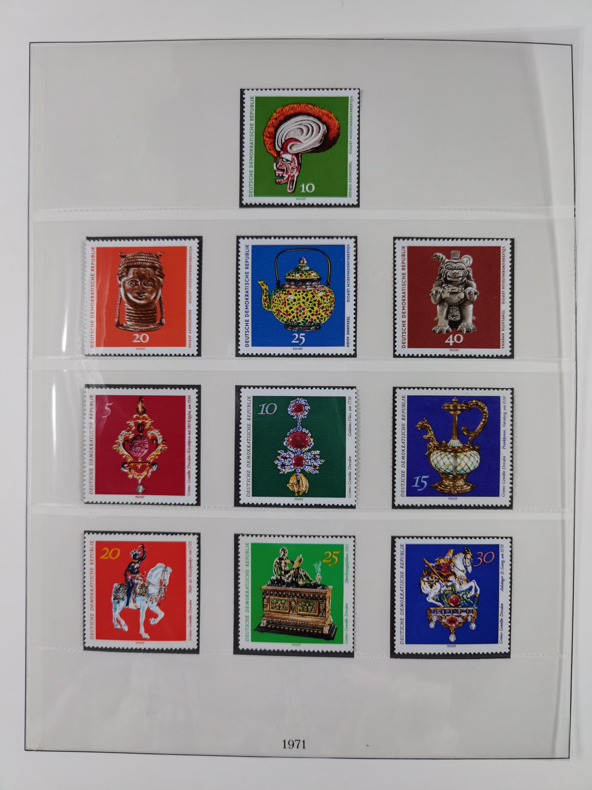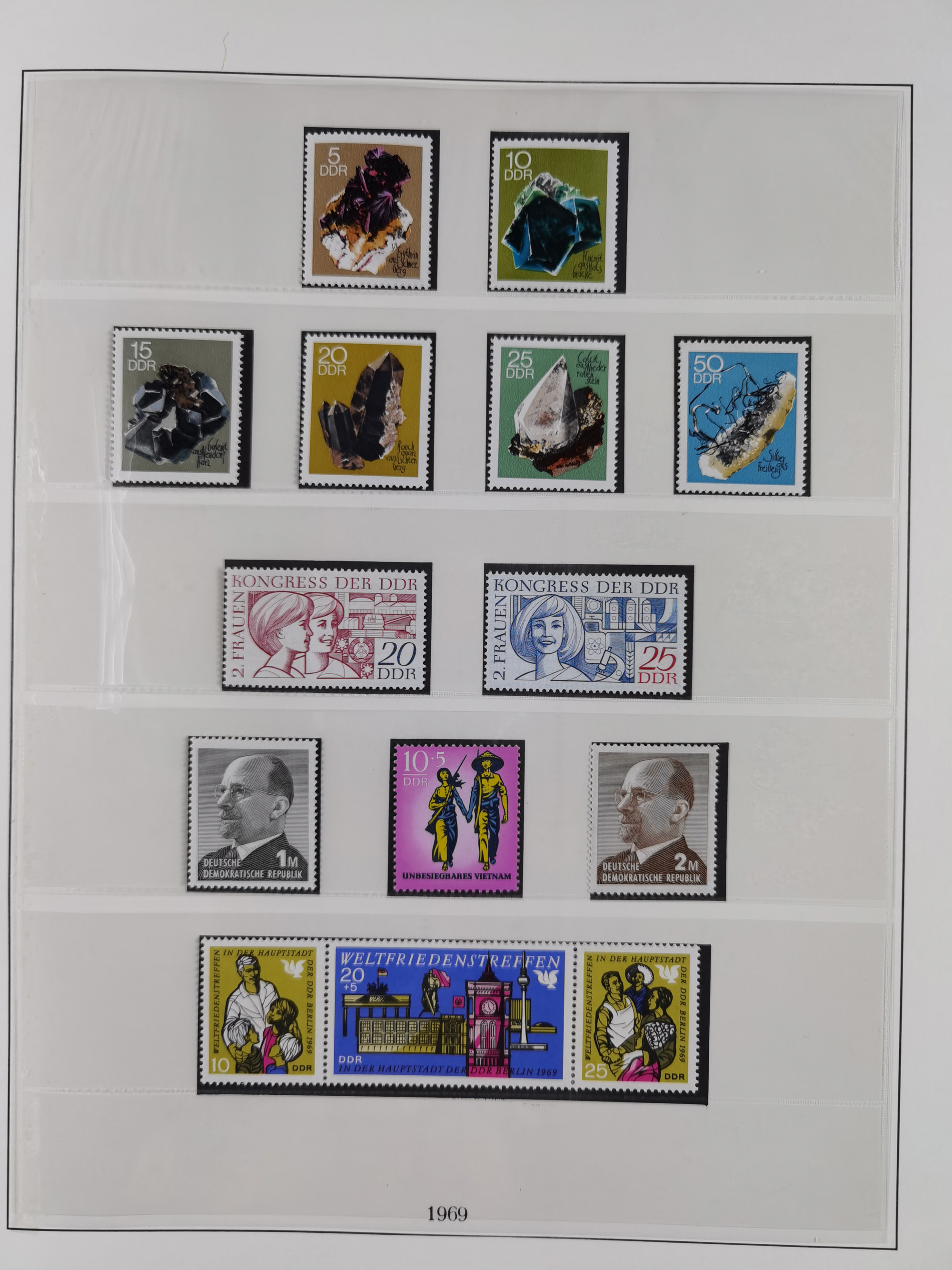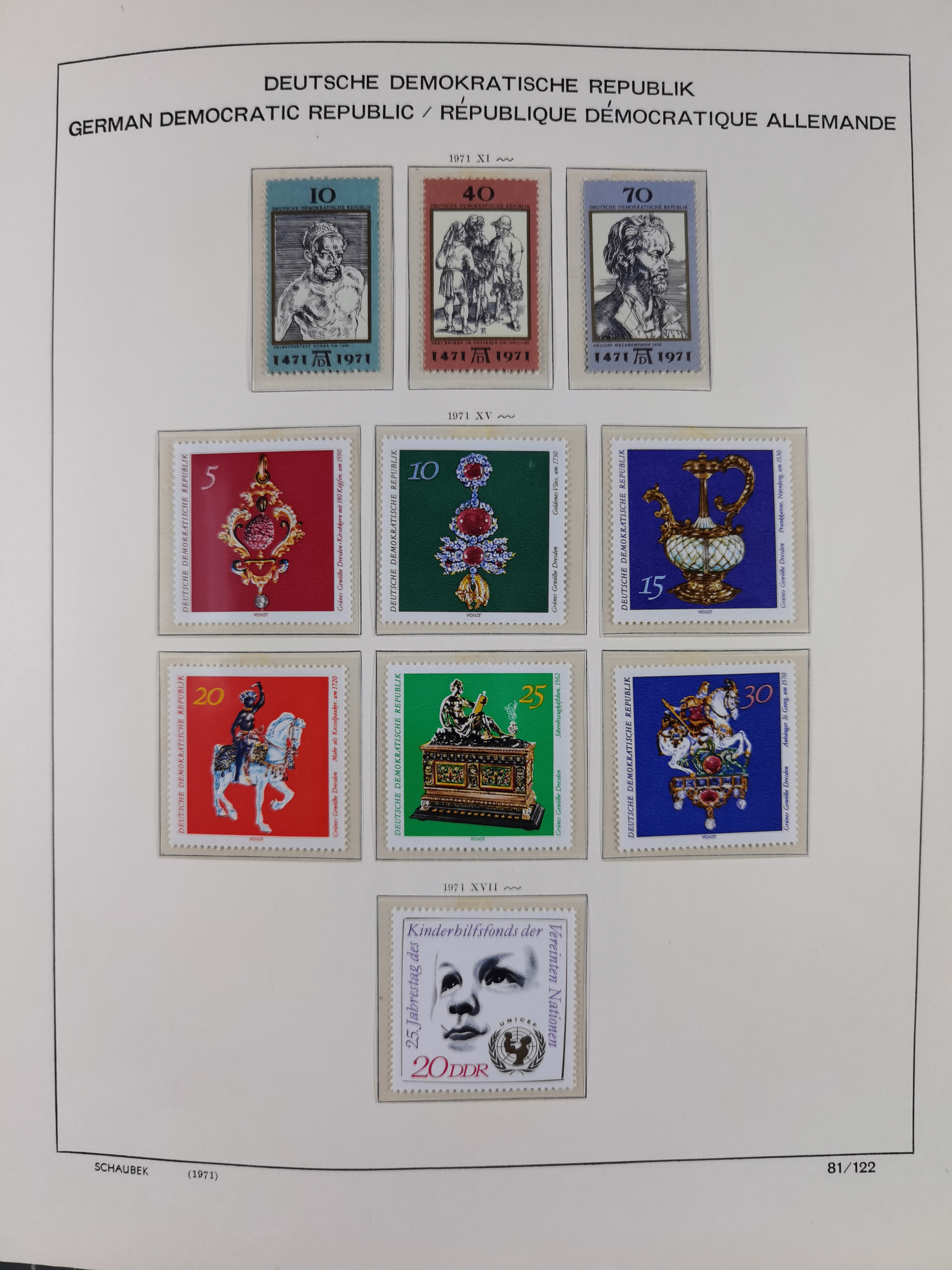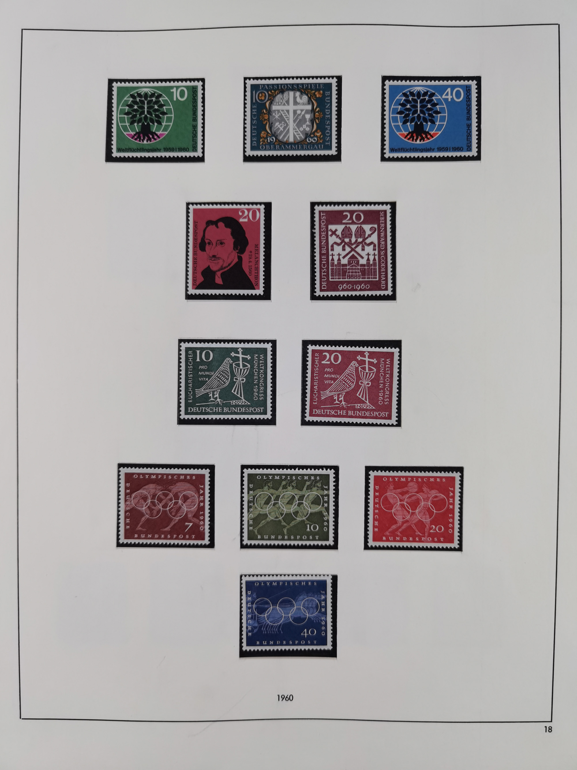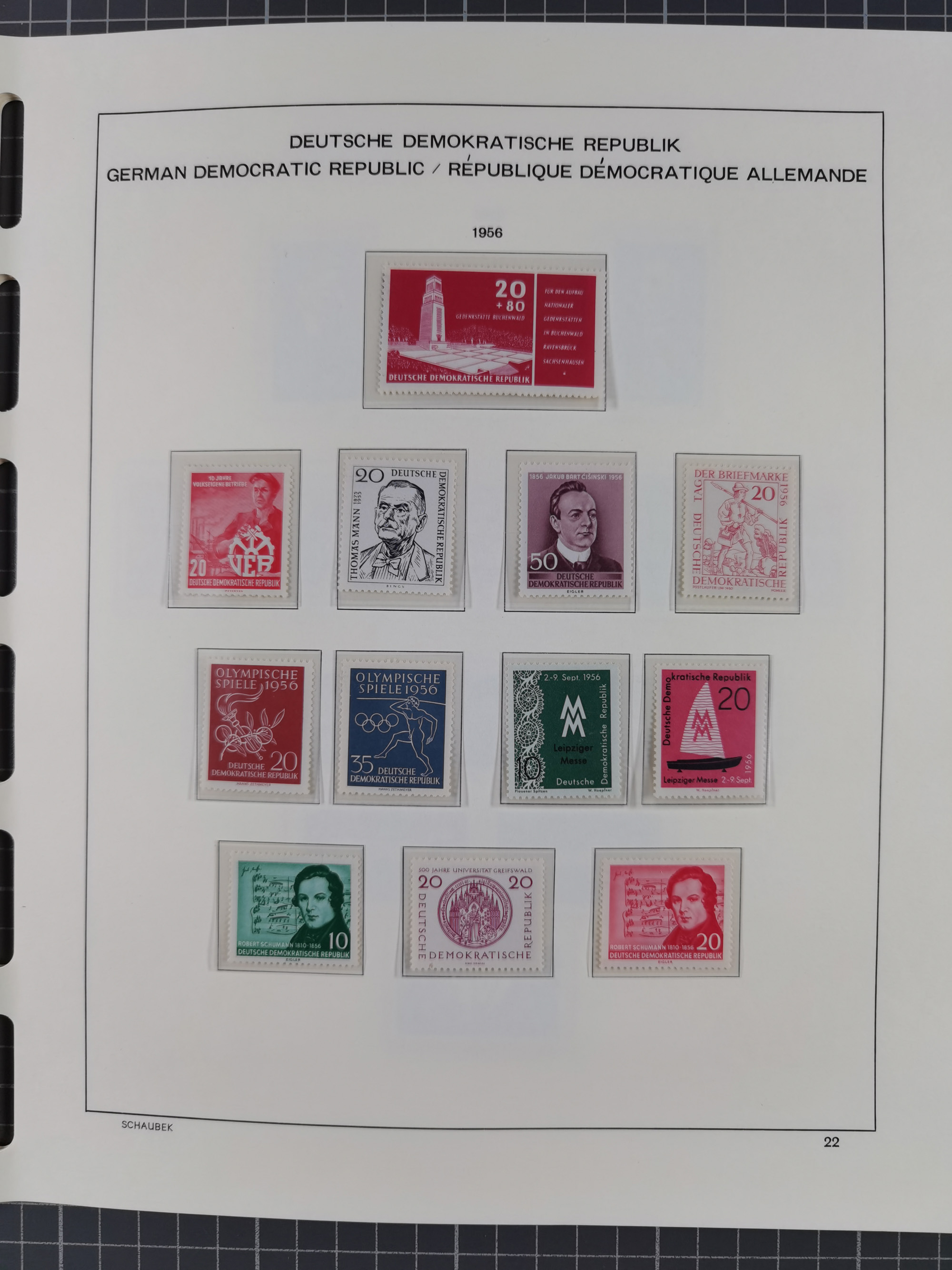 1948/90, in den Hauptnummern bis 1960 komplette postfrische Sammlungen Berlin 1948-90 inkl. Schwarzaufdruck, Rotaufdruck sign. Dub und Block 1, Bundesrepublik 1949-72 inkl. Posthornsatz, sowie DDR 1949-71 inkl. ausgiebigen Teilen Zusammendrucke, es fehlen bei den späten modernen Ausgaben teils einzelne Werte oder Sätze, gute Erhaltung, Alben mit Lagerspuren, in 11 Vordruckalben