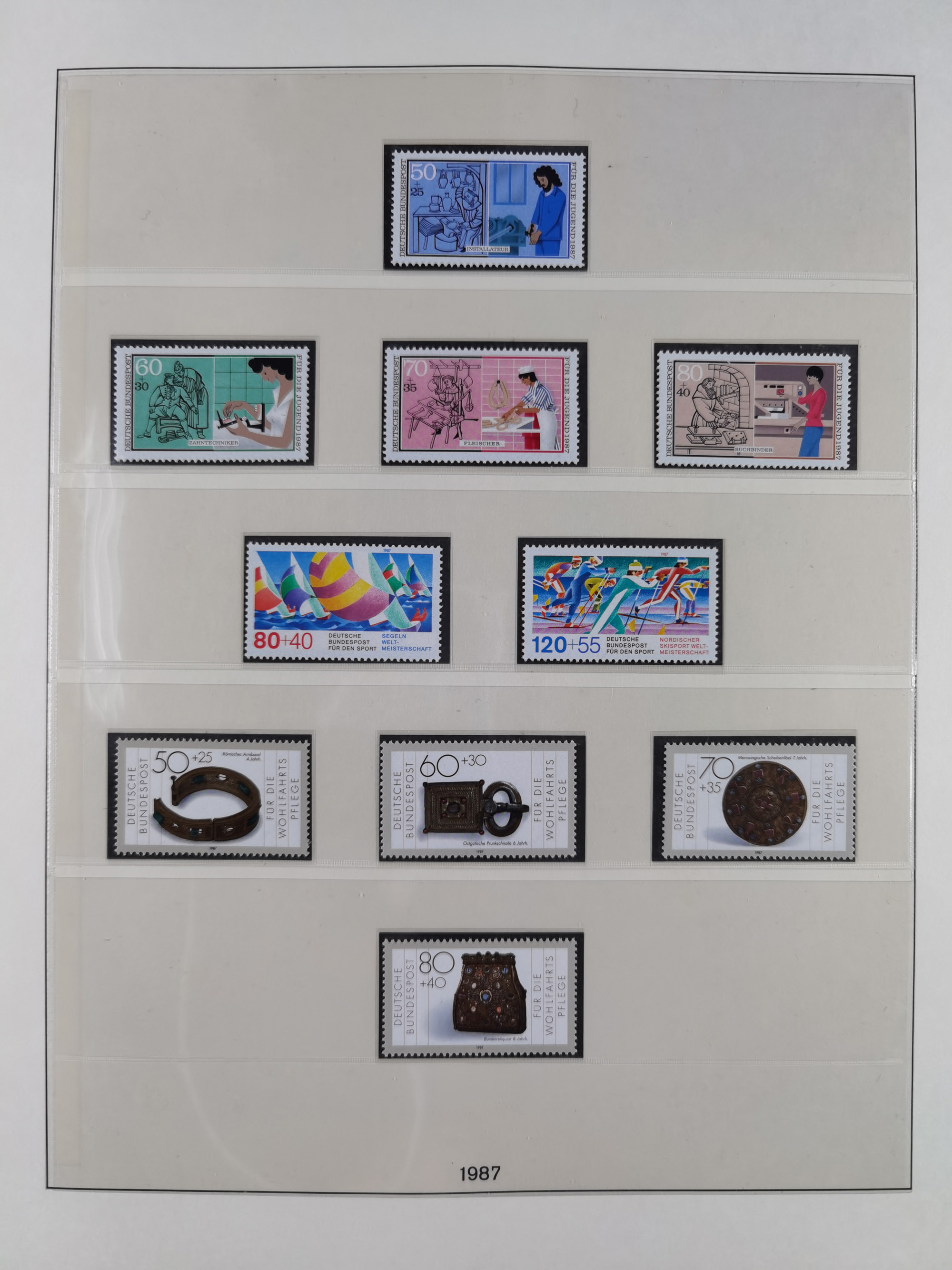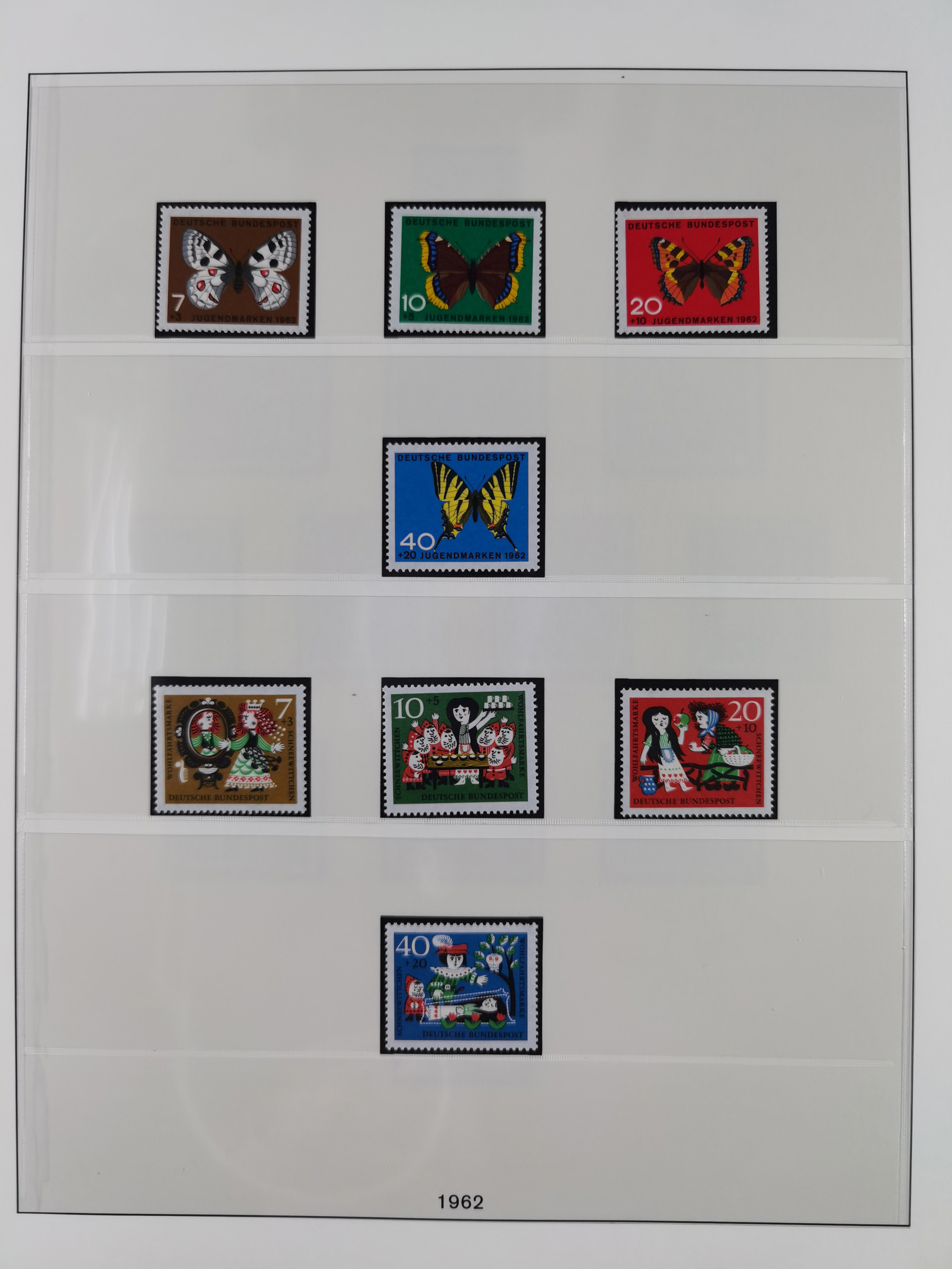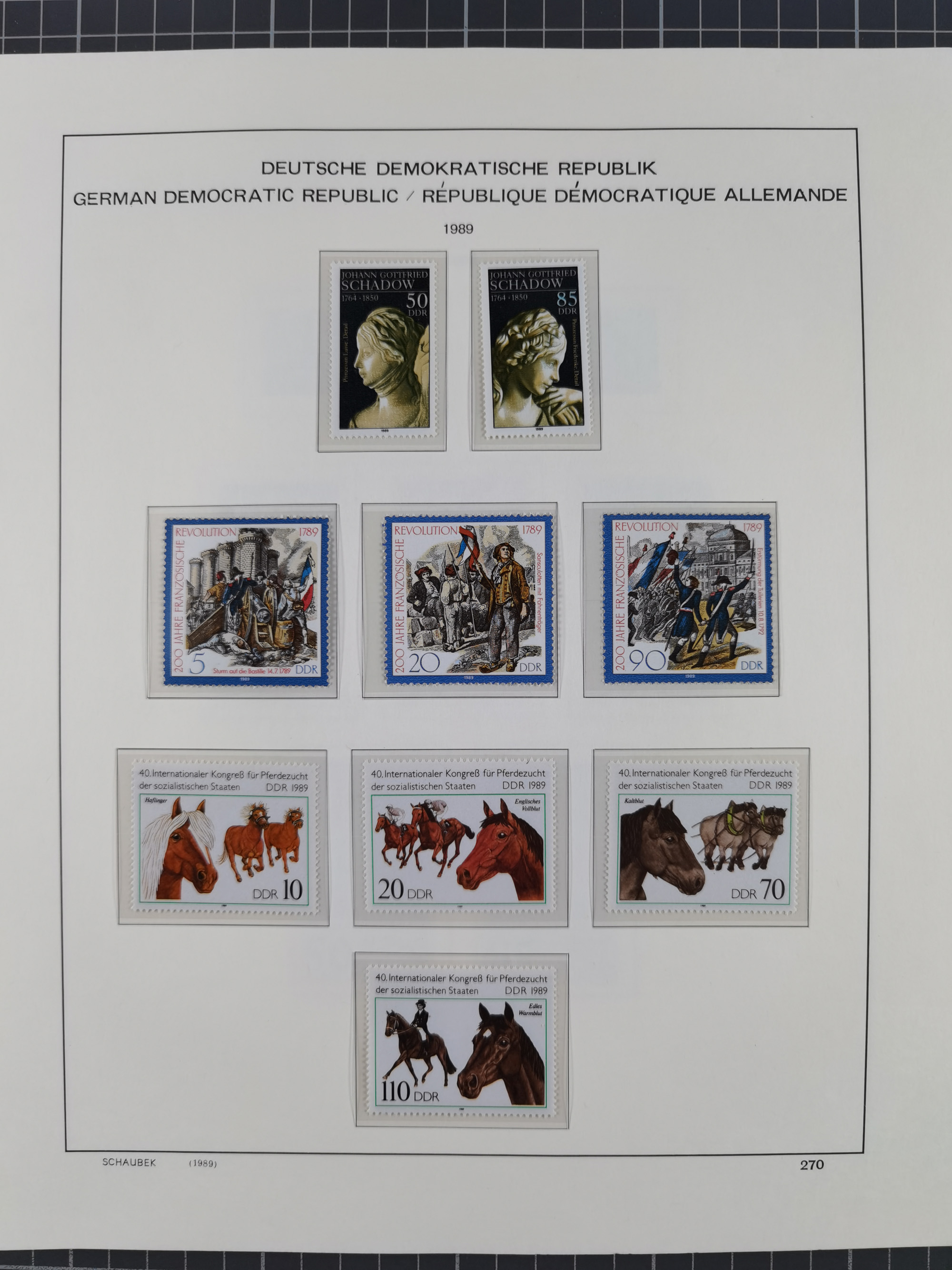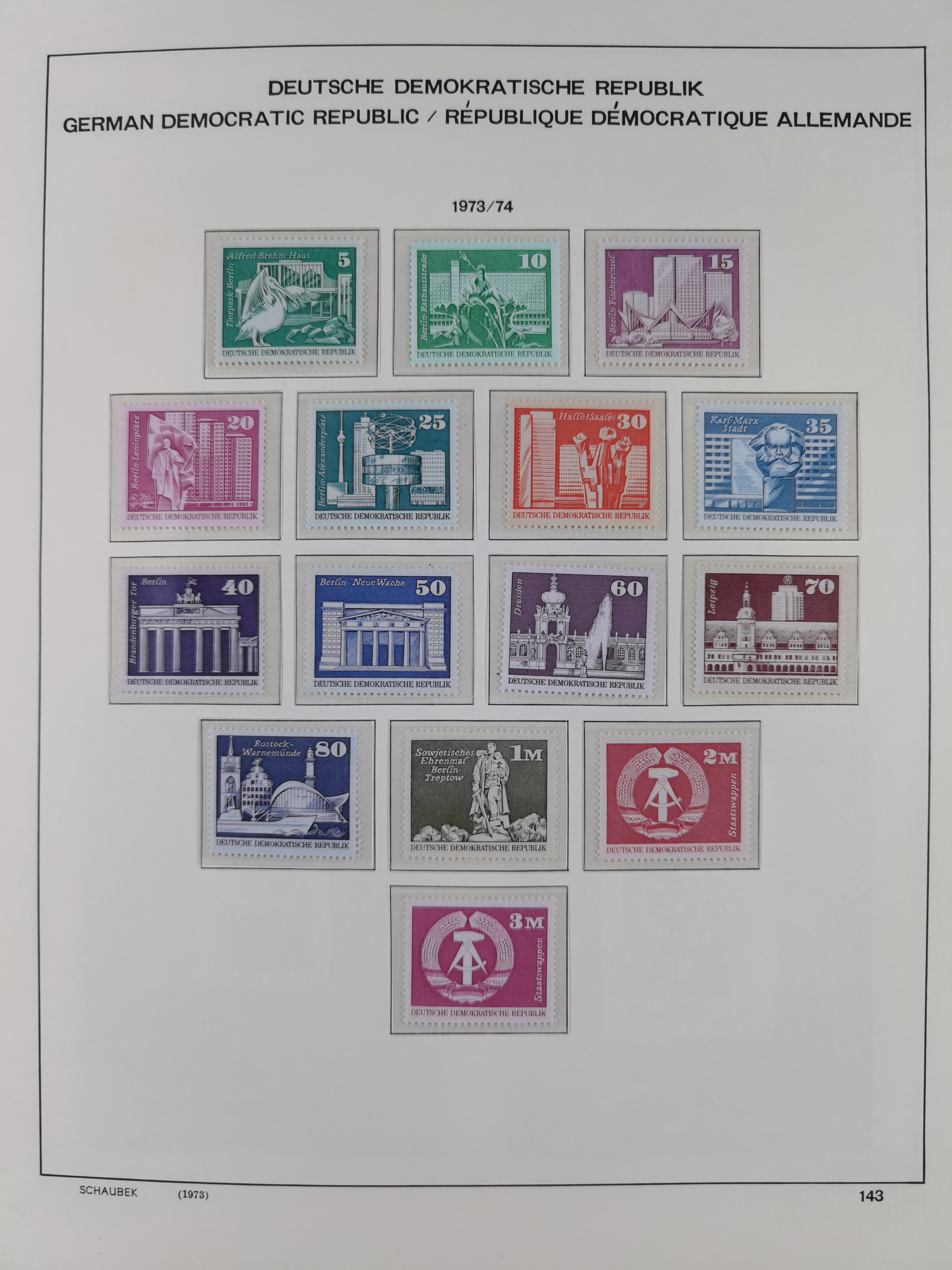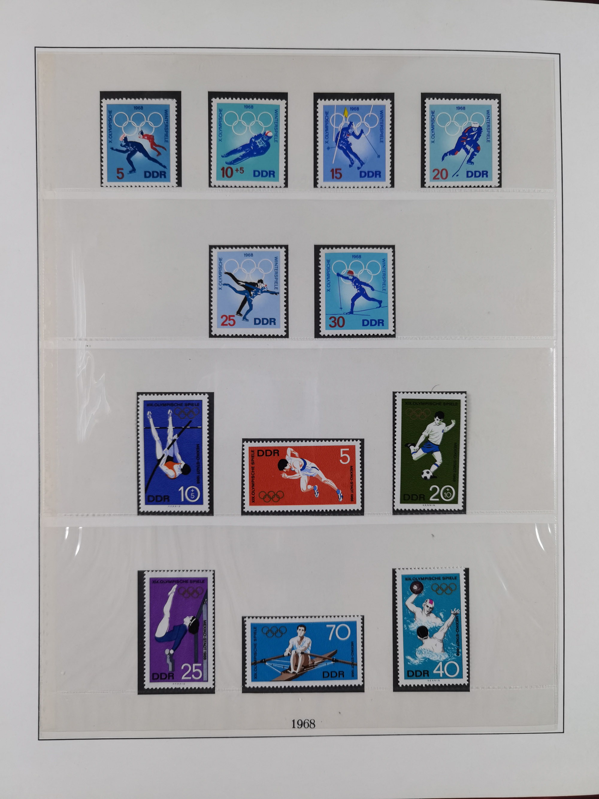 1948/90, in den Hauptnummern bis 1960 komplette postfrische Sammlungen Berlin 1948-90 inkl. Schwarzaufdruck, Rotaufdruck sign. Dub und Block 1, Bundesrepublik 1949-72 inkl. Posthornsatz, sowie DDR 1949-71 inkl. ausgiebigen Teilen Zusammendrucke, es fehlen bei den späten modernen Ausgaben teils einzelne Werte oder Sätze, gute Erhaltung, Alben mit Lagerspuren, in 11 Vordruckalben
