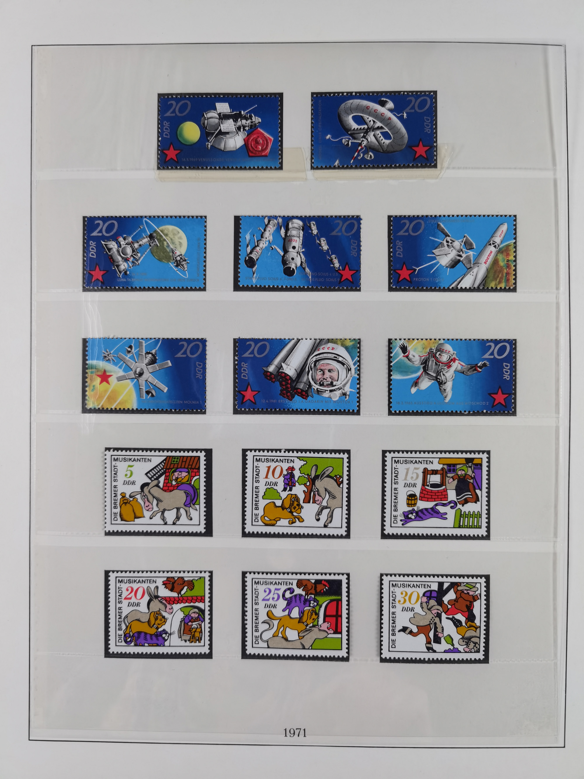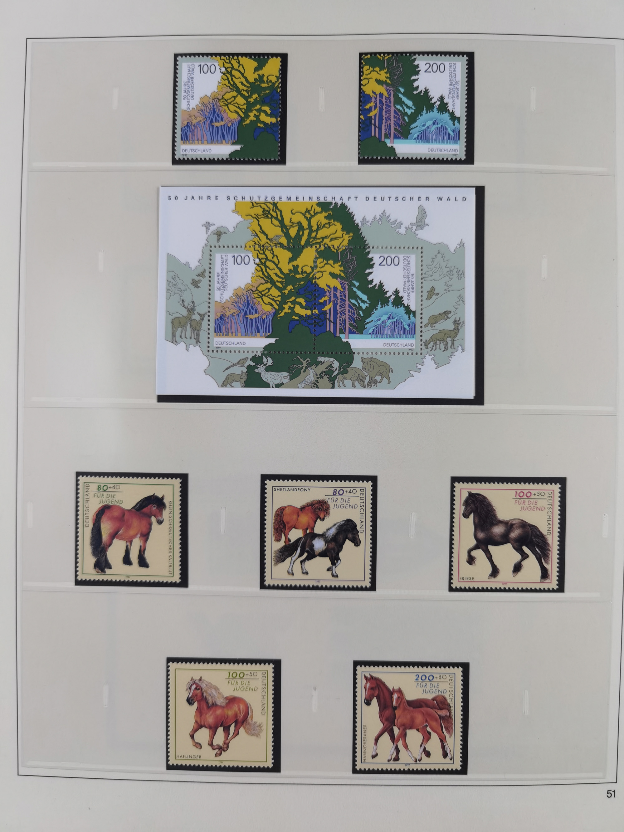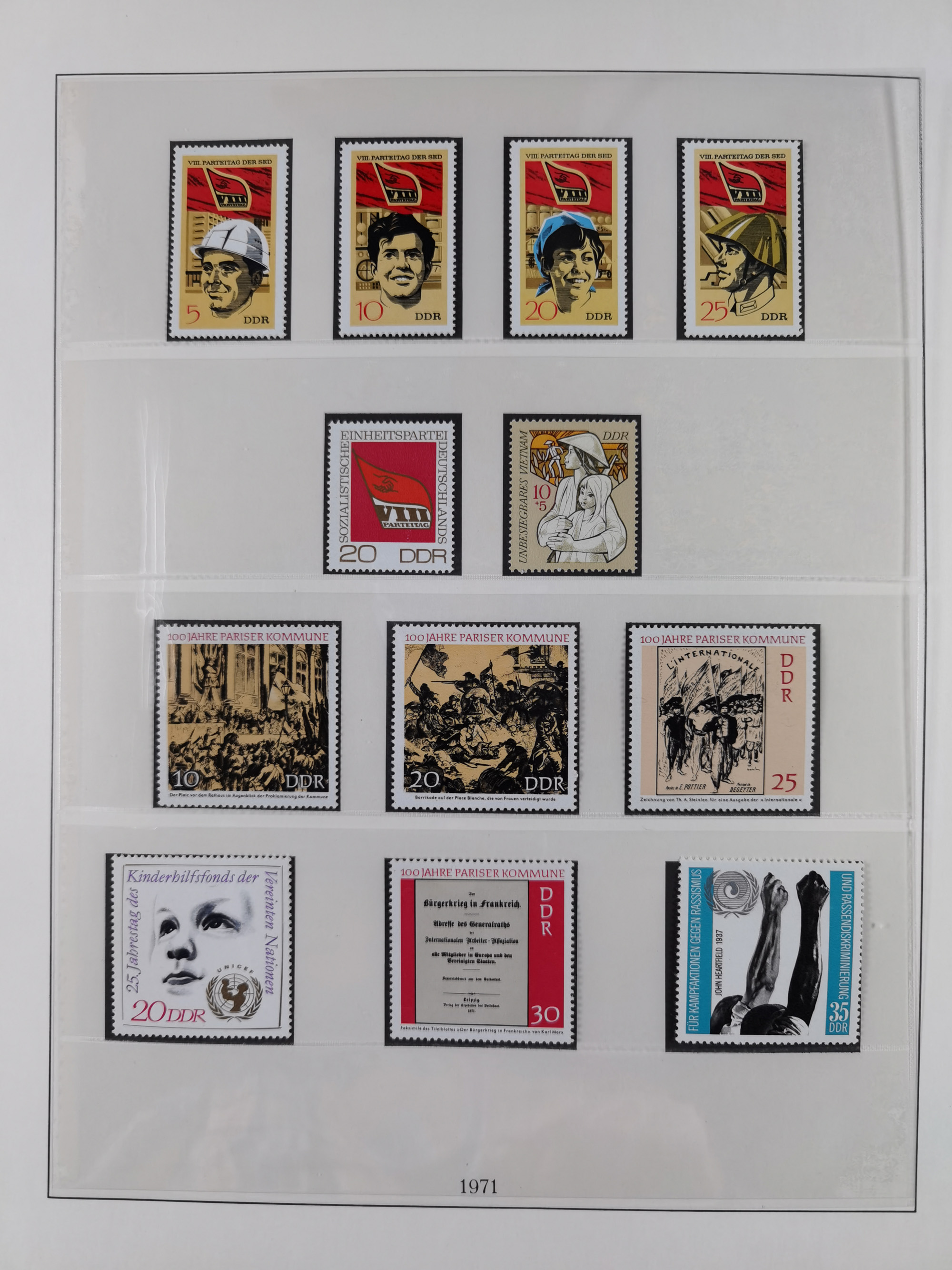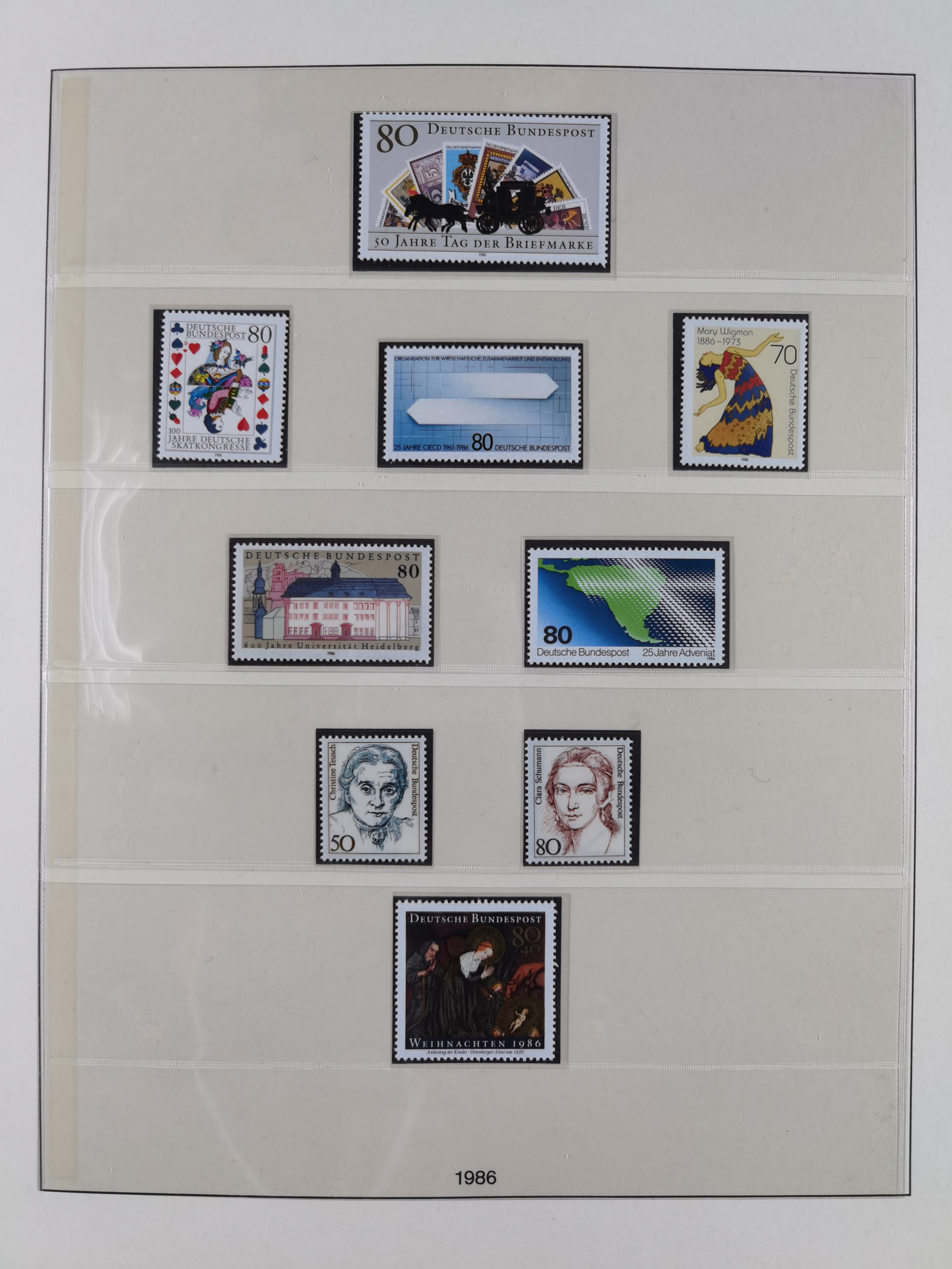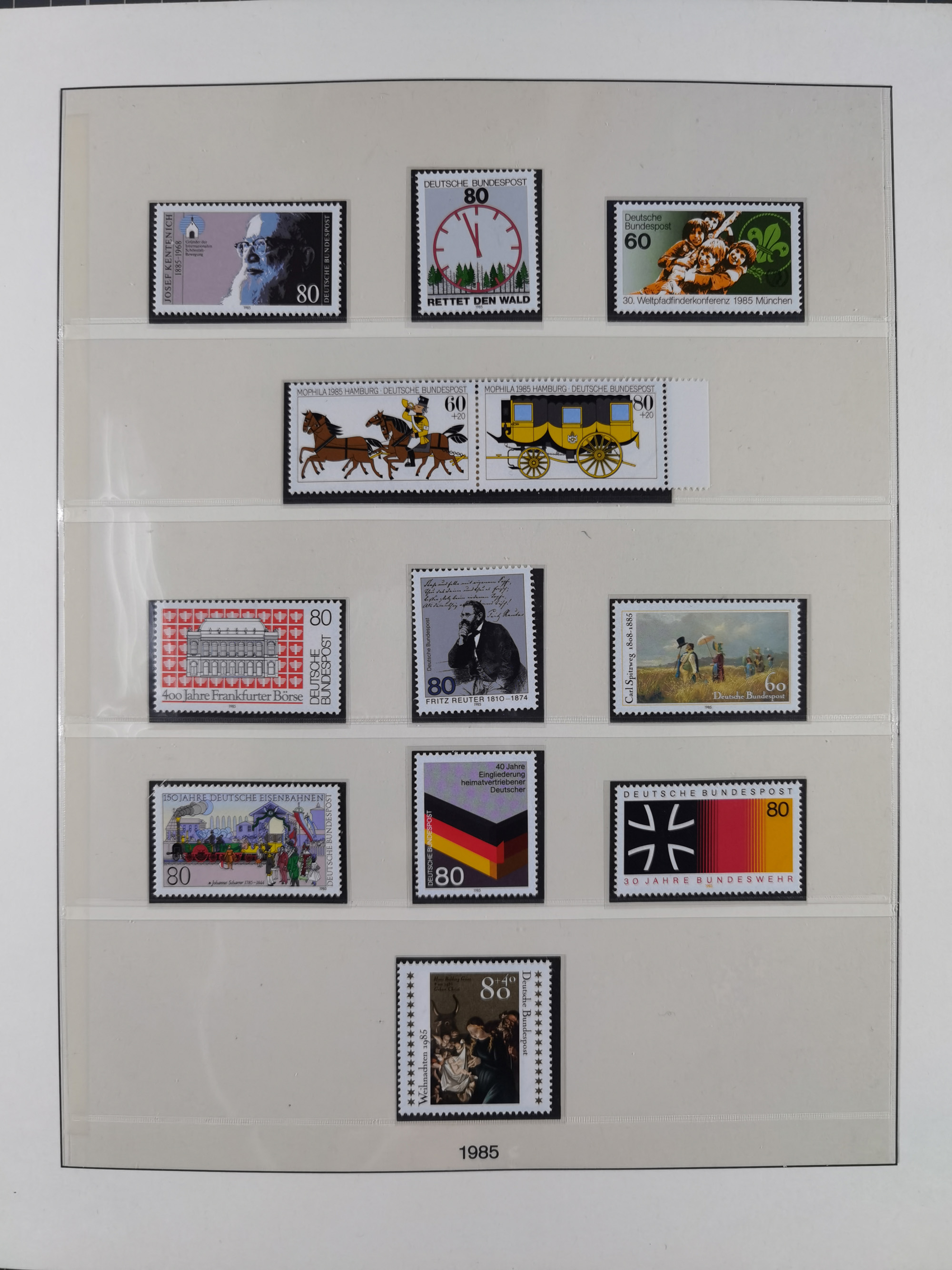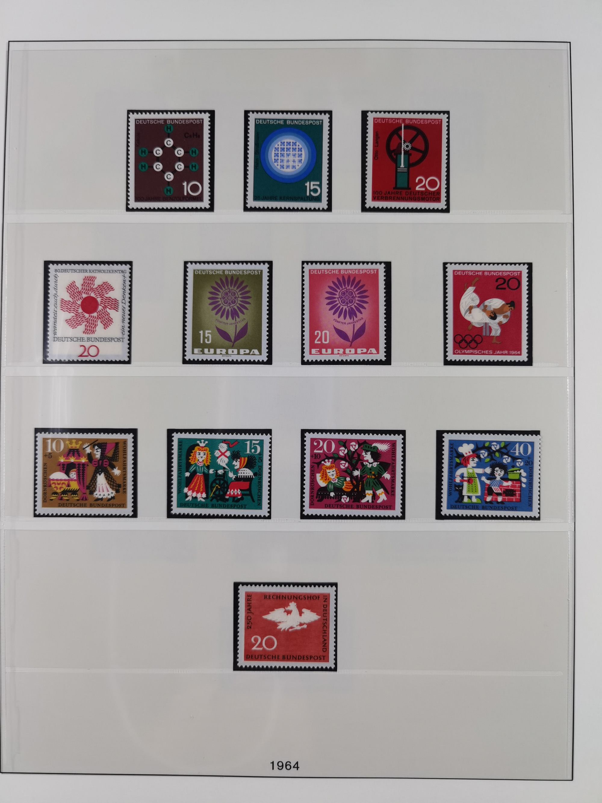 1948/90, in den Hauptnummern bis 1960 komplette postfrische Sammlungen Berlin 1948-90 inkl. Schwarzaufdruck, Rotaufdruck sign. Dub und Block 1, Bundesrepublik 1949-72 inkl. Posthornsatz, sowie DDR 1949-71 inkl. ausgiebigen Teilen Zusammendrucke, es fehlen bei den späten modernen Ausgaben teils einzelne Werte oder Sätze, gute Erhaltung, Alben mit Lagerspuren, in 11 Vordruckalben