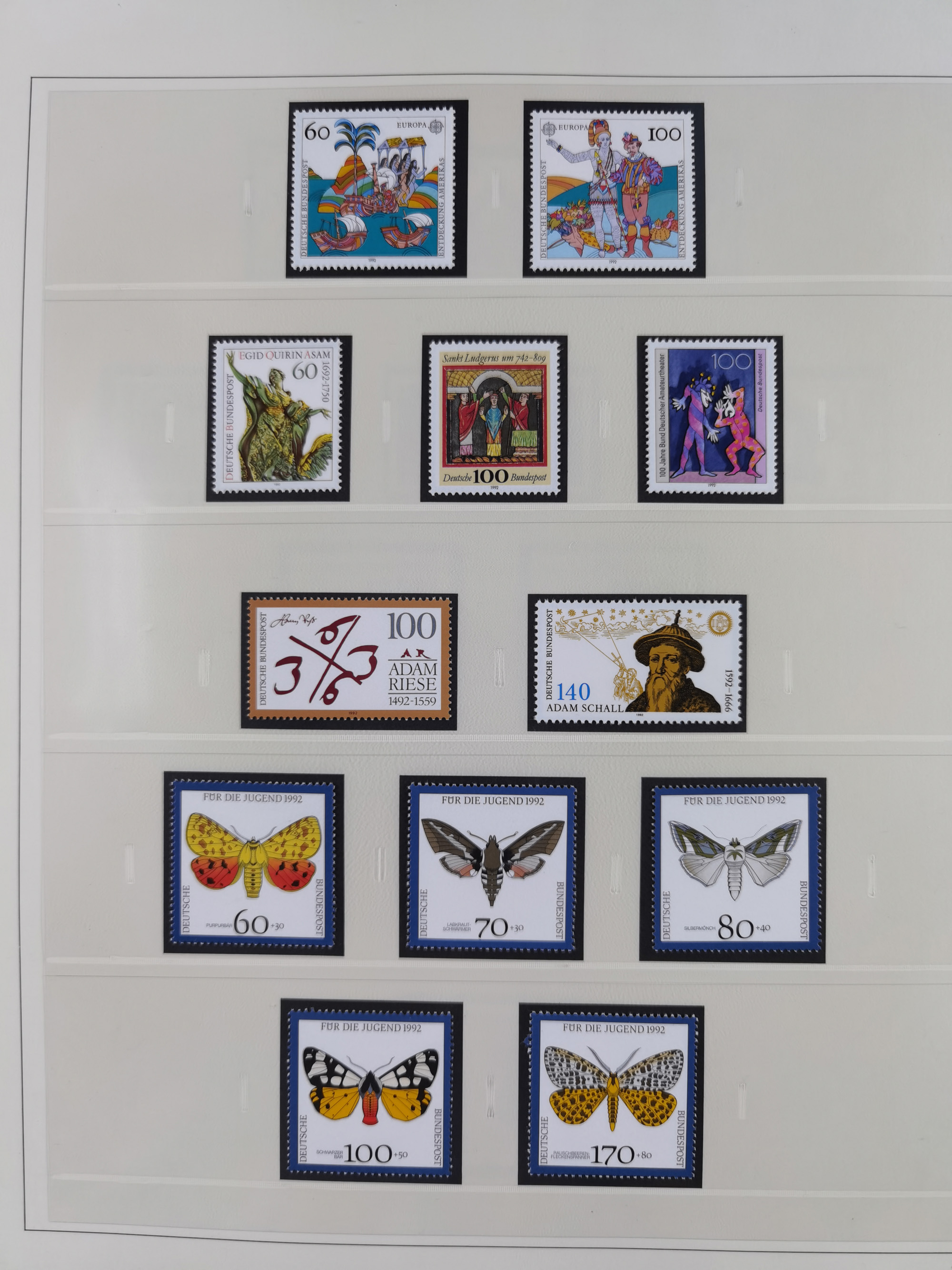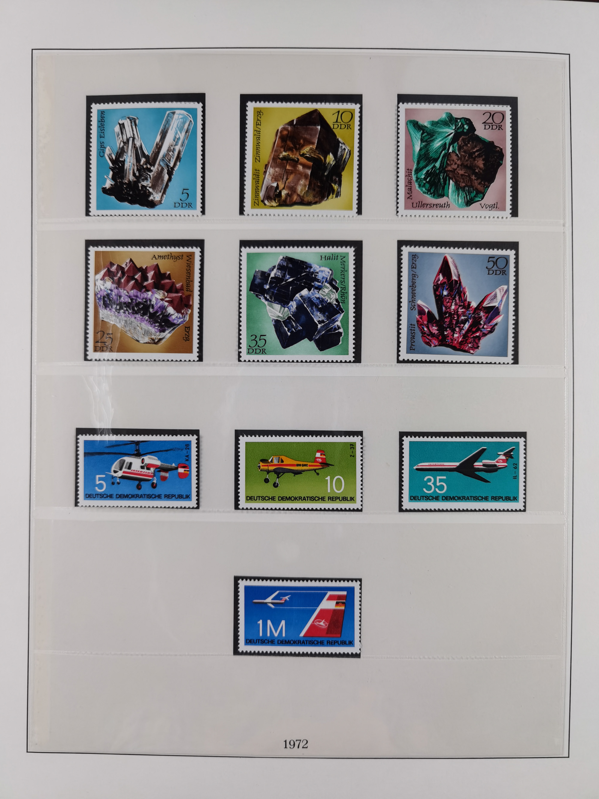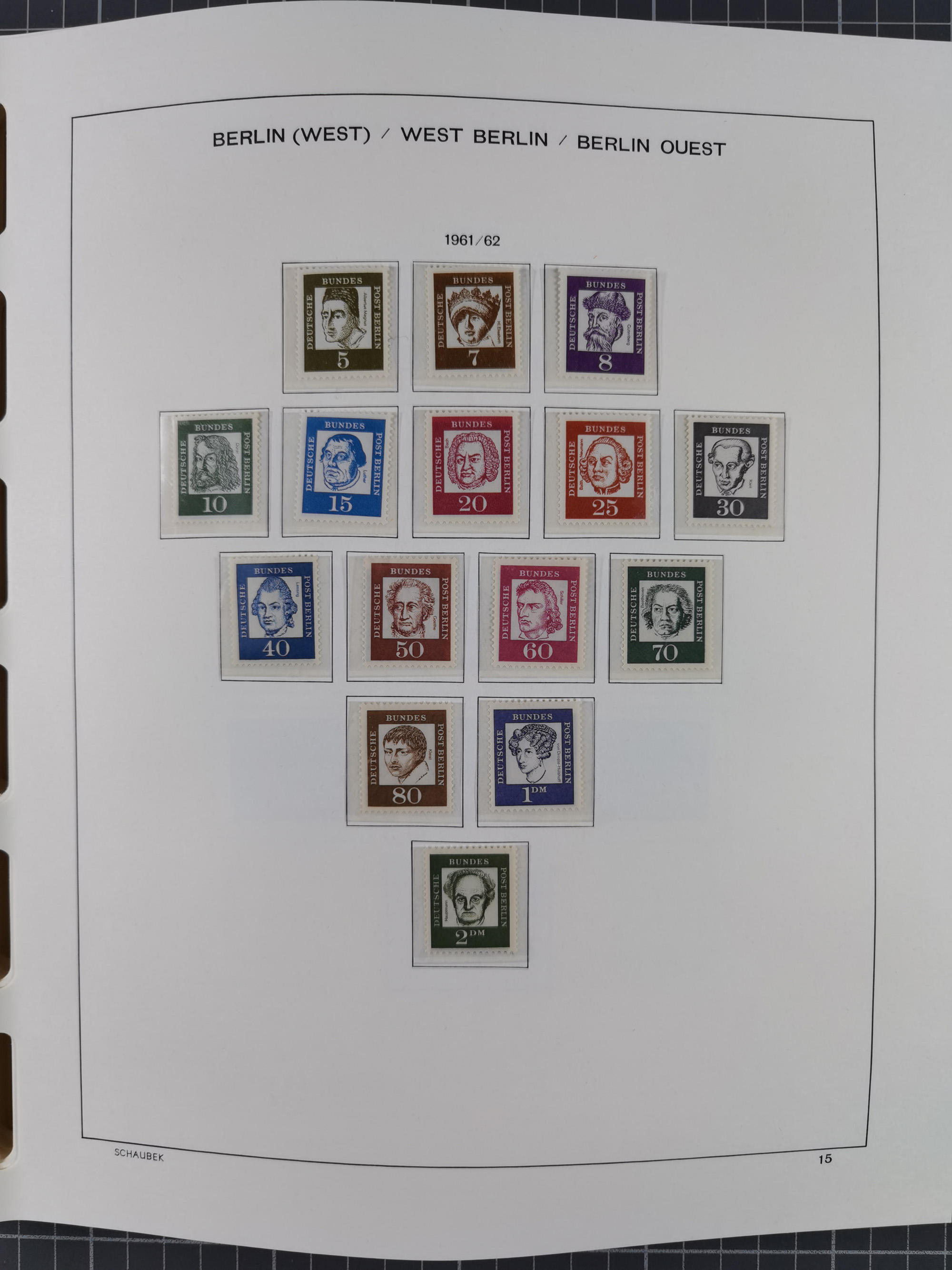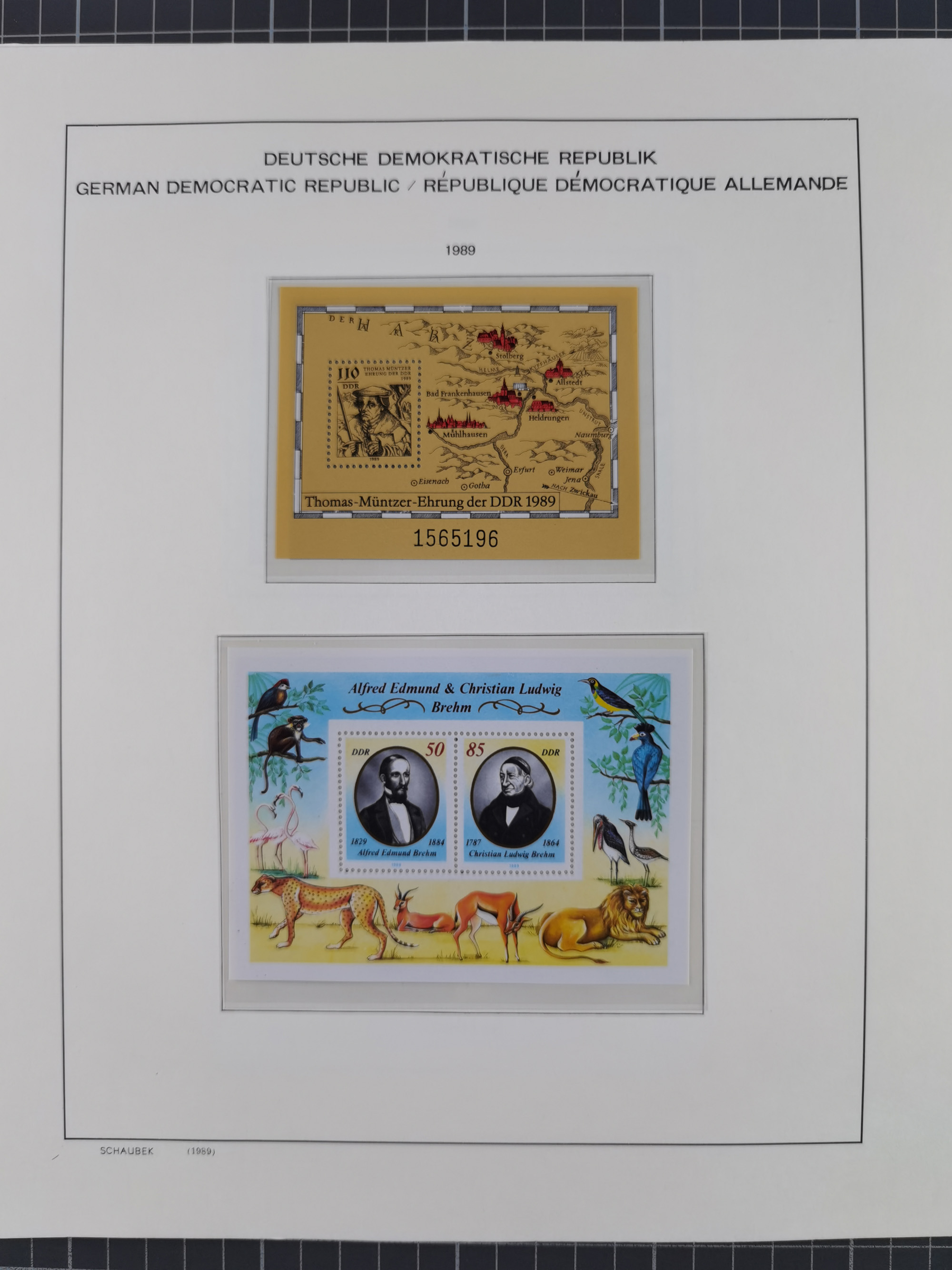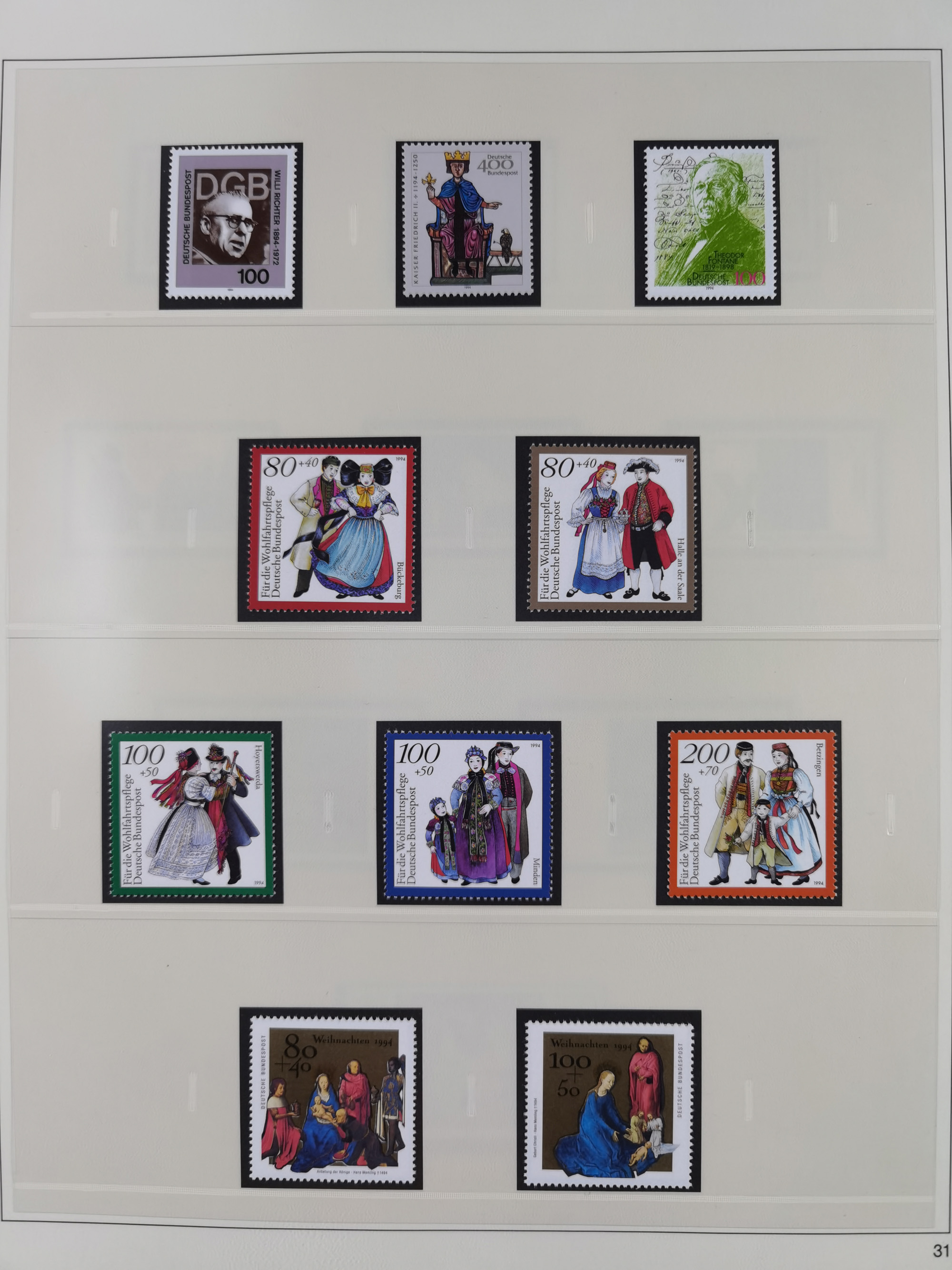 1948/90, in den Hauptnummern bis 1960 komplette postfrische Sammlungen Berlin 1948-90 inkl. Schwarzaufdruck, Rotaufdruck sign. Dub und Block 1, Bundesrepublik 1949-72 inkl. Posthornsatz, sowie DDR 1949-71 inkl. ausgiebigen Teilen Zusammendrucke, es fehlen bei den späten modernen Ausgaben teils einzelne Werte oder Sätze, gute Erhaltung, Alben mit Lagerspuren, in 11 Vordruckalben