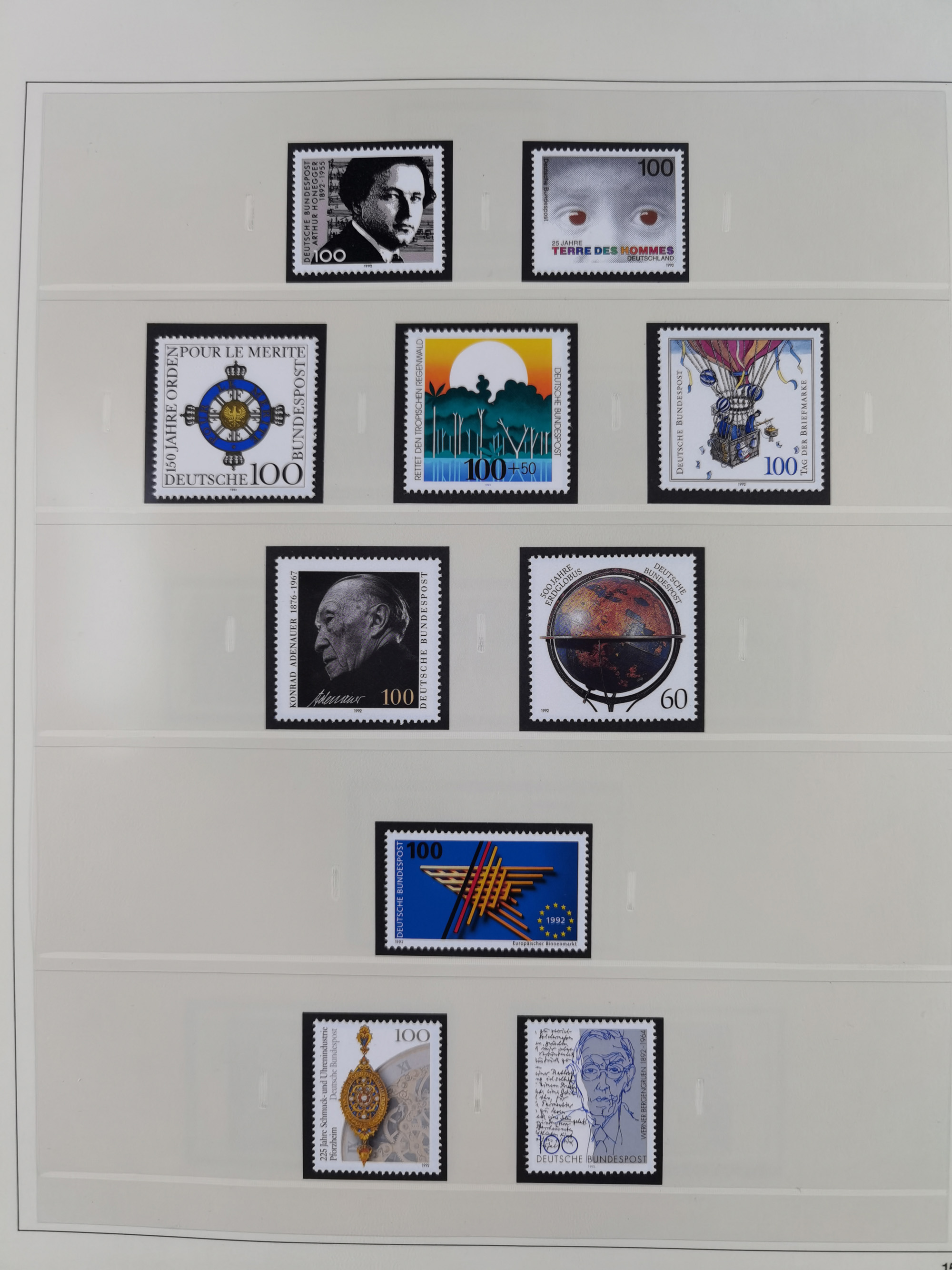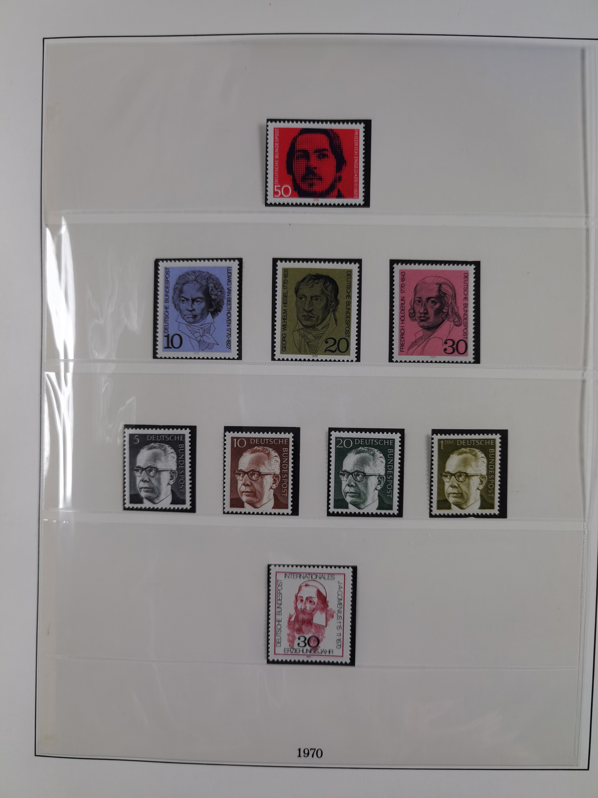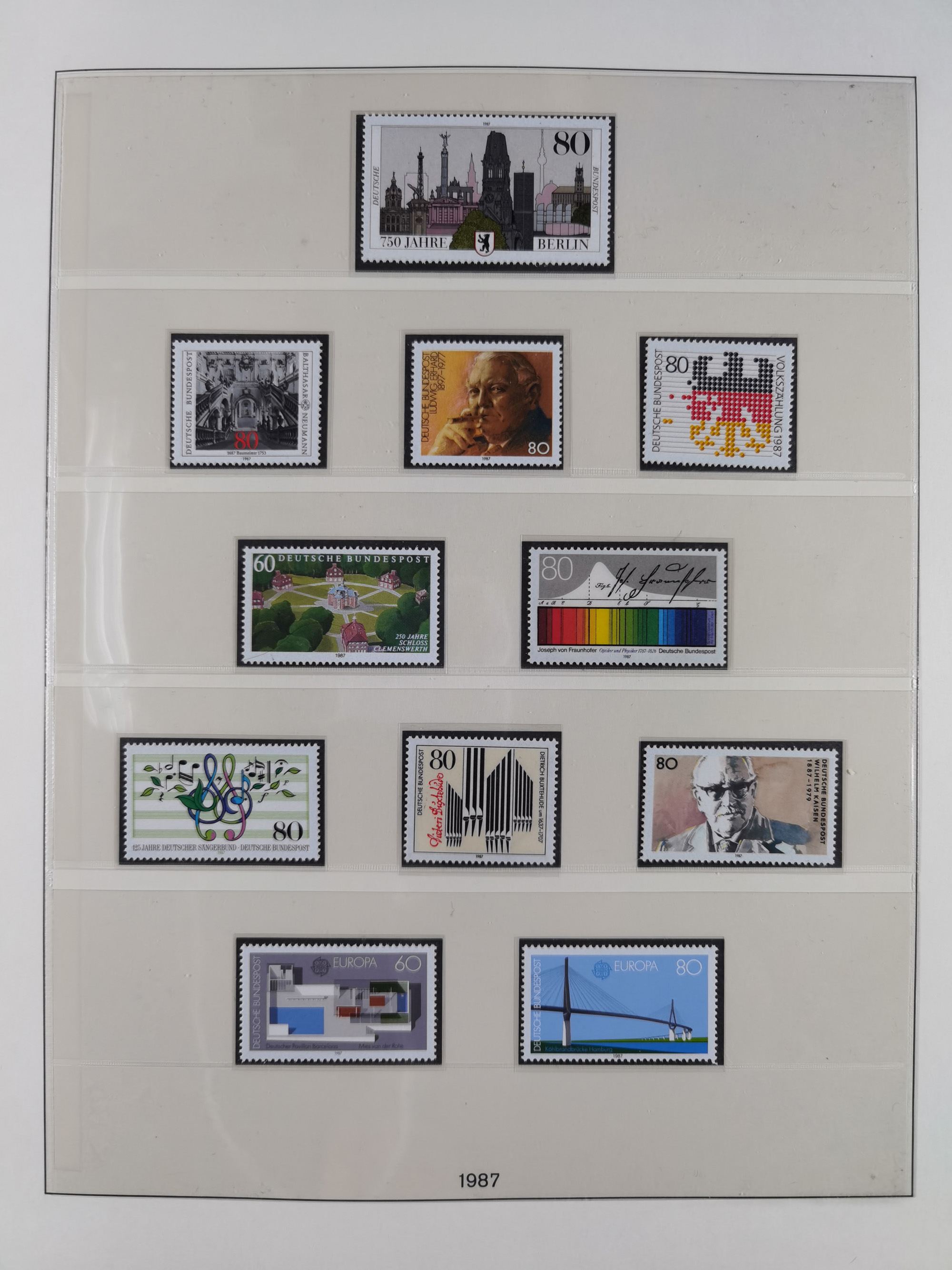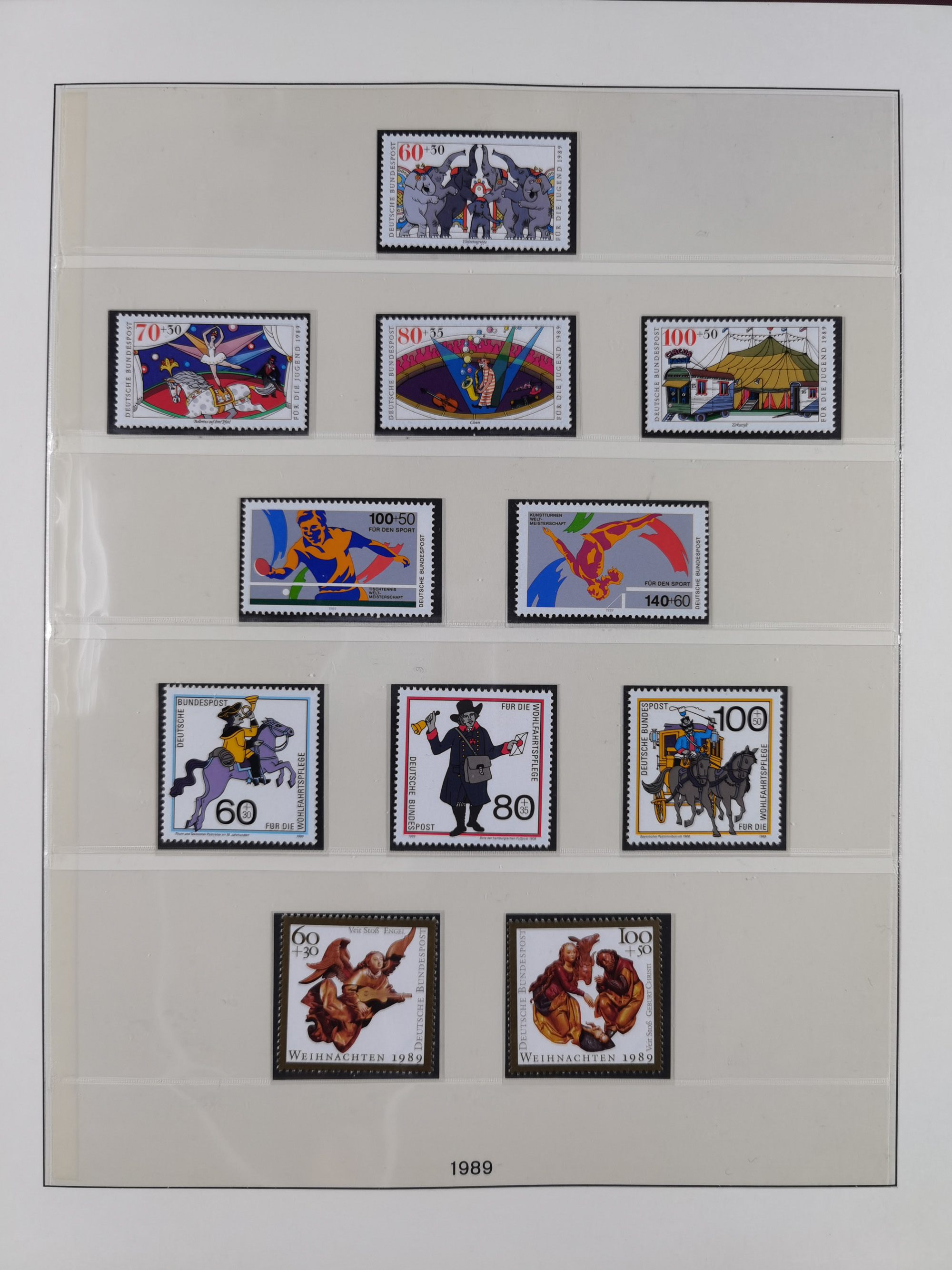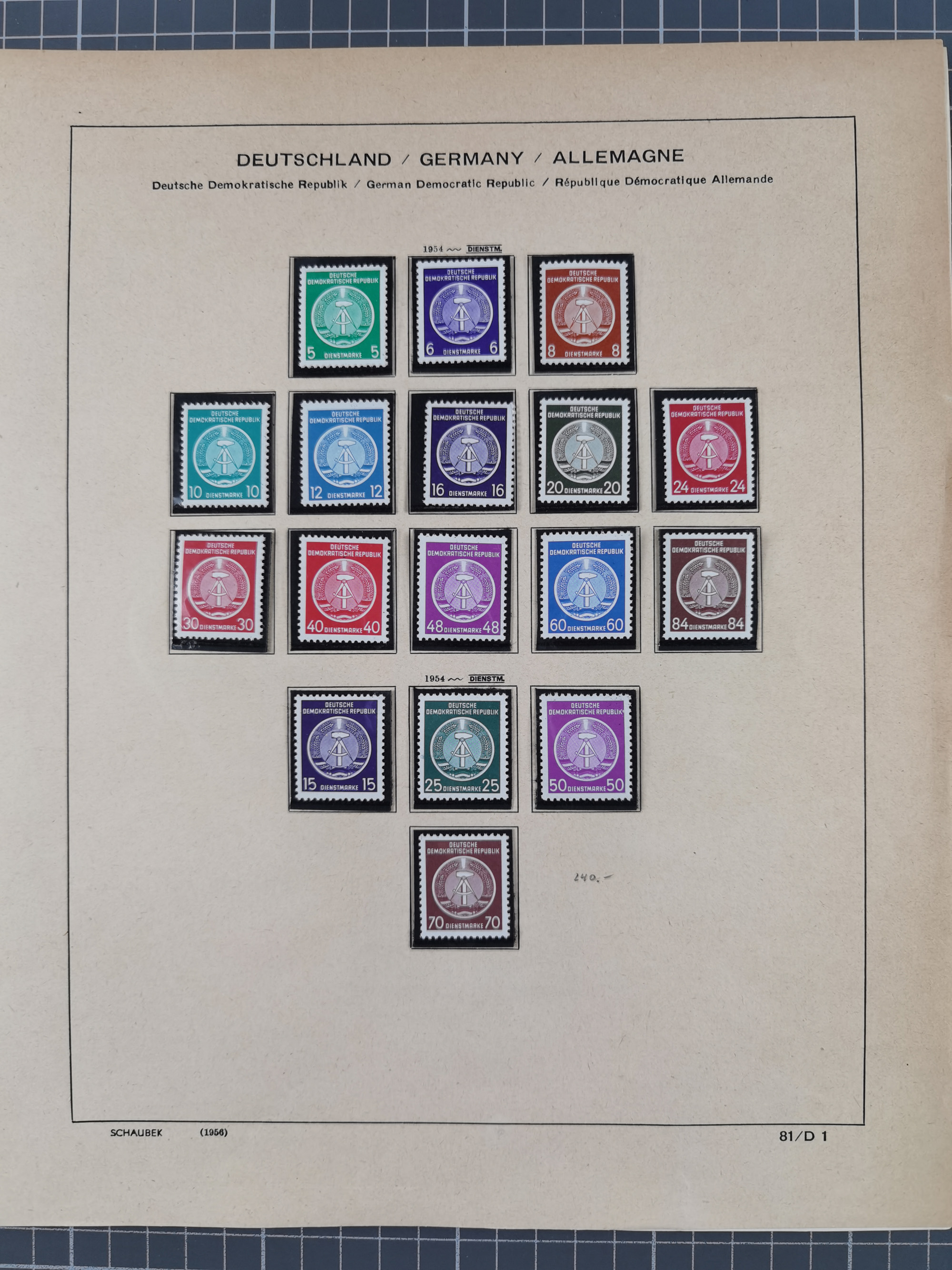1948/90, in den Hauptnummern bis 1960 komplette postfrische Sammlungen Berlin 1948-90 inkl. Schwarzaufdruck, Rotaufdruck sign. Dub und Block 1, Bundesrepublik 1949-72 inkl. Posthornsatz, sowie DDR 1949-71 inkl. ausgiebigen Teilen Zusammendrucke, es fehlen bei den späten modernen Ausgaben teils einzelne Werte oder Sätze, gute Erhaltung, Alben mit Lagerspuren, in 11 Vordruckalben