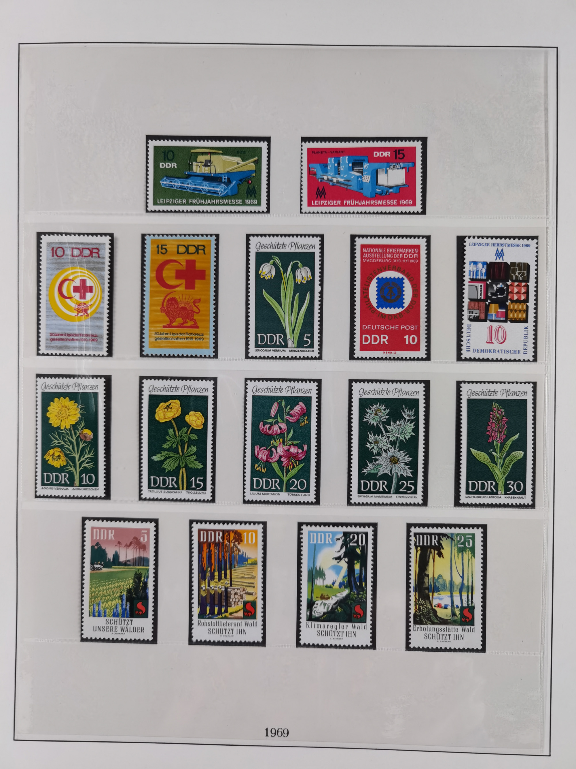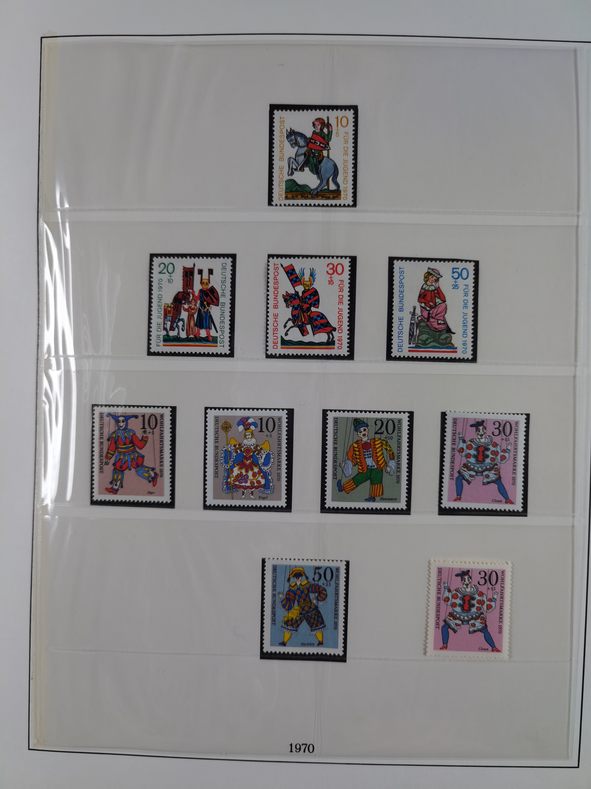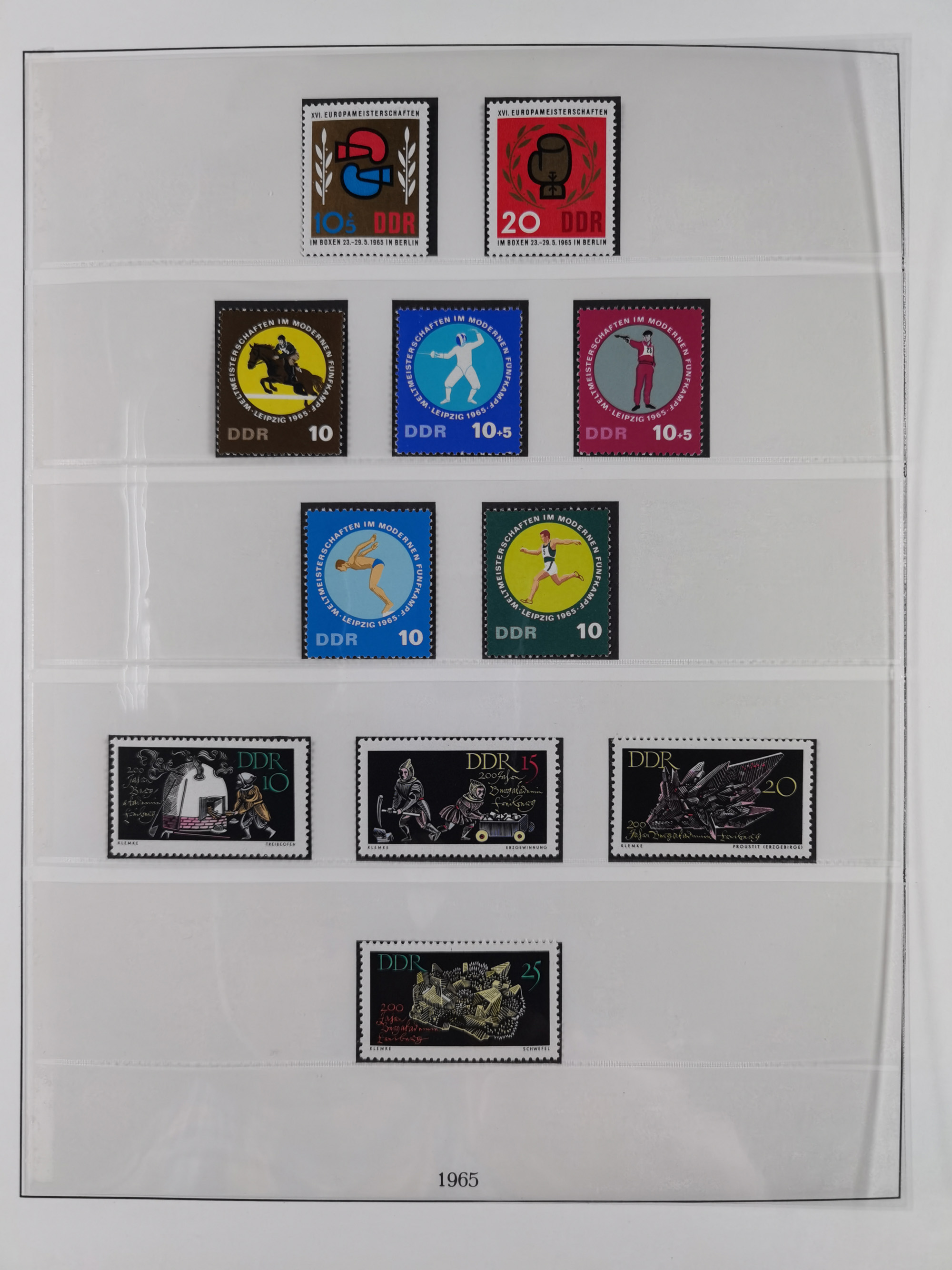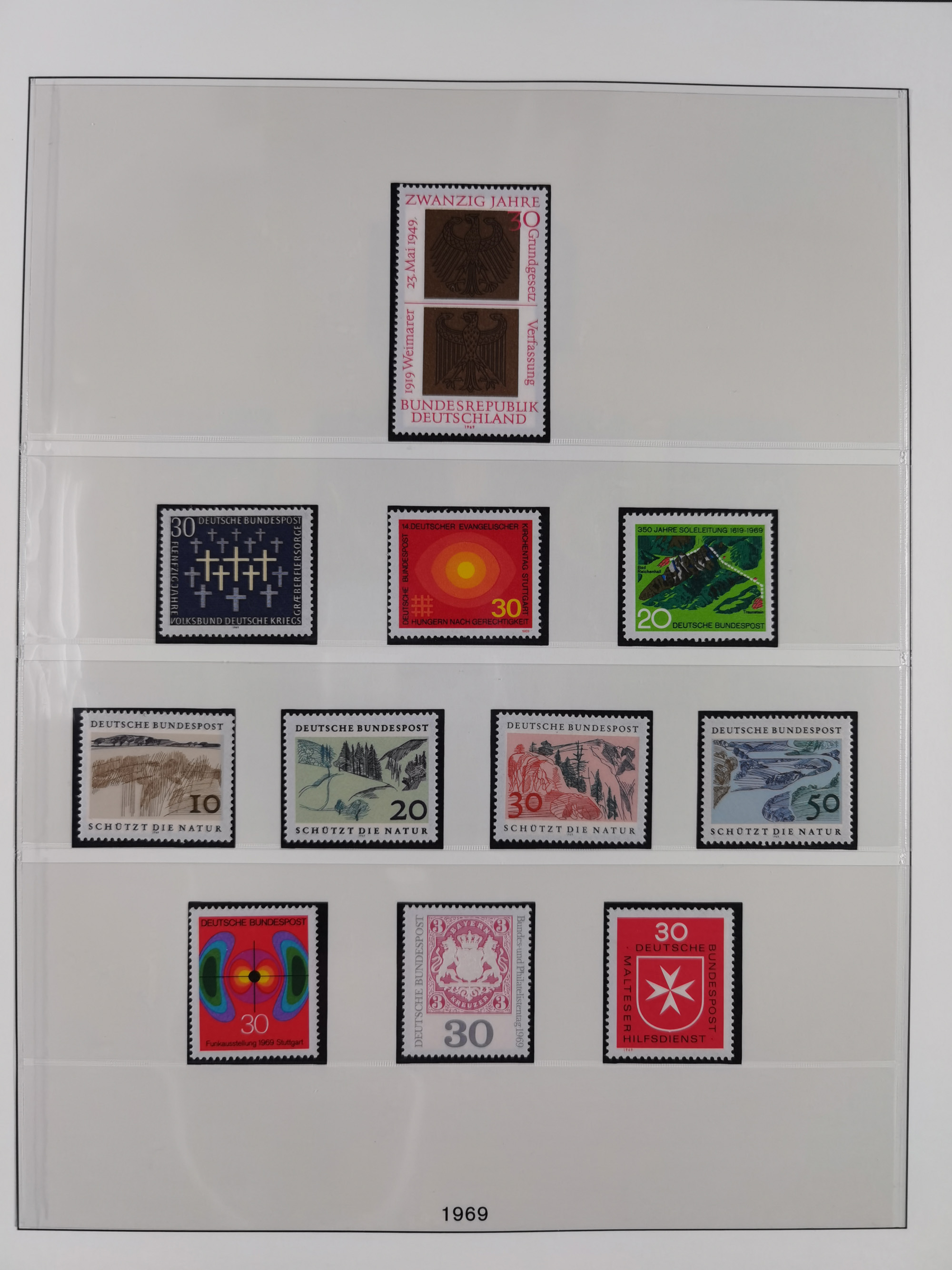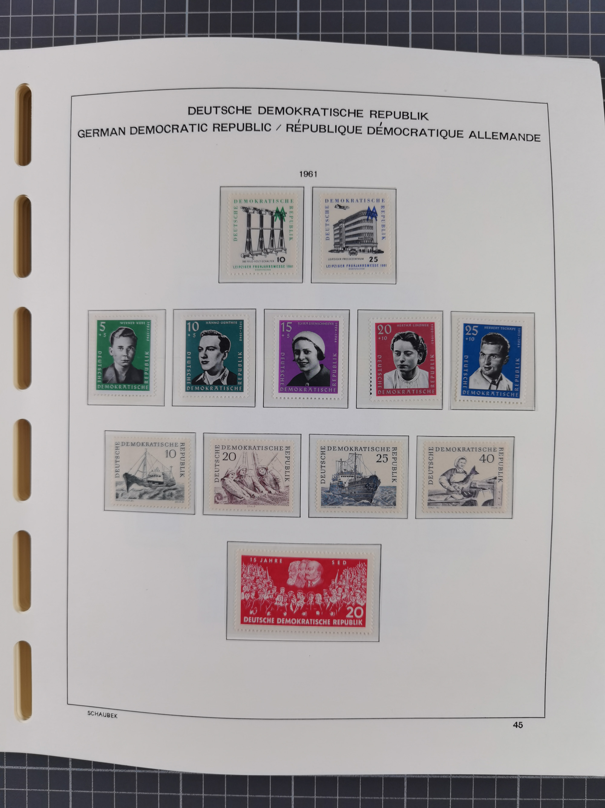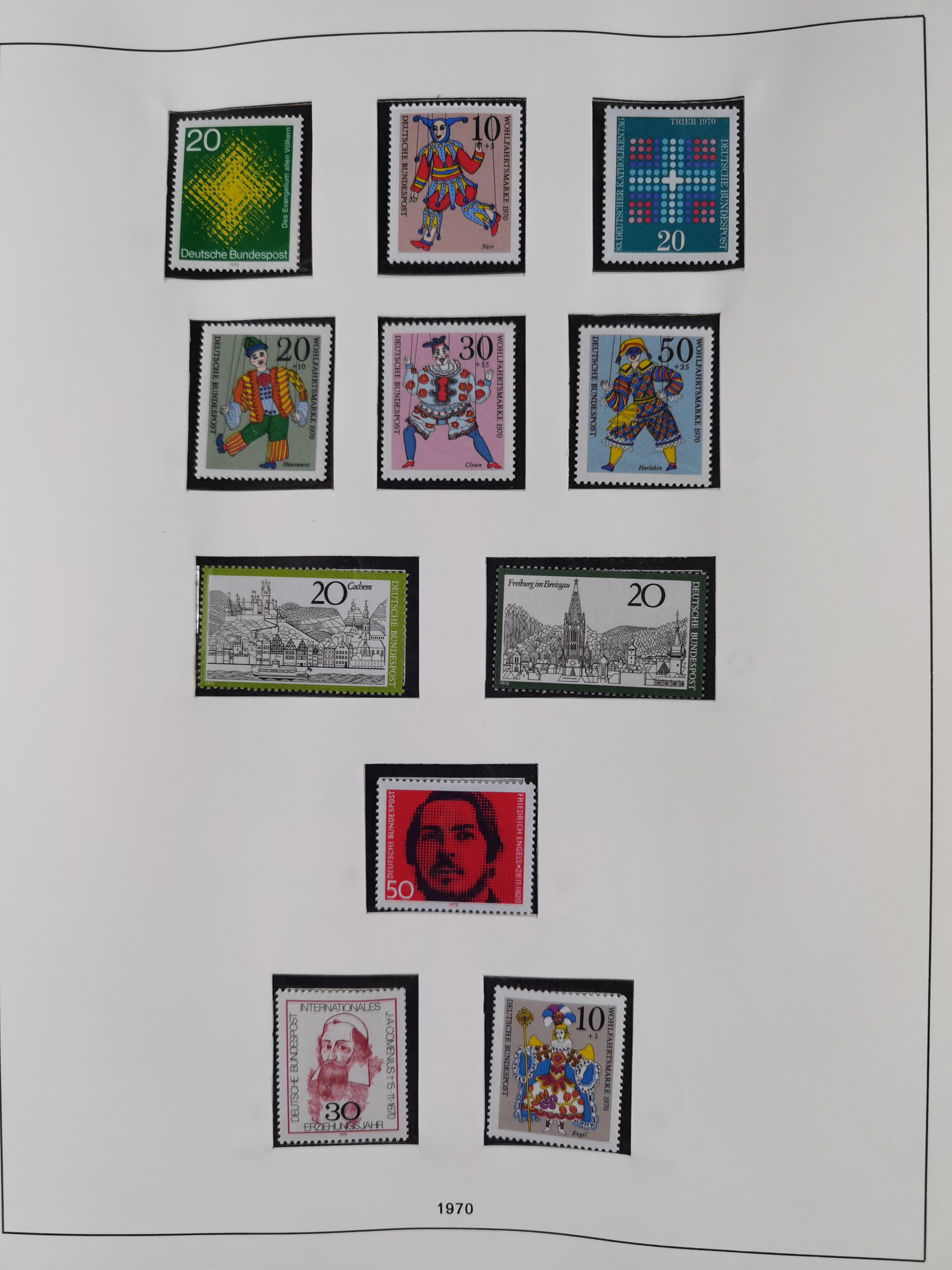 1948/90, in den Hauptnummern bis 1960 komplette postfrische Sammlungen Berlin 1948-90 inkl. Schwarzaufdruck, Rotaufdruck sign. Dub und Block 1, Bundesrepublik 1949-72 inkl. Posthornsatz, sowie DDR 1949-71 inkl. ausgiebigen Teilen Zusammendrucke, es fehlen bei den späten modernen Ausgaben teils einzelne Werte oder Sätze, gute Erhaltung, Alben mit Lagerspuren, in 11 Vordruckalben