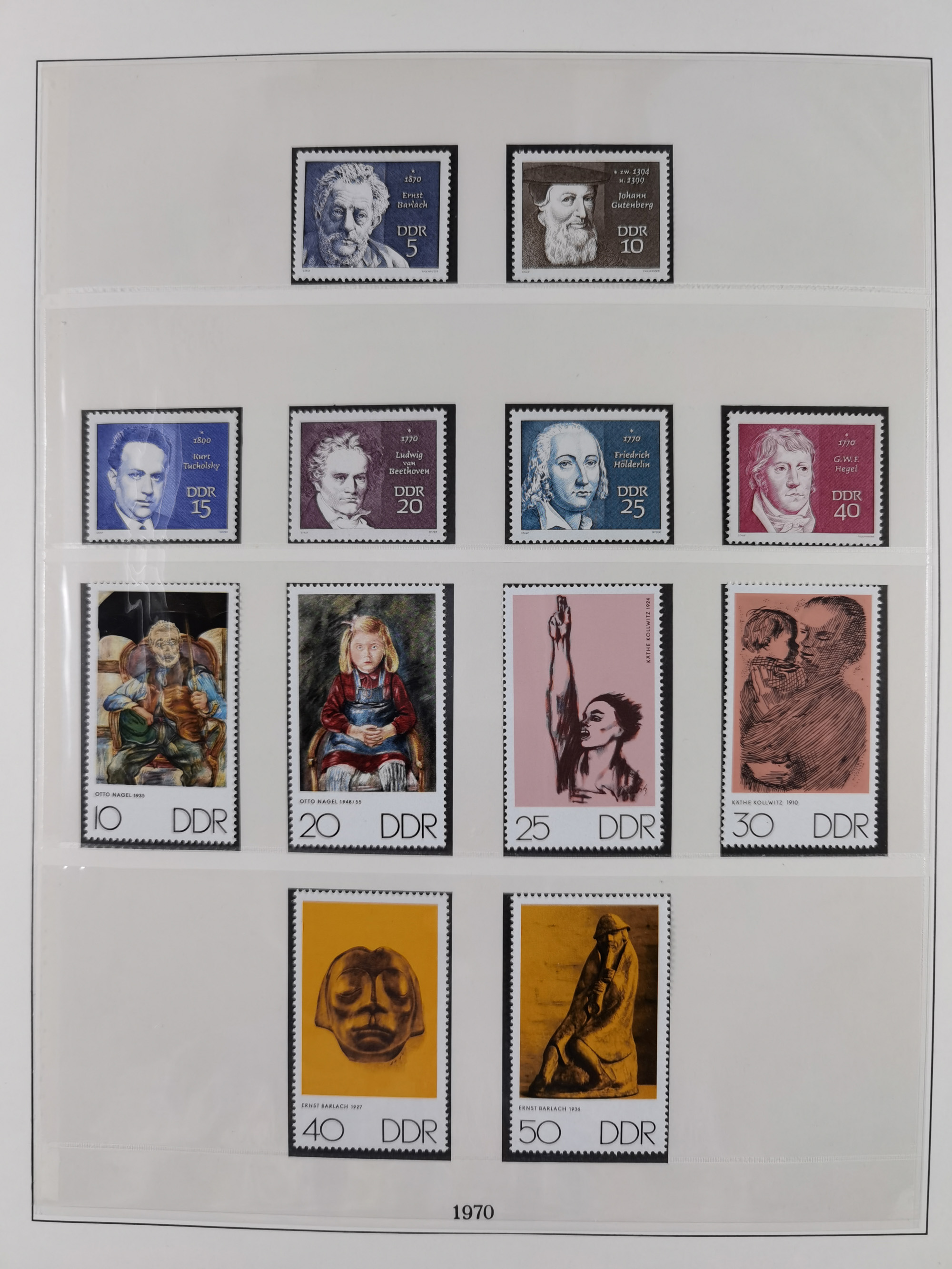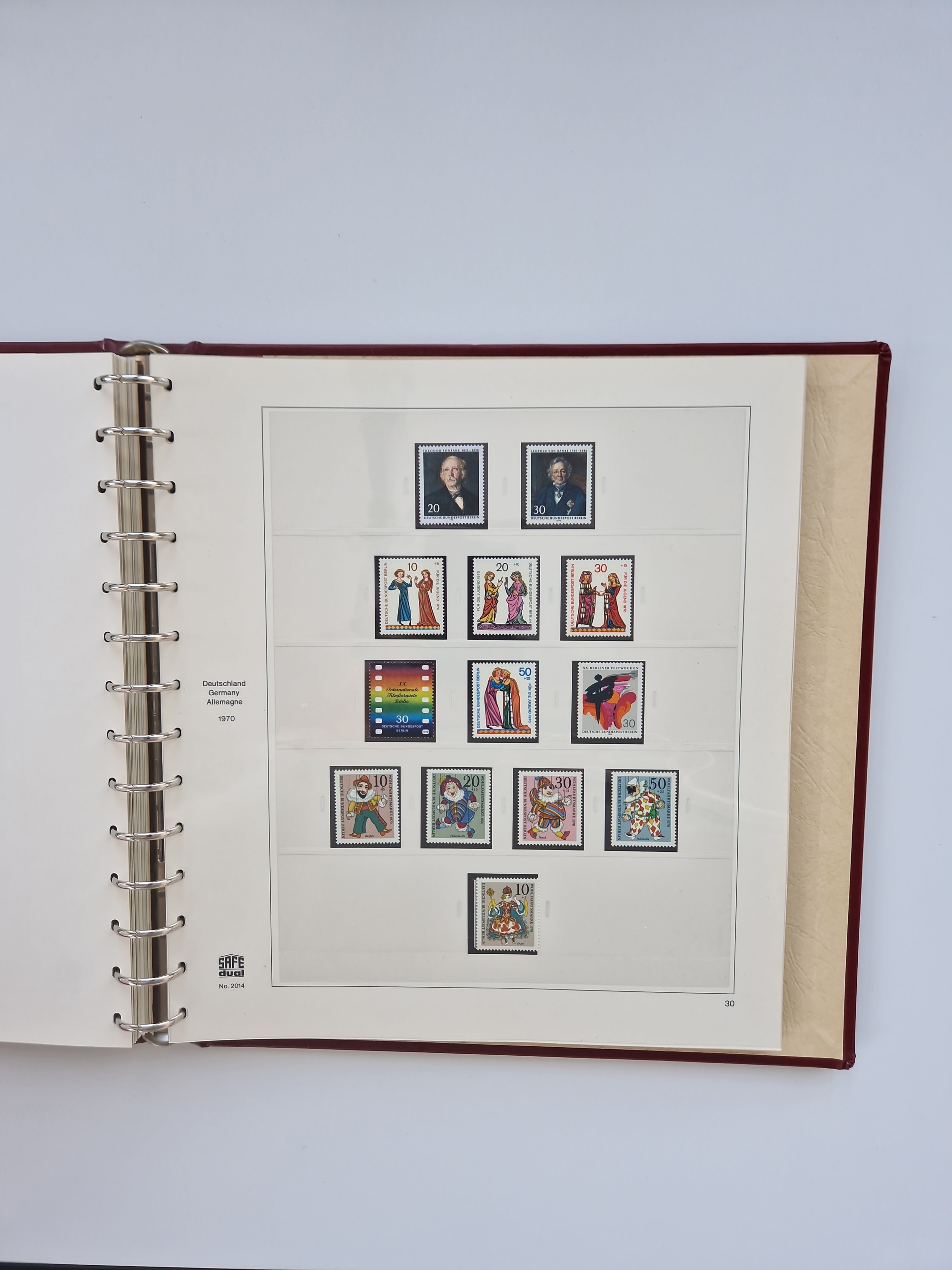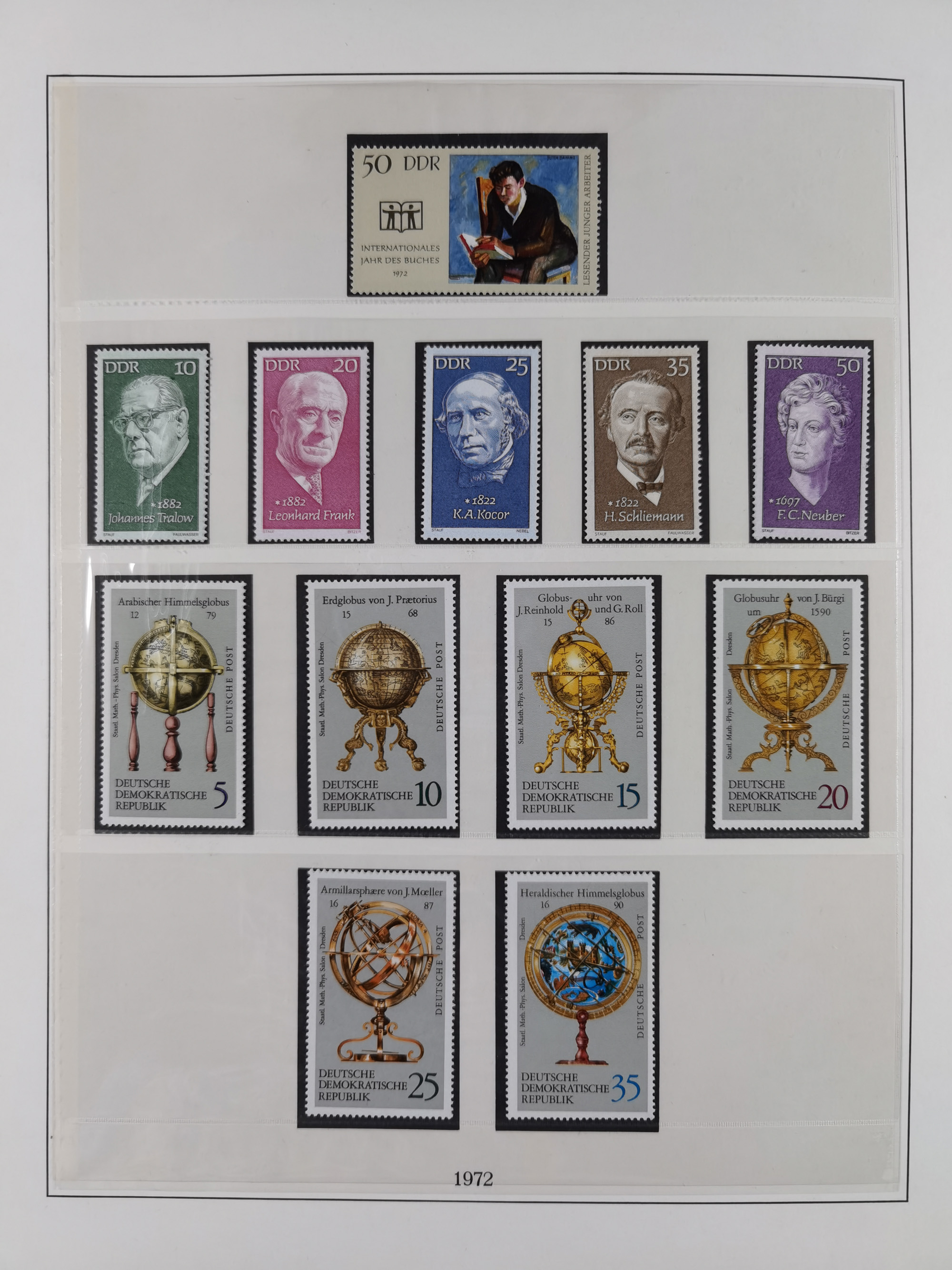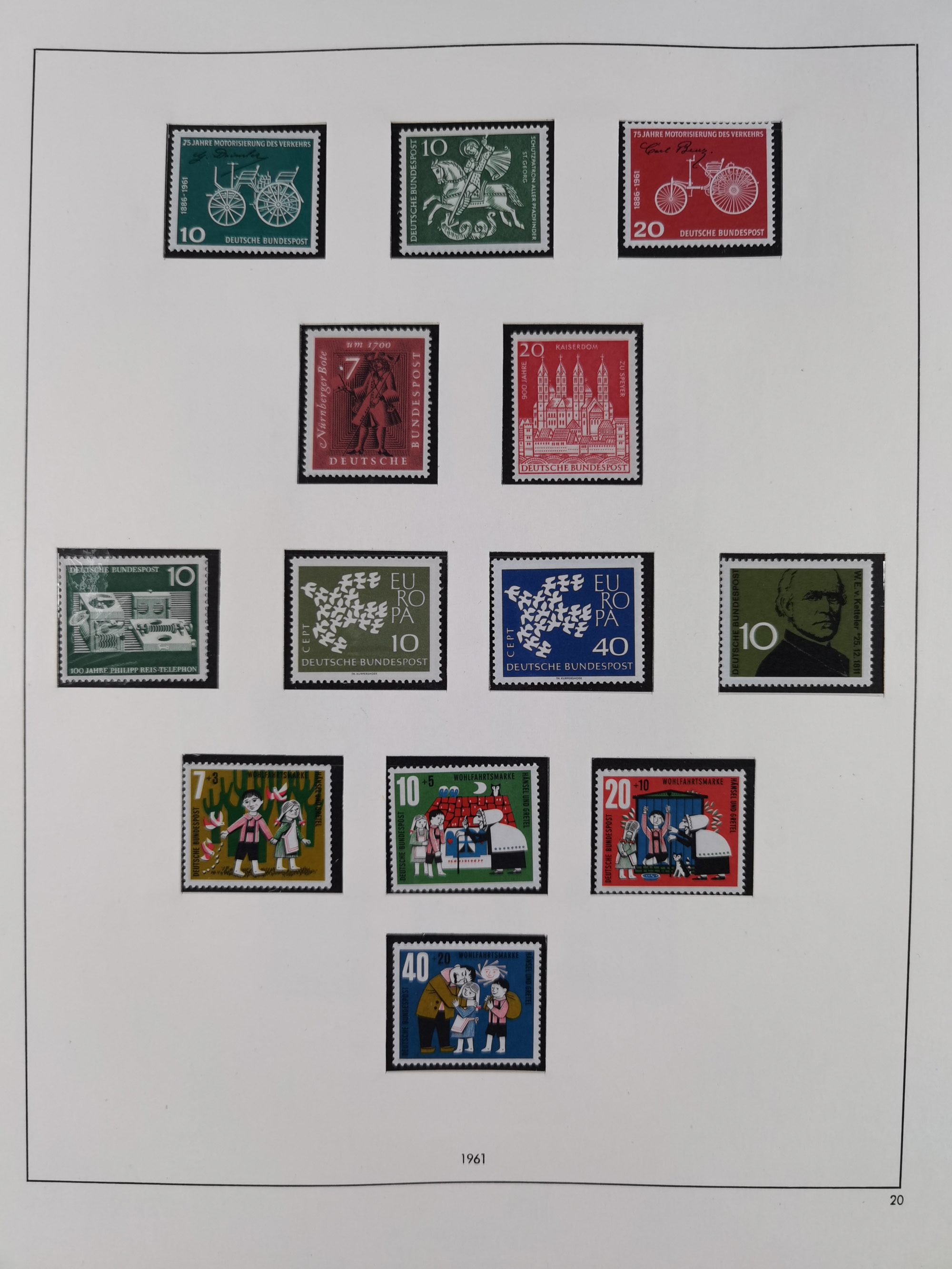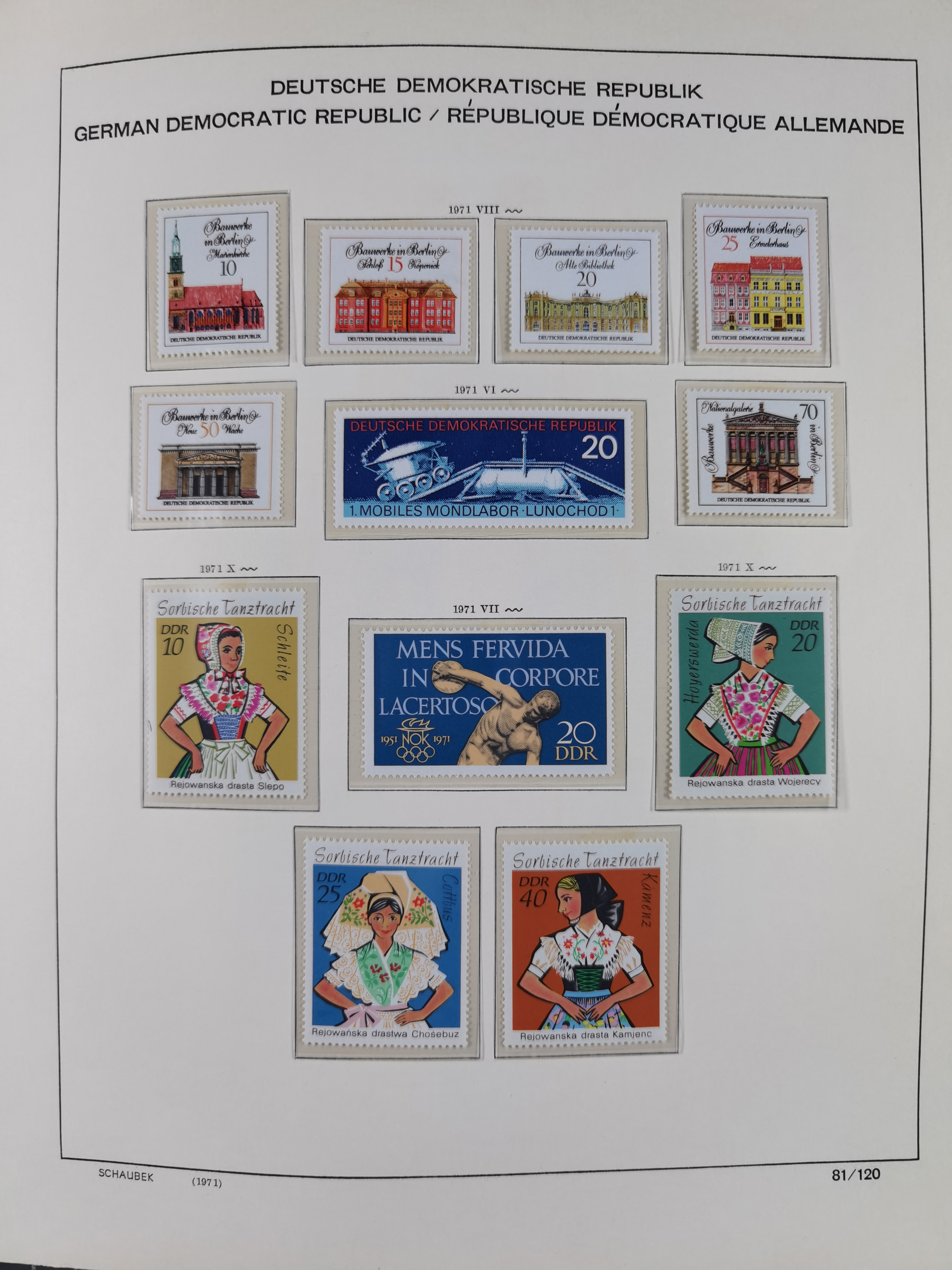 1948/90, in den Hauptnummern bis 1960 komplette postfrische Sammlungen Berlin 1948-90 inkl. Schwarzaufdruck, Rotaufdruck sign. Dub und Block 1, Bundesrepublik 1949-72 inkl. Posthornsatz, sowie DDR 1949-71 inkl. ausgiebigen Teilen Zusammendrucke, es fehlen bei den späten modernen Ausgaben teils einzelne Werte oder Sätze, gute Erhaltung, Alben mit Lagerspuren, in 11 Vordruckalben