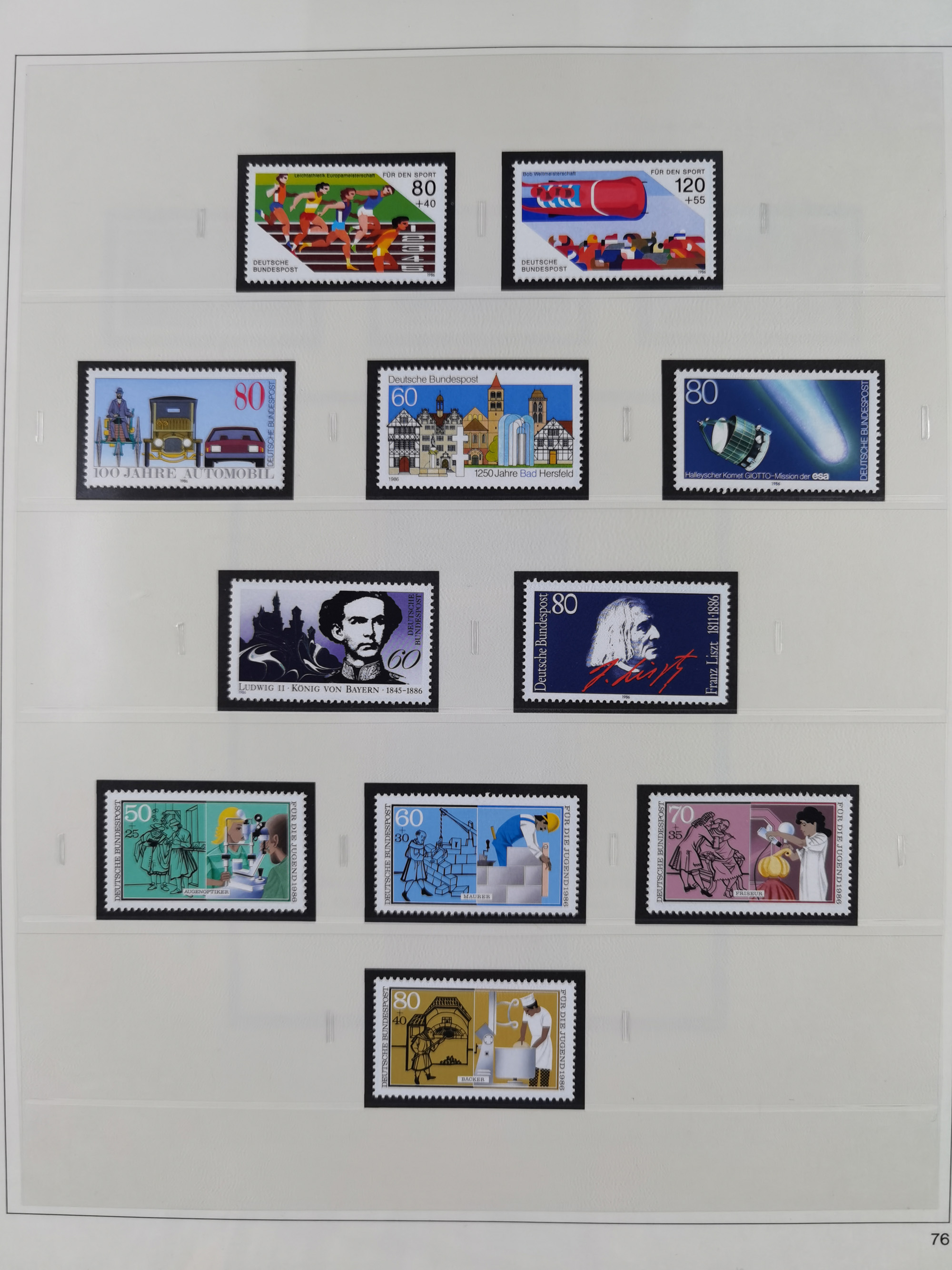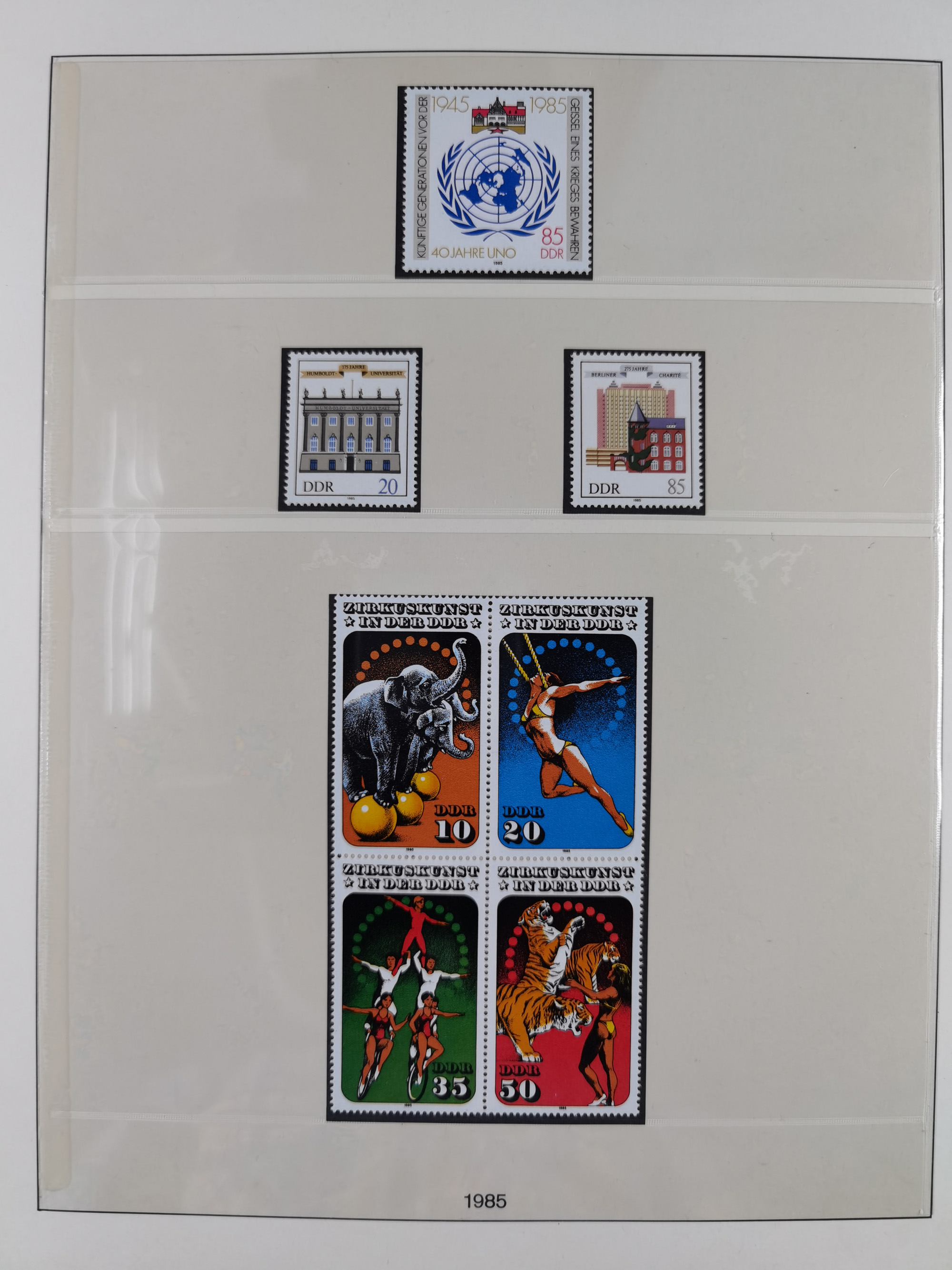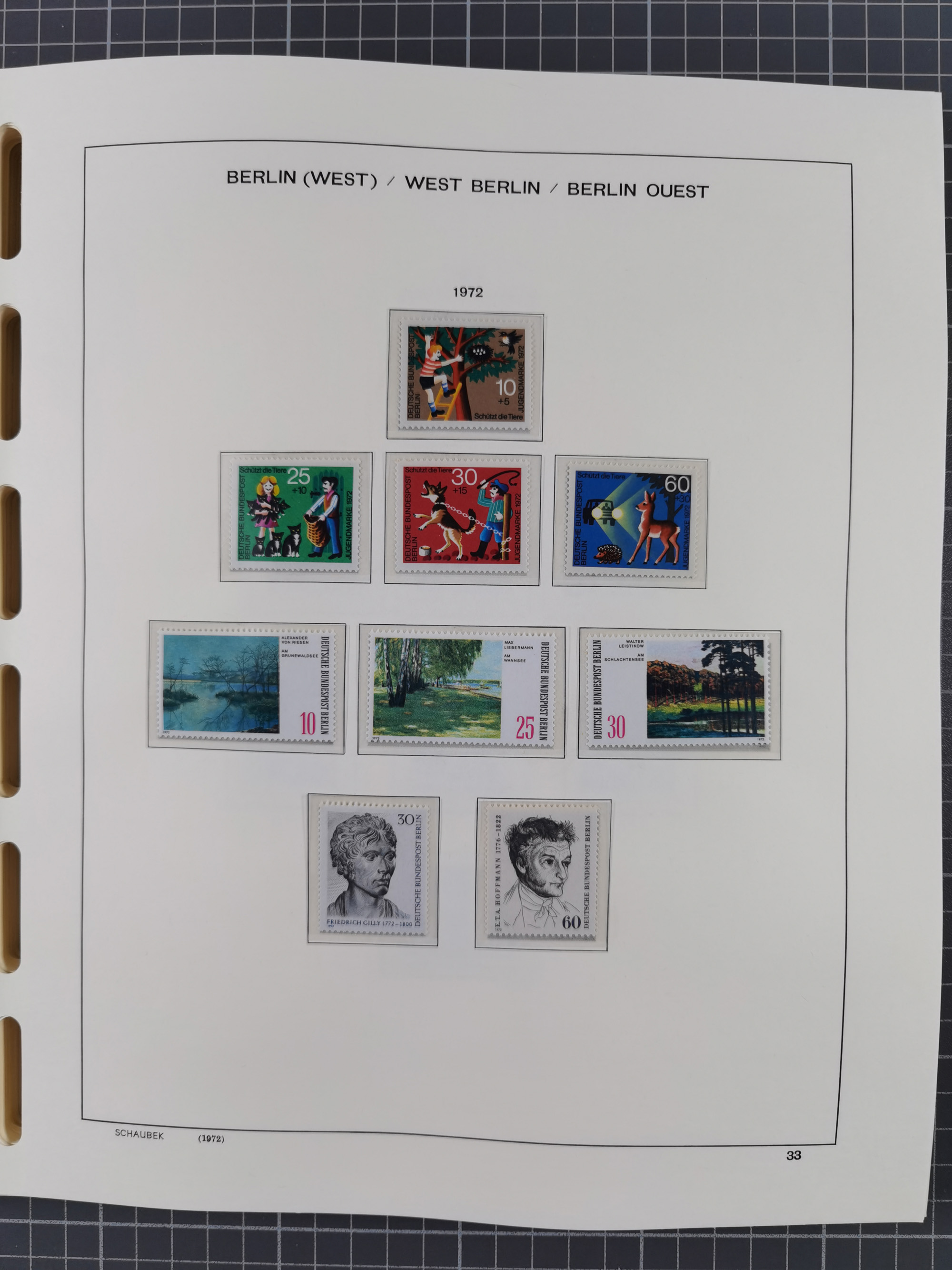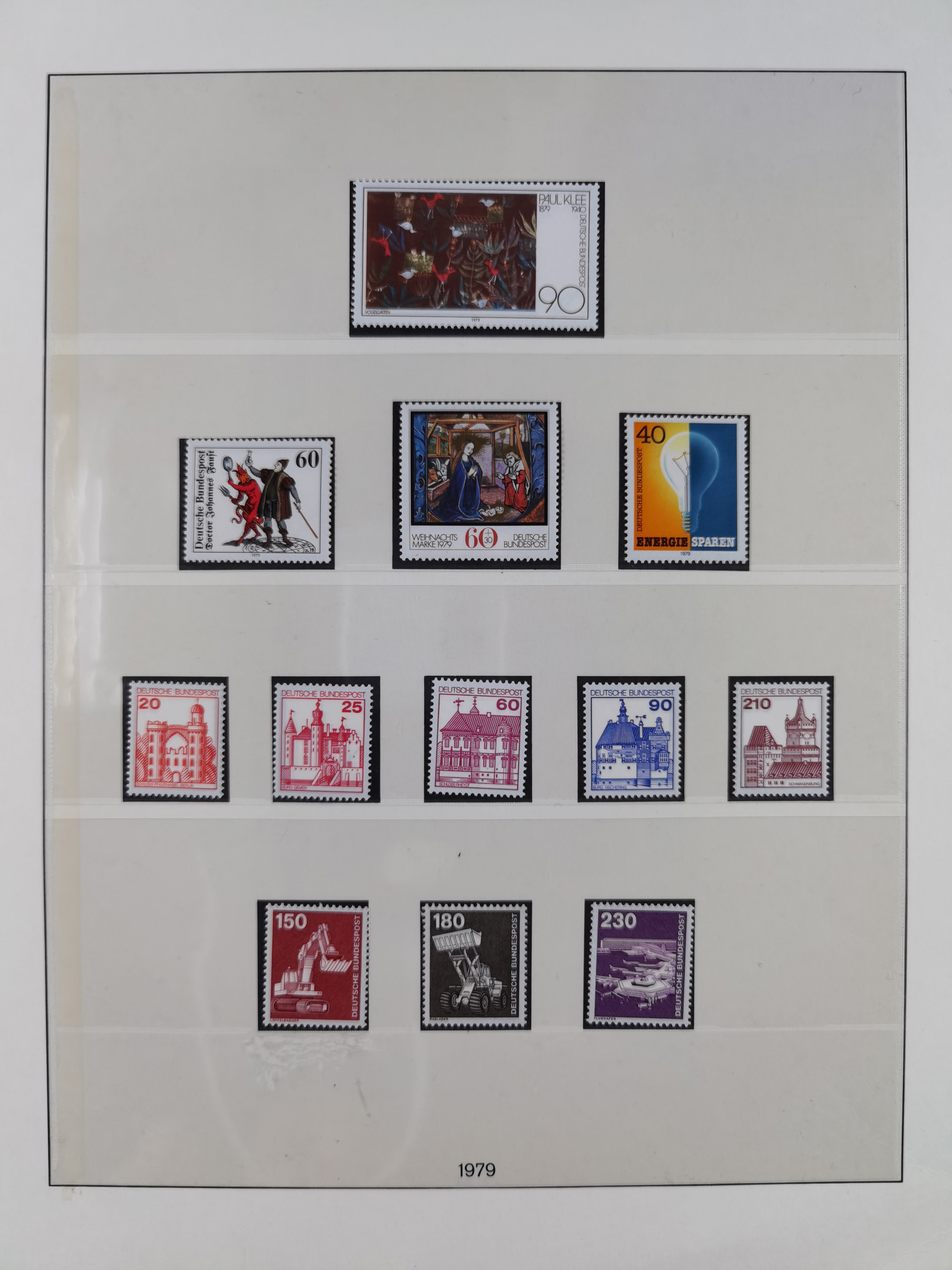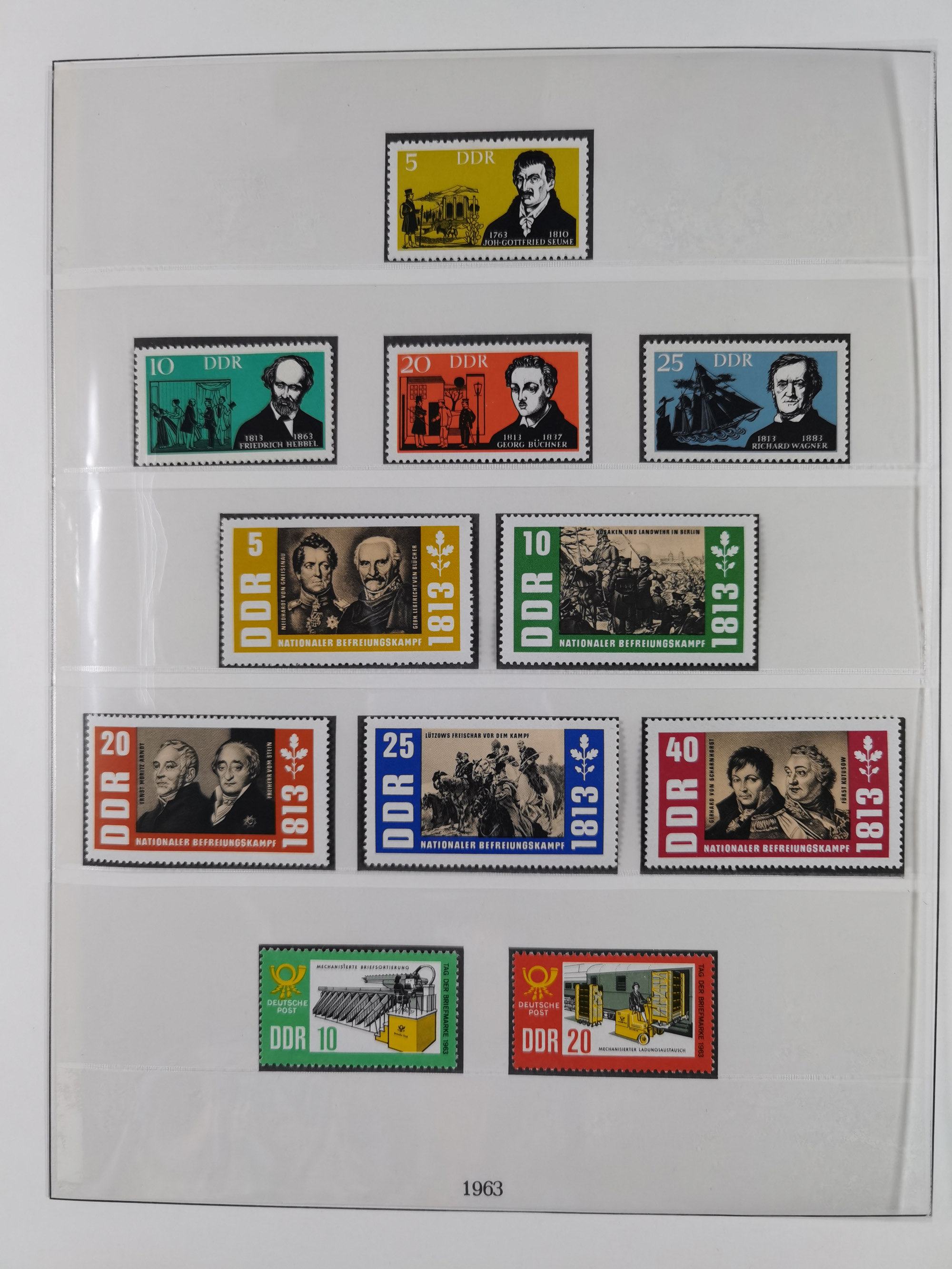 1948/90, in den Hauptnummern bis 1960 komplette postfrische Sammlungen Berlin 1948-90 inkl. Schwarzaufdruck, Rotaufdruck sign. Dub und Block 1, Bundesrepublik 1949-72 inkl. Posthornsatz, sowie DDR 1949-71 inkl. ausgiebigen Teilen Zusammendrucke, es fehlen bei den späten modernen Ausgaben teils einzelne Werte oder Sätze, gute Erhaltung, Alben mit Lagerspuren, in 11 Vordruckalben
