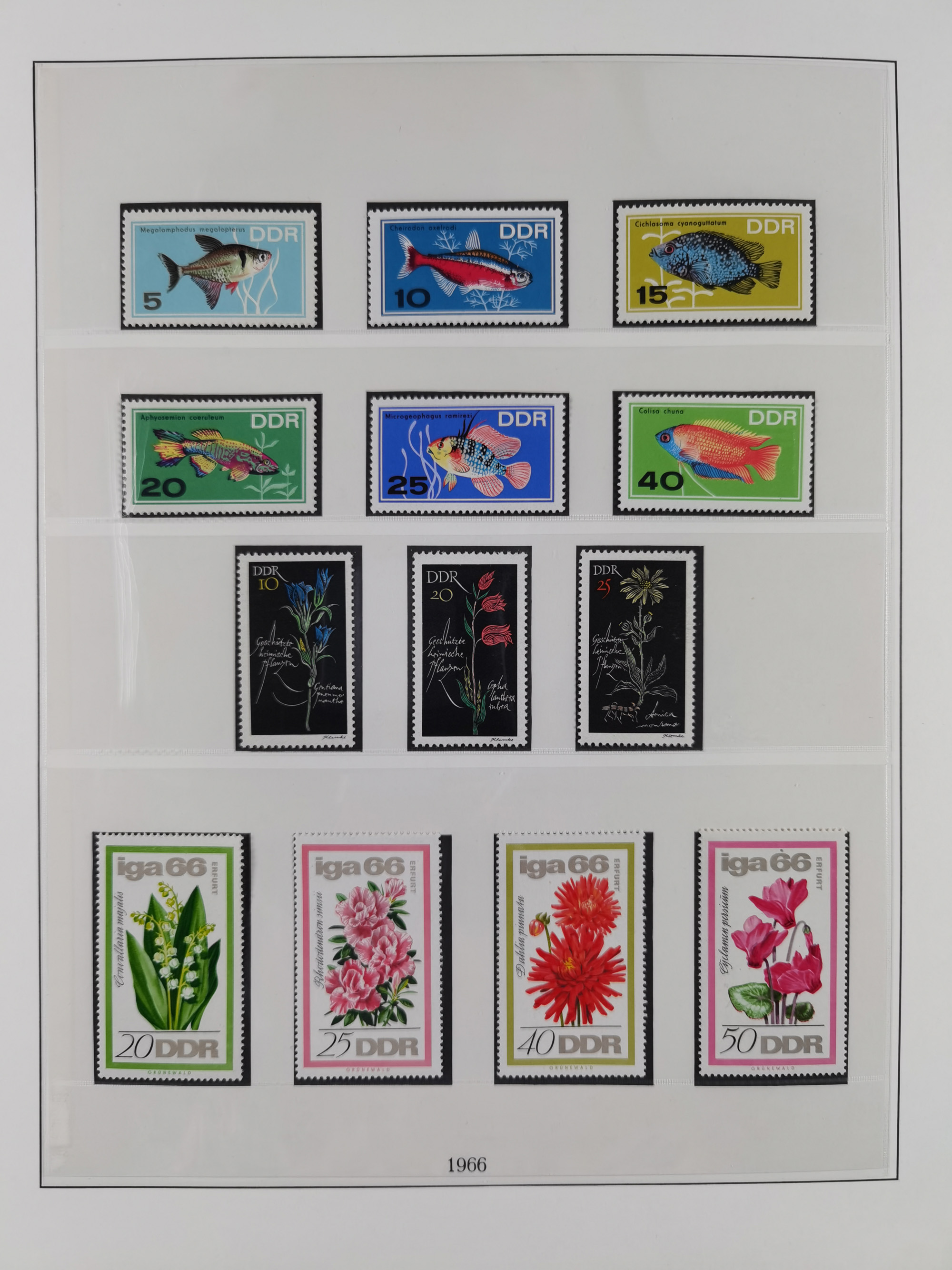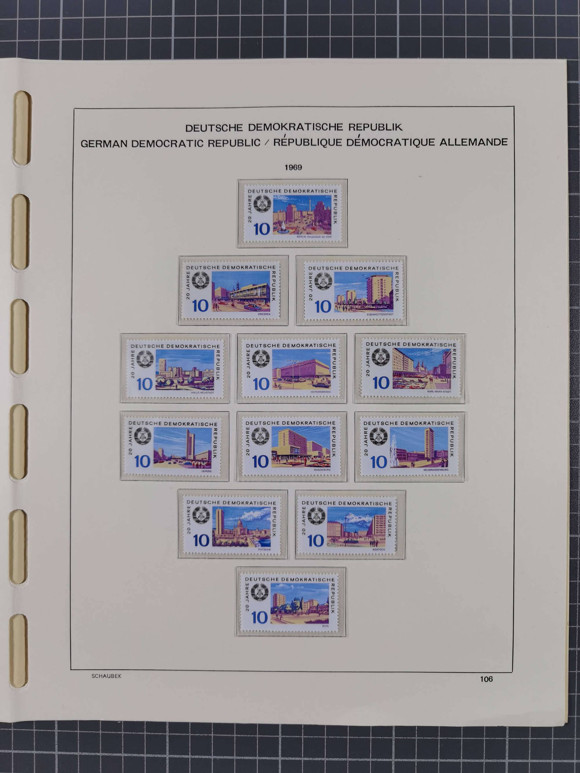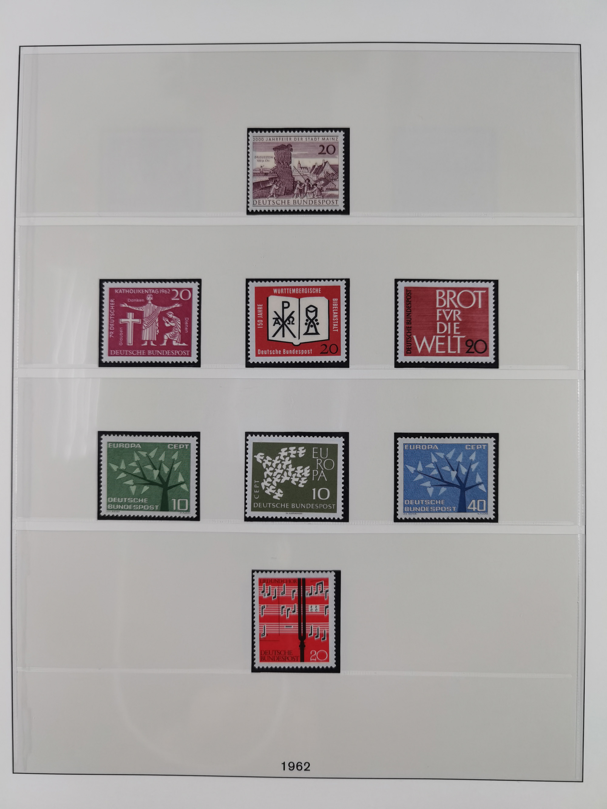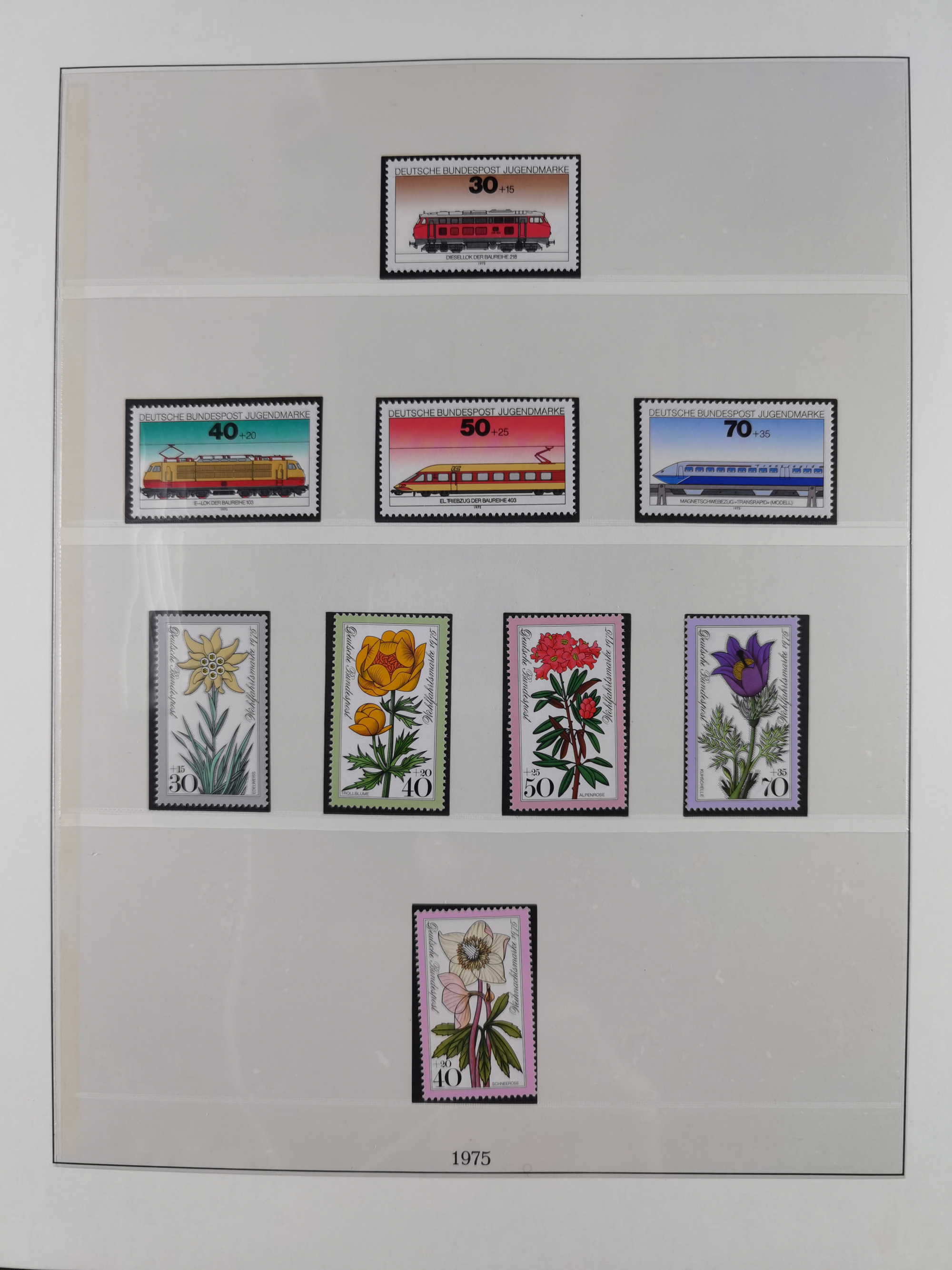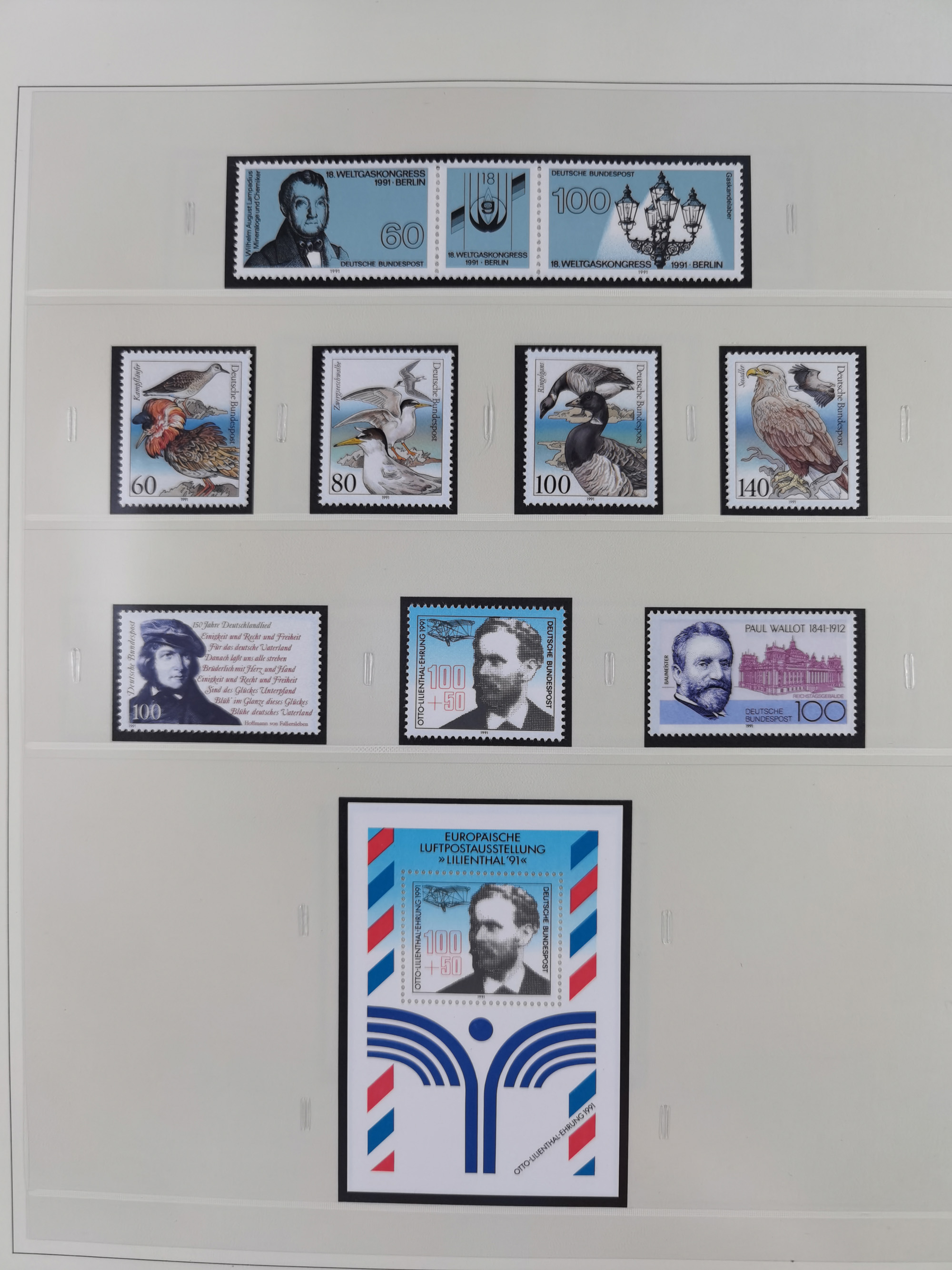 1948/90, in den Hauptnummern bis 1960 komplette postfrische Sammlungen Berlin 1948-90 inkl. Schwarzaufdruck, Rotaufdruck sign. Dub und Block 1, Bundesrepublik 1949-72 inkl. Posthornsatz, sowie DDR 1949-71 inkl. ausgiebigen Teilen Zusammendrucke, es fehlen bei den späten modernen Ausgaben teils einzelne Werte oder Sätze, gute Erhaltung, Alben mit Lagerspuren, in 11 Vordruckalben
