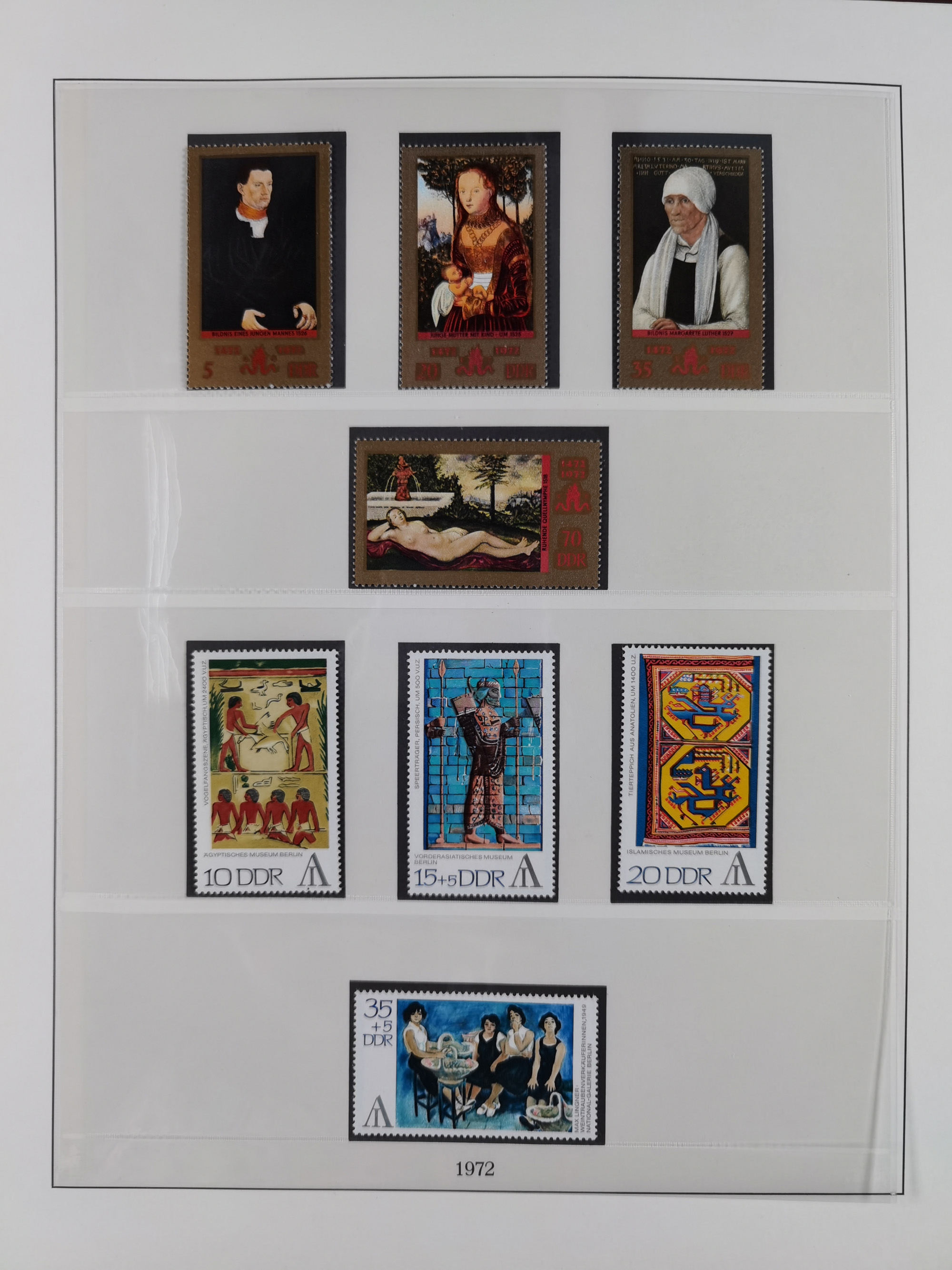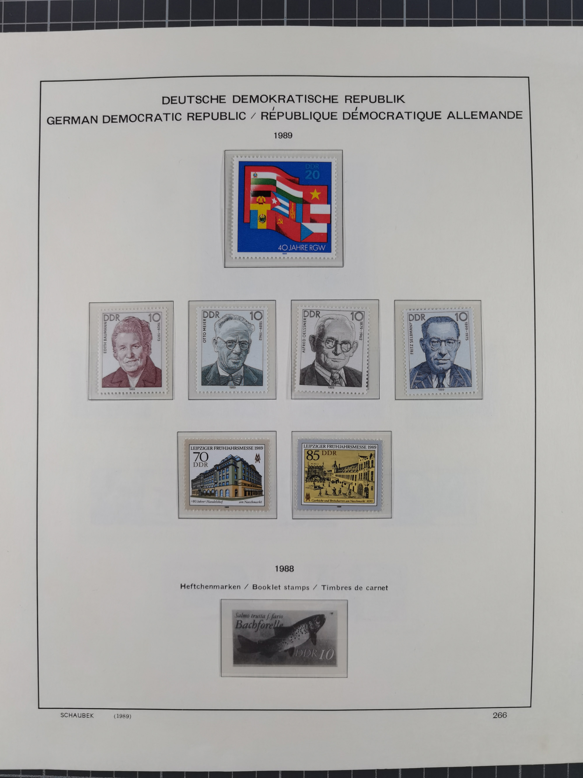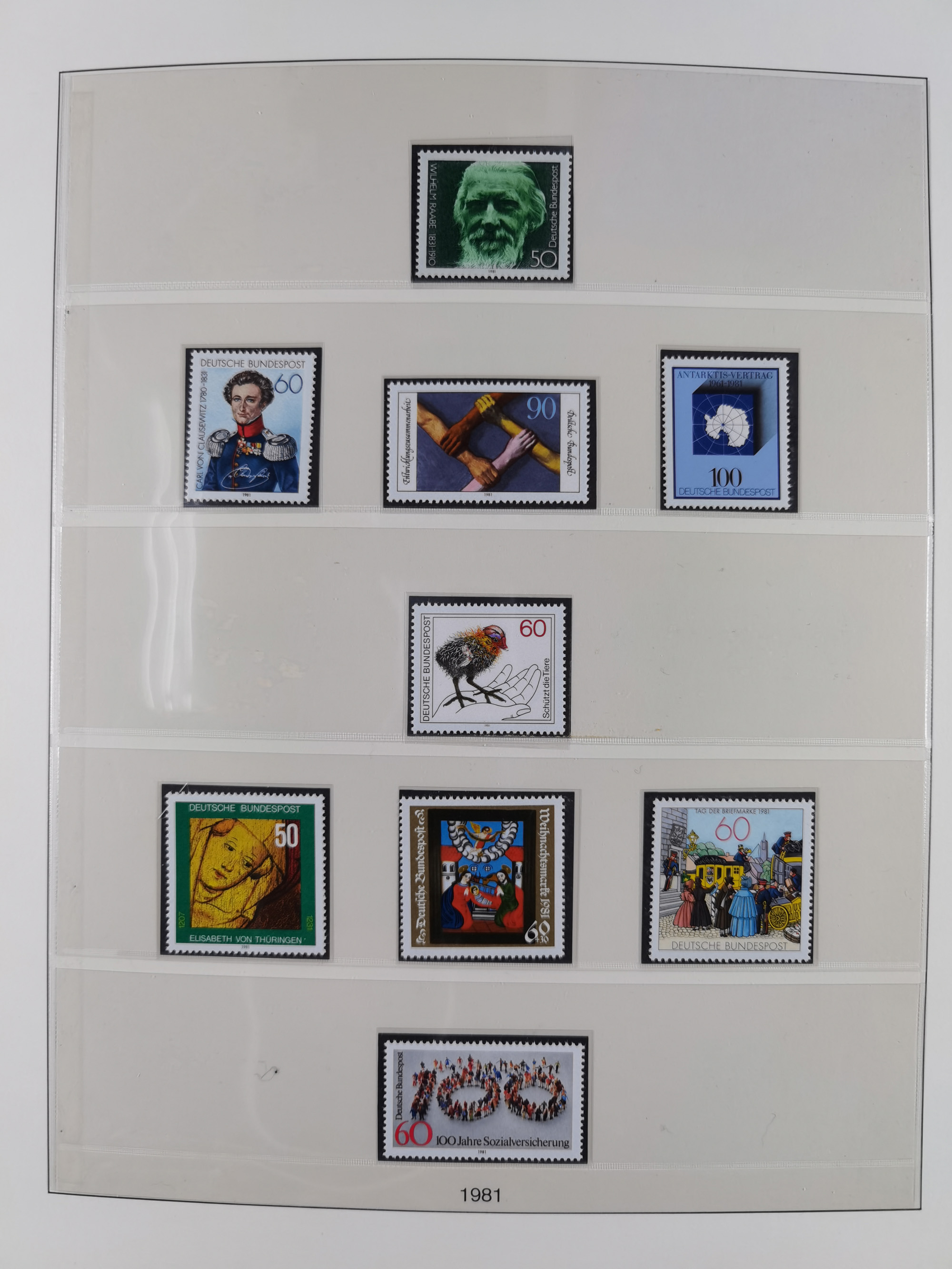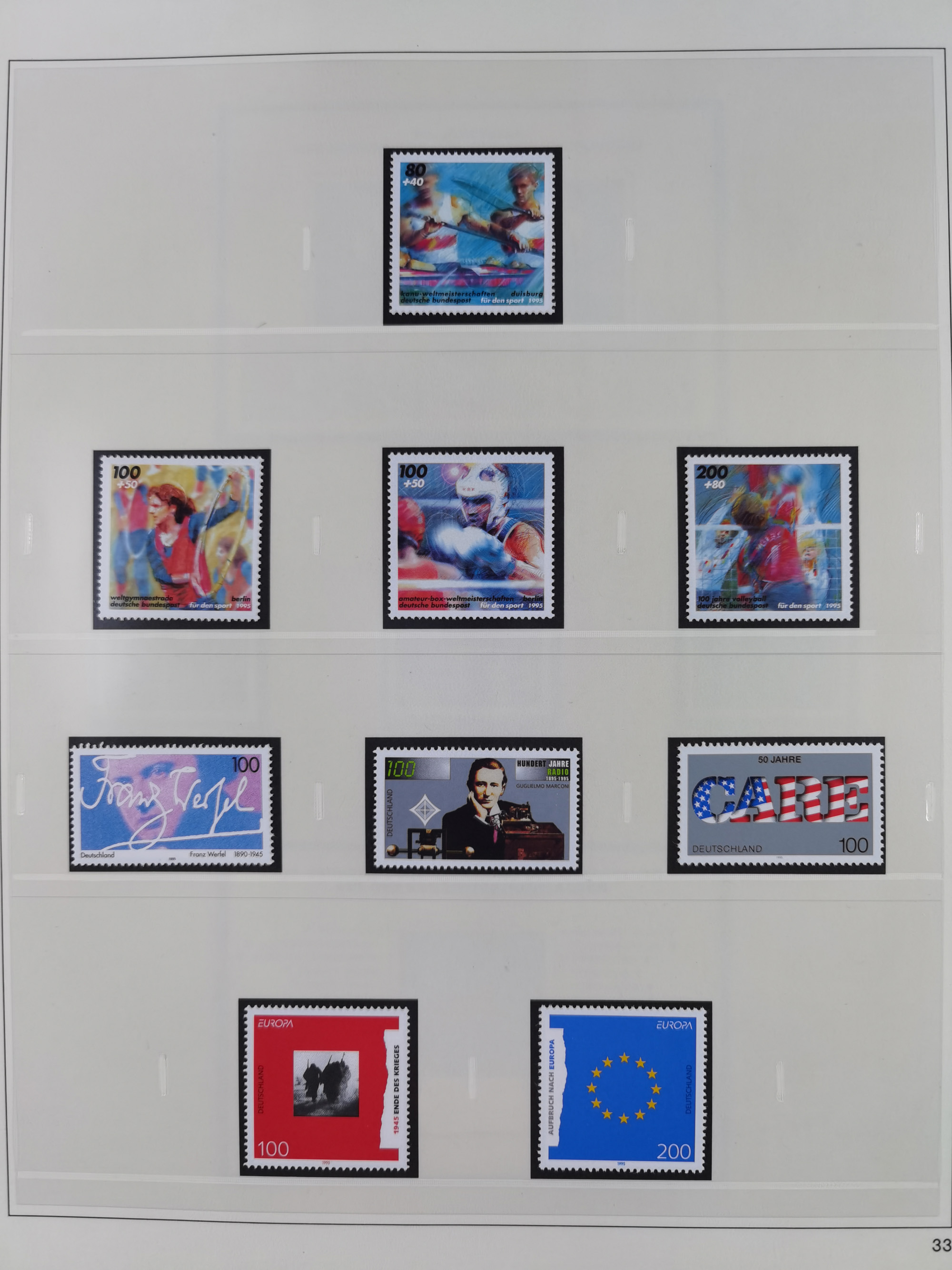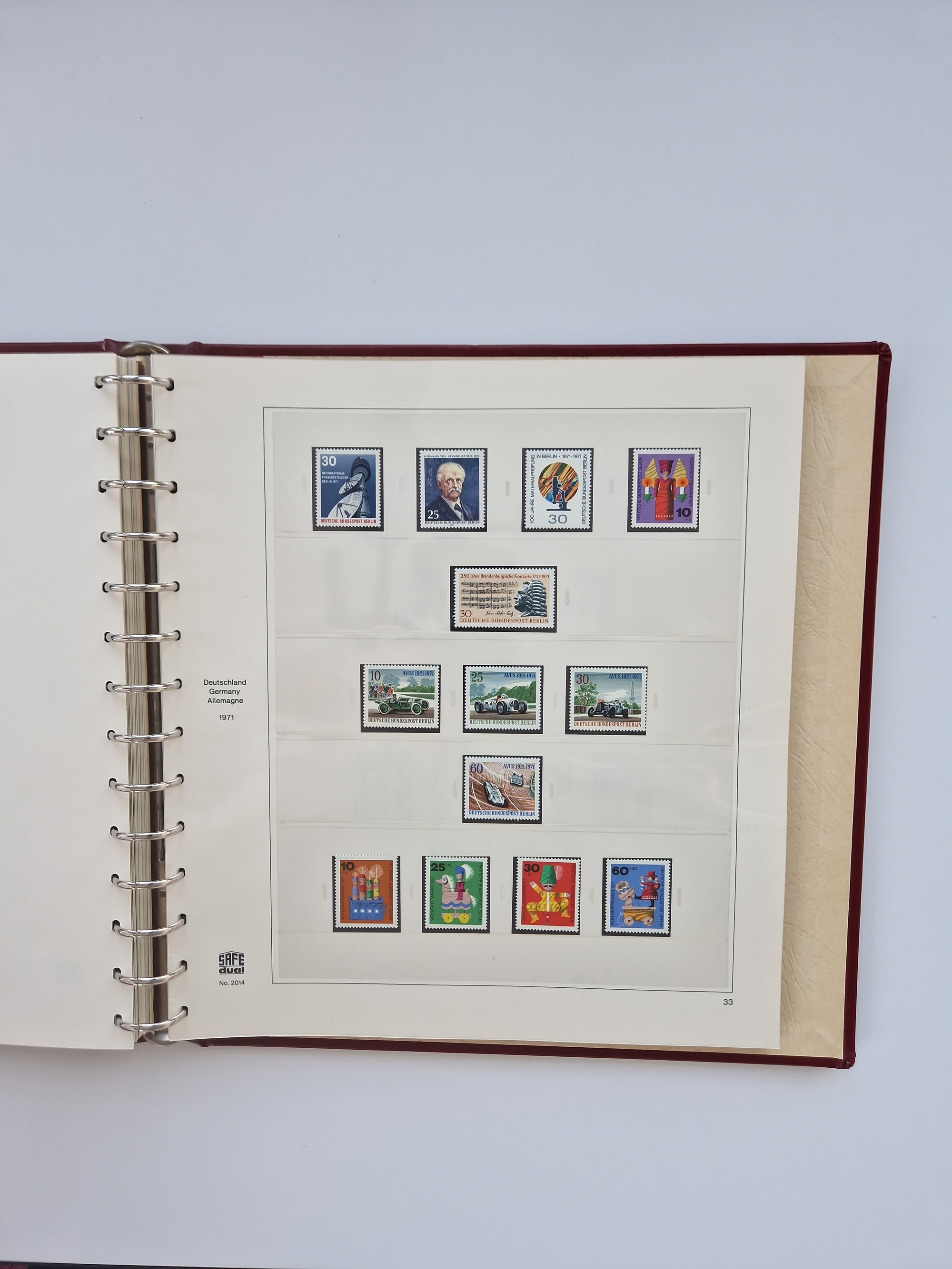 1948/90, in den Hauptnummern bis 1960 komplette postfrische Sammlungen Berlin 1948-90 inkl. Schwarzaufdruck, Rotaufdruck sign. Dub und Block 1, Bundesrepublik 1949-72 inkl. Posthornsatz, sowie DDR 1949-71 inkl. ausgiebigen Teilen Zusammendrucke, es fehlen bei den späten modernen Ausgaben teils einzelne Werte oder Sätze, gute Erhaltung, Alben mit Lagerspuren, in 11 Vordruckalben