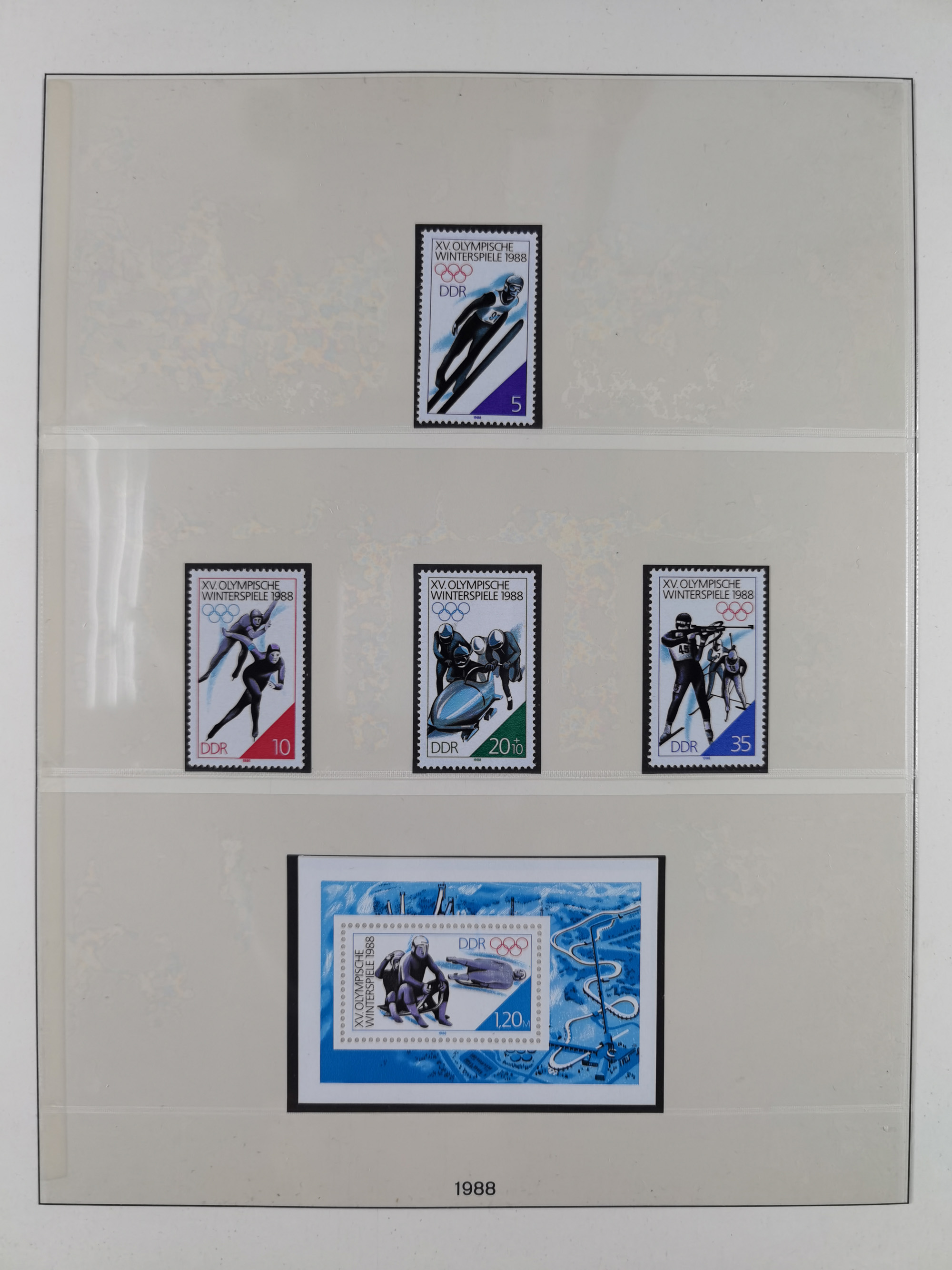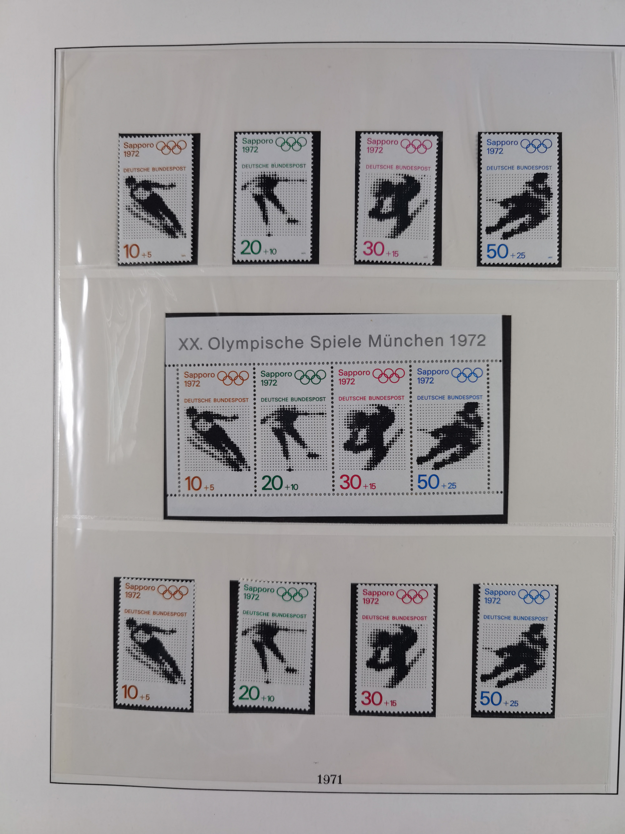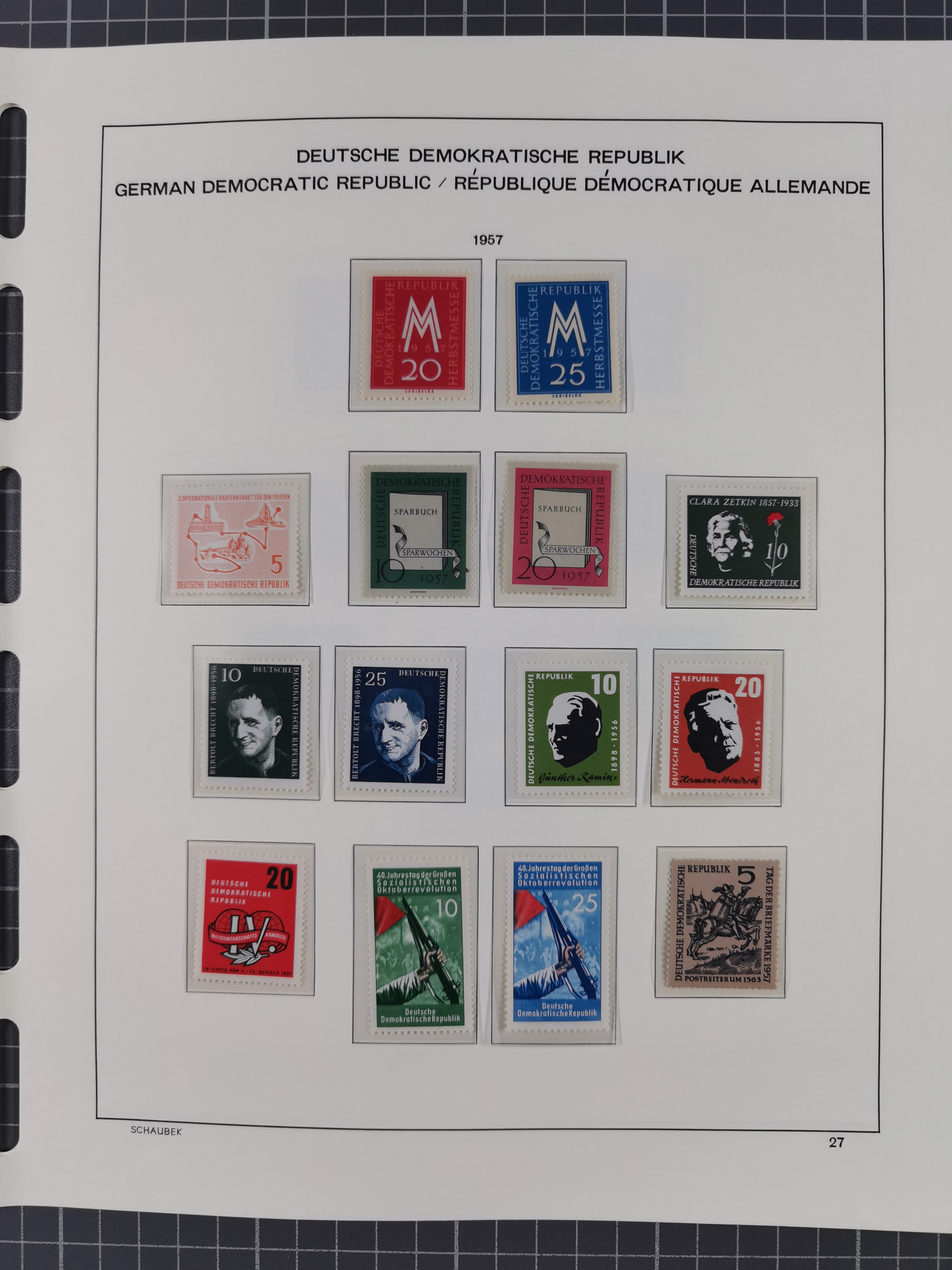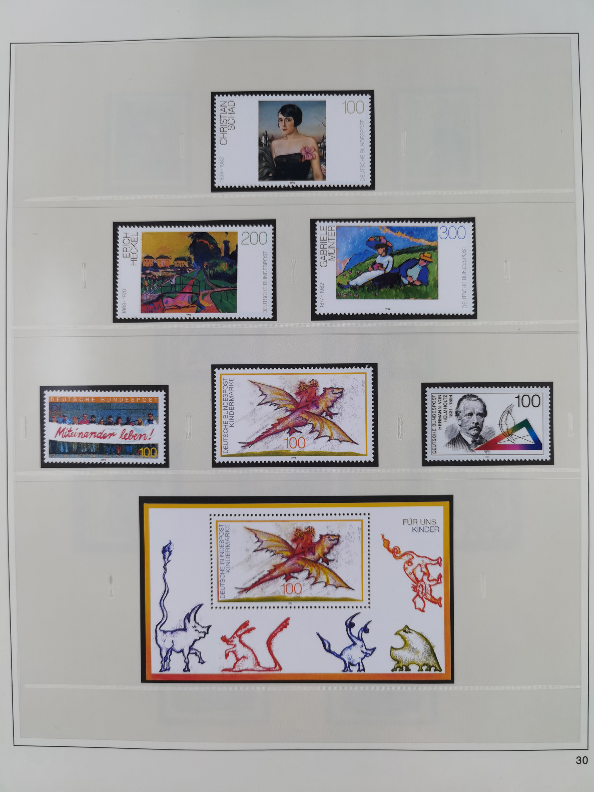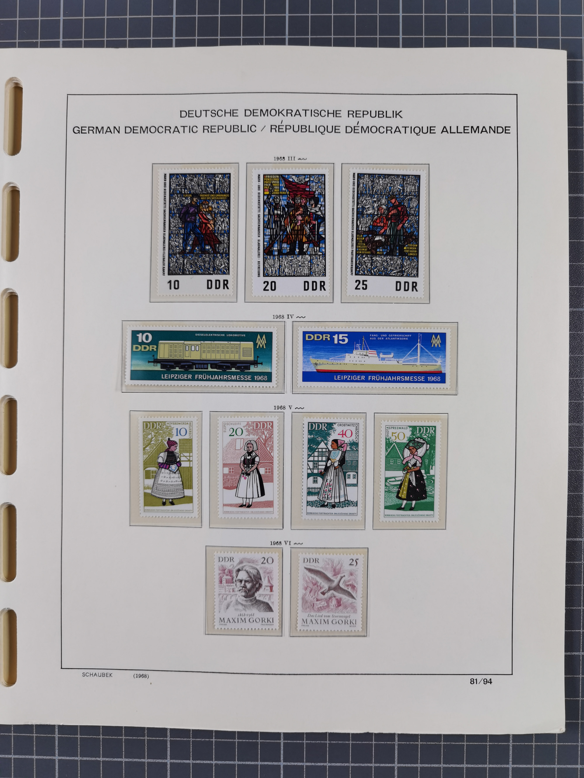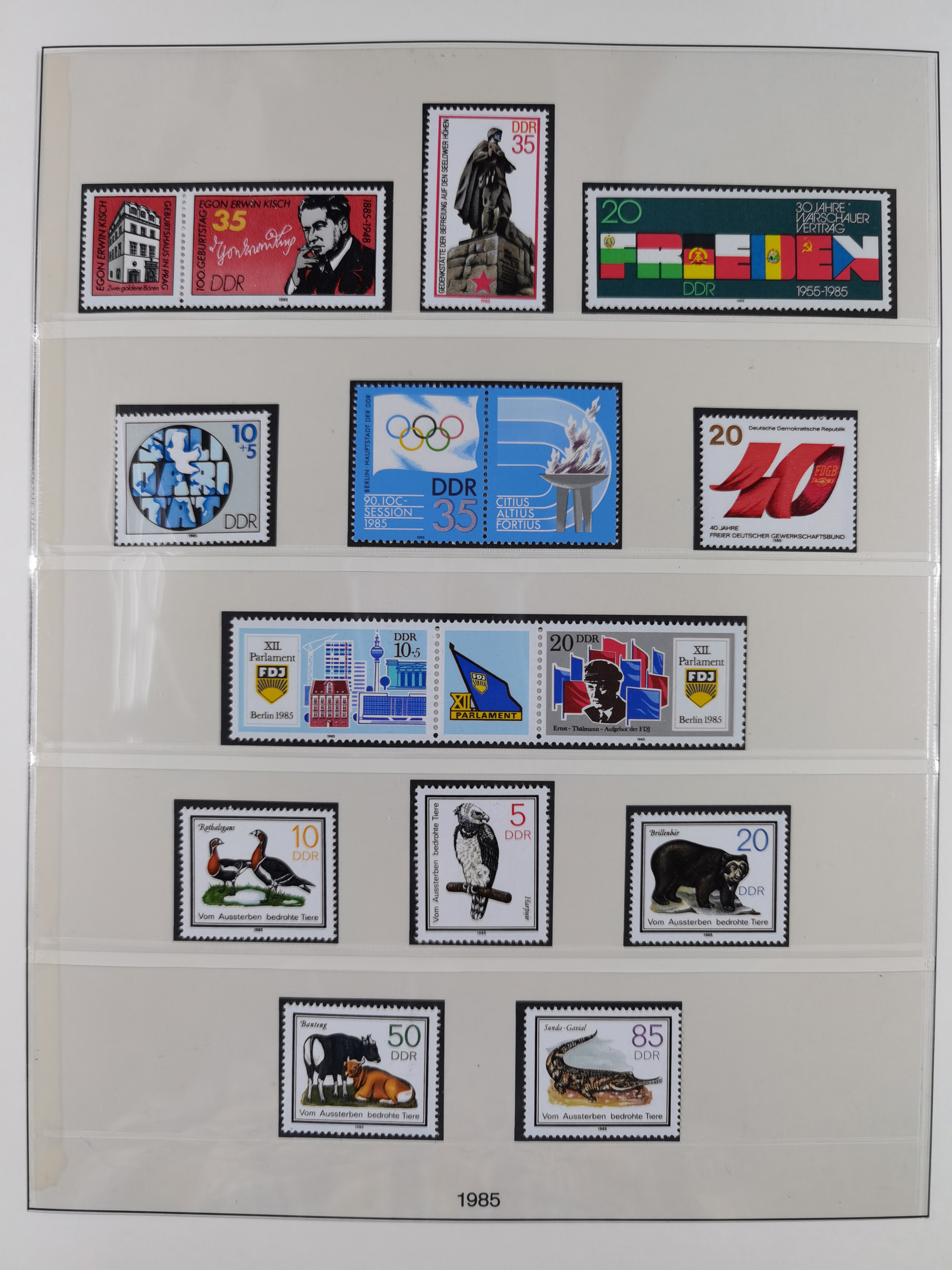 1948/90, in den Hauptnummern bis 1960 komplette postfrische Sammlungen Berlin 1948-90 inkl. Schwarzaufdruck, Rotaufdruck sign. Dub und Block 1, Bundesrepublik 1949-72 inkl. Posthornsatz, sowie DDR 1949-71 inkl. ausgiebigen Teilen Zusammendrucke, es fehlen bei den späten modernen Ausgaben teils einzelne Werte oder Sätze, gute Erhaltung, Alben mit Lagerspuren, in 11 Vordruckalben
