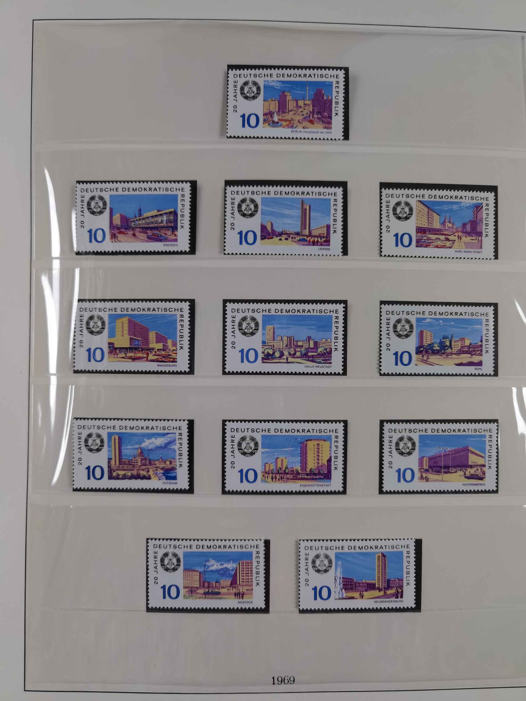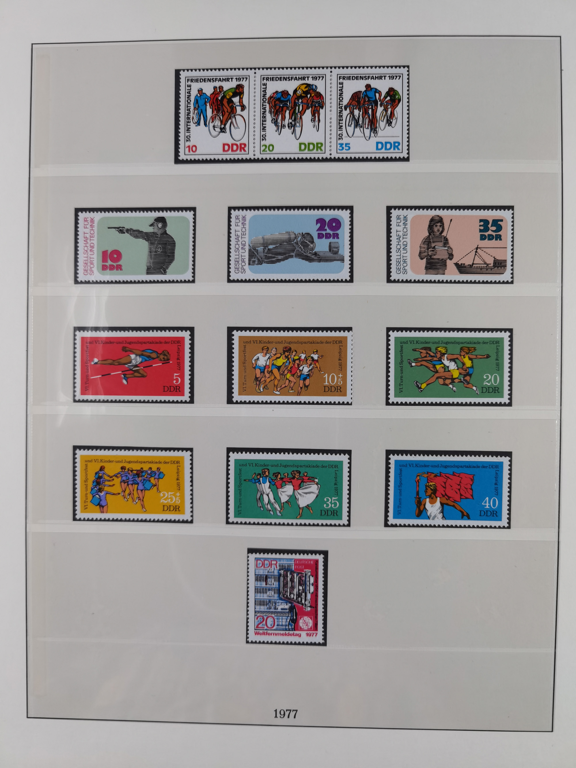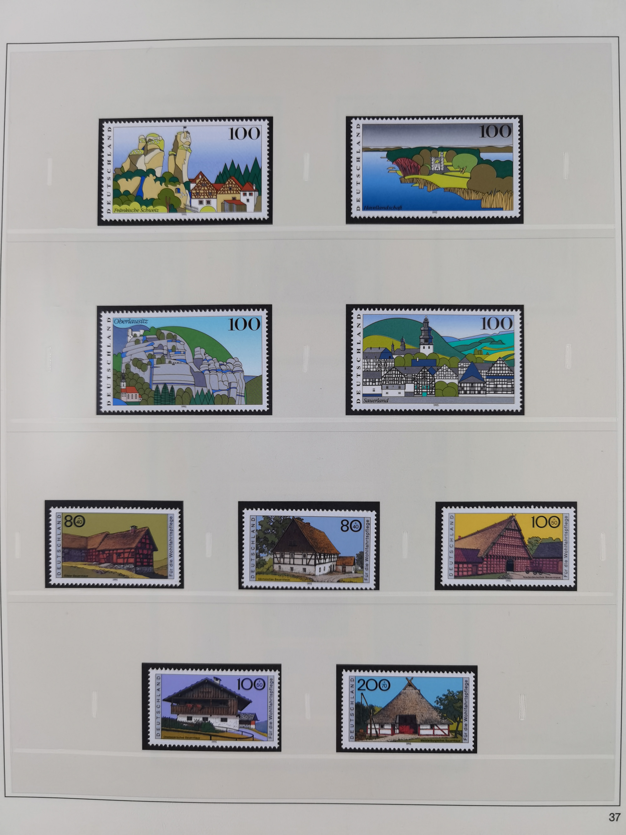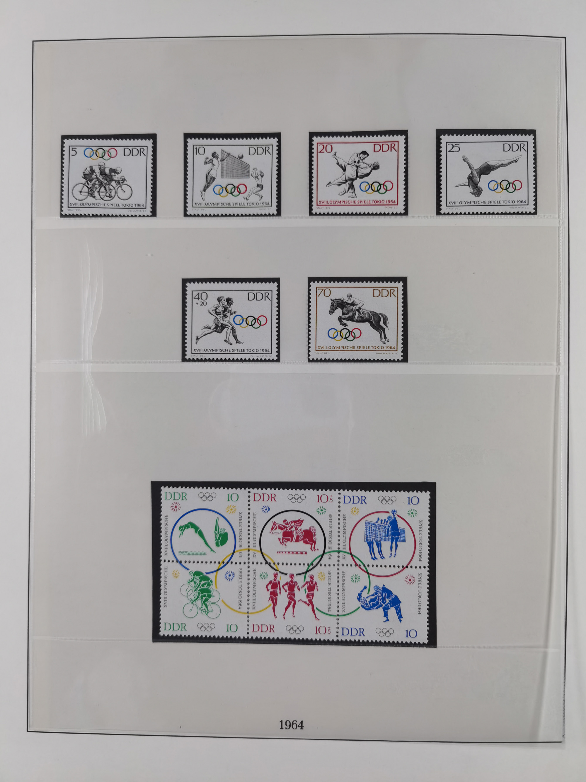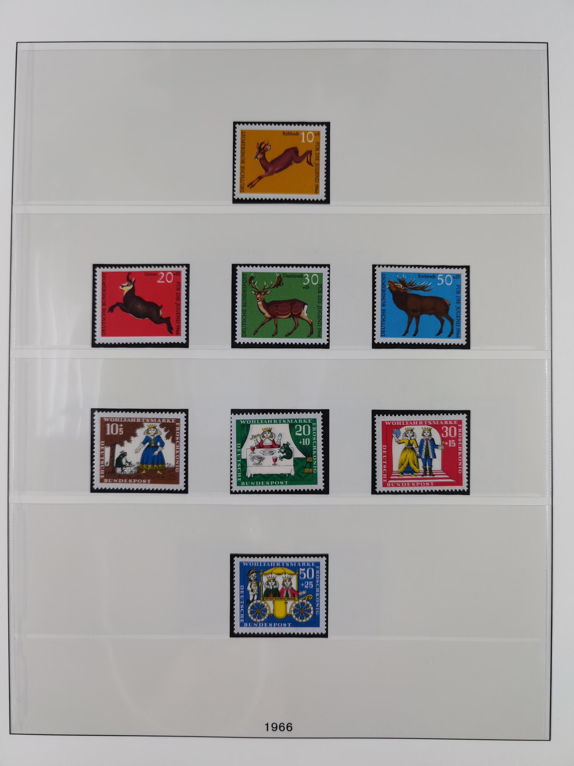 1948/90, in den Hauptnummern bis 1960 komplette postfrische Sammlungen Berlin 1948-90 inkl. Schwarzaufdruck, Rotaufdruck sign. Dub und Block 1, Bundesrepublik 1949-72 inkl. Posthornsatz, sowie DDR 1949-71 inkl. ausgiebigen Teilen Zusammendrucke, es fehlen bei den späten modernen Ausgaben teils einzelne Werte oder Sätze, gute Erhaltung, Alben mit Lagerspuren, in 11 Vordruckalben