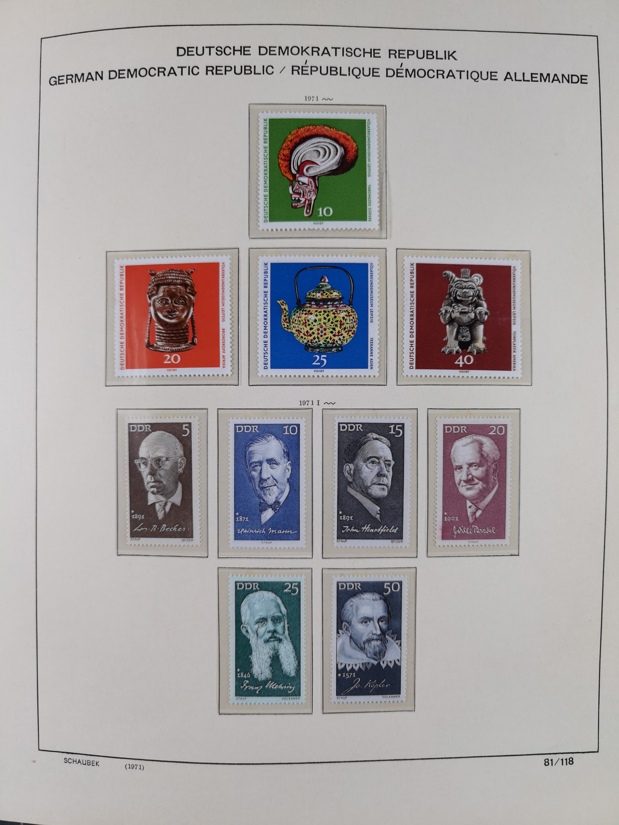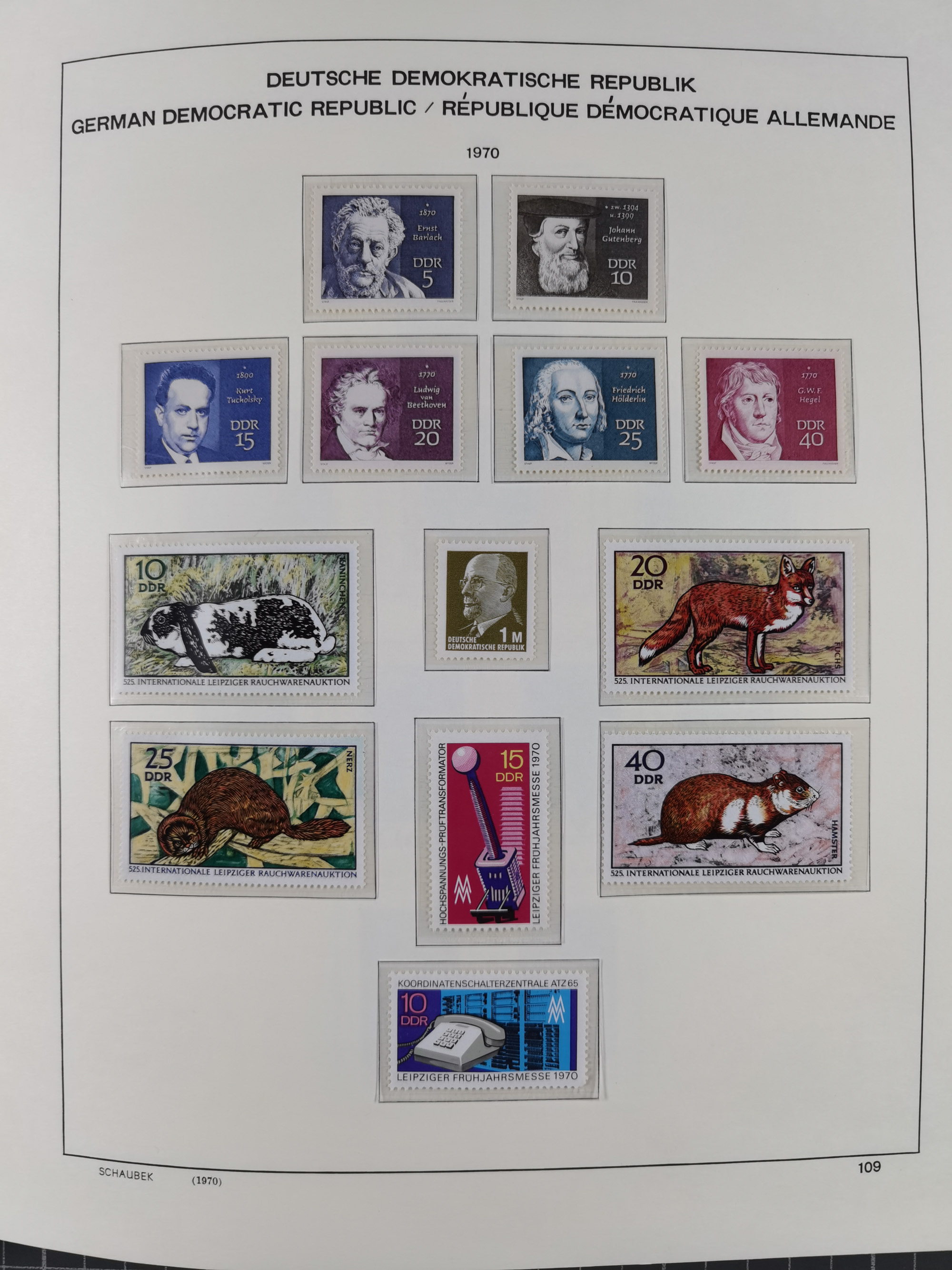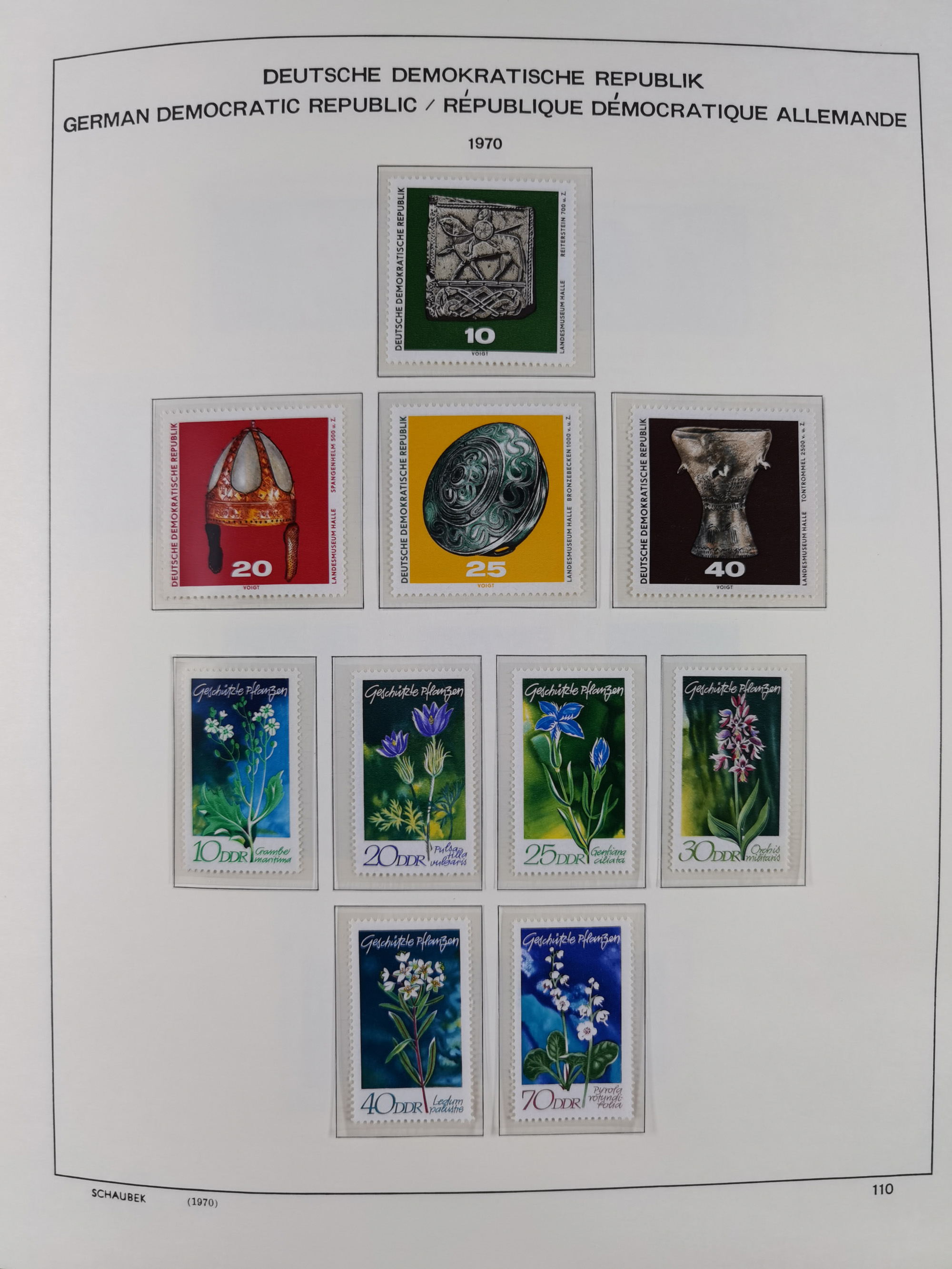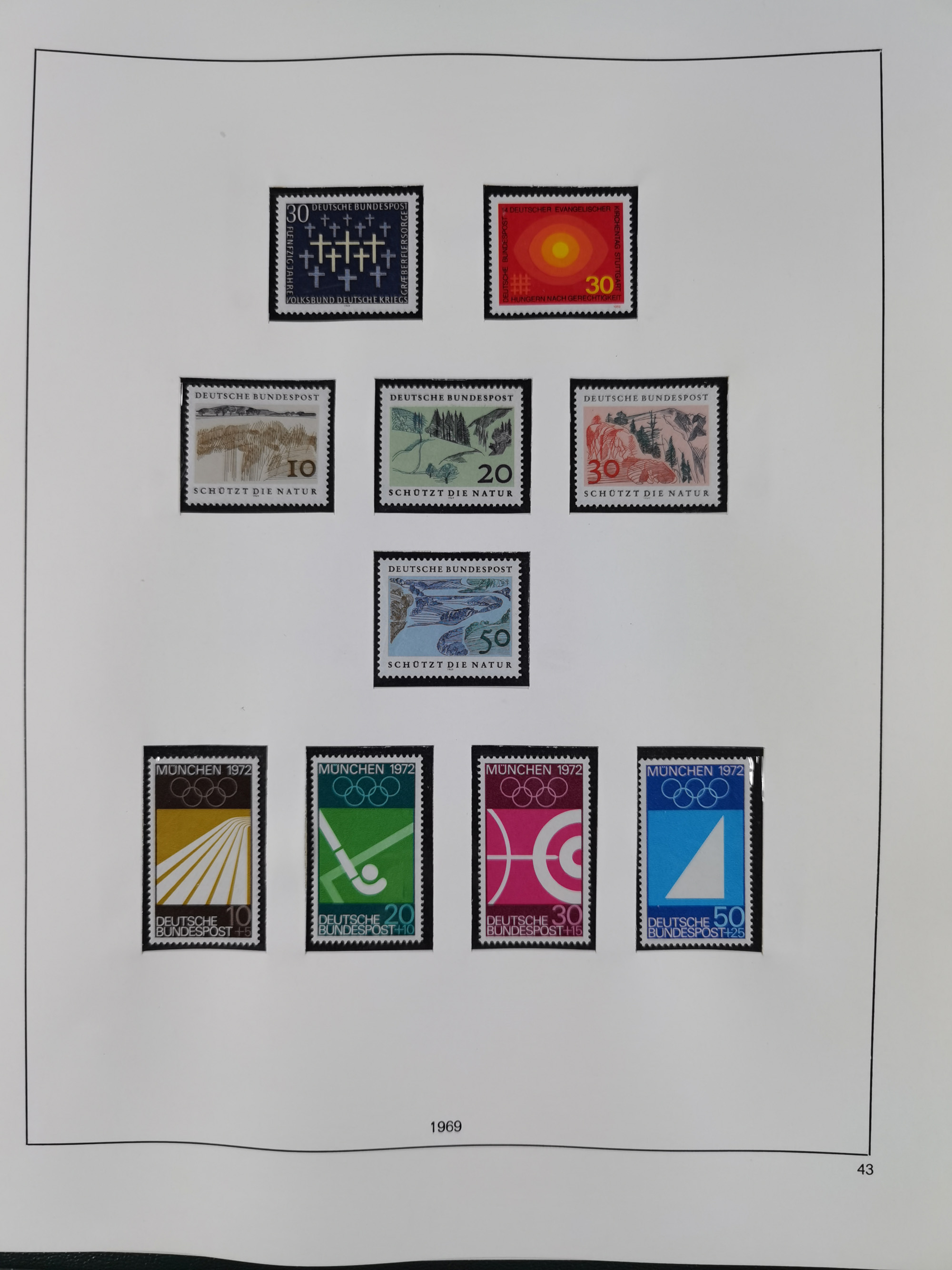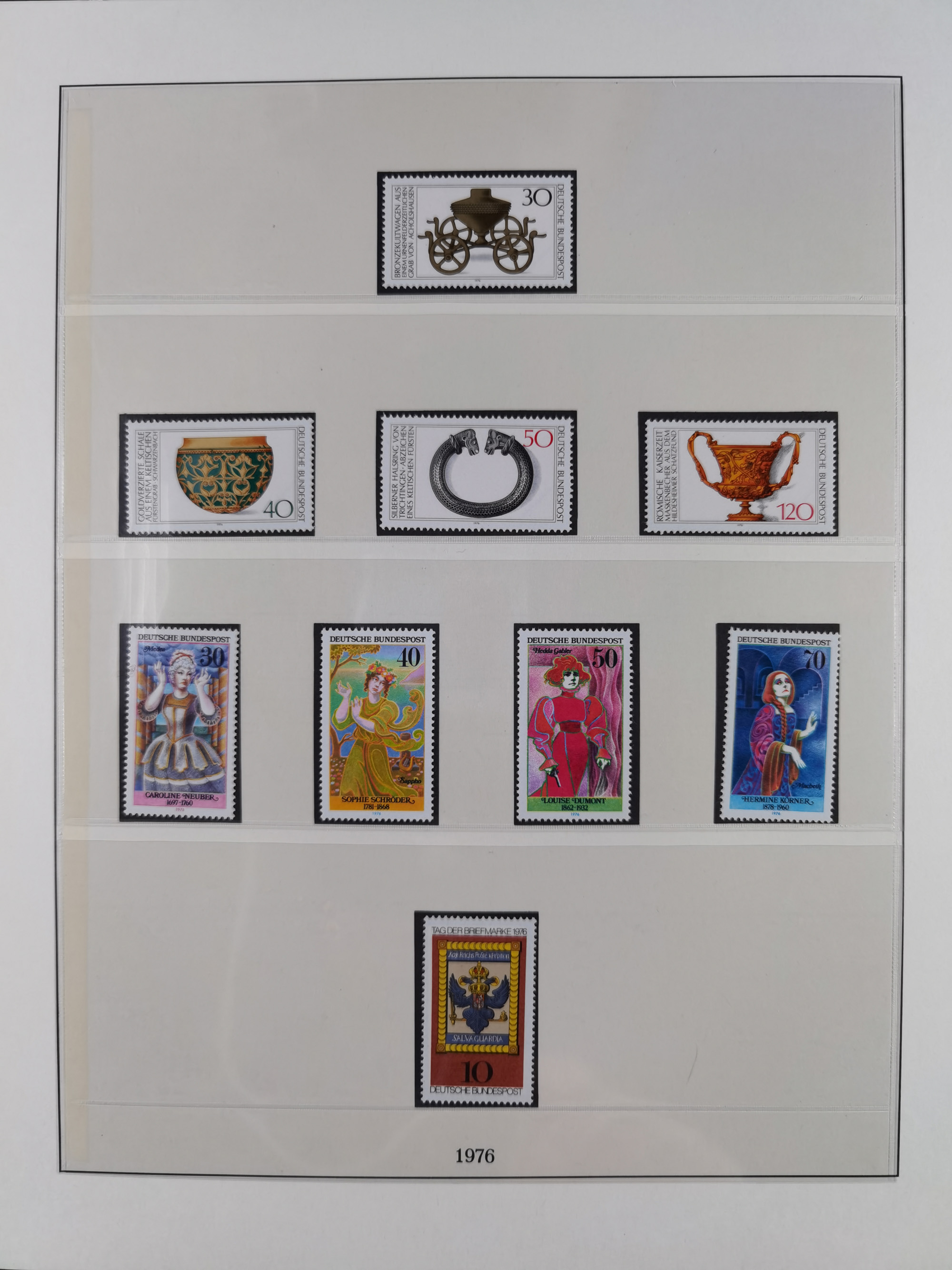 1948/90, in den Hauptnummern bis 1960 komplette postfrische Sammlungen Berlin 1948-90 inkl. Schwarzaufdruck, Rotaufdruck sign. Dub und Block 1, Bundesrepublik 1949-72 inkl. Posthornsatz, sowie DDR 1949-71 inkl. ausgiebigen Teilen Zusammendrucke, es fehlen bei den späten modernen Ausgaben teils einzelne Werte oder Sätze, gute Erhaltung, Alben mit Lagerspuren, in 11 Vordruckalben