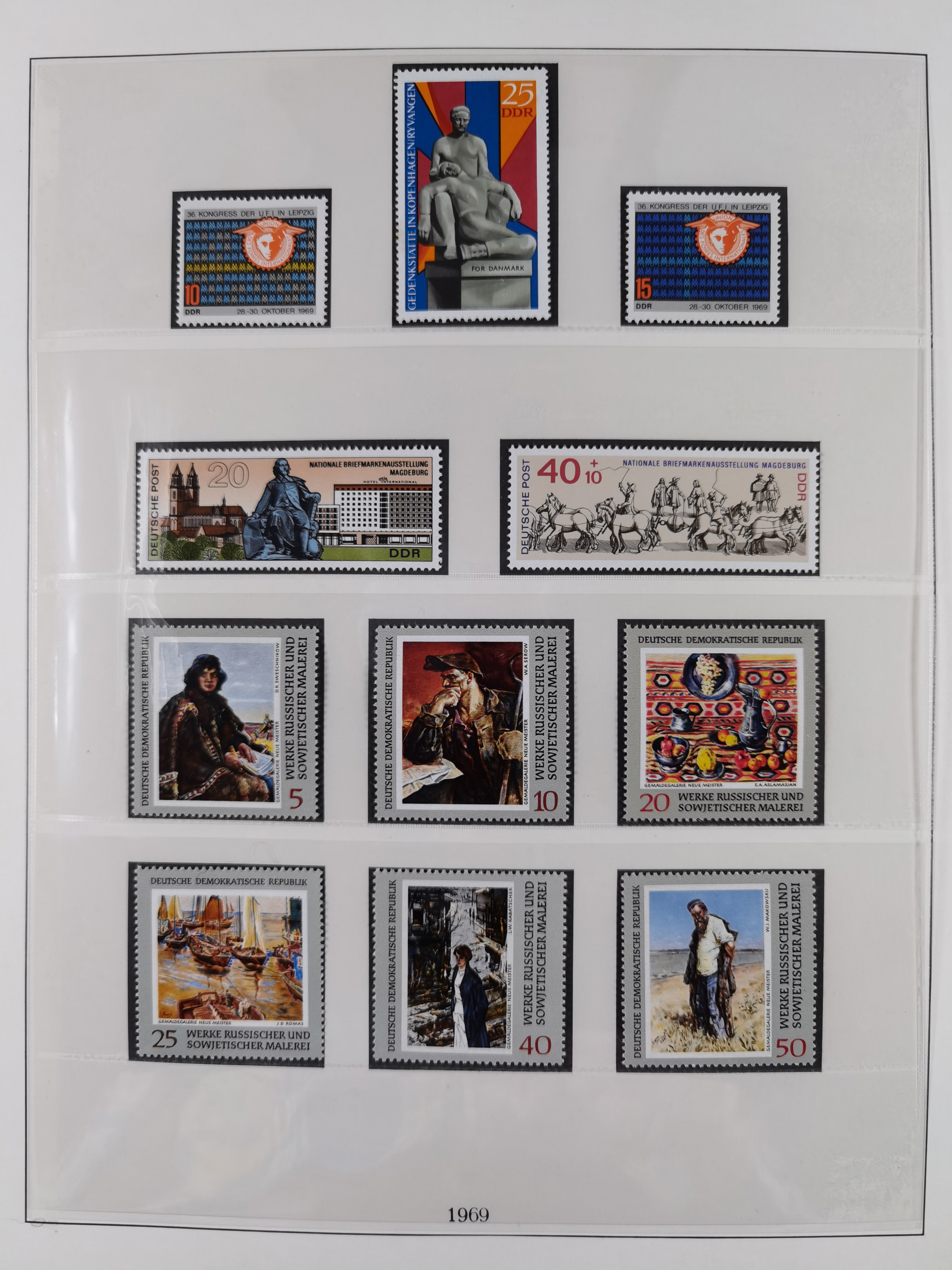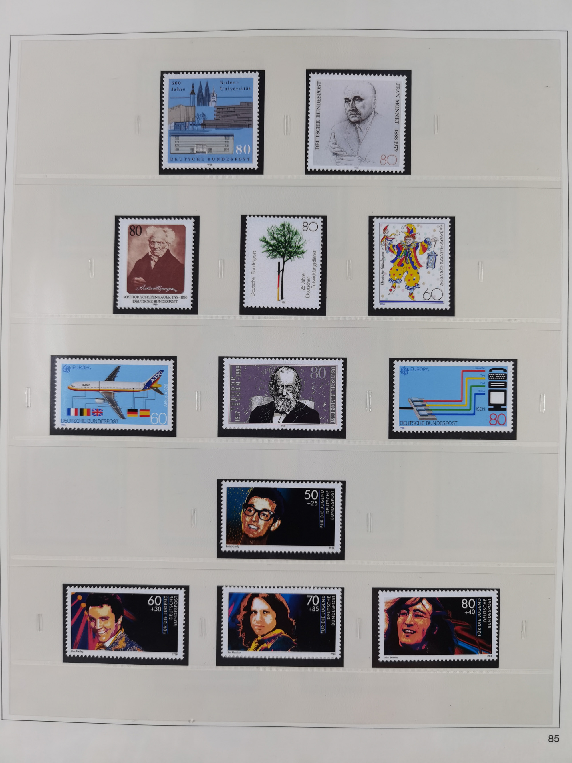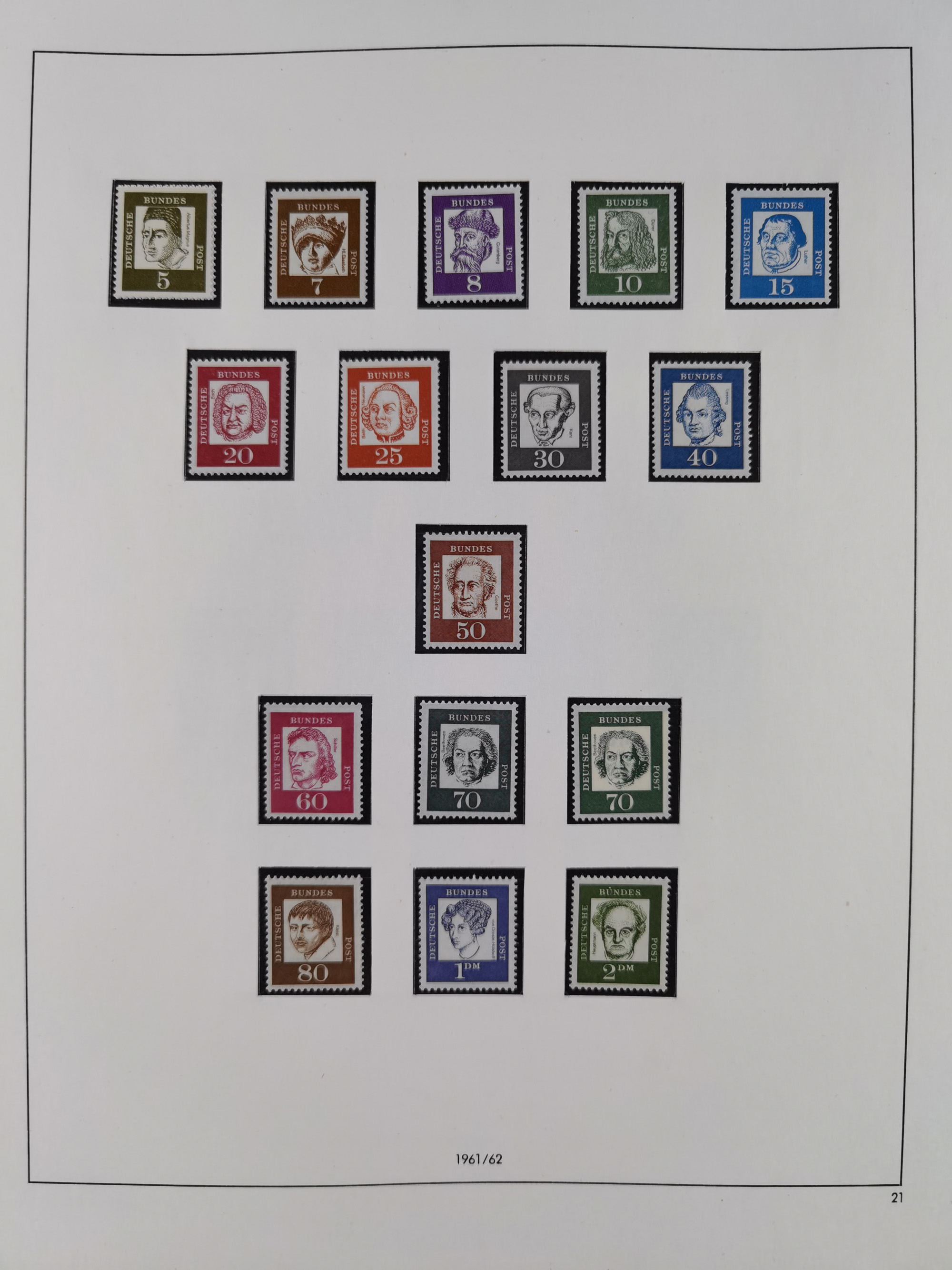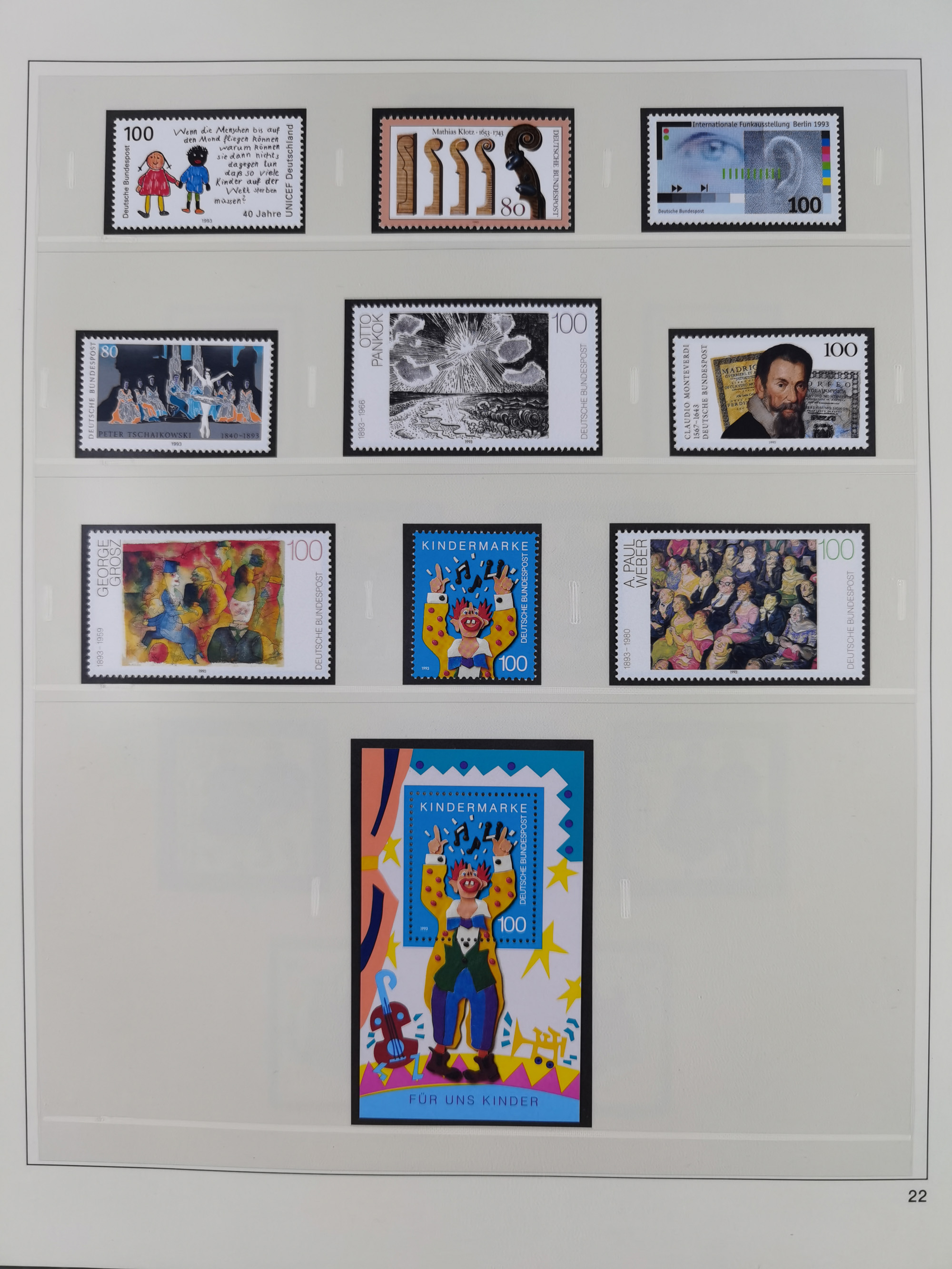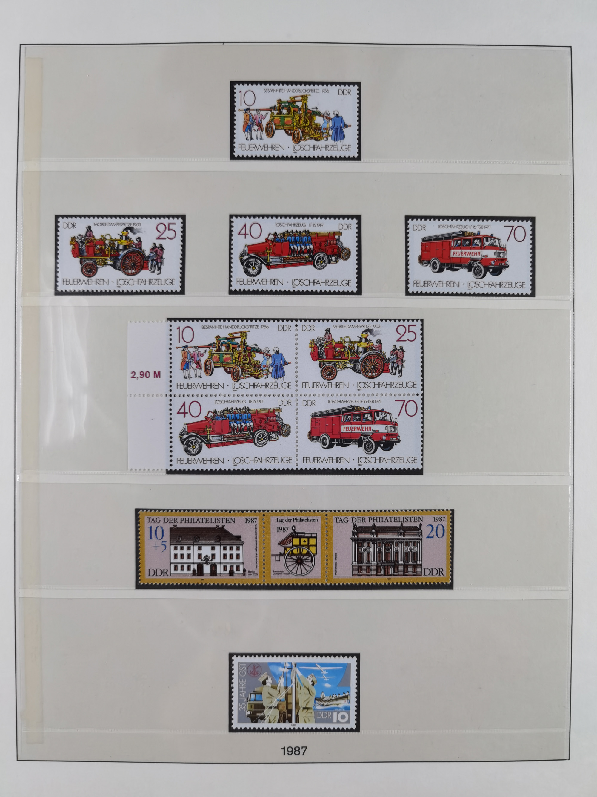 1948/90, in den Hauptnummern bis 1960 komplette postfrische Sammlungen Berlin 1948-90 inkl. Schwarzaufdruck, Rotaufdruck sign. Dub und Block 1, Bundesrepublik 1949-72 inkl. Posthornsatz, sowie DDR 1949-71 inkl. ausgiebigen Teilen Zusammendrucke, es fehlen bei den späten modernen Ausgaben teils einzelne Werte oder Sätze, gute Erhaltung, Alben mit Lagerspuren, in 11 Vordruckalben