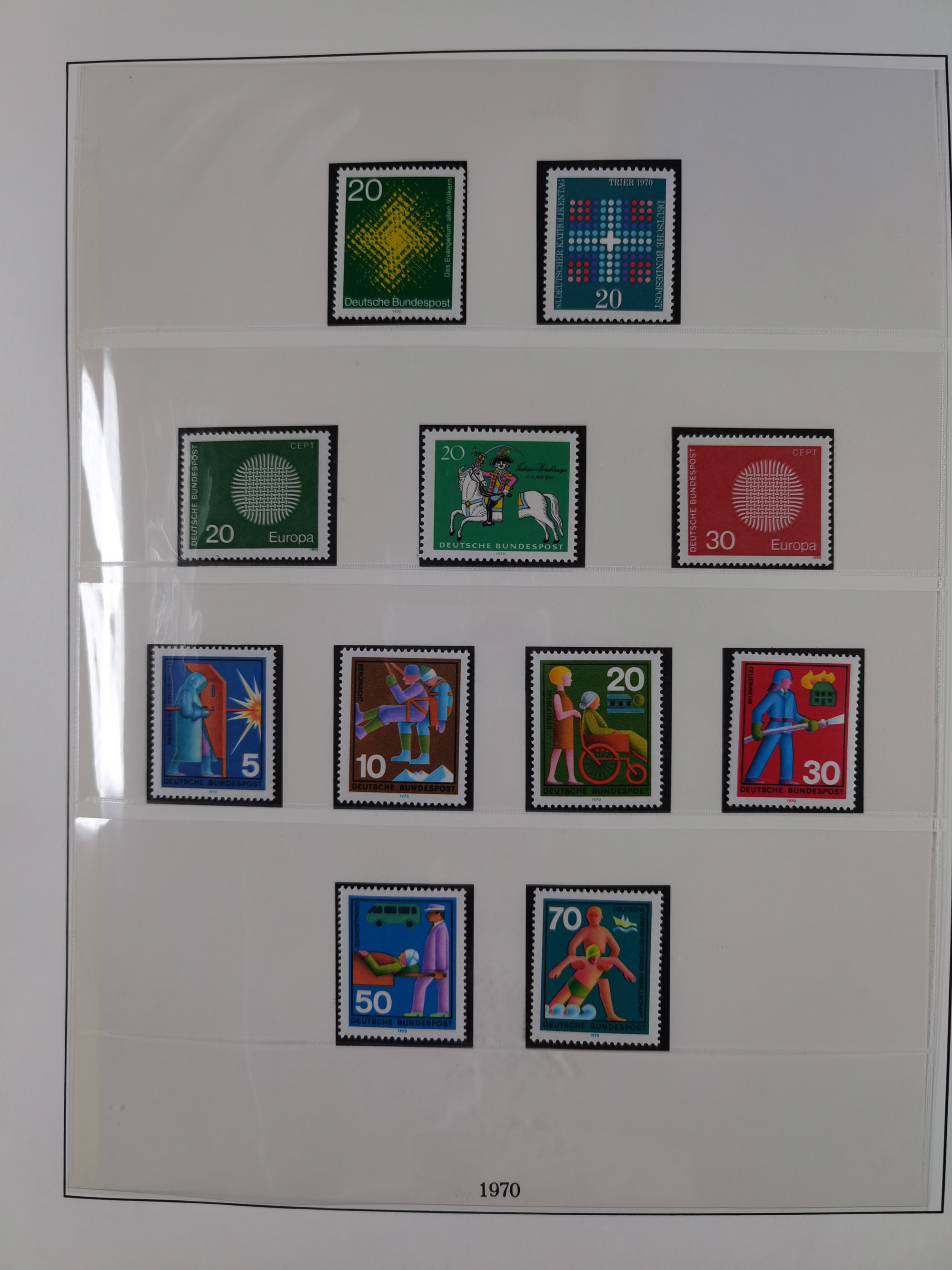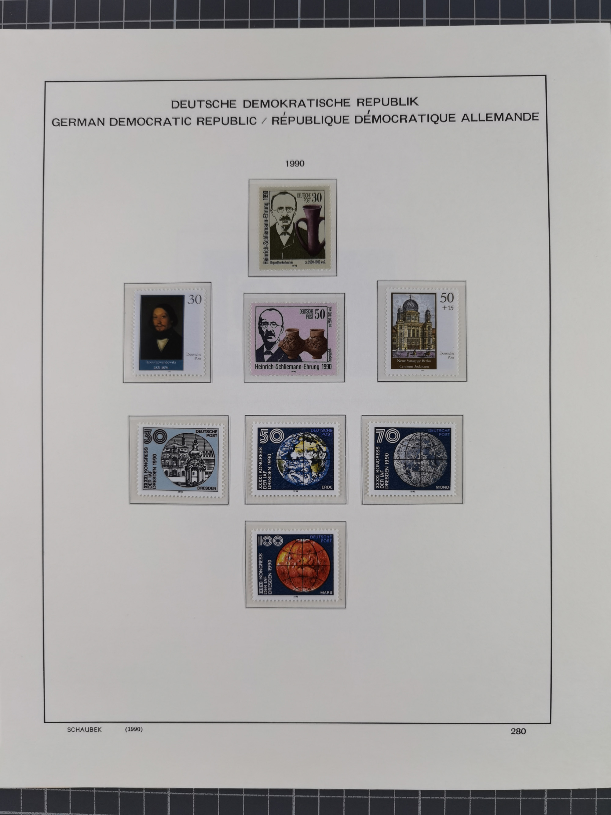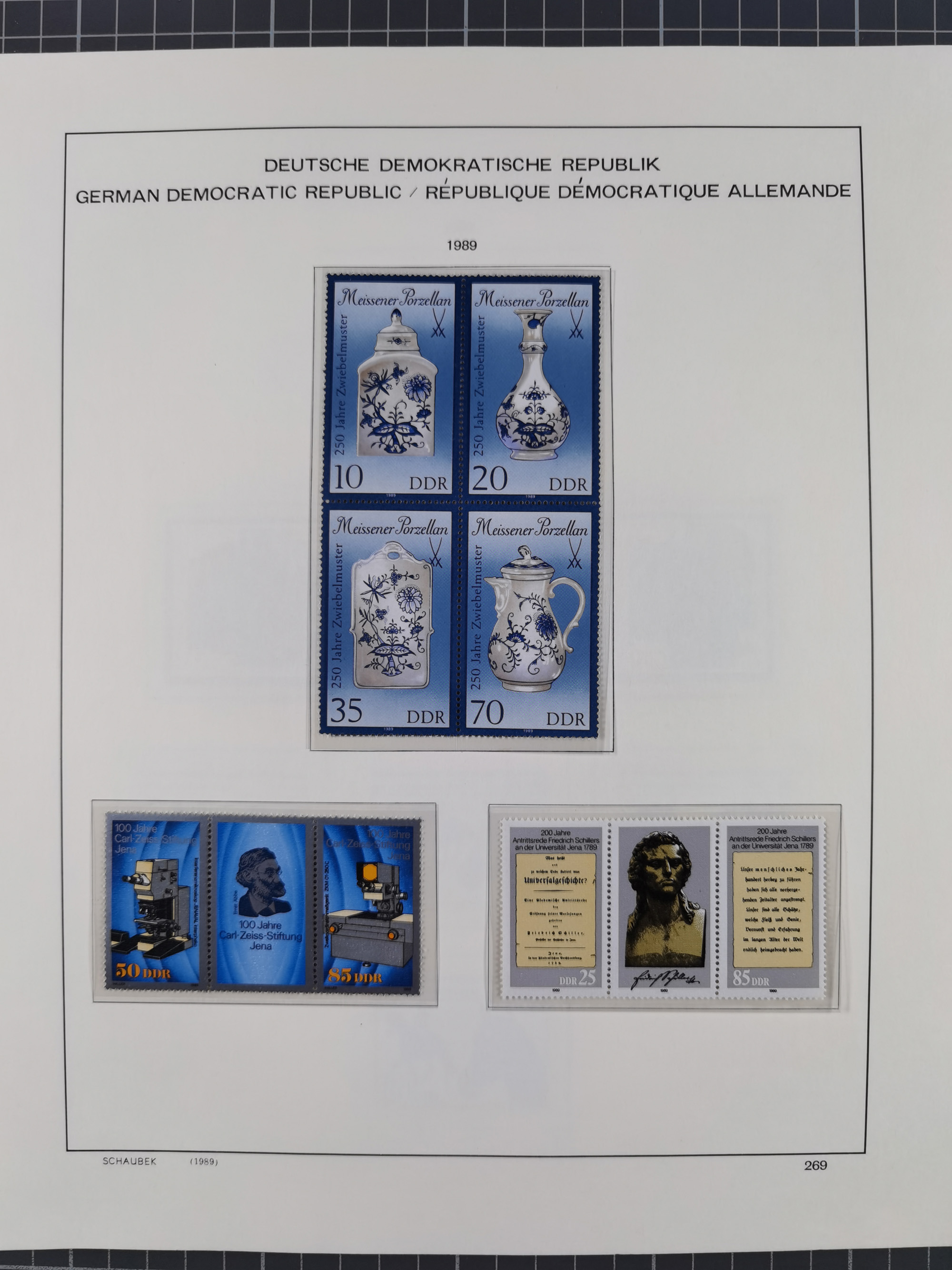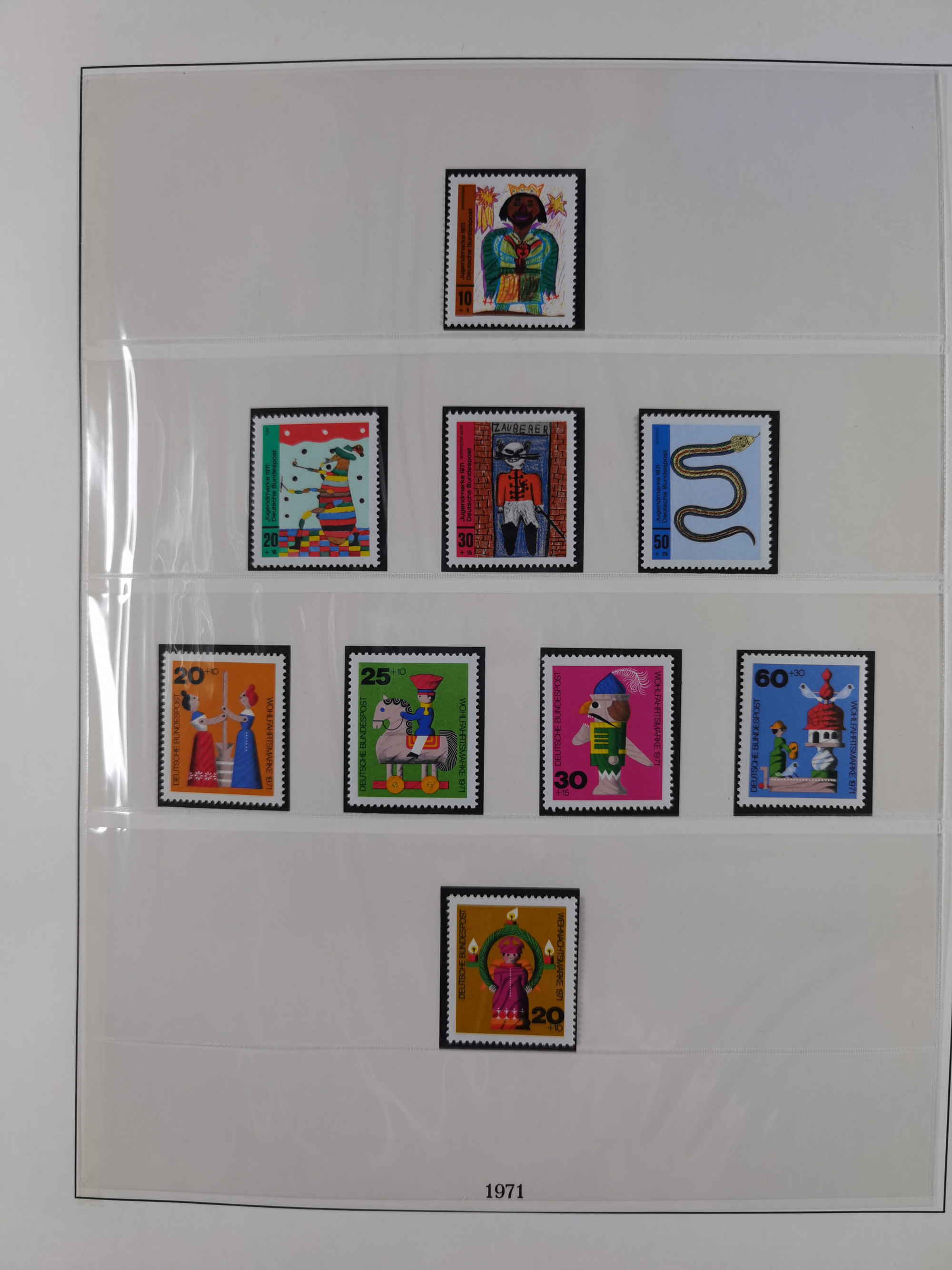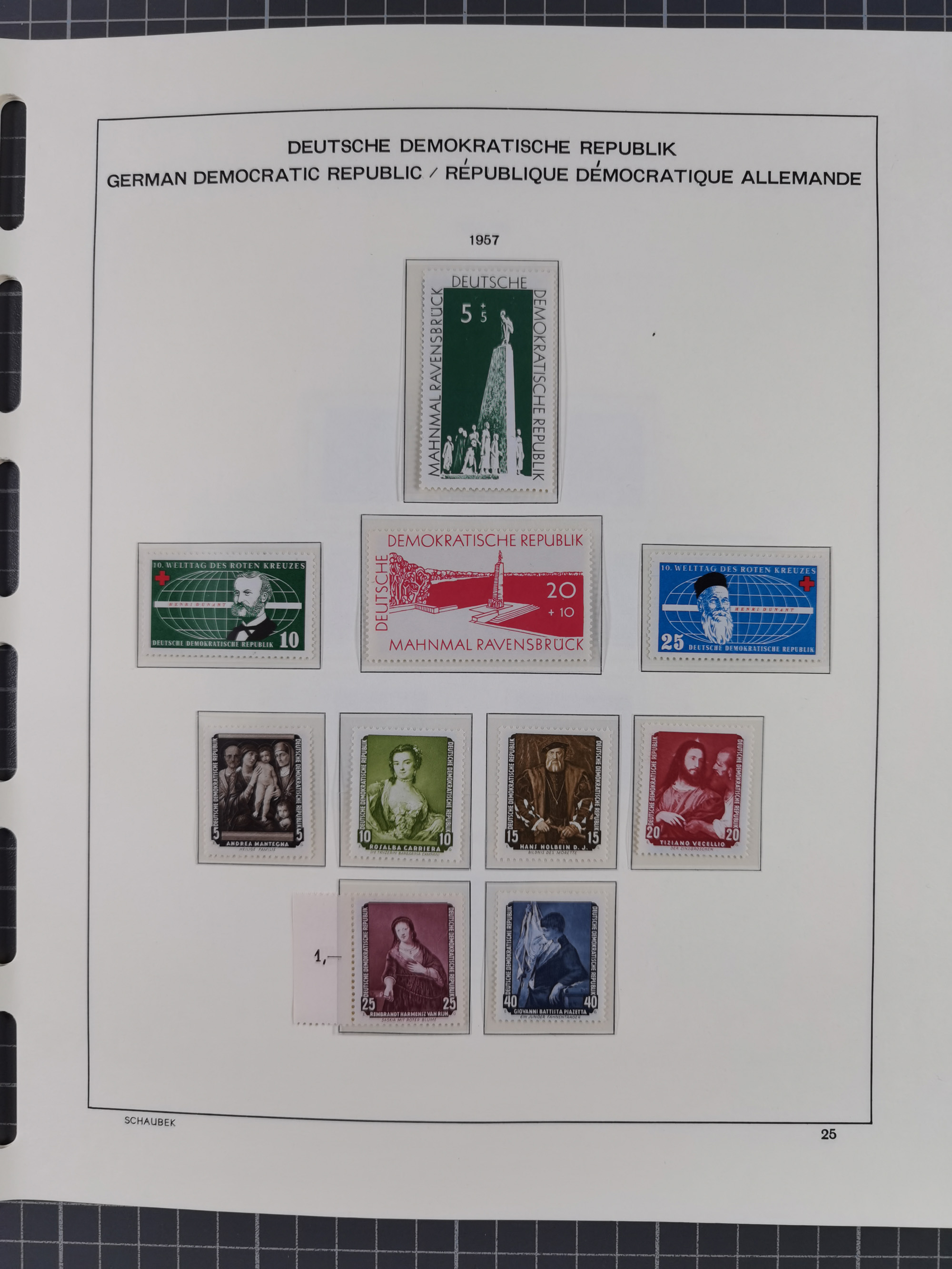 1948/90, in den Hauptnummern bis 1960 komplette postfrische Sammlungen Berlin 1948-90 inkl. Schwarzaufdruck, Rotaufdruck sign. Dub und Block 1, Bundesrepublik 1949-72 inkl. Posthornsatz, sowie DDR 1949-71 inkl. ausgiebigen Teilen Zusammendrucke, es fehlen bei den späten modernen Ausgaben teils einzelne Werte oder Sätze, gute Erhaltung, Alben mit Lagerspuren, in 11 Vordruckalben