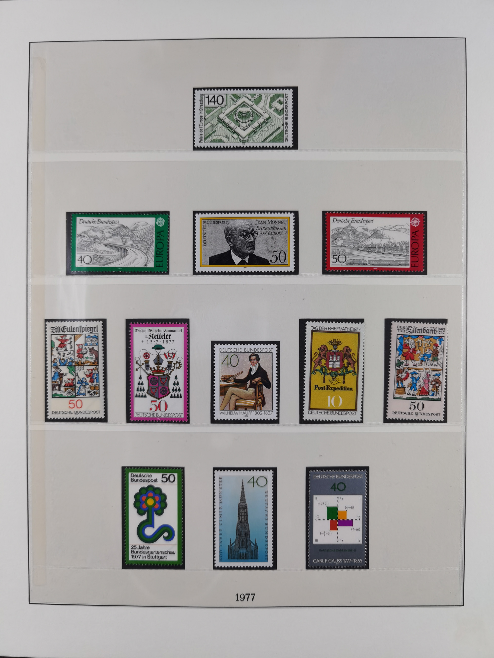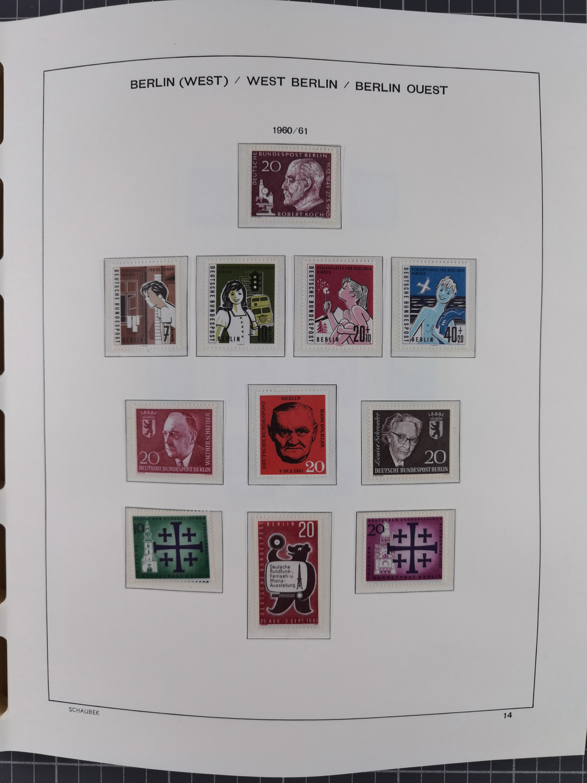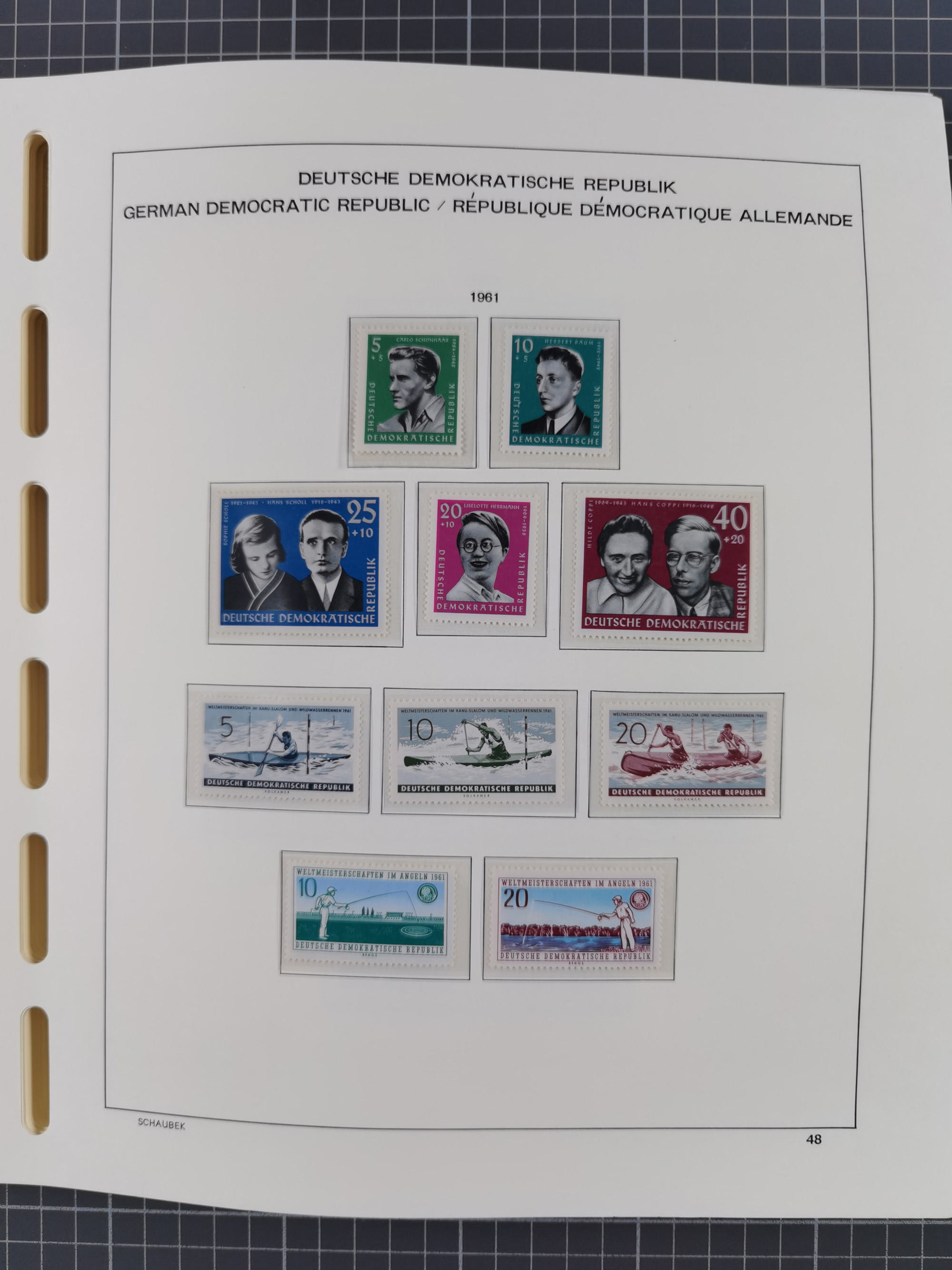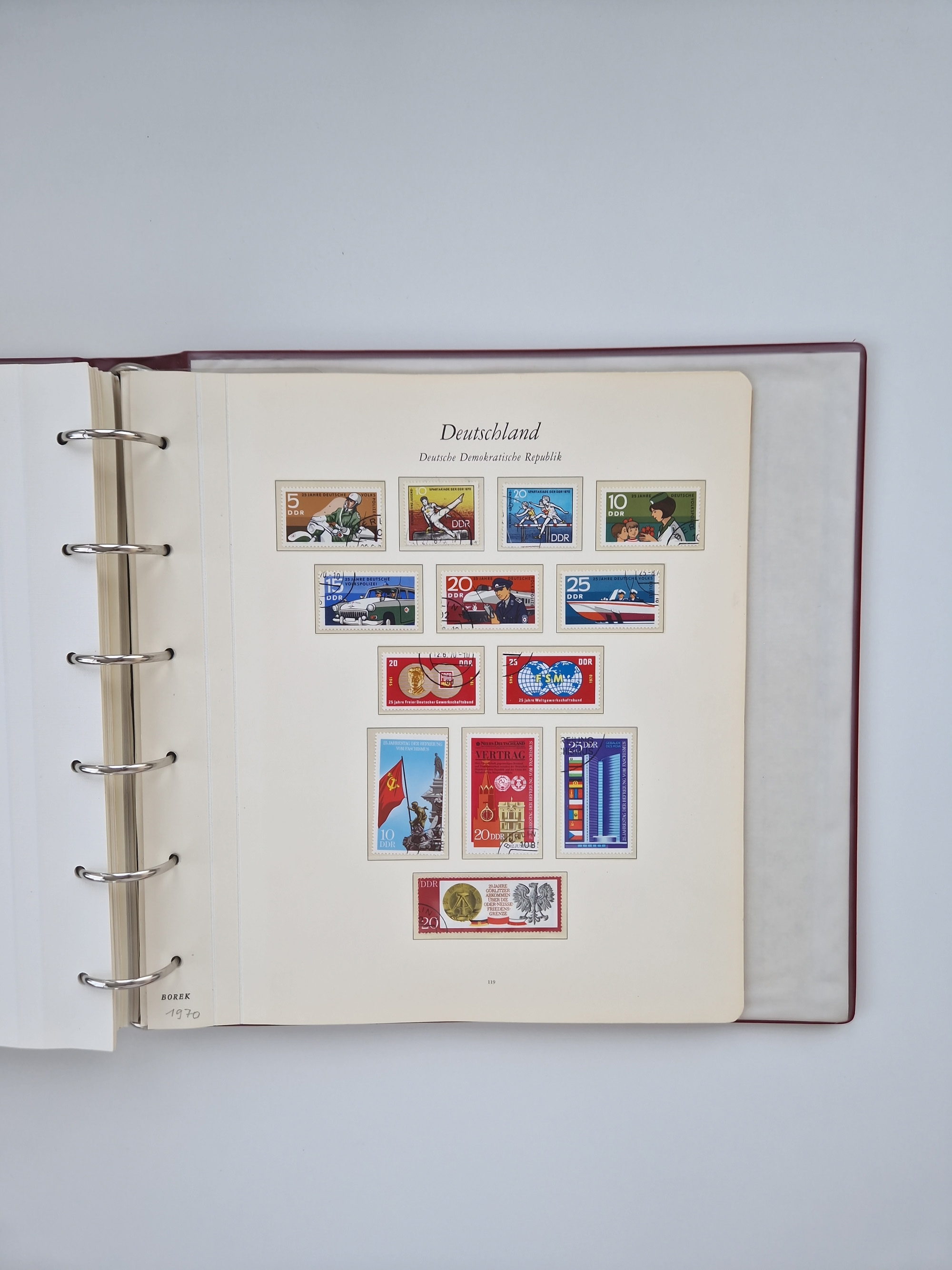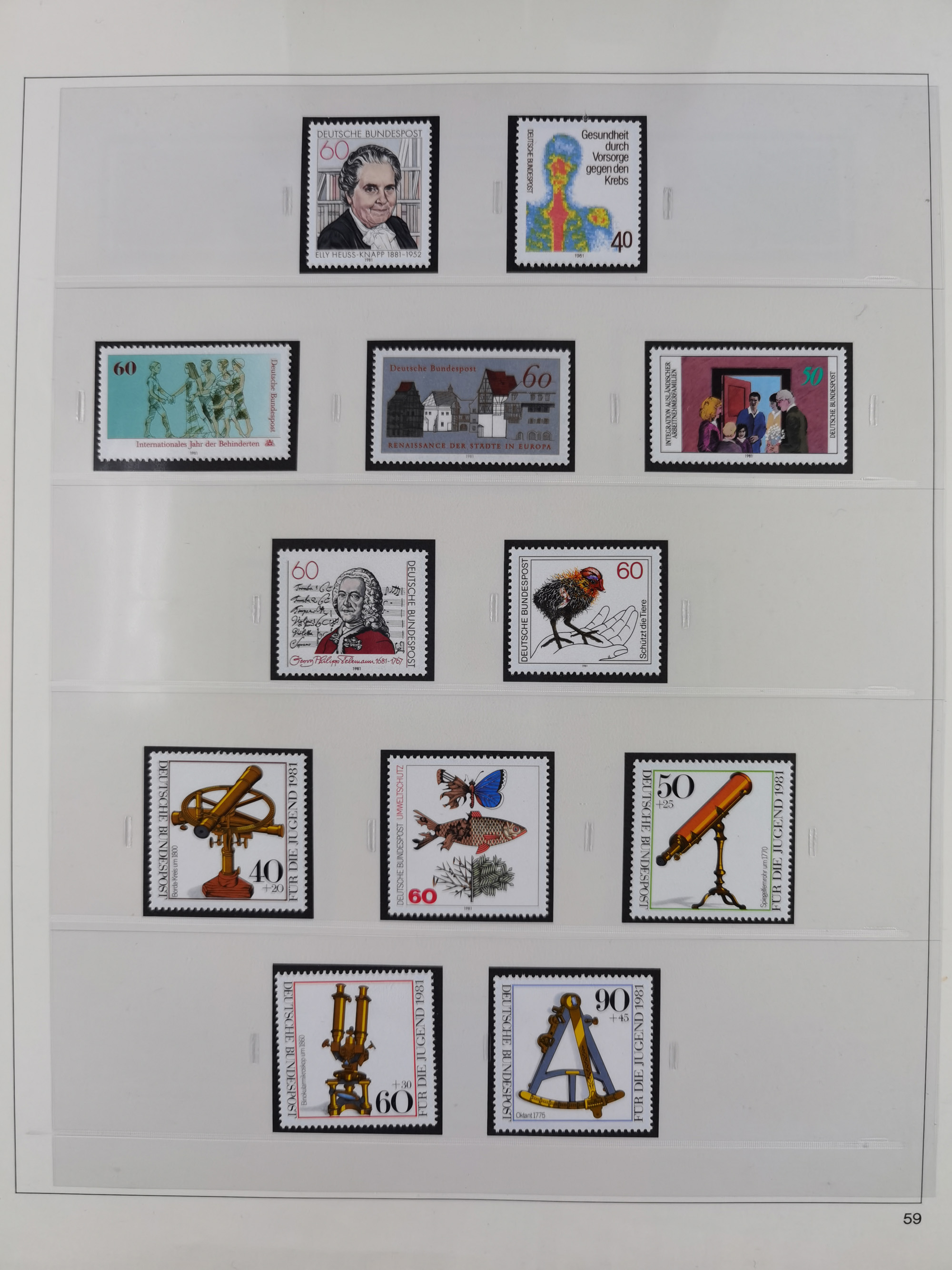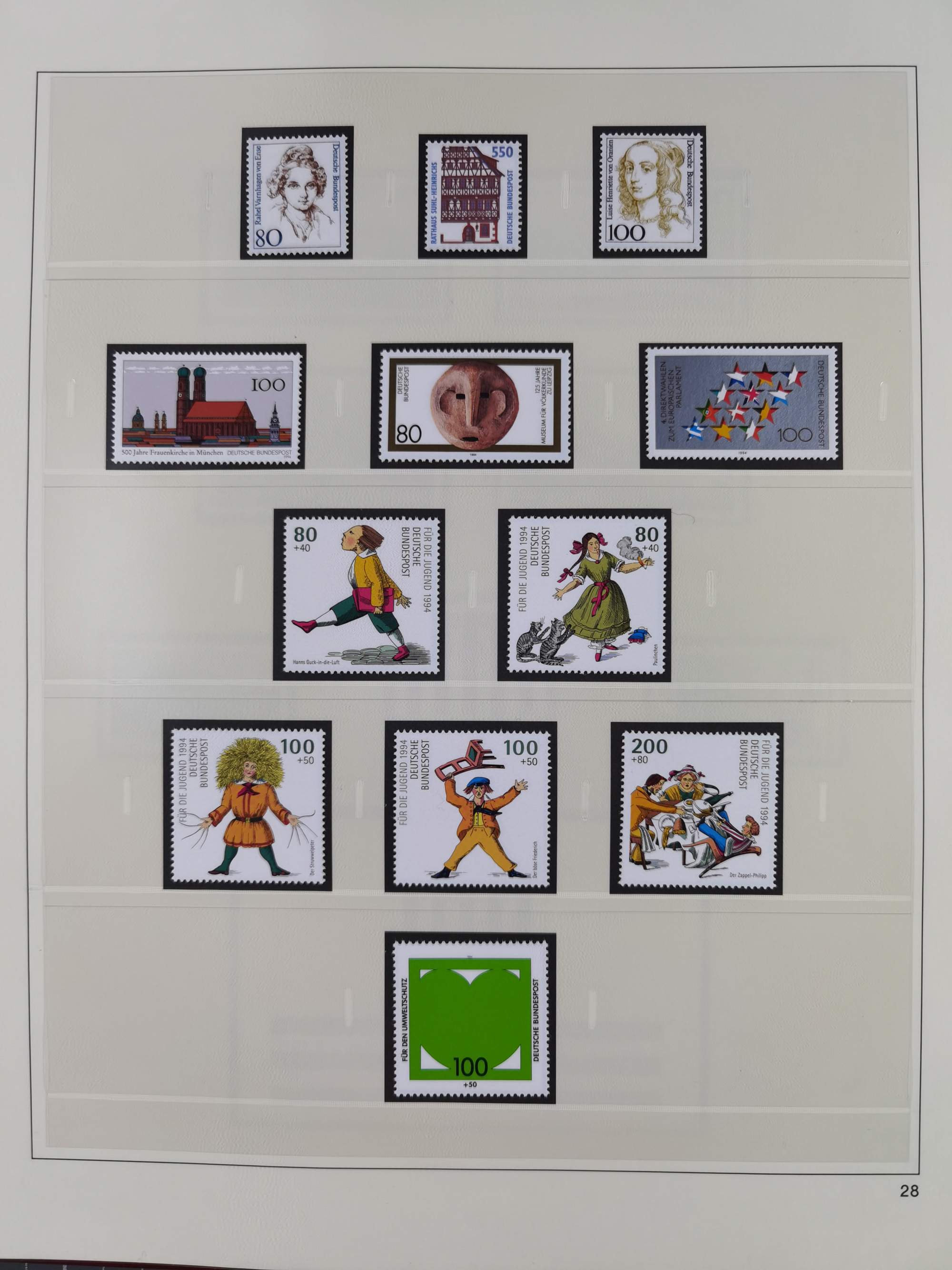 1948/90, in den Hauptnummern bis 1960 komplette postfrische Sammlungen Berlin 1948-90 inkl. Schwarzaufdruck, Rotaufdruck sign. Dub und Block 1, Bundesrepublik 1949-72 inkl. Posthornsatz, sowie DDR 1949-71 inkl. ausgiebigen Teilen Zusammendrucke, es fehlen bei den späten modernen Ausgaben teils einzelne Werte oder Sätze, gute Erhaltung, Alben mit Lagerspuren, in 11 Vordruckalben