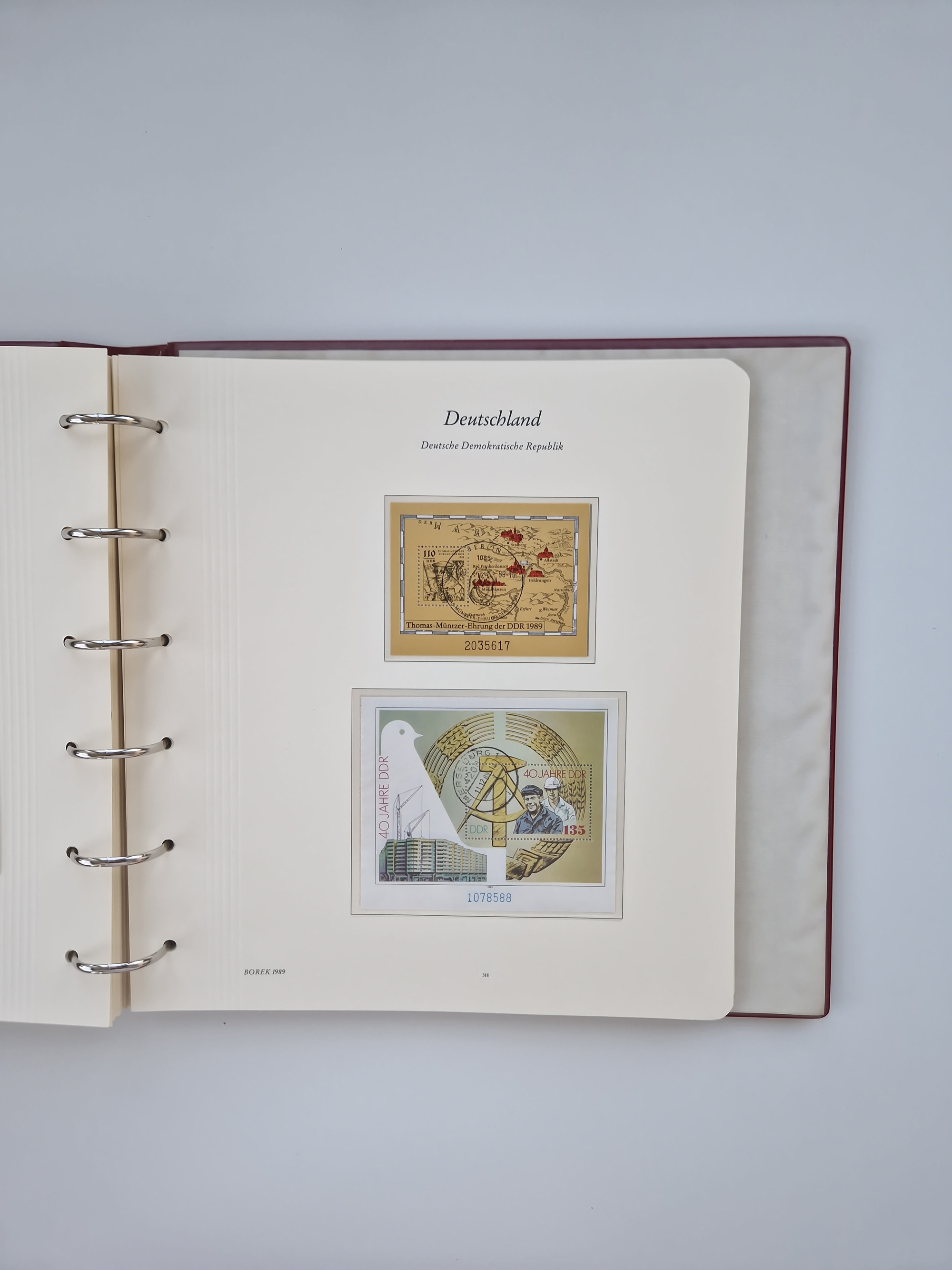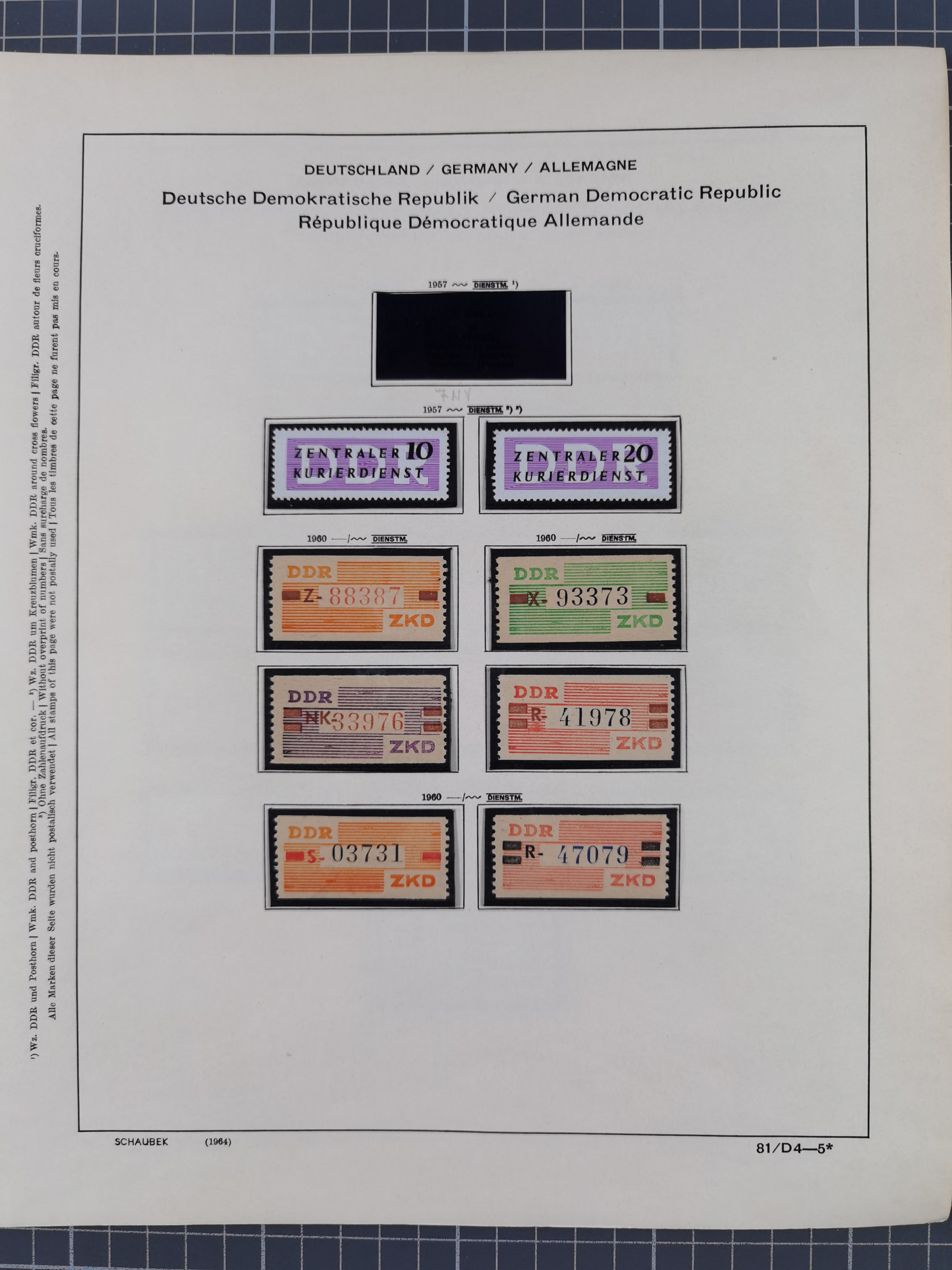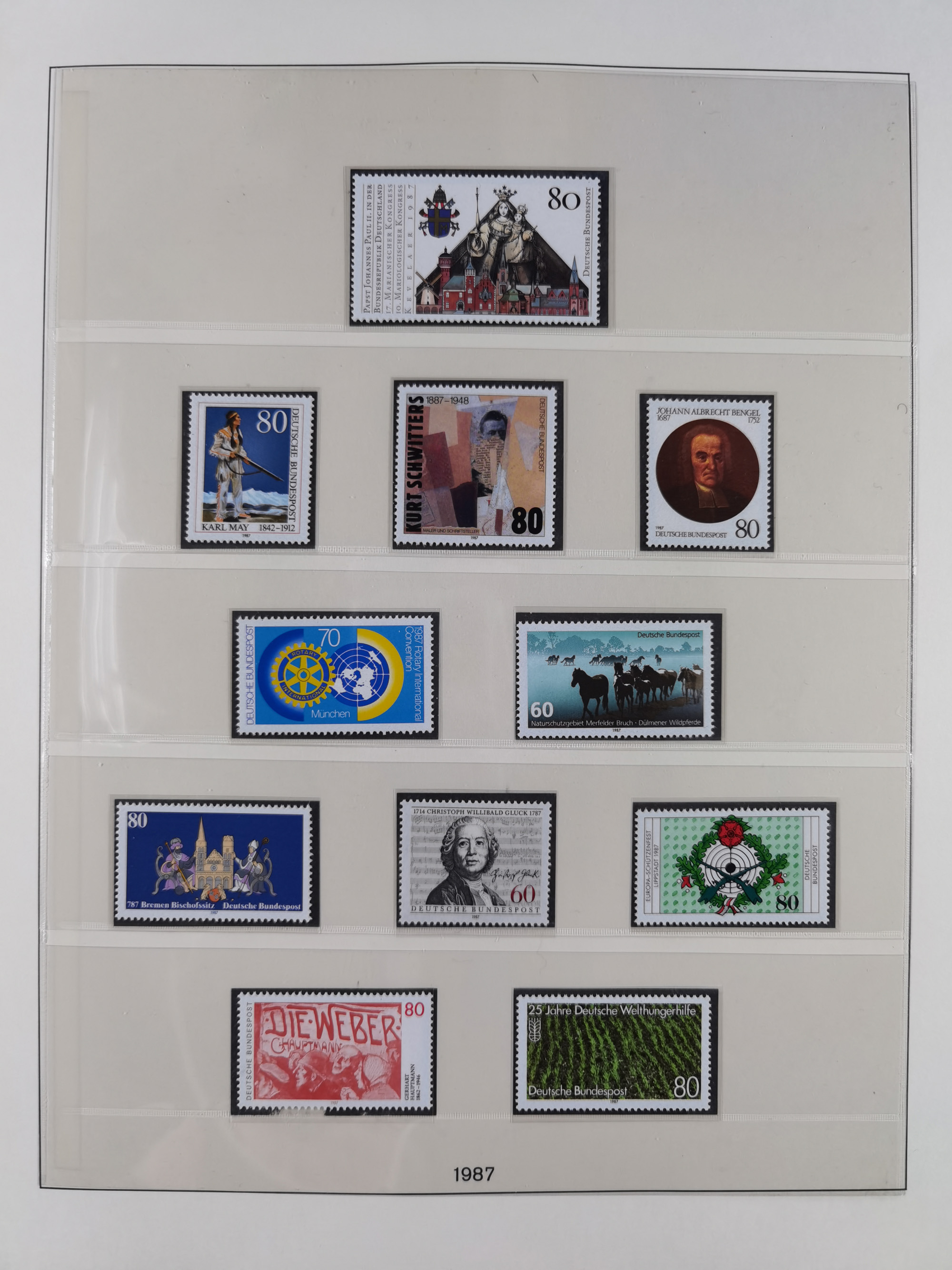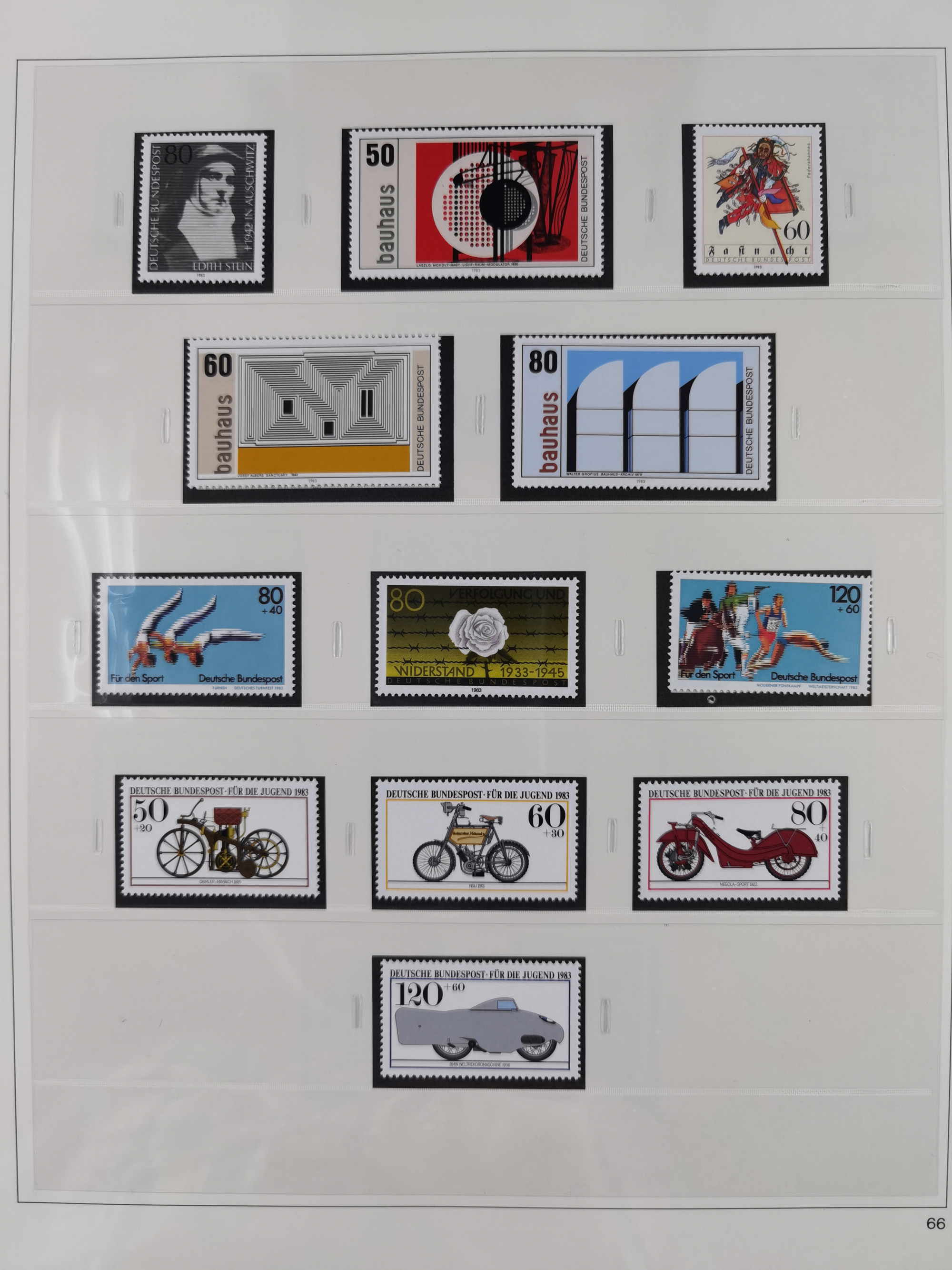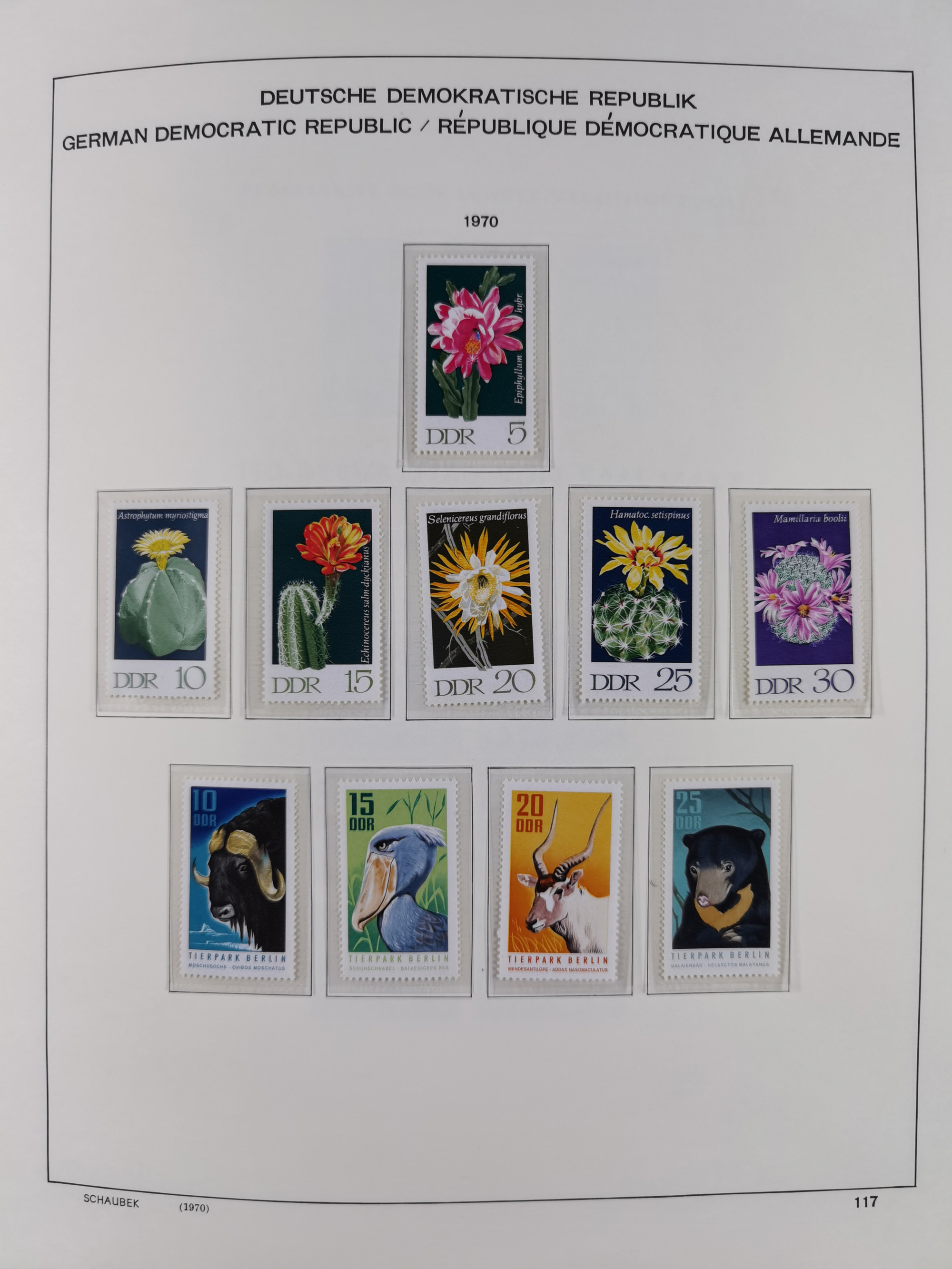 1948/90, in den Hauptnummern bis 1960 komplette postfrische Sammlungen Berlin 1948-90 inkl. Schwarzaufdruck, Rotaufdruck sign. Dub und Block 1, Bundesrepublik 1949-72 inkl. Posthornsatz, sowie DDR 1949-71 inkl. ausgiebigen Teilen Zusammendrucke, es fehlen bei den späten modernen Ausgaben teils einzelne Werte oder Sätze, gute Erhaltung, Alben mit Lagerspuren, in 11 Vordruckalben