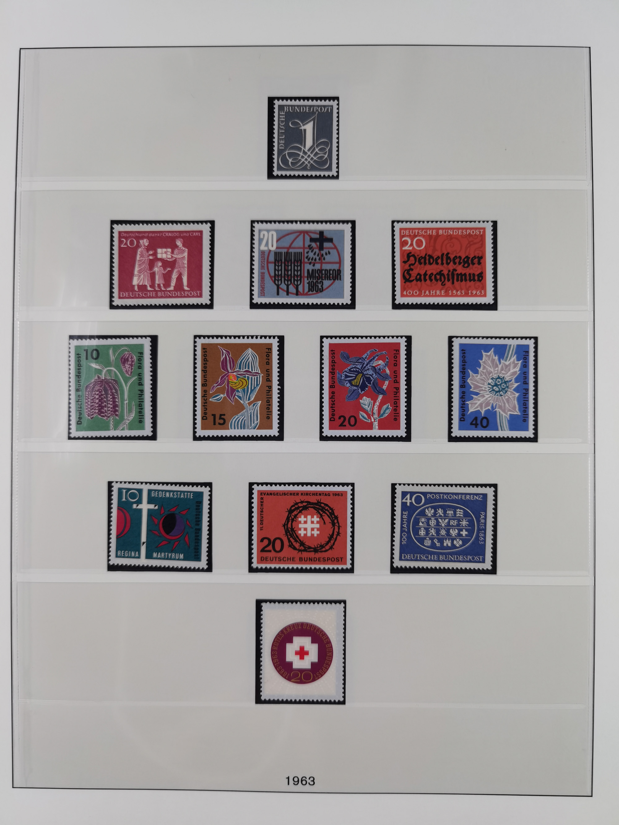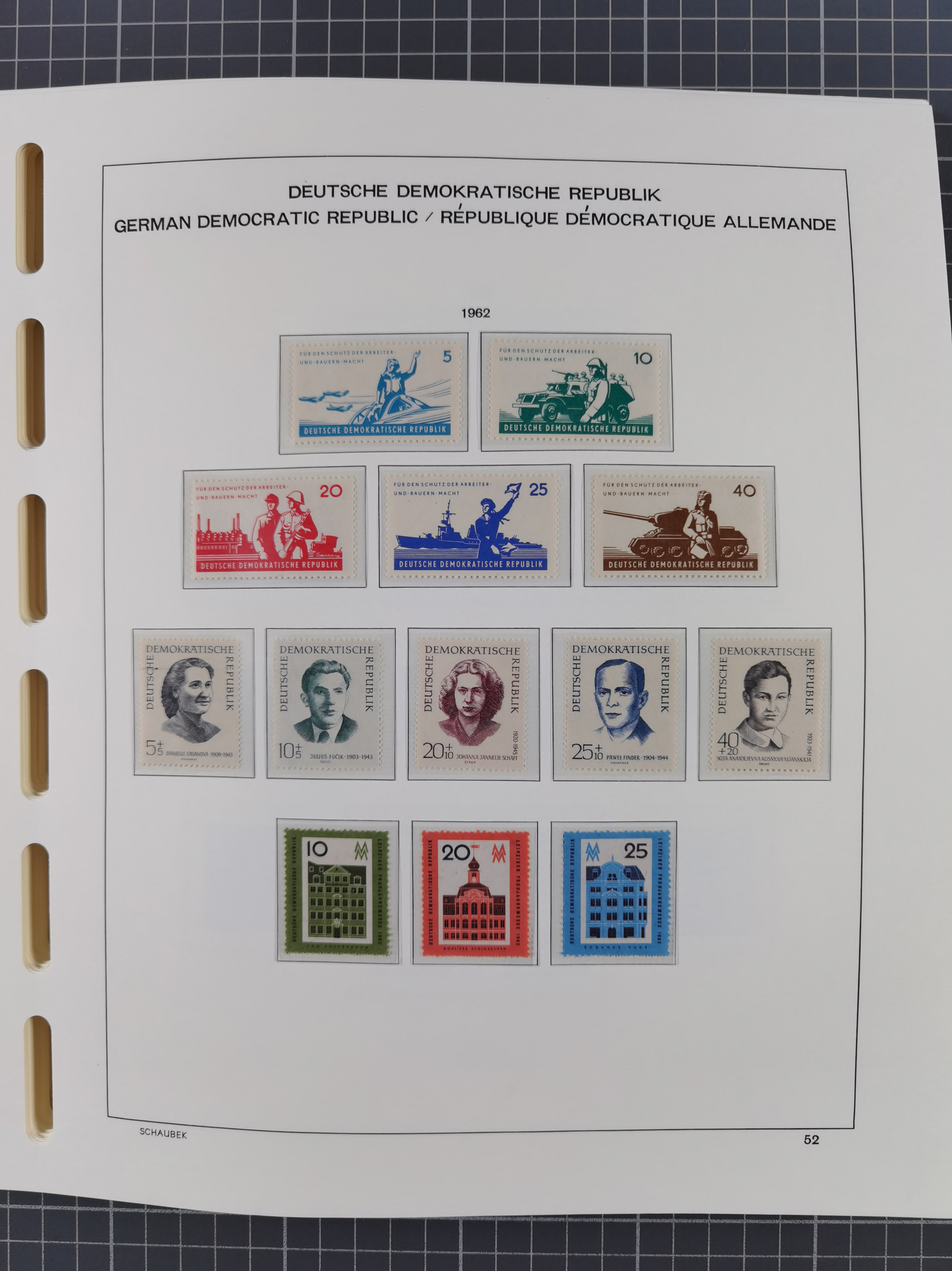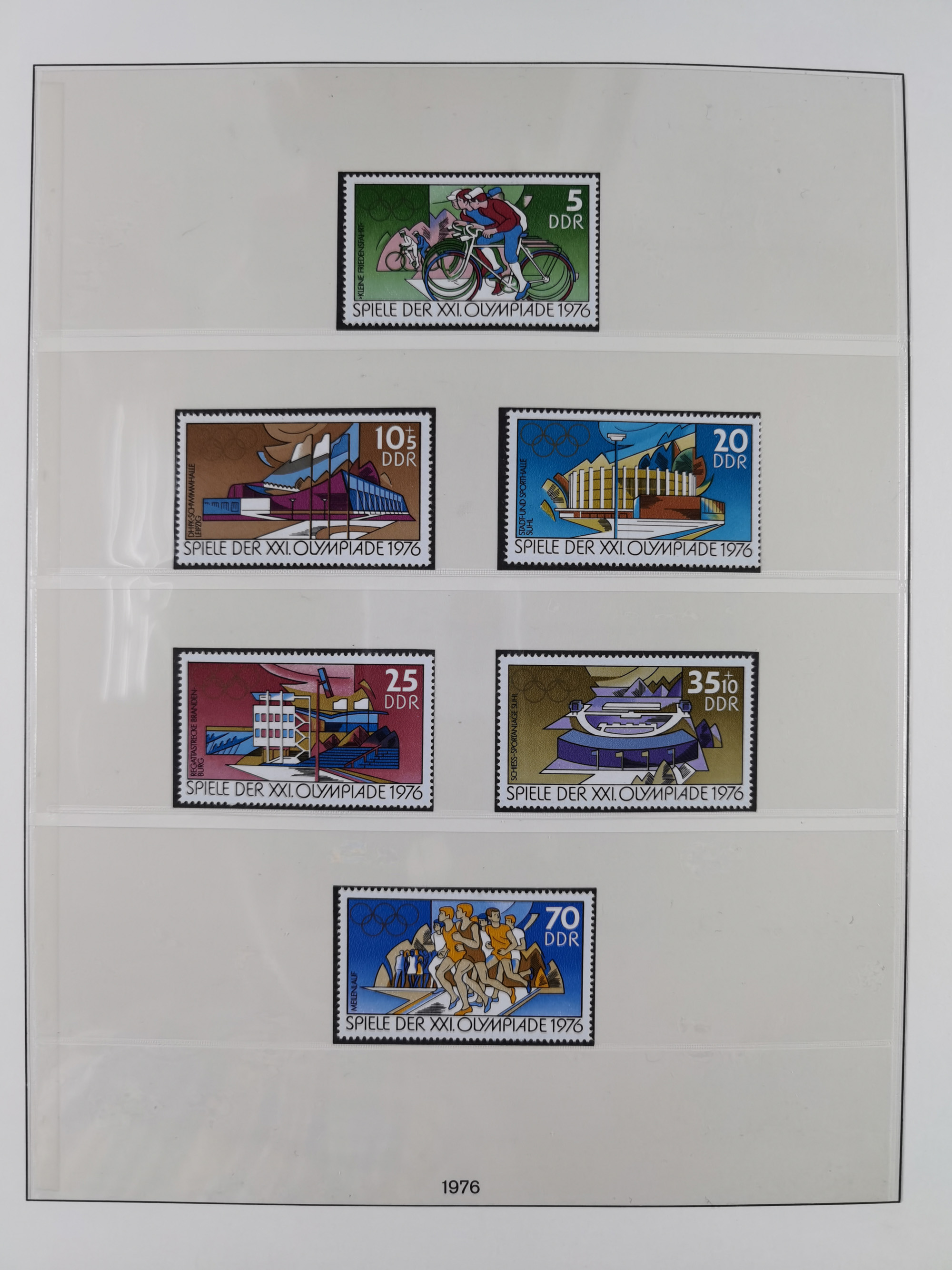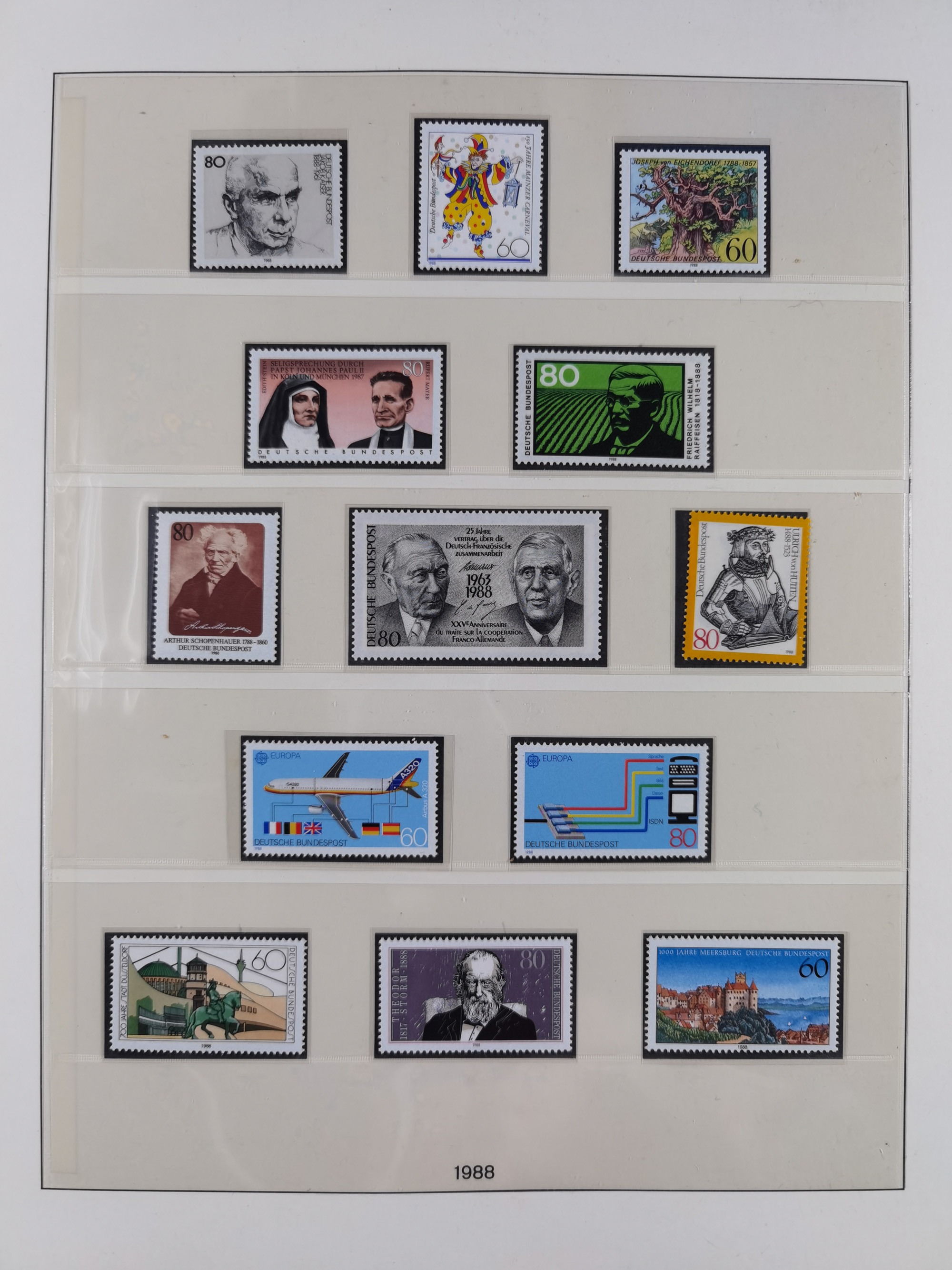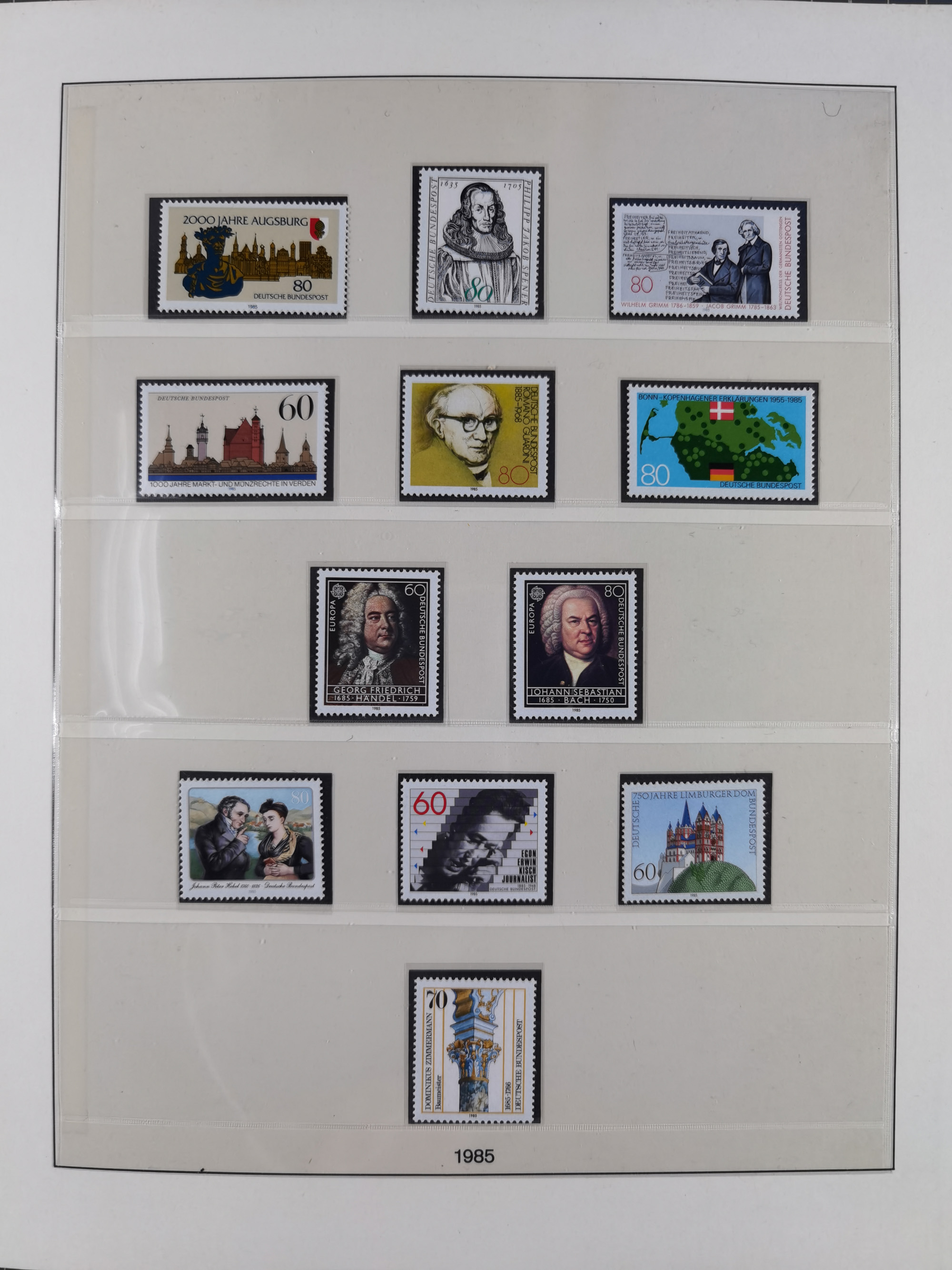 1948/90, in den Hauptnummern bis 1960 komplette postfrische Sammlungen Berlin 1948-90 inkl. Schwarzaufdruck, Rotaufdruck sign. Dub und Block 1, Bundesrepublik 1949-72 inkl. Posthornsatz, sowie DDR 1949-71 inkl. ausgiebigen Teilen Zusammendrucke, es fehlen bei den späten modernen Ausgaben teils einzelne Werte oder Sätze, gute Erhaltung, Alben mit Lagerspuren, in 11 Vordruckalben