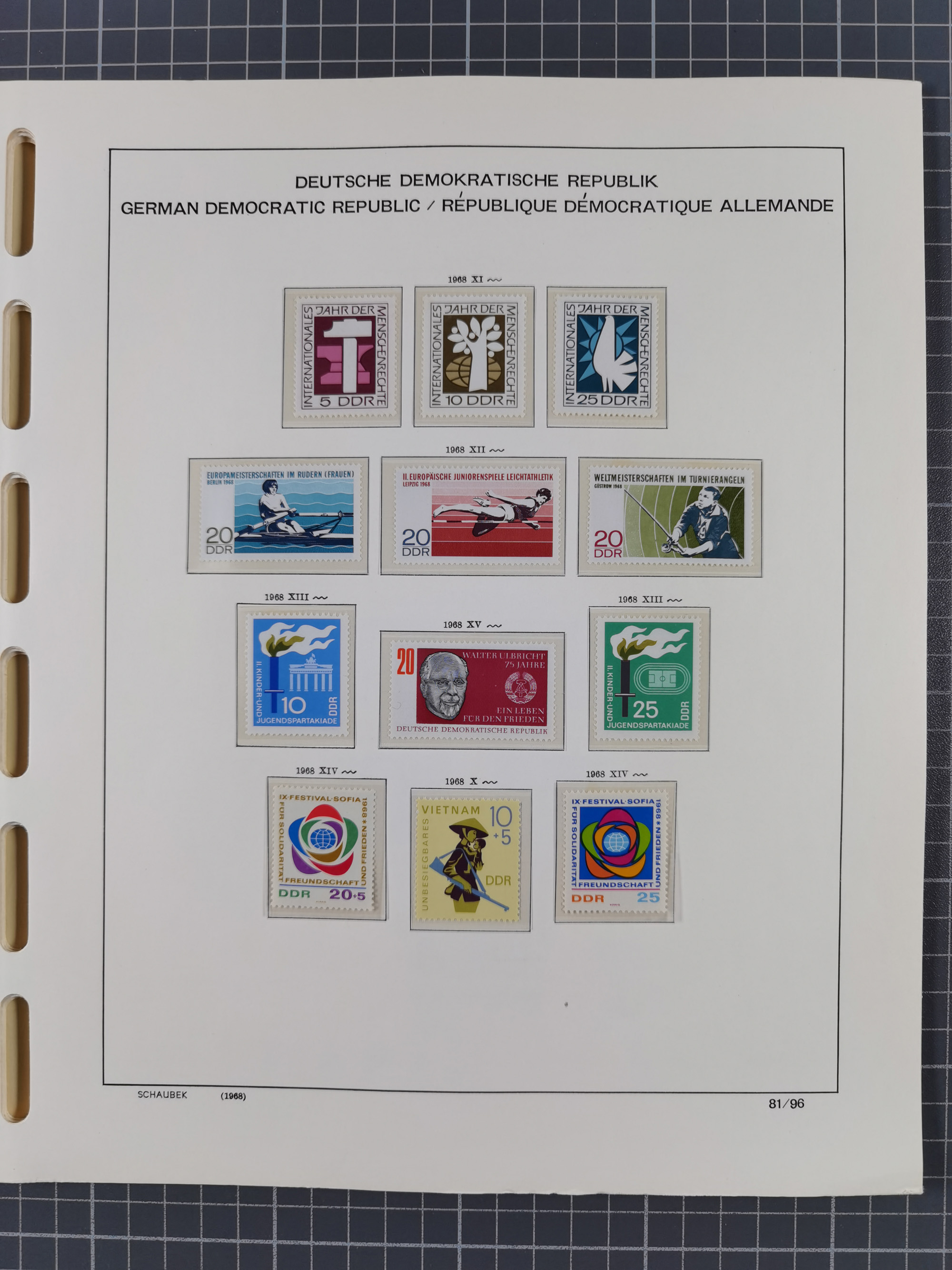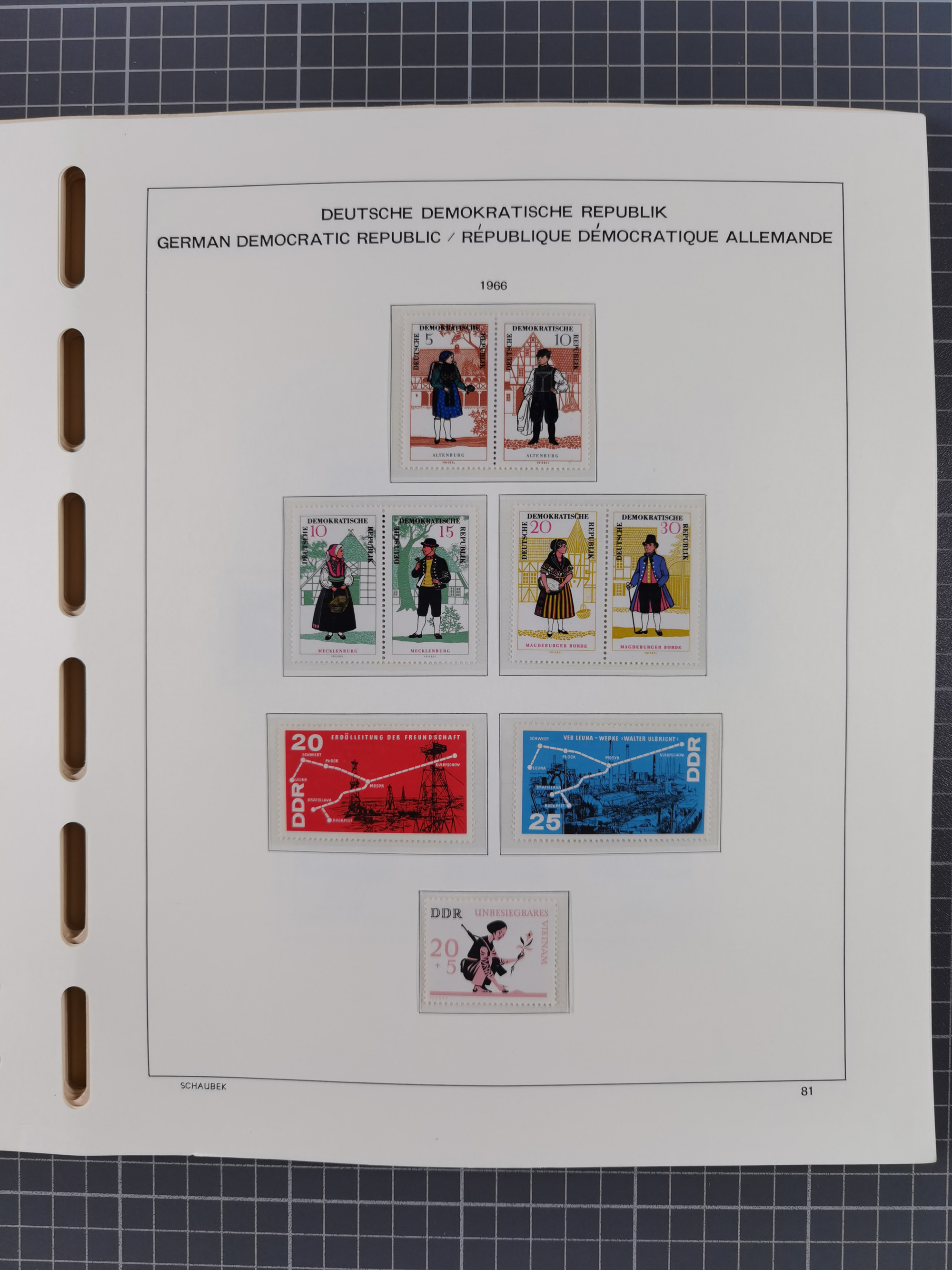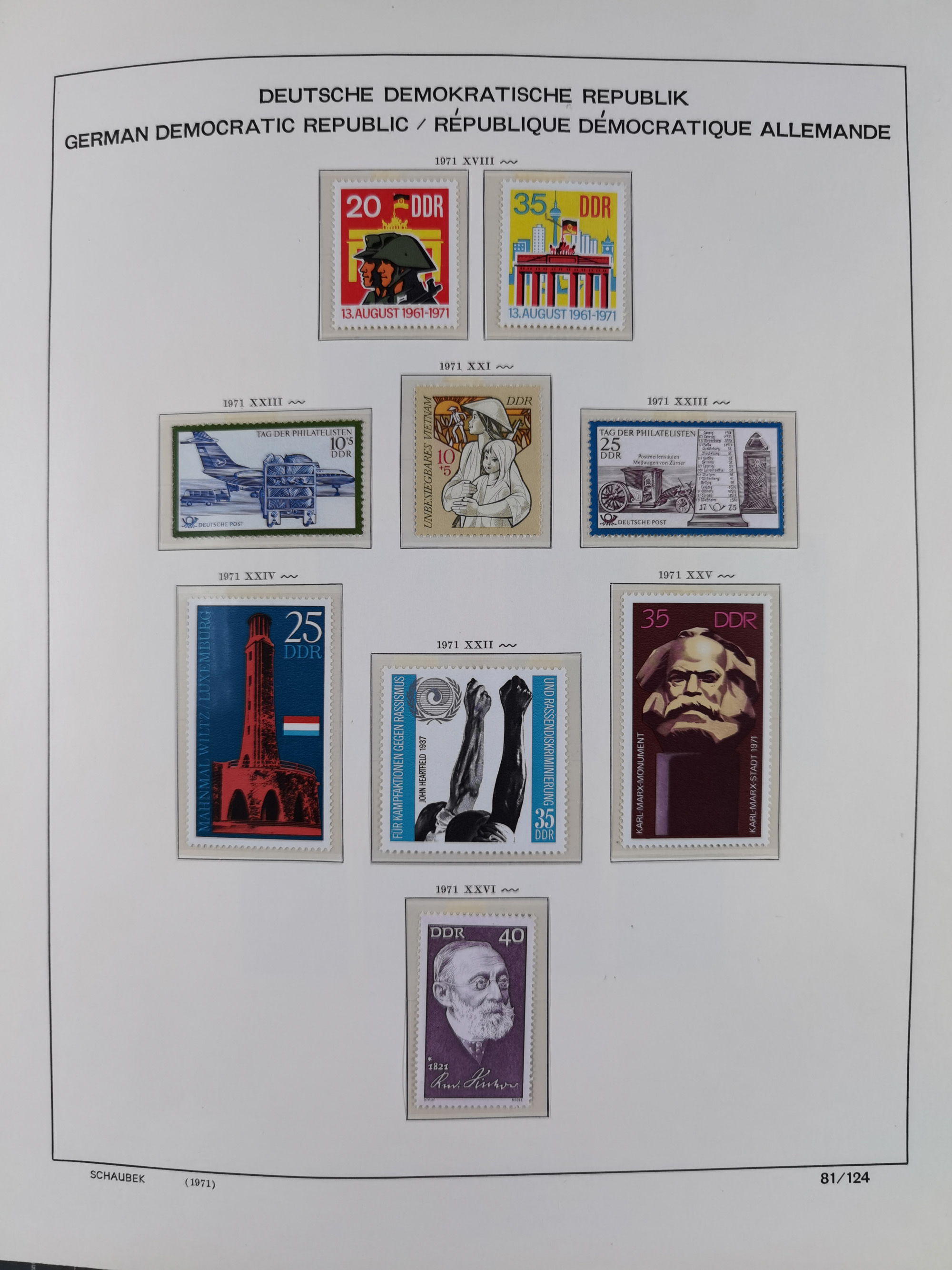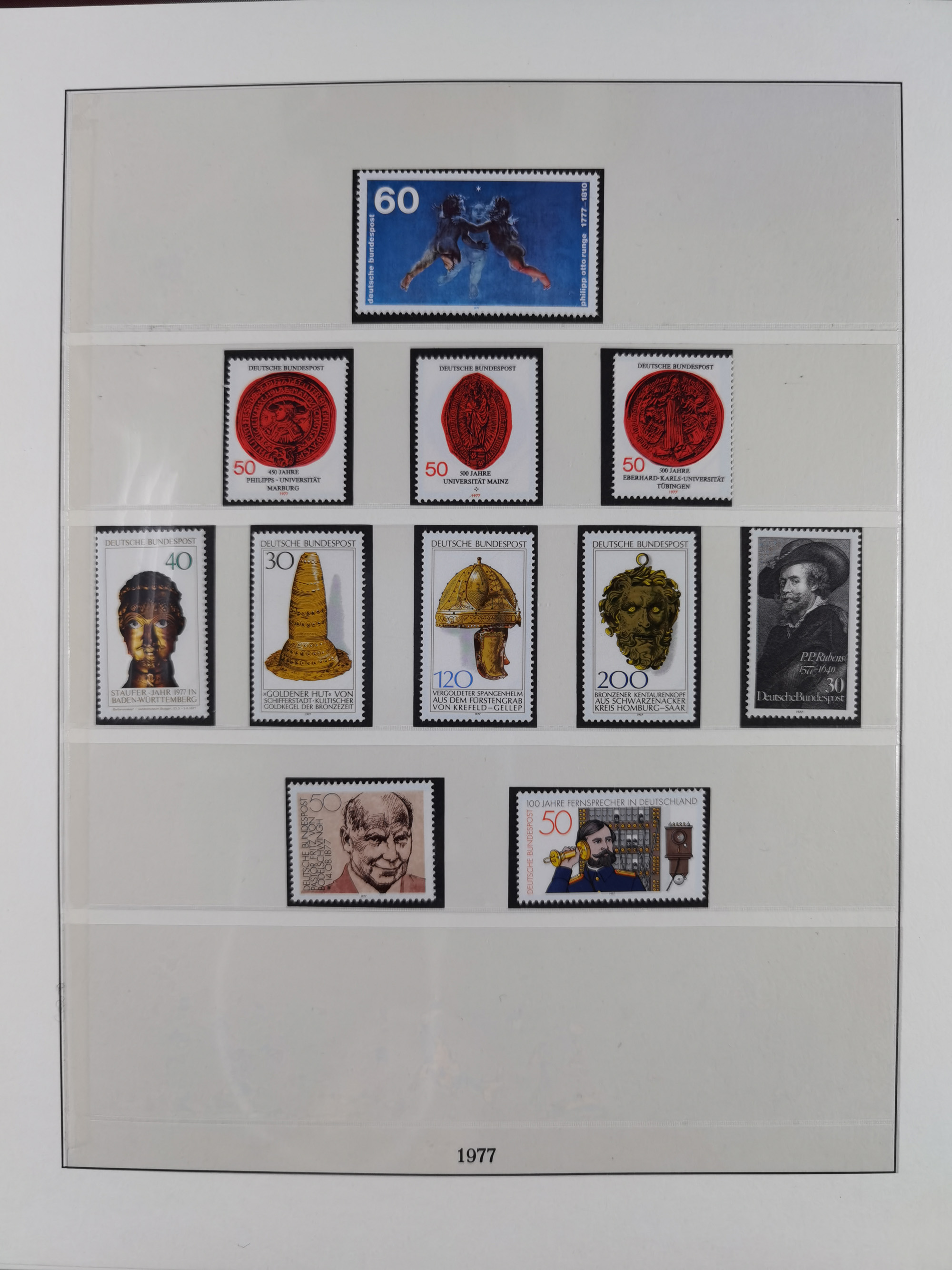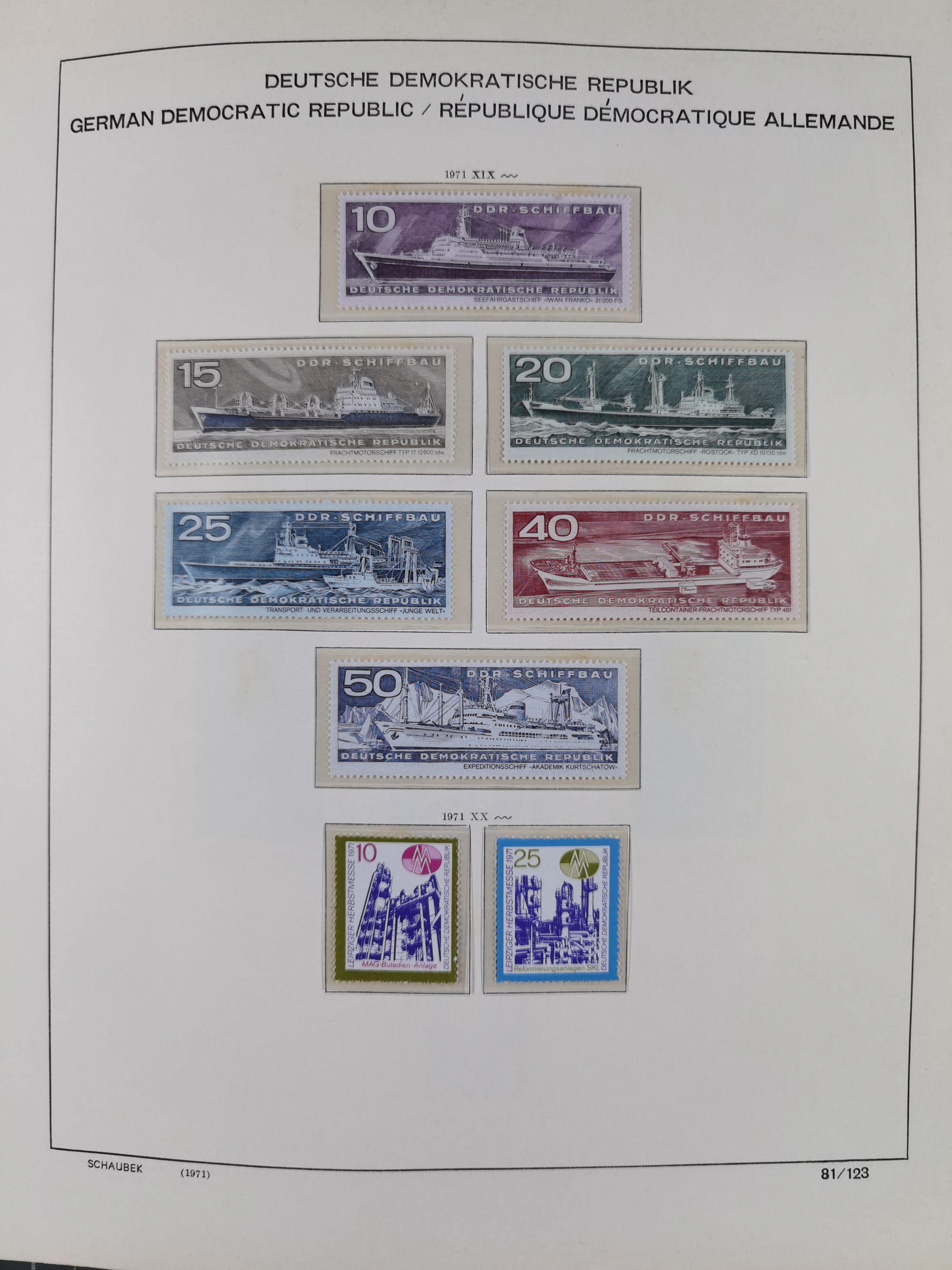 1948/90, in den Hauptnummern bis 1960 komplette postfrische Sammlungen Berlin 1948-90 inkl. Schwarzaufdruck, Rotaufdruck sign. Dub und Block 1, Bundesrepublik 1949-72 inkl. Posthornsatz, sowie DDR 1949-71 inkl. ausgiebigen Teilen Zusammendrucke, es fehlen bei den späten modernen Ausgaben teils einzelne Werte oder Sätze, gute Erhaltung, Alben mit Lagerspuren, in 11 Vordruckalben