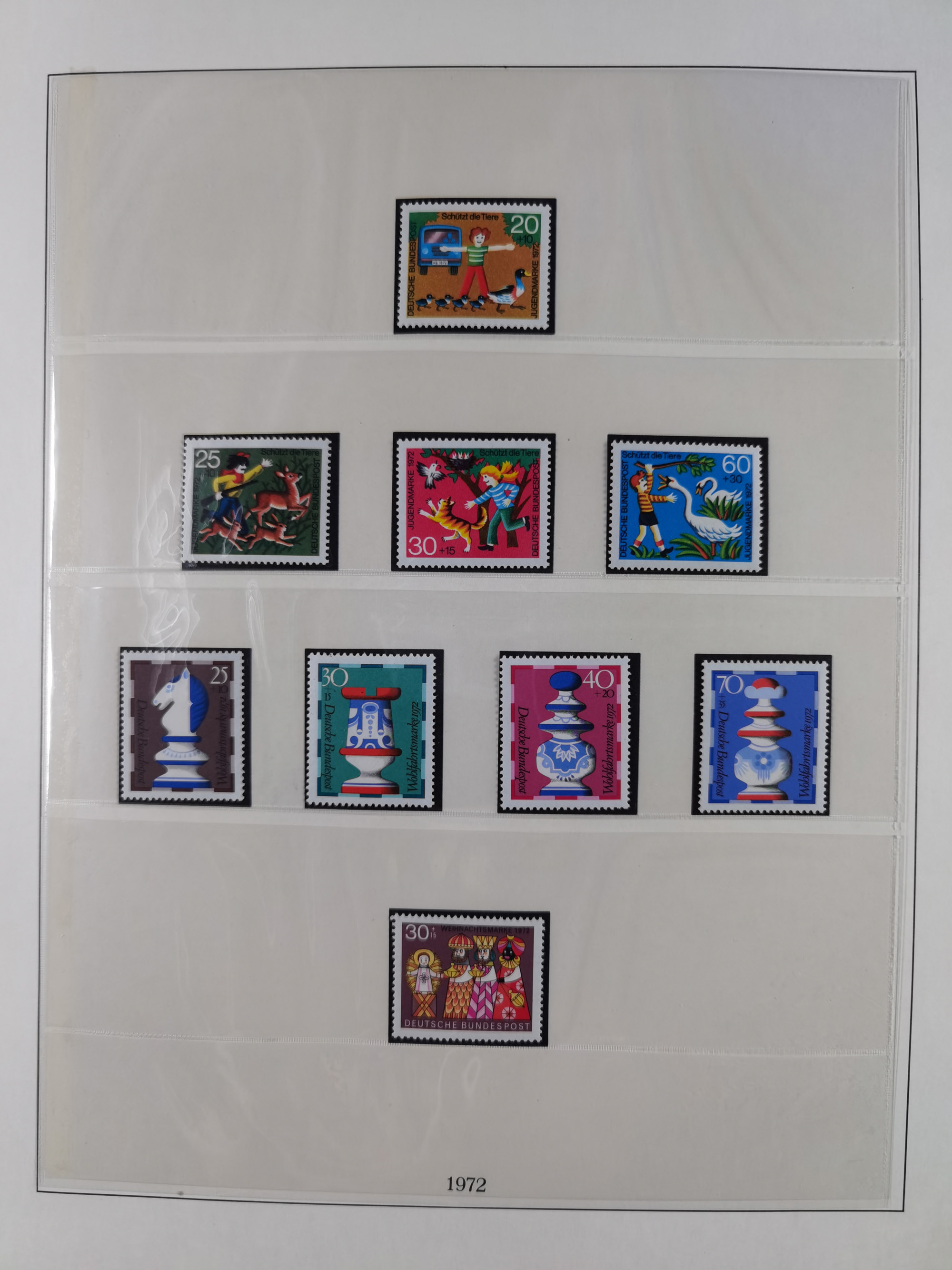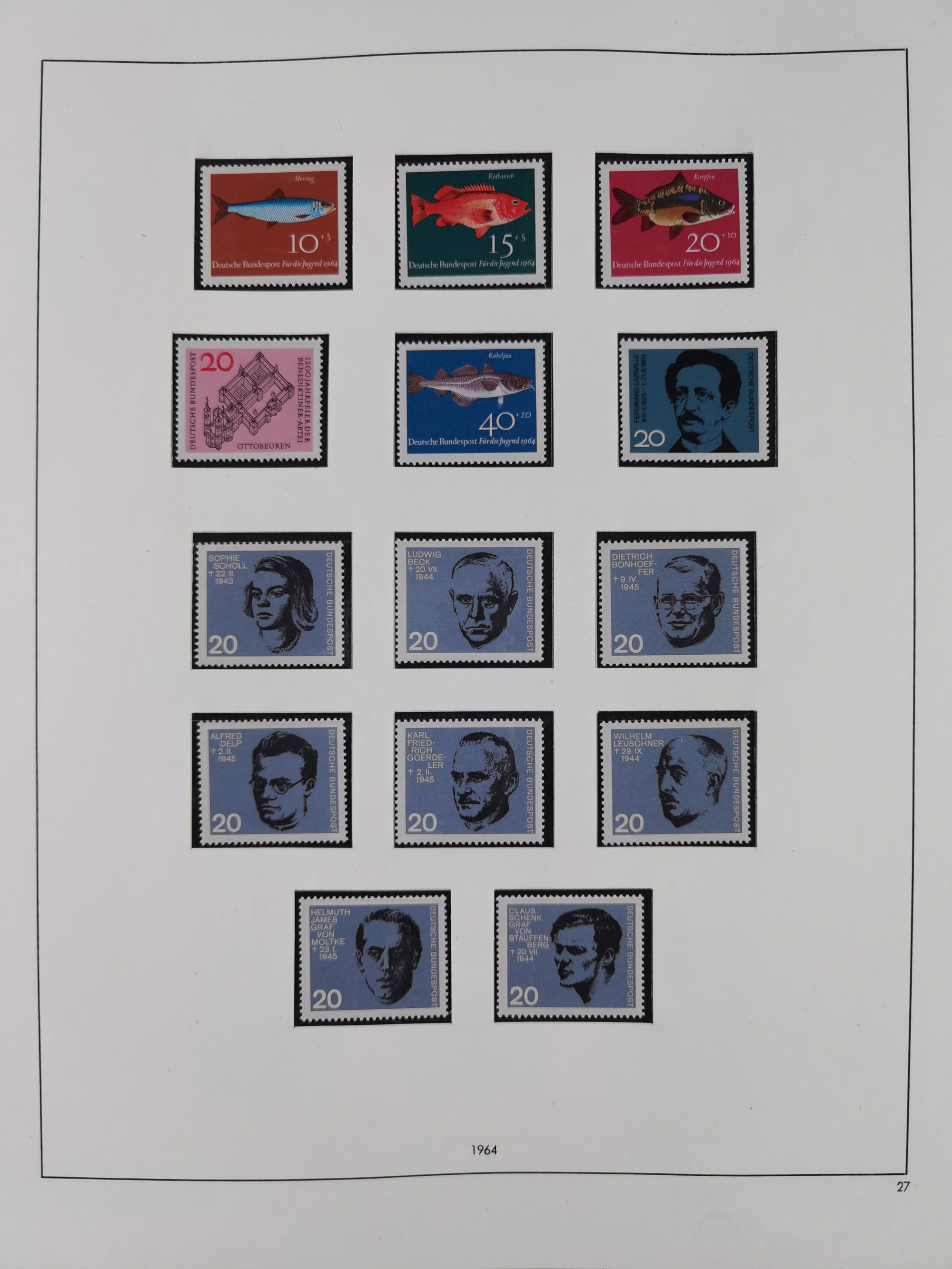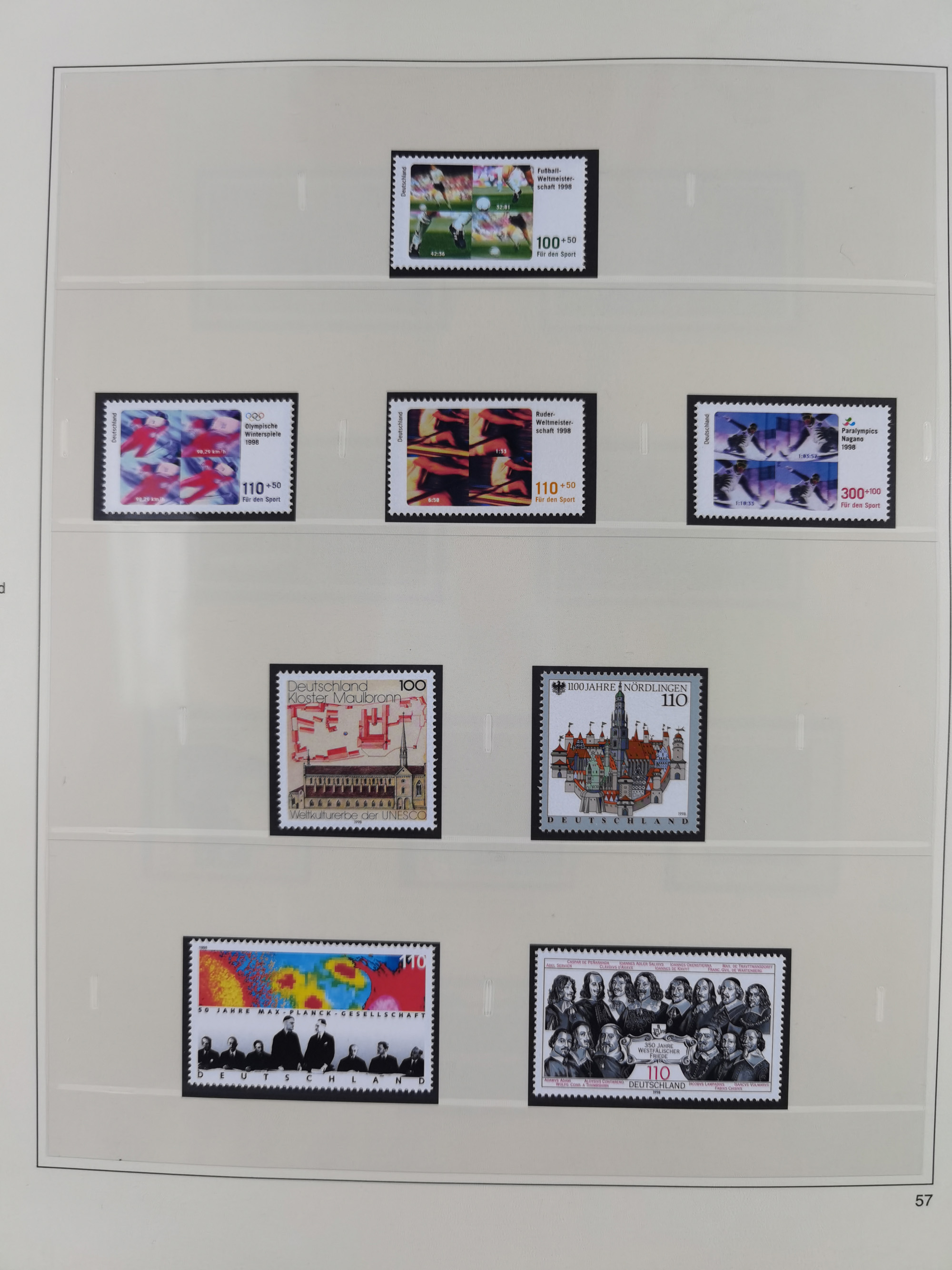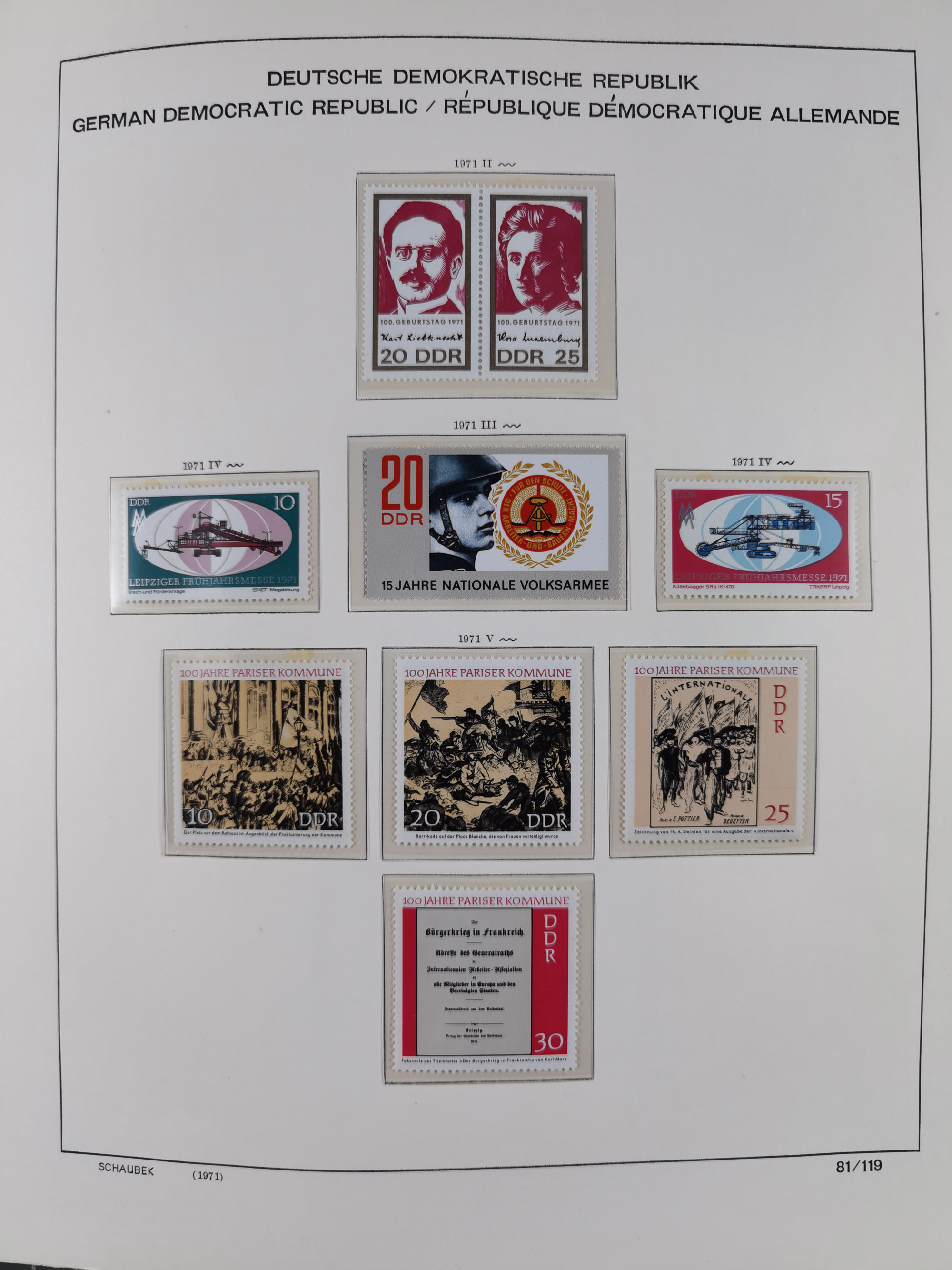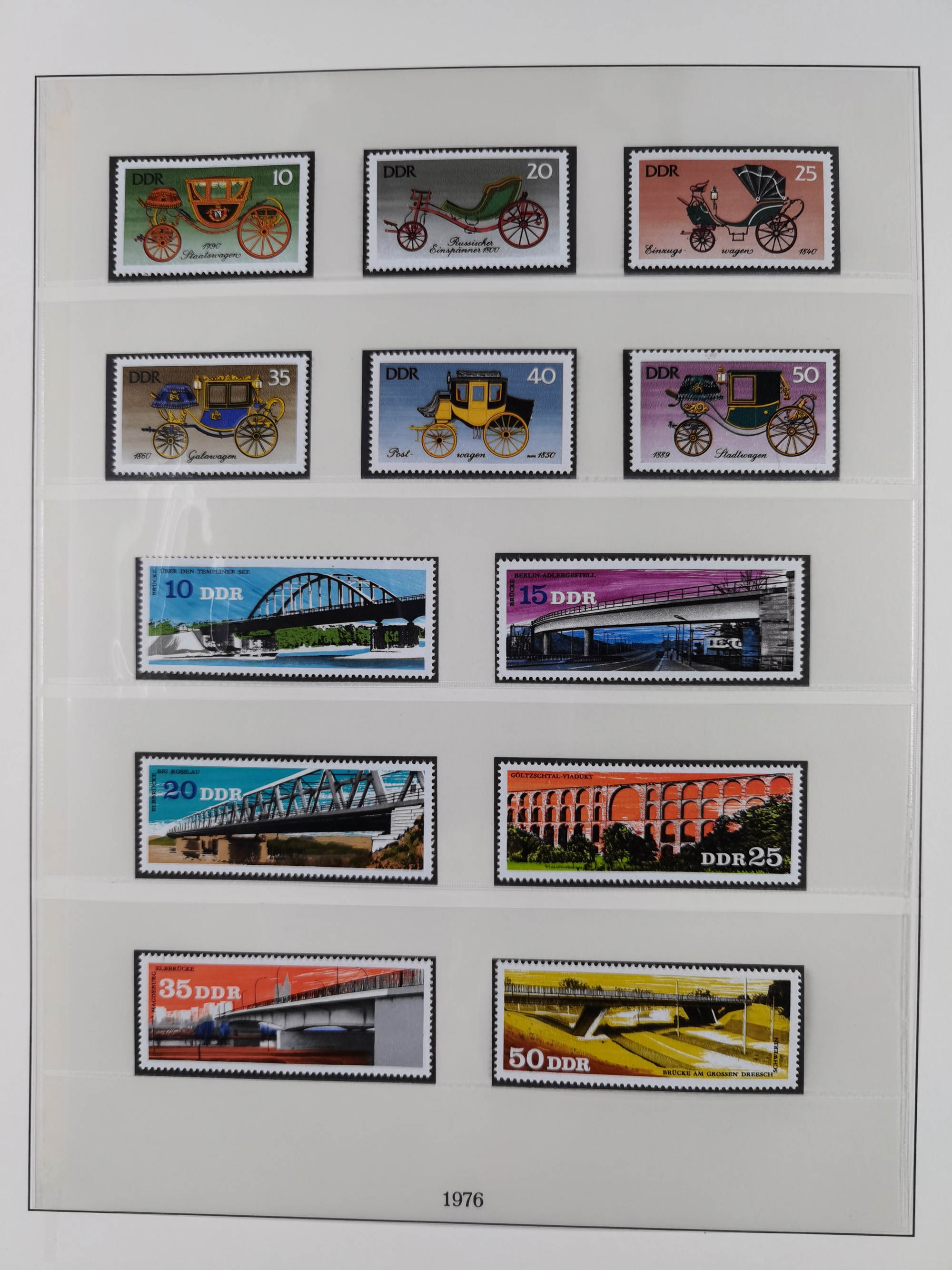 1948/90, in den Hauptnummern bis 1960 komplette postfrische Sammlungen Berlin 1948-90 inkl. Schwarzaufdruck, Rotaufdruck sign. Dub und Block 1, Bundesrepublik 1949-72 inkl. Posthornsatz, sowie DDR 1949-71 inkl. ausgiebigen Teilen Zusammendrucke, es fehlen bei den späten modernen Ausgaben teils einzelne Werte oder Sätze, gute Erhaltung, Alben mit Lagerspuren, in 11 Vordruckalben