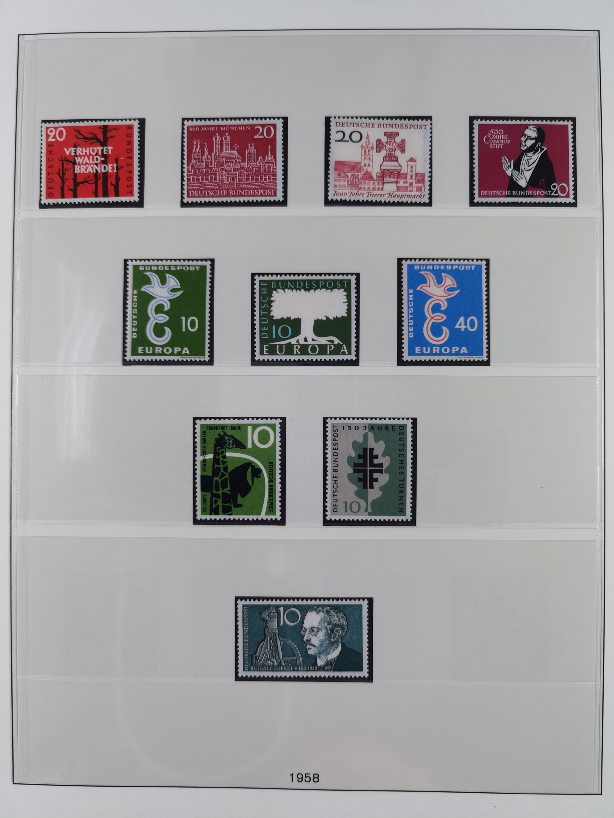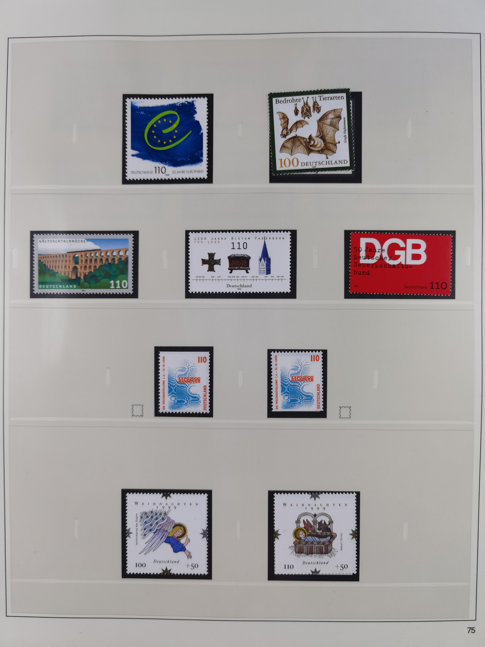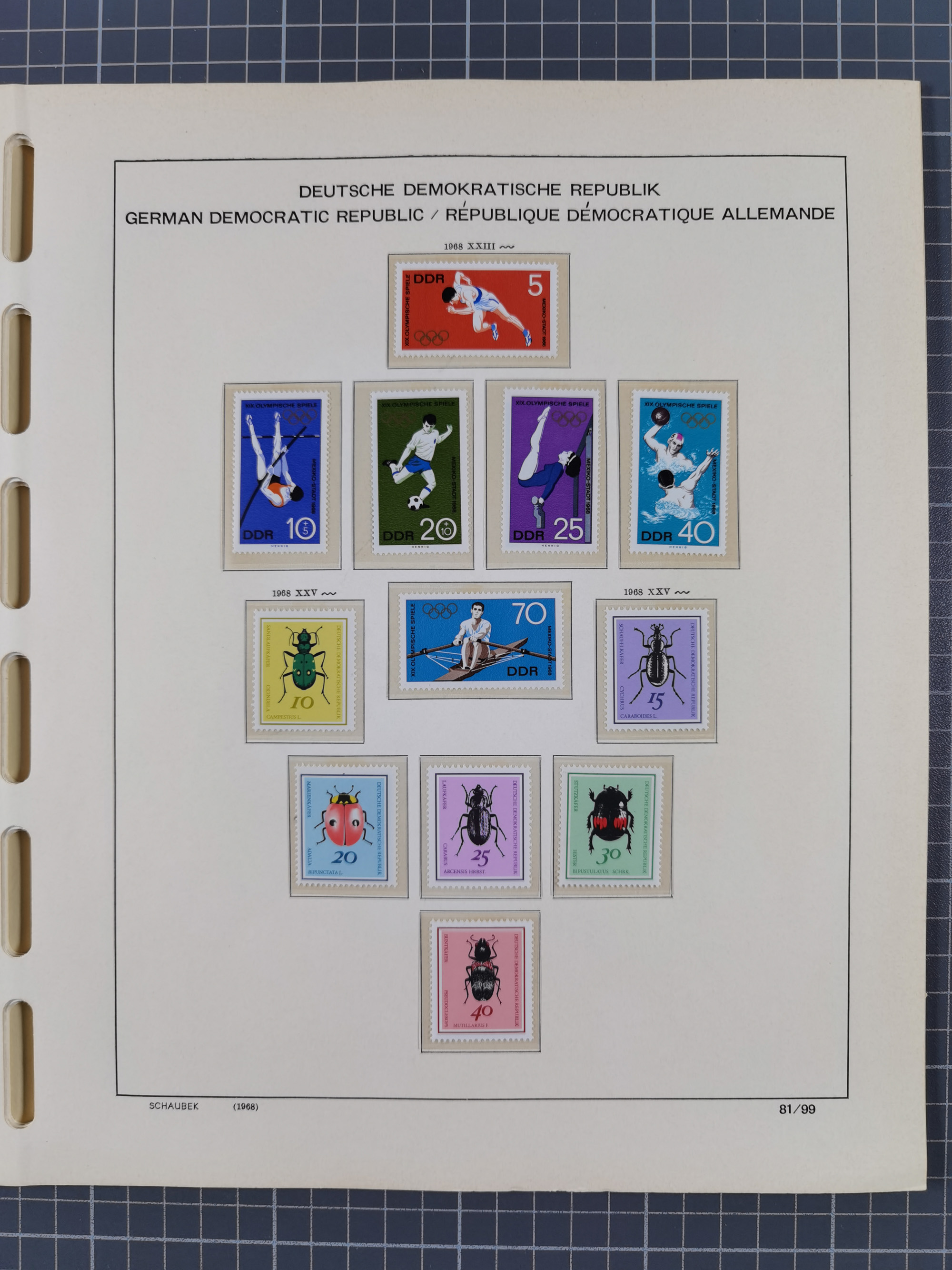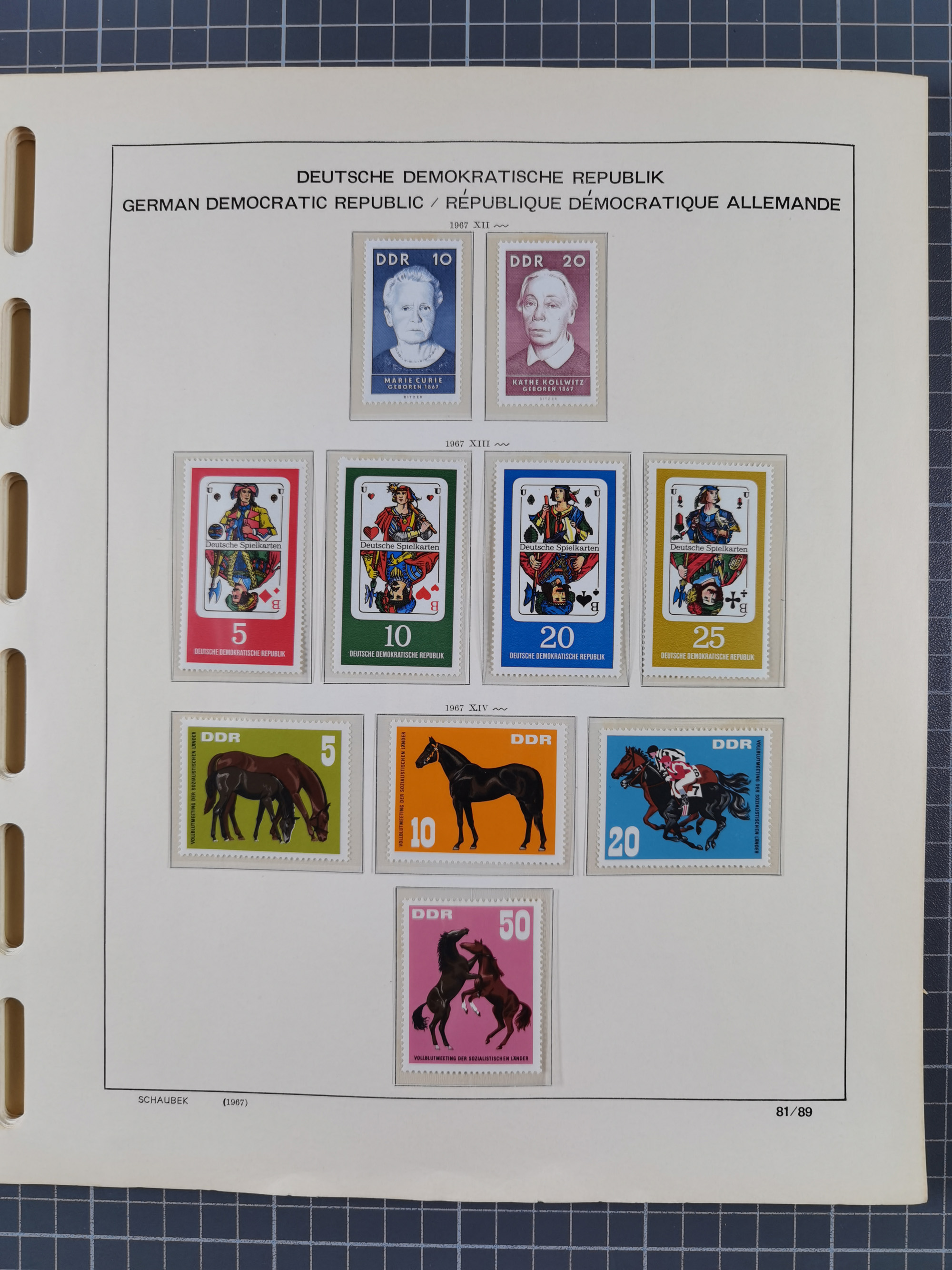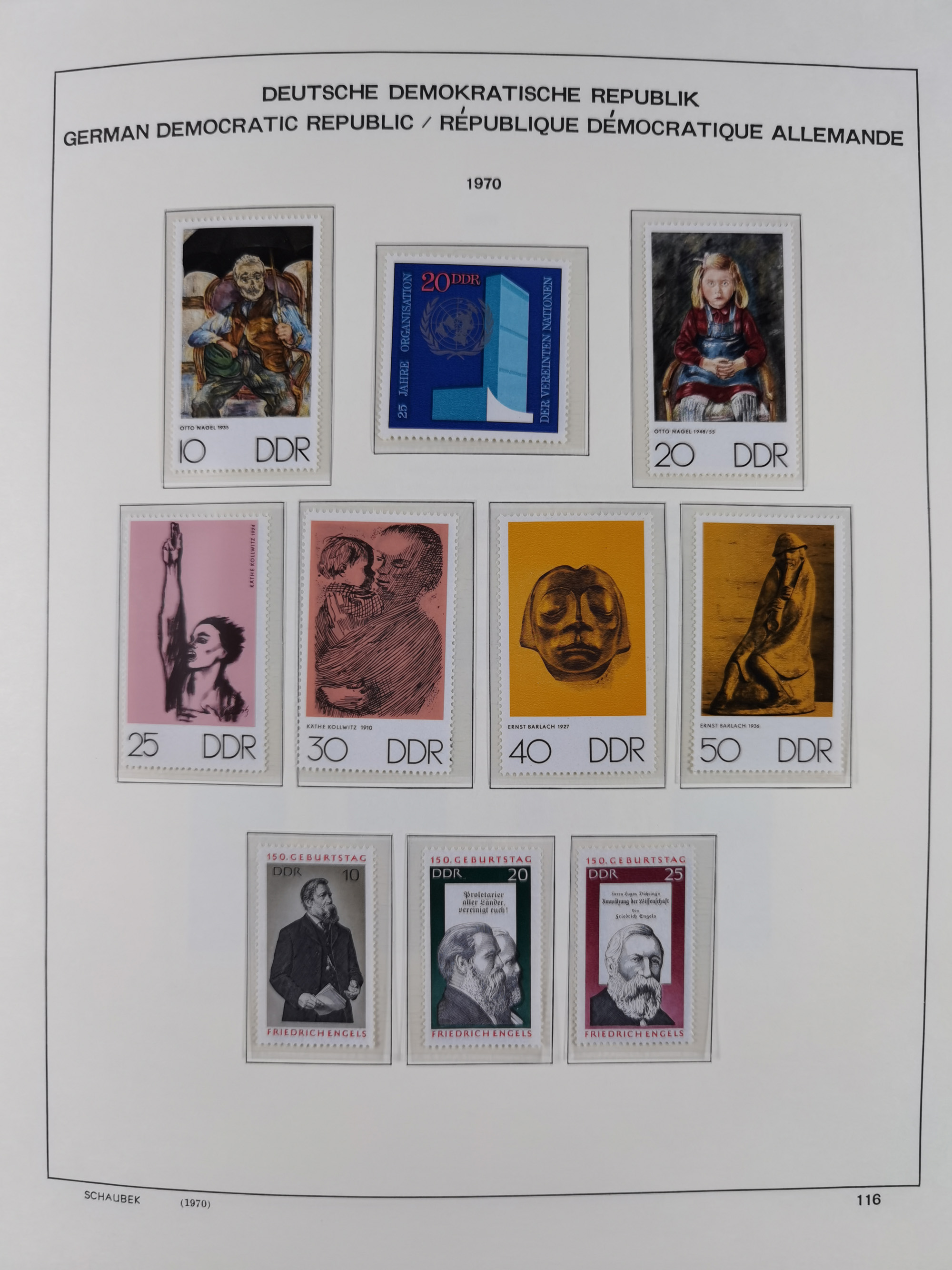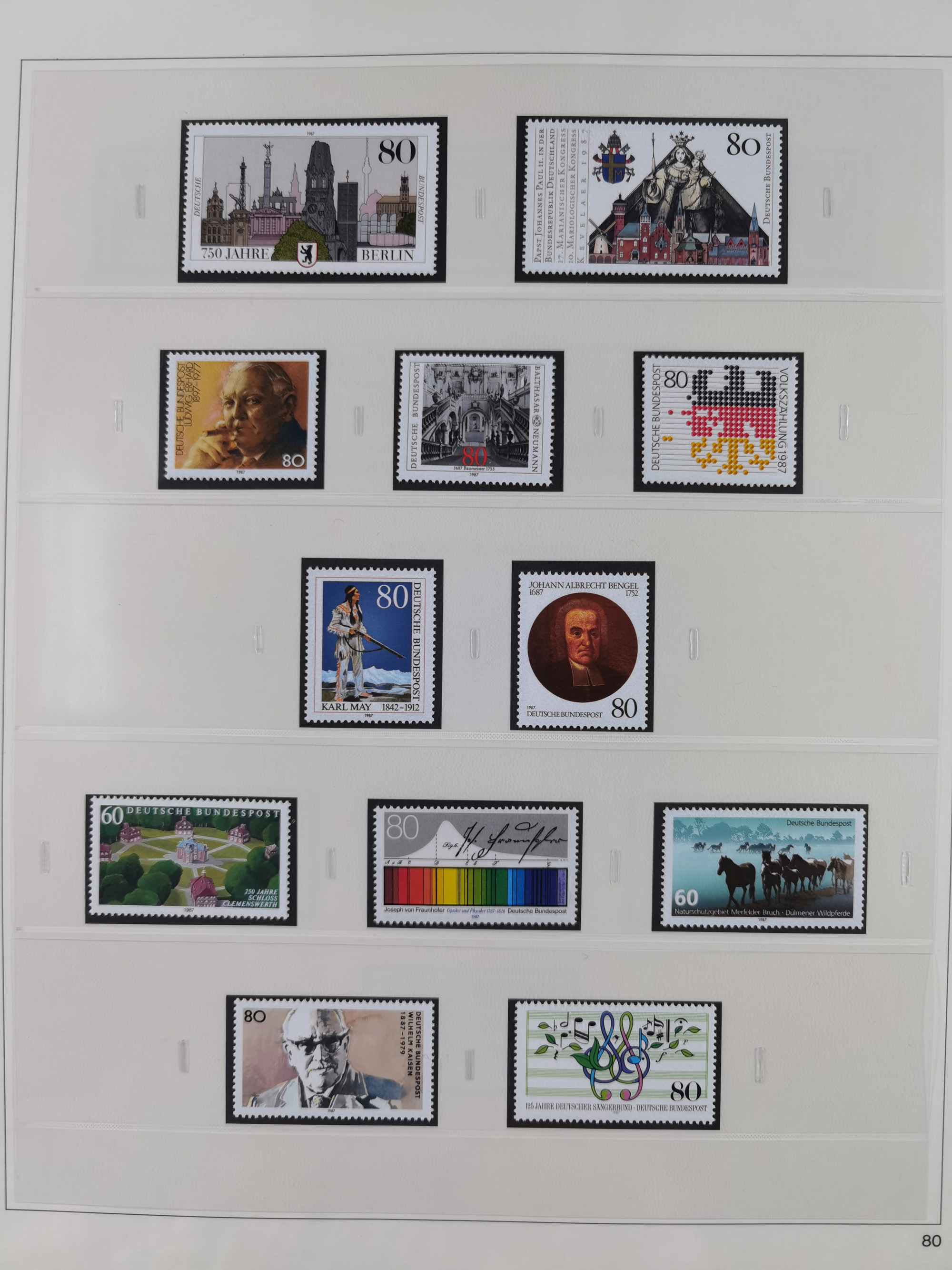 1948/90, in den Hauptnummern bis 1960 komplette postfrische Sammlungen Berlin 1948-90 inkl. Schwarzaufdruck, Rotaufdruck sign. Dub und Block 1, Bundesrepublik 1949-72 inkl. Posthornsatz, sowie DDR 1949-71 inkl. ausgiebigen Teilen Zusammendrucke, es fehlen bei den späten modernen Ausgaben teils einzelne Werte oder Sätze, gute Erhaltung, Alben mit Lagerspuren, in 11 Vordruckalben