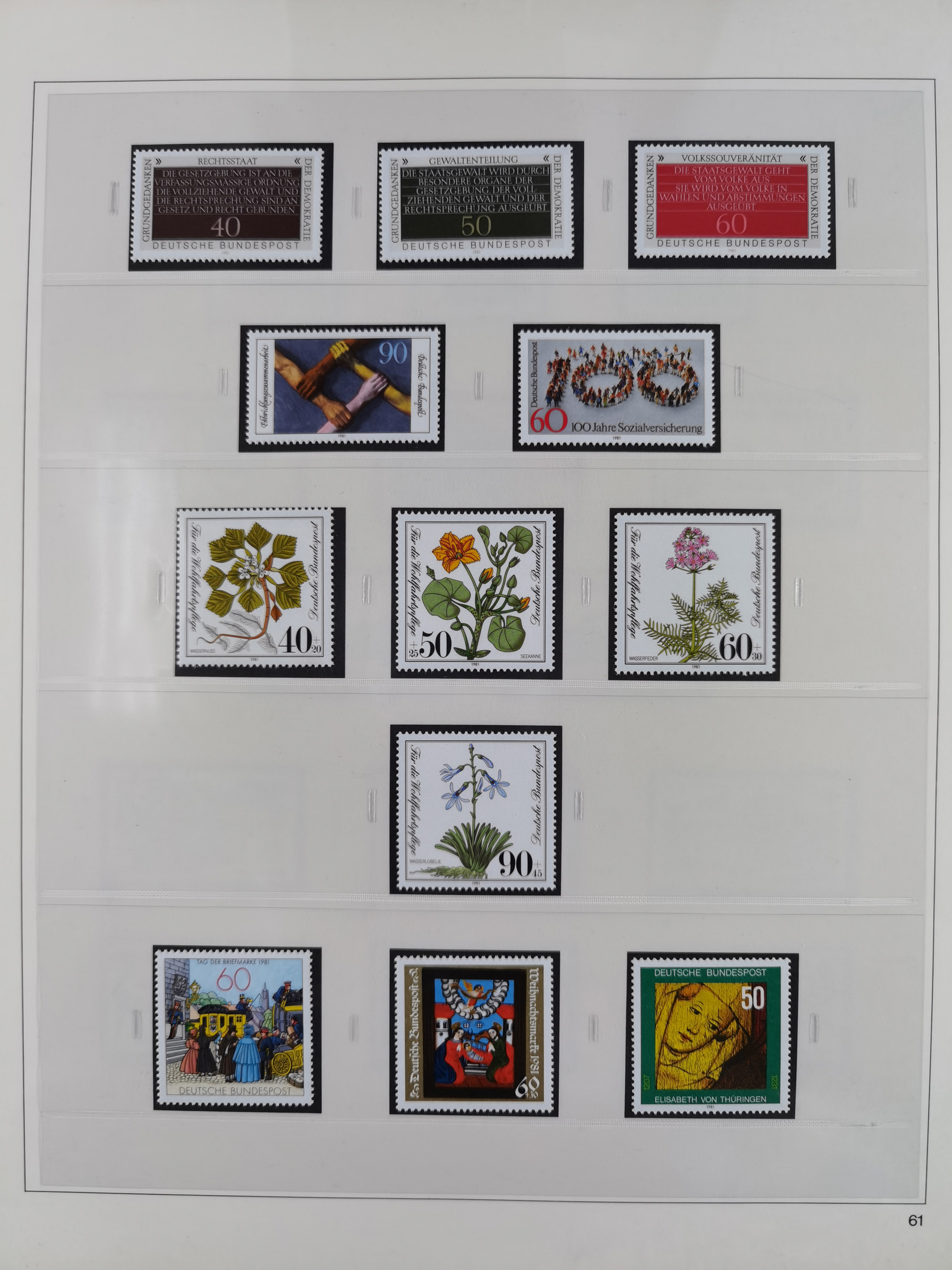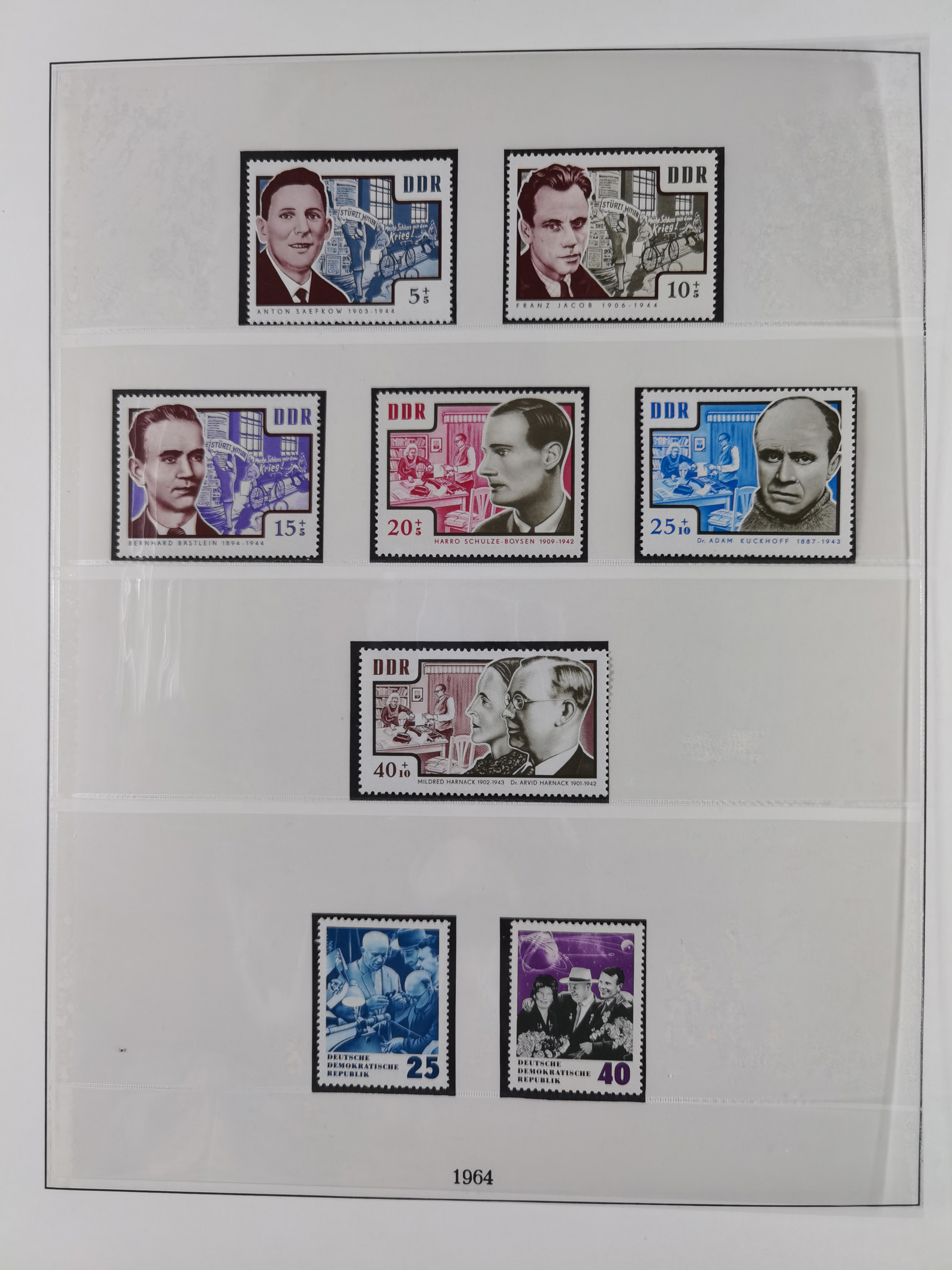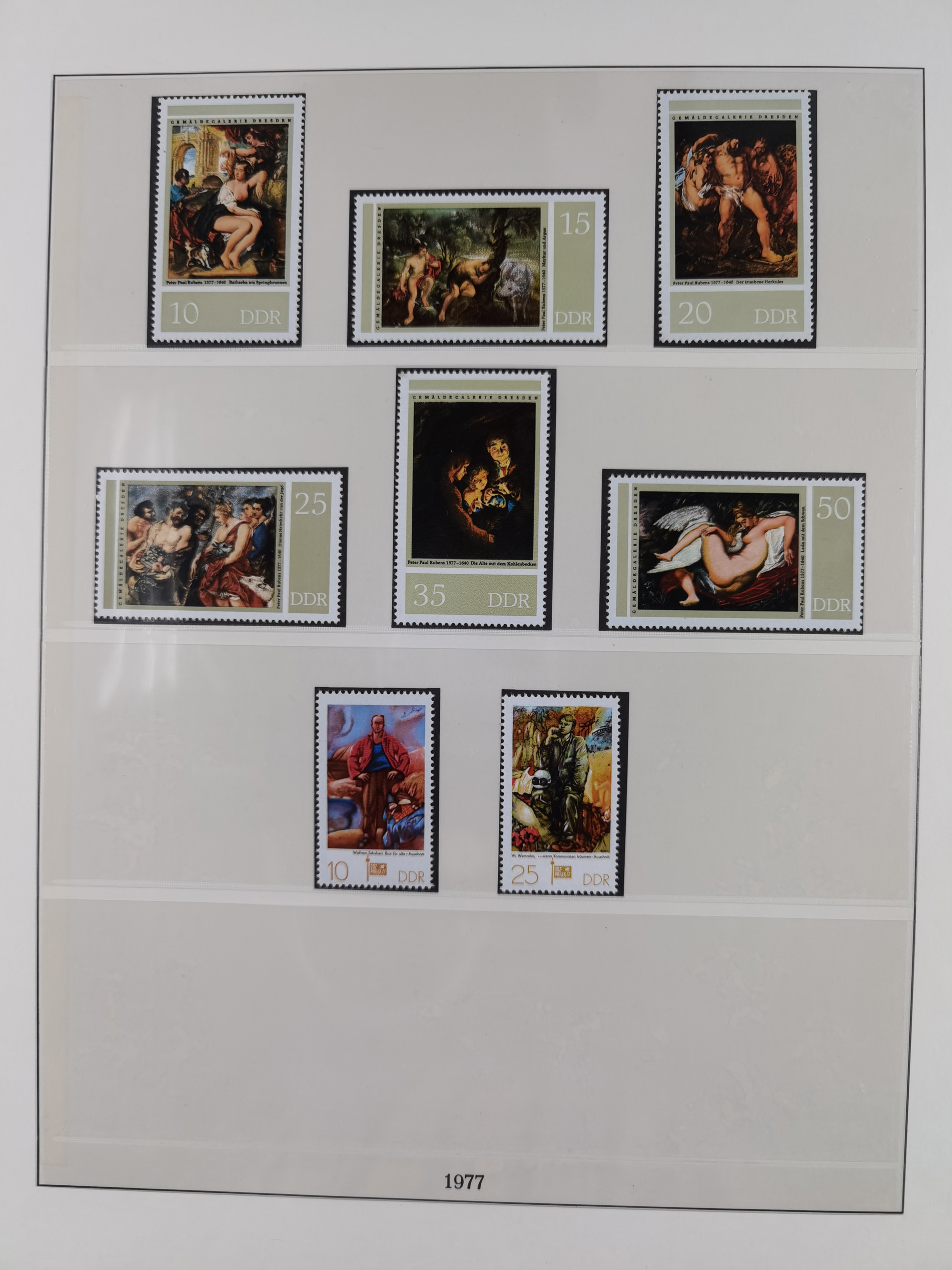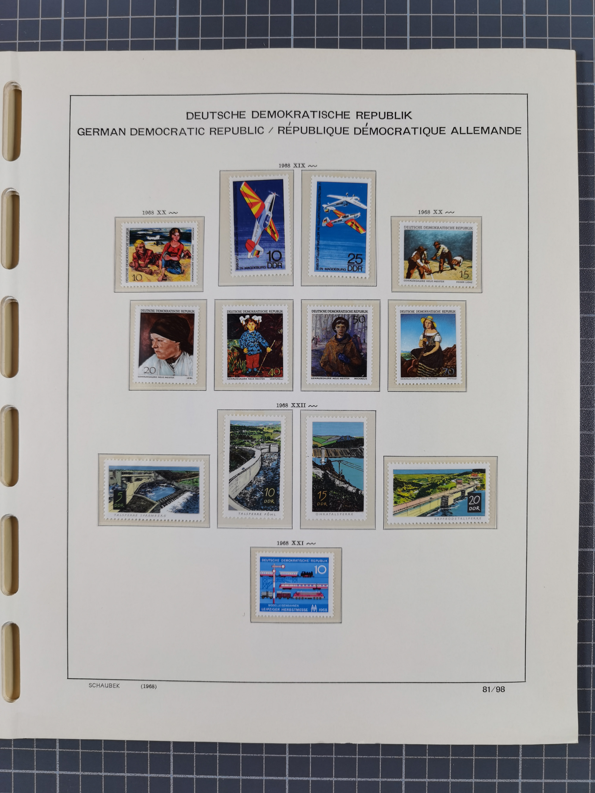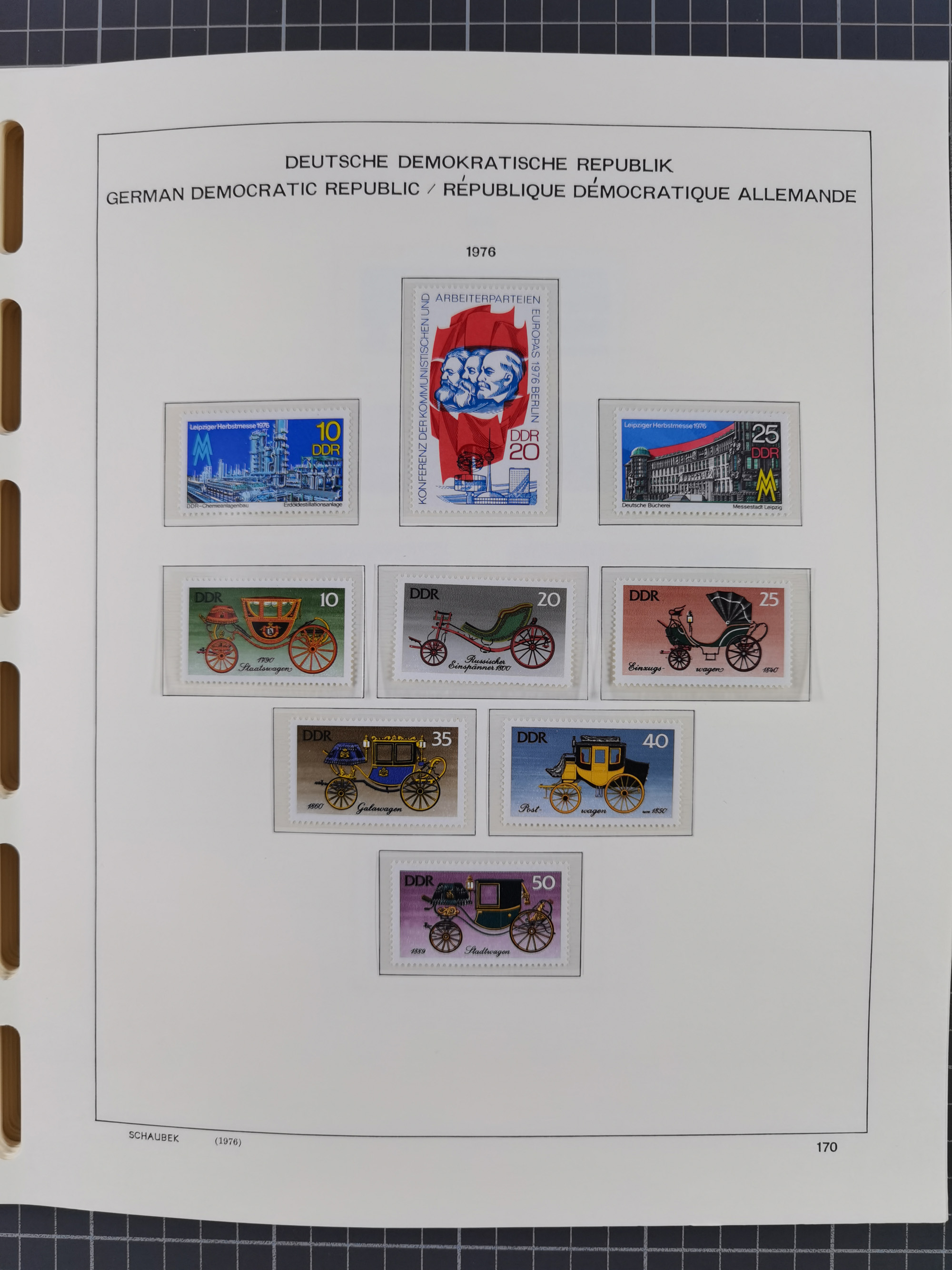 1948/90, in den Hauptnummern bis 1960 komplette postfrische Sammlungen Berlin 1948-90 inkl. Schwarzaufdruck, Rotaufdruck sign. Dub und Block 1, Bundesrepublik 1949-72 inkl. Posthornsatz, sowie DDR 1949-71 inkl. ausgiebigen Teilen Zusammendrucke, es fehlen bei den späten modernen Ausgaben teils einzelne Werte oder Sätze, gute Erhaltung, Alben mit Lagerspuren, in 11 Vordruckalben