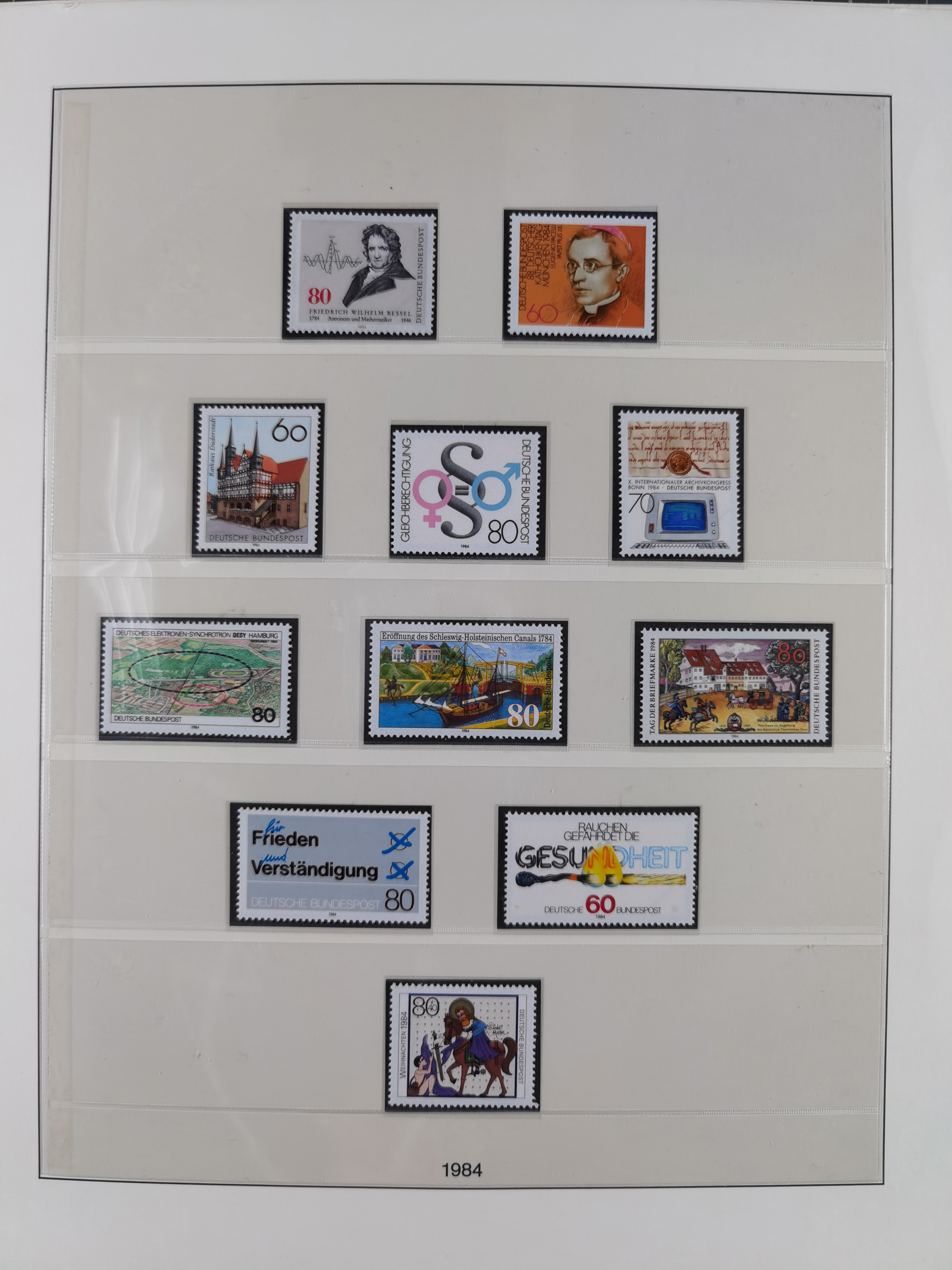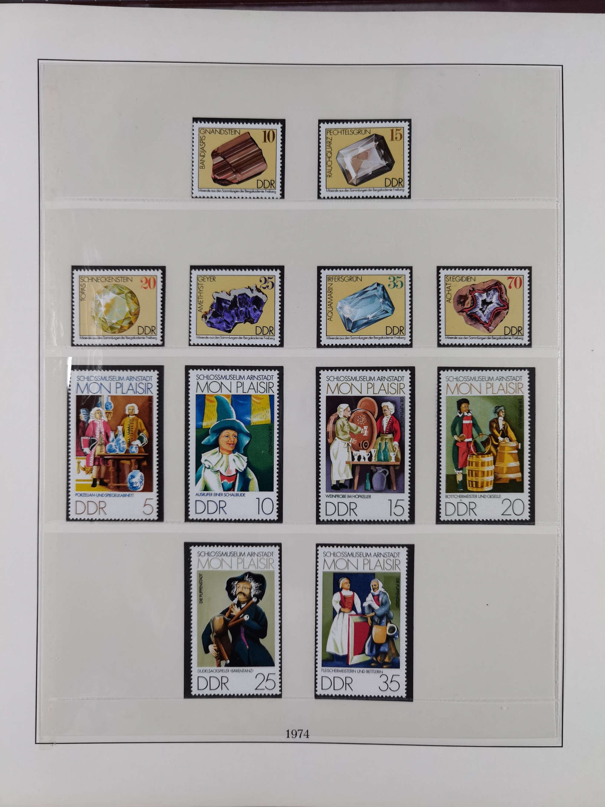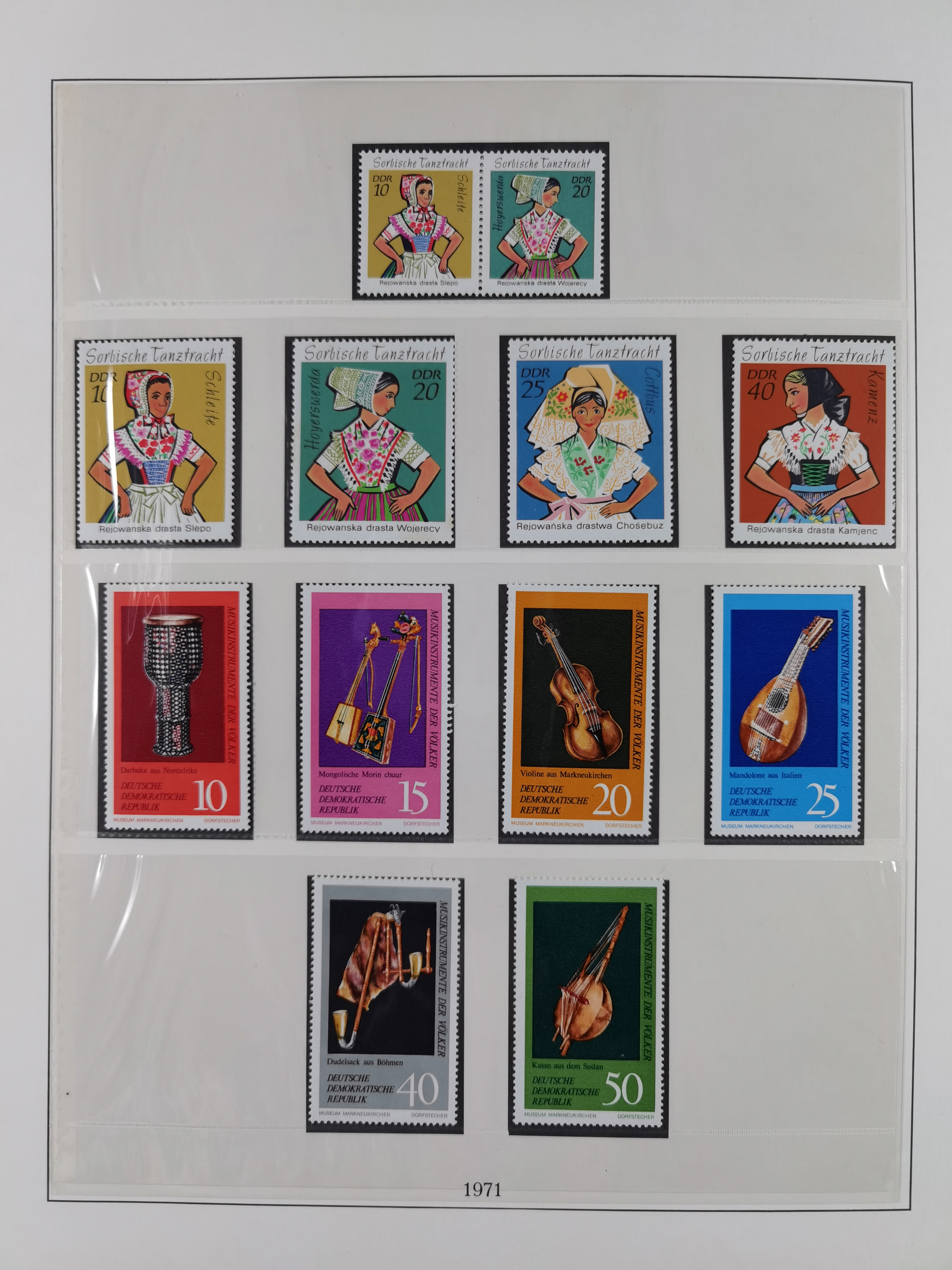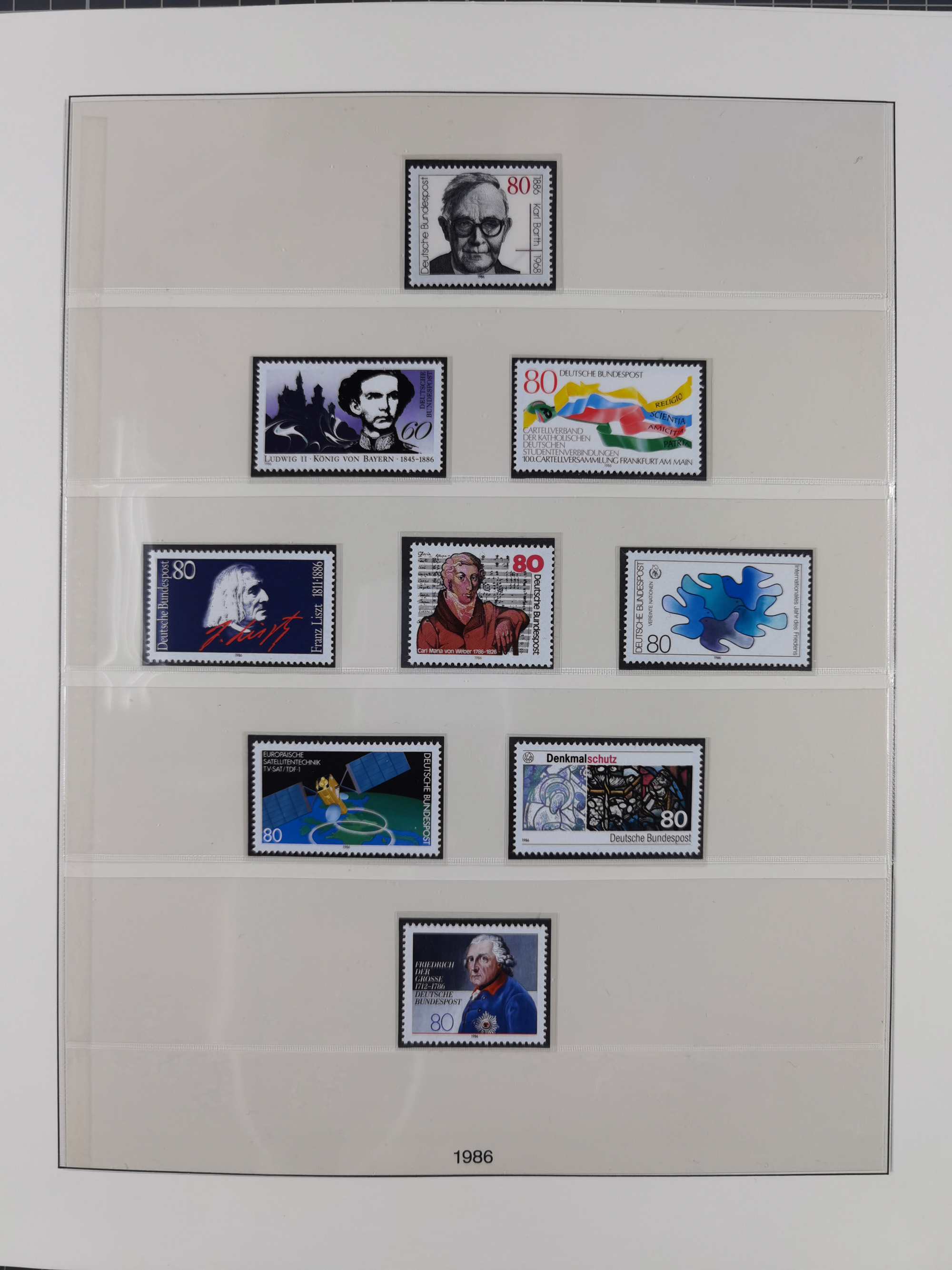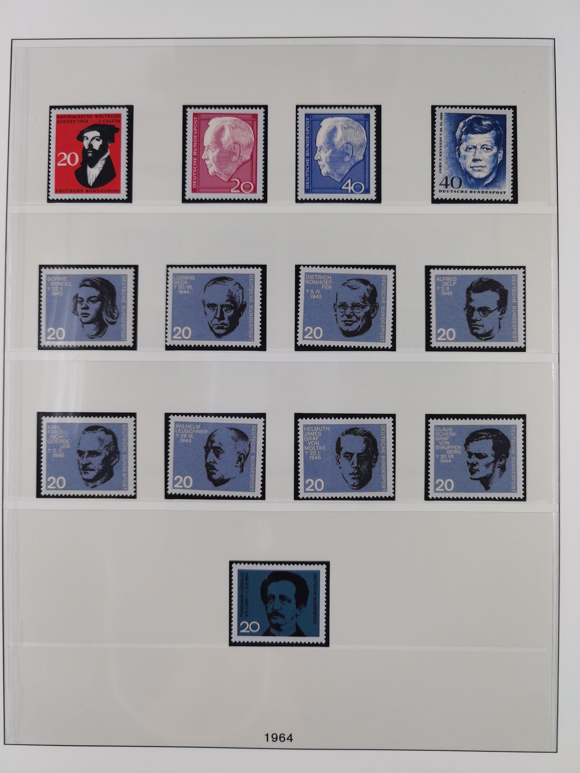 1948/90, in den Hauptnummern bis 1960 komplette postfrische Sammlungen Berlin 1948-90 inkl. Schwarzaufdruck, Rotaufdruck sign. Dub und Block 1, Bundesrepublik 1949-72 inkl. Posthornsatz, sowie DDR 1949-71 inkl. ausgiebigen Teilen Zusammendrucke, es fehlen bei den späten modernen Ausgaben teils einzelne Werte oder Sätze, gute Erhaltung, Alben mit Lagerspuren, in 11 Vordruckalben