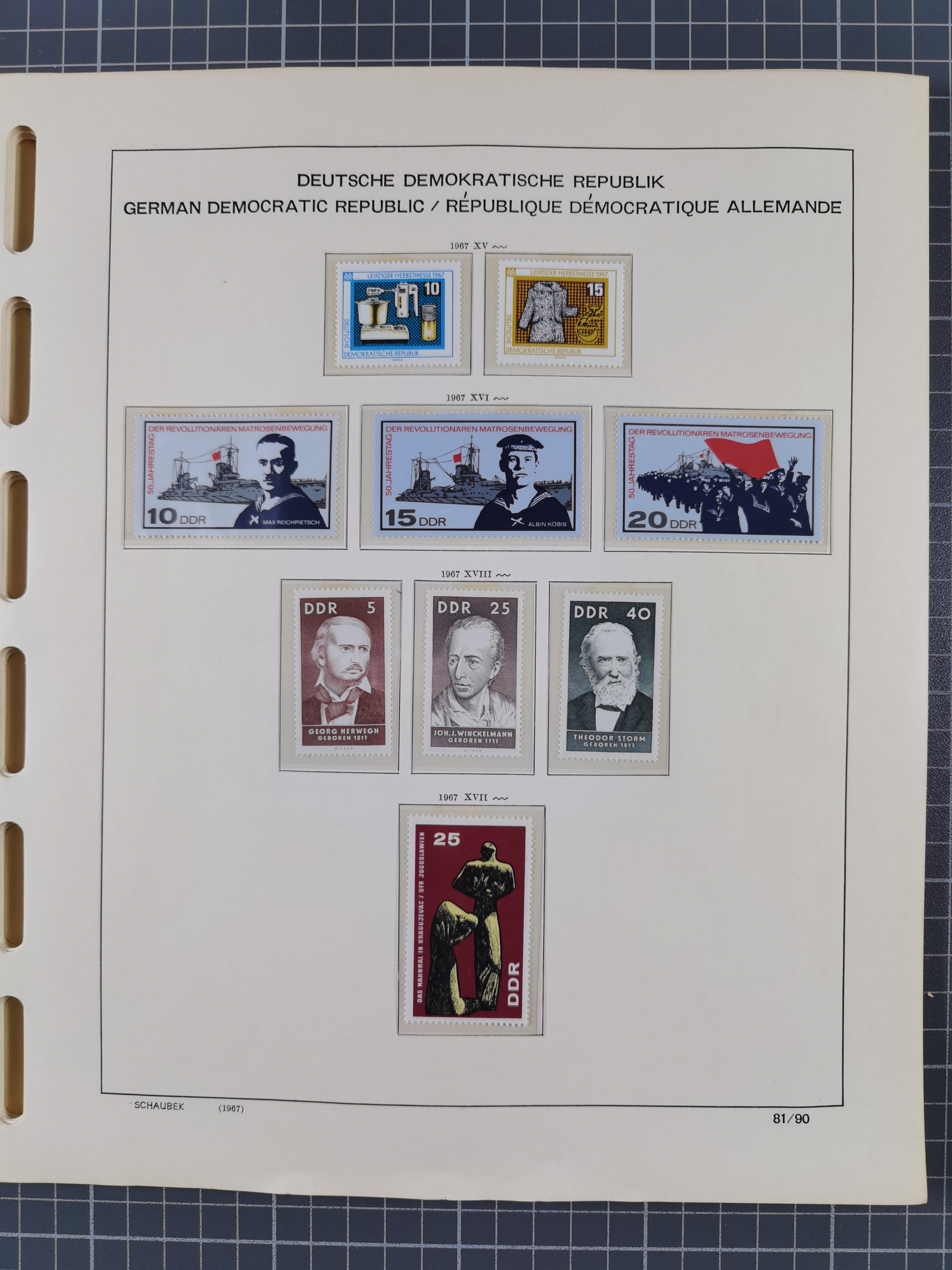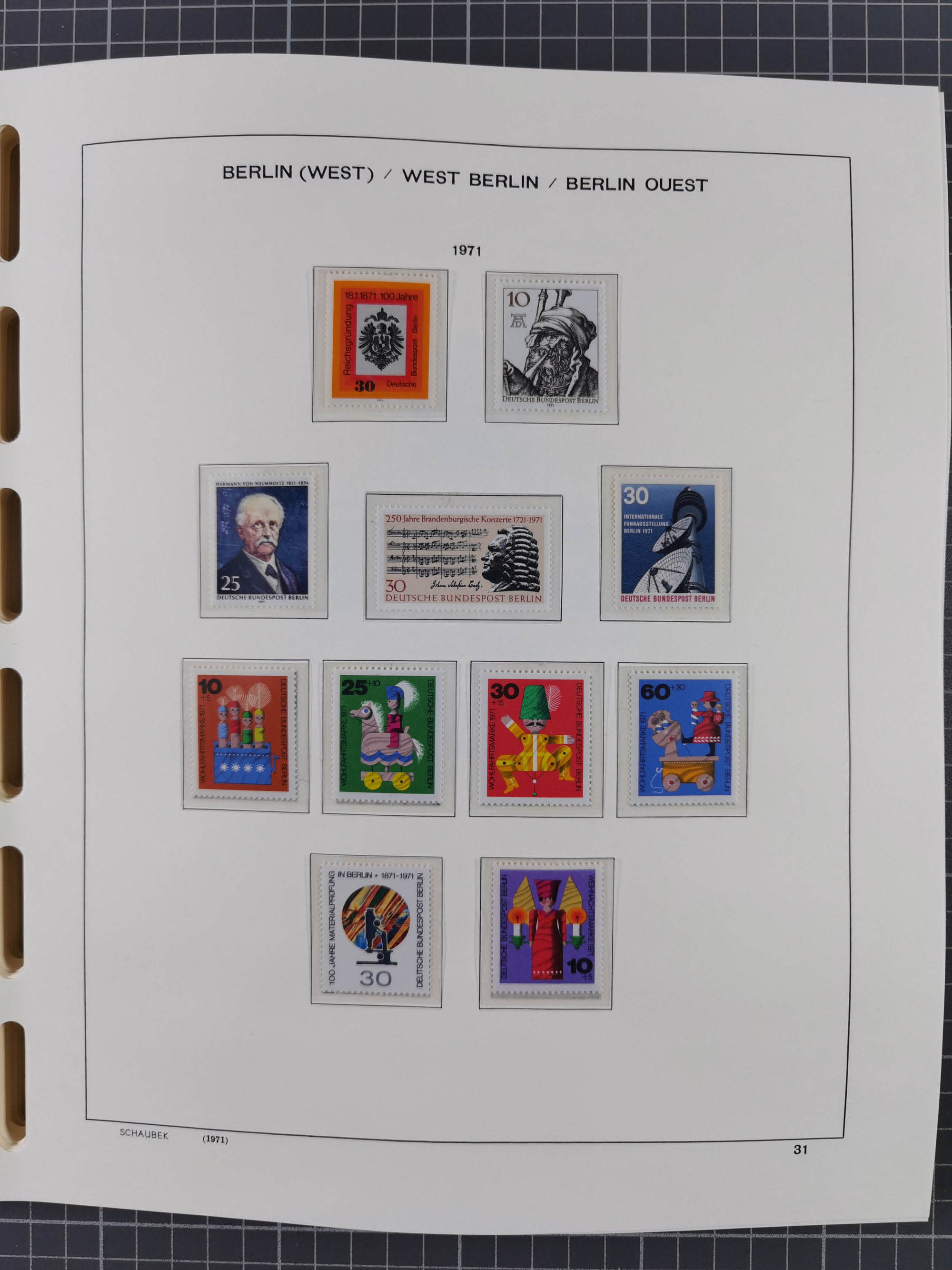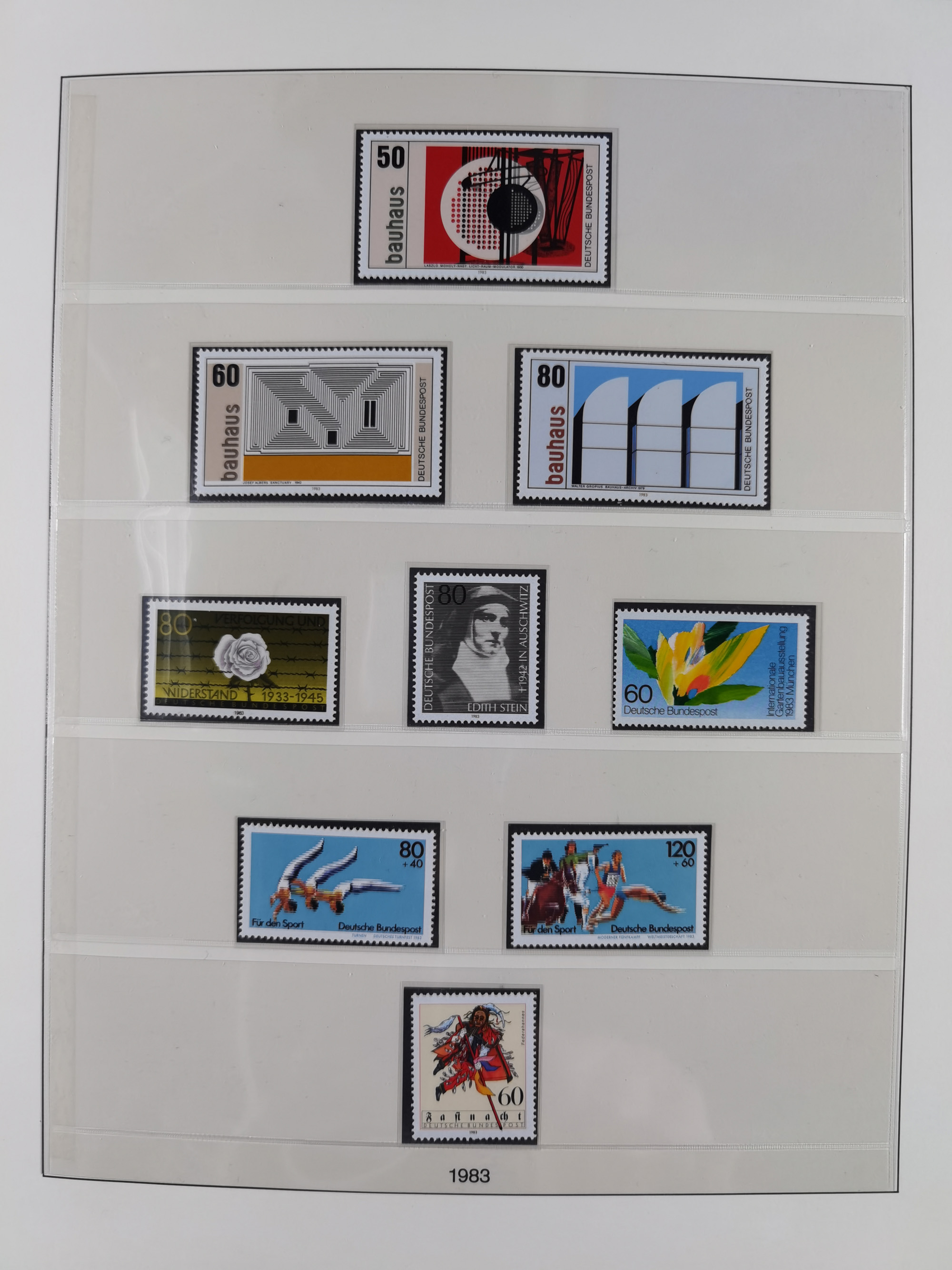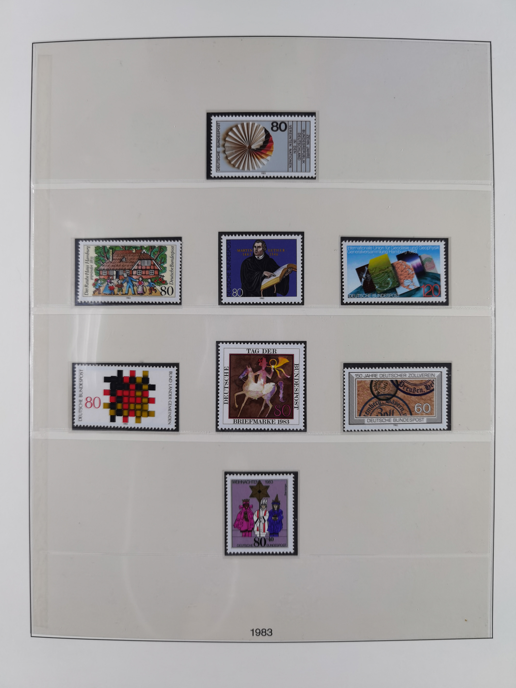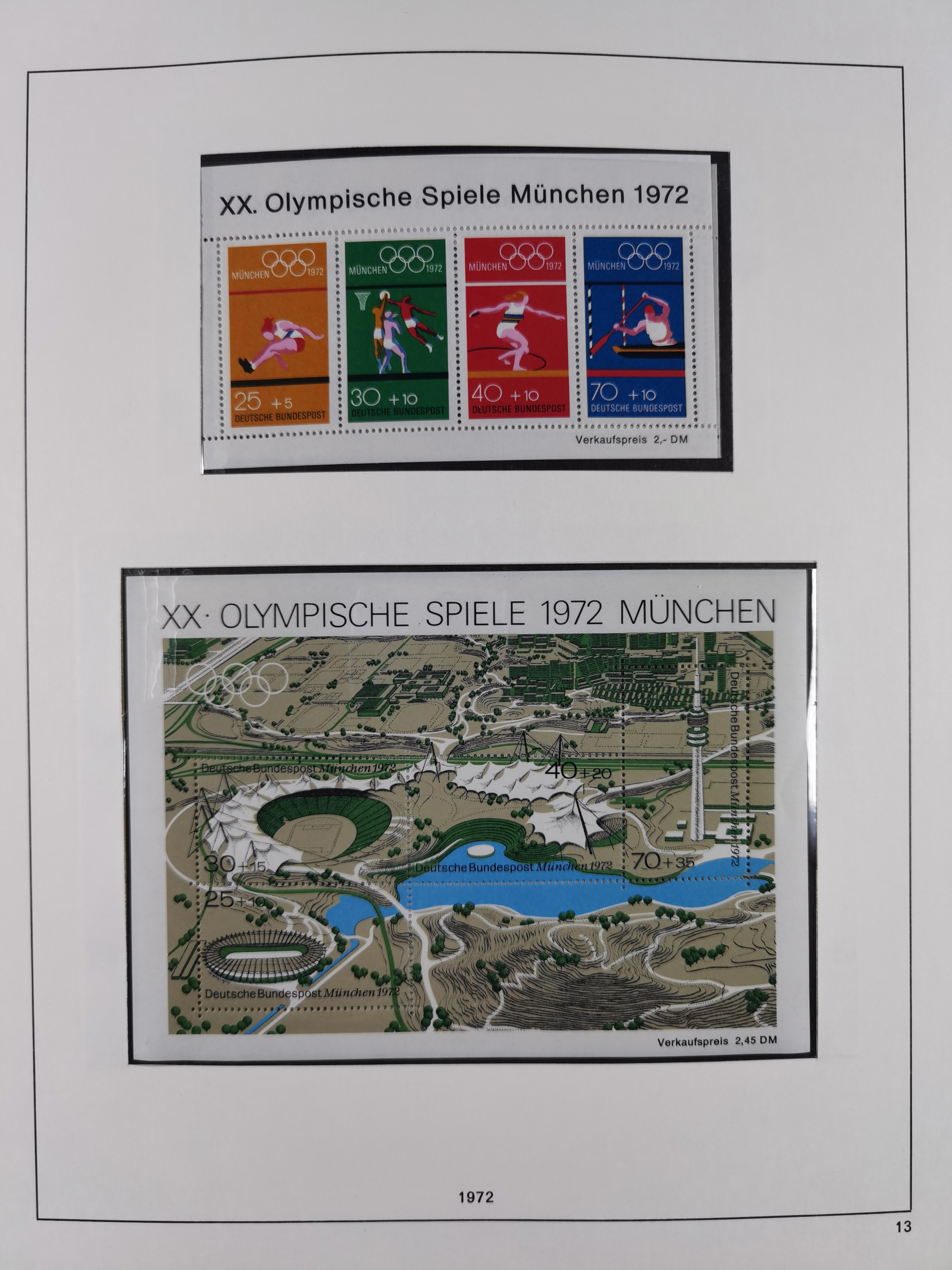 1948/90, in den Hauptnummern bis 1960 komplette postfrische Sammlungen Berlin 1948-90 inkl. Schwarzaufdruck, Rotaufdruck sign. Dub und Block 1, Bundesrepublik 1949-72 inkl. Posthornsatz, sowie DDR 1949-71 inkl. ausgiebigen Teilen Zusammendrucke, es fehlen bei den späten modernen Ausgaben teils einzelne Werte oder Sätze, gute Erhaltung, Alben mit Lagerspuren, in 11 Vordruckalben