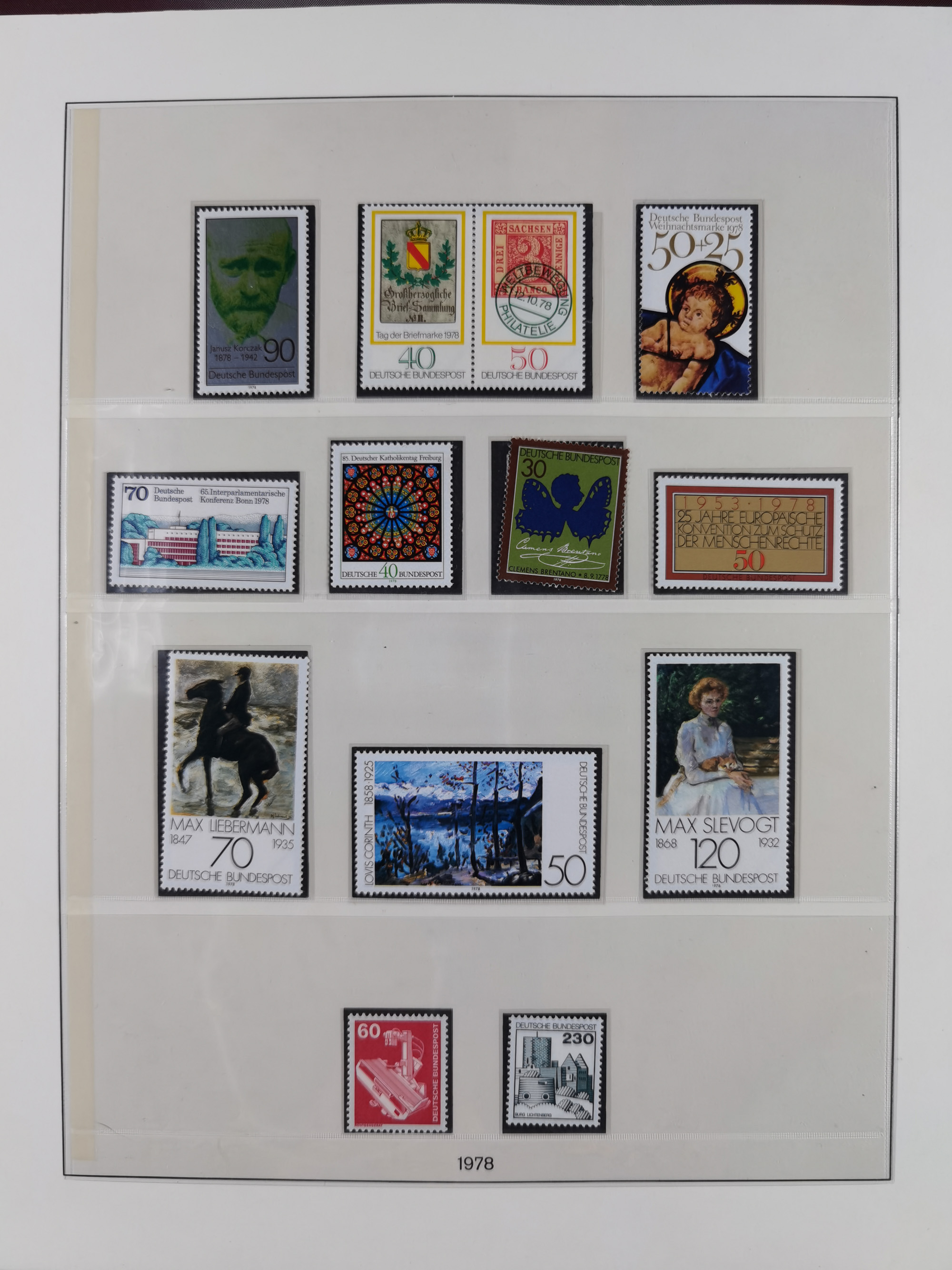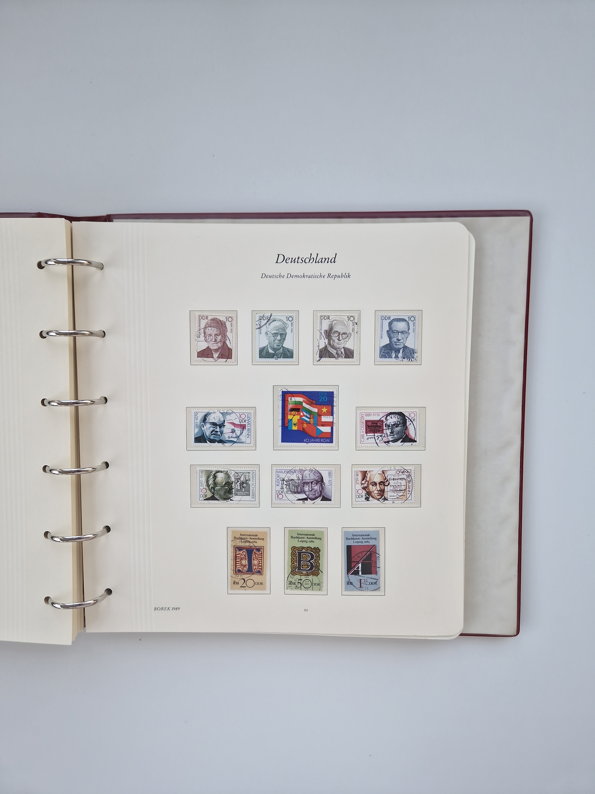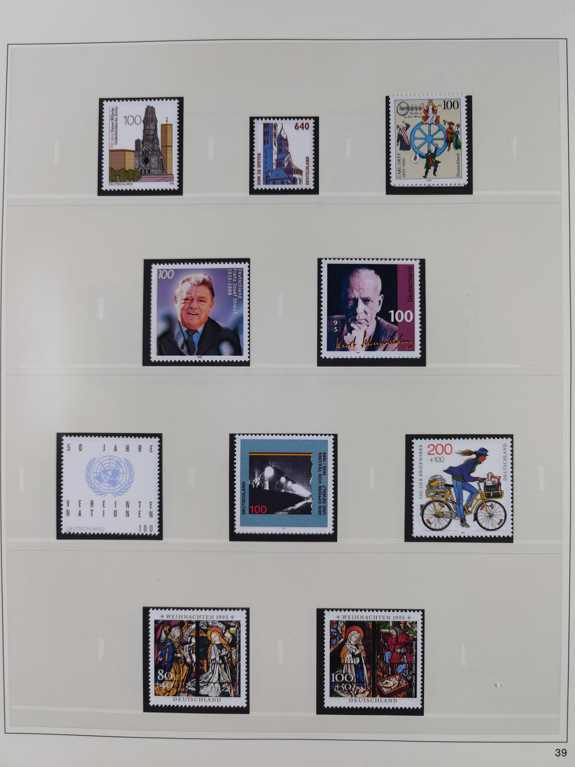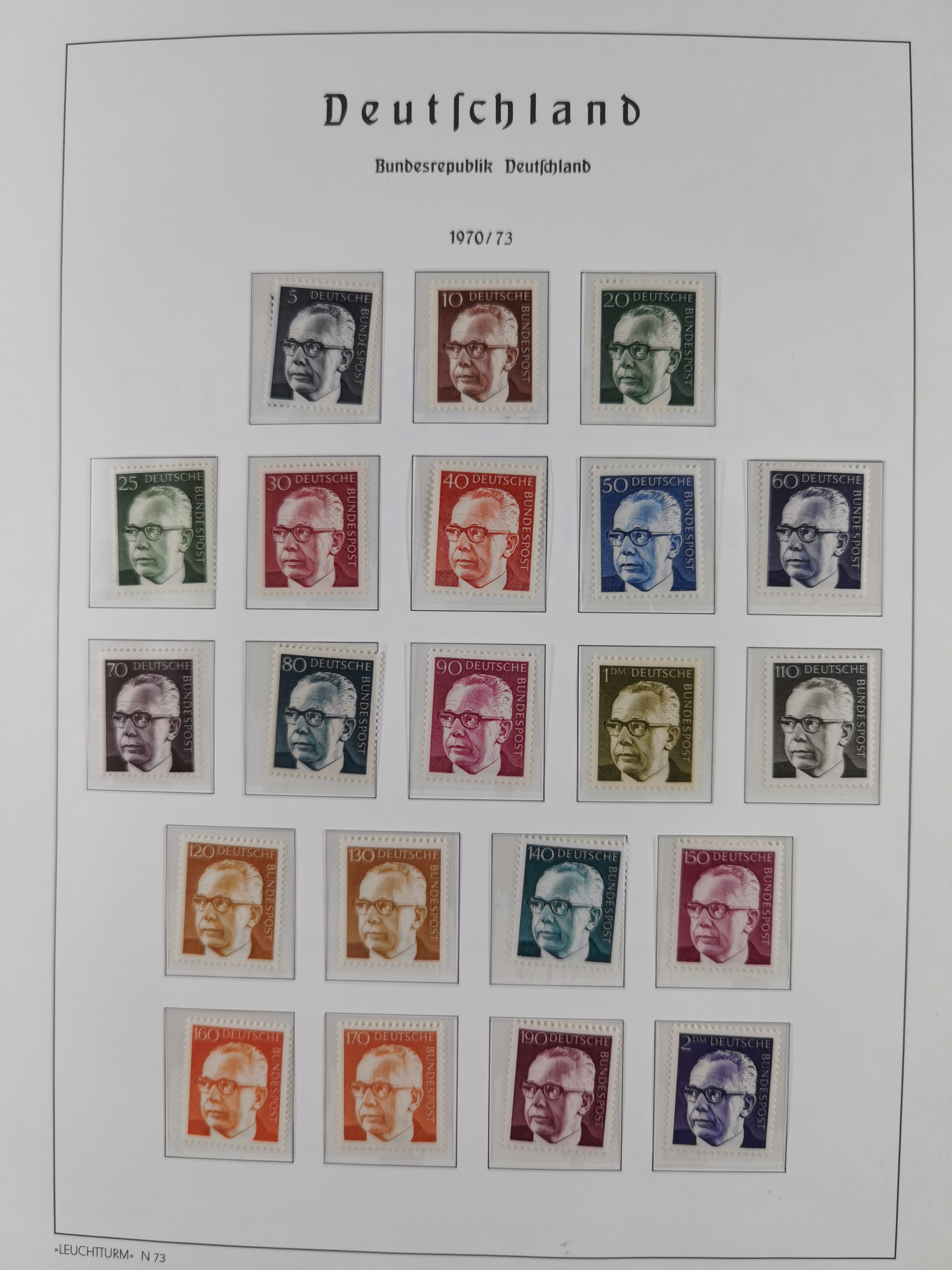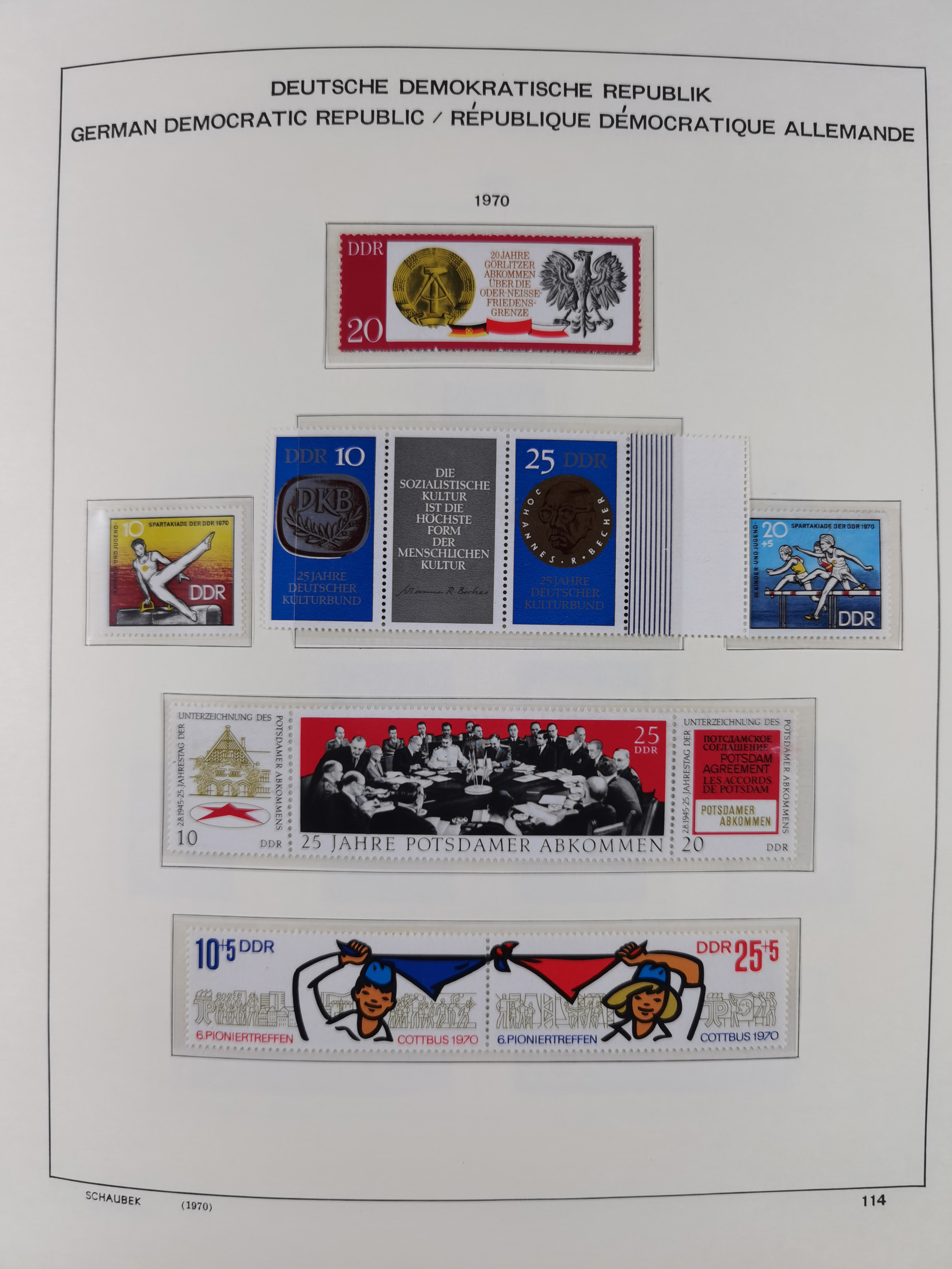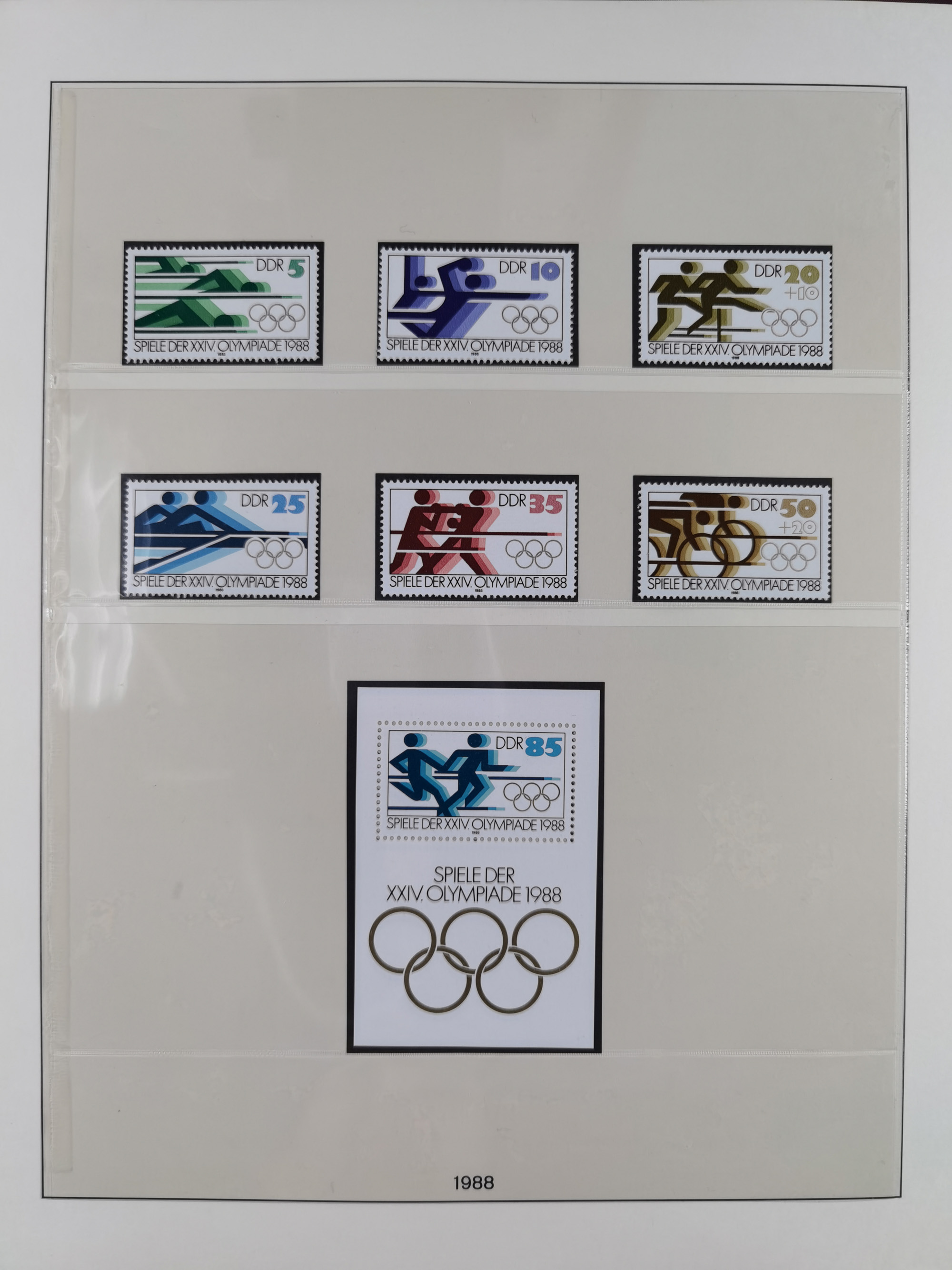 1948/90, in den Hauptnummern bis 1960 komplette postfrische Sammlungen Berlin 1948-90 inkl. Schwarzaufdruck, Rotaufdruck sign. Dub und Block 1, Bundesrepublik 1949-72 inkl. Posthornsatz, sowie DDR 1949-71 inkl. ausgiebigen Teilen Zusammendrucke, es fehlen bei den späten modernen Ausgaben teils einzelne Werte oder Sätze, gute Erhaltung, Alben mit Lagerspuren, in 11 Vordruckalben