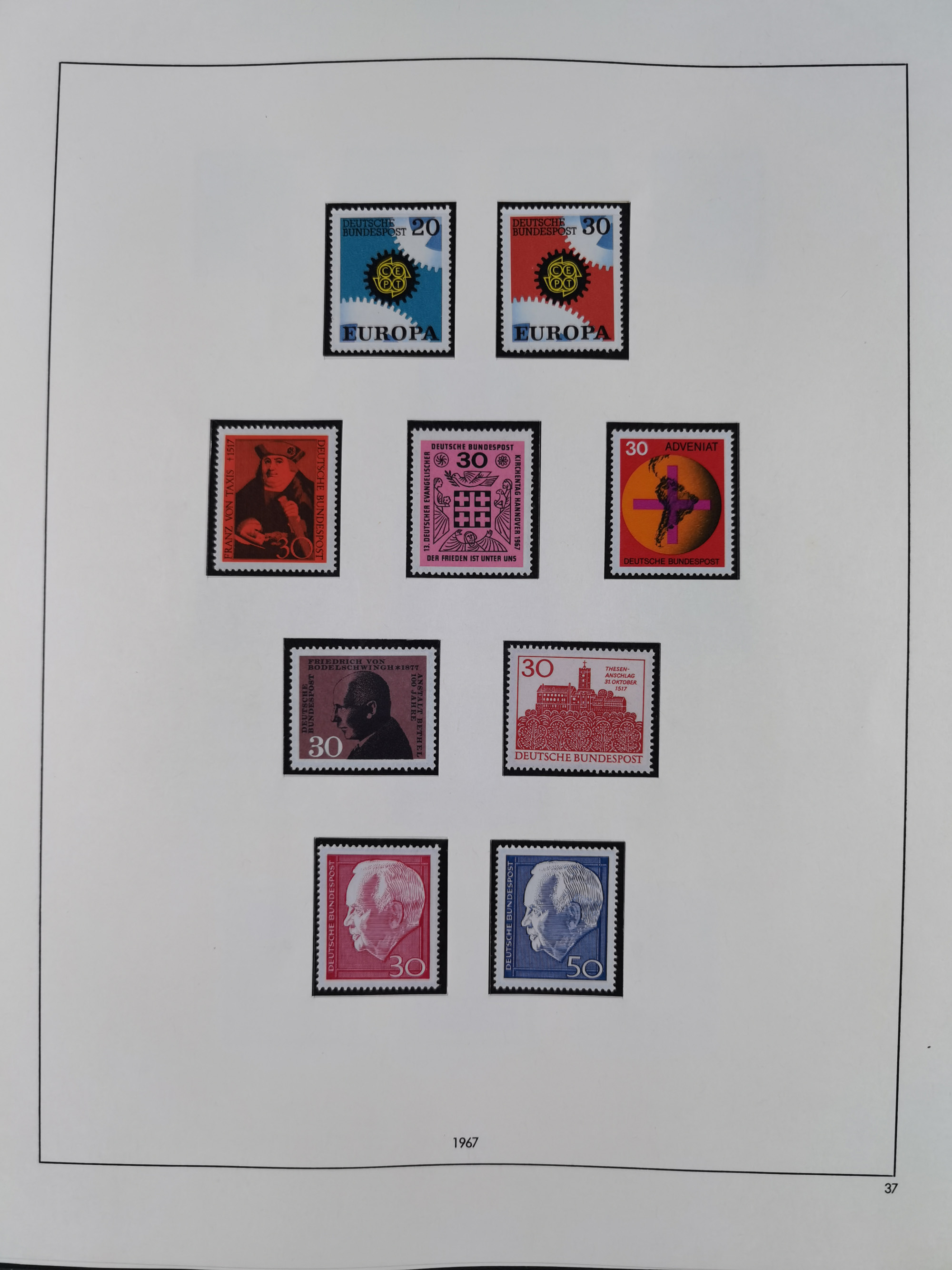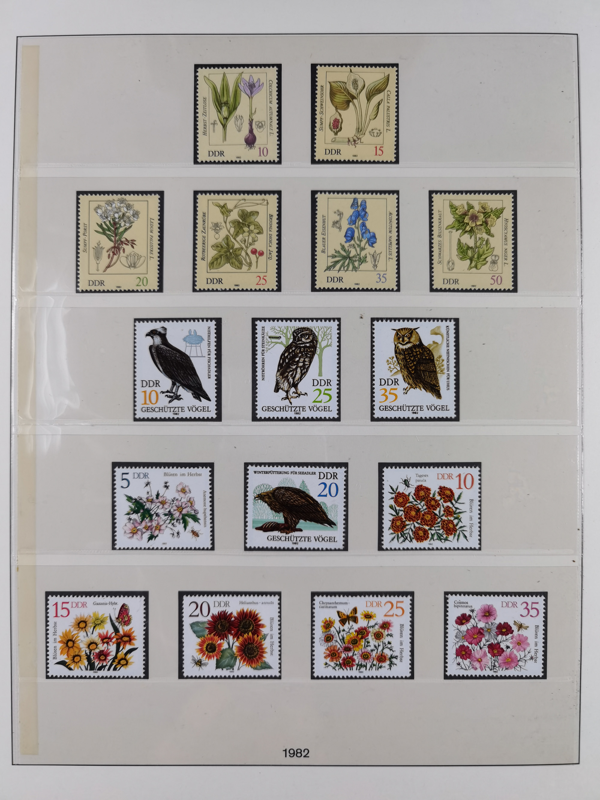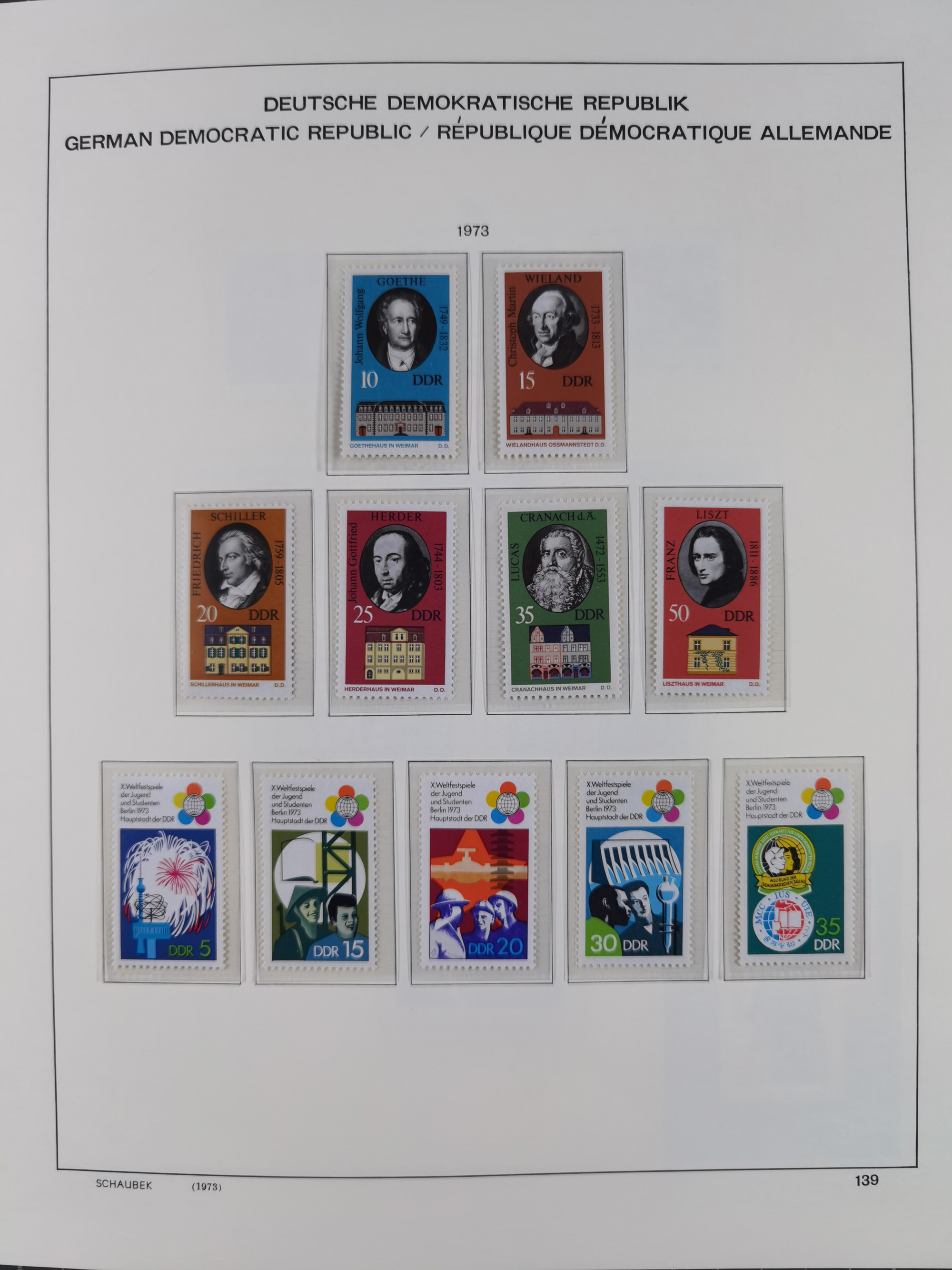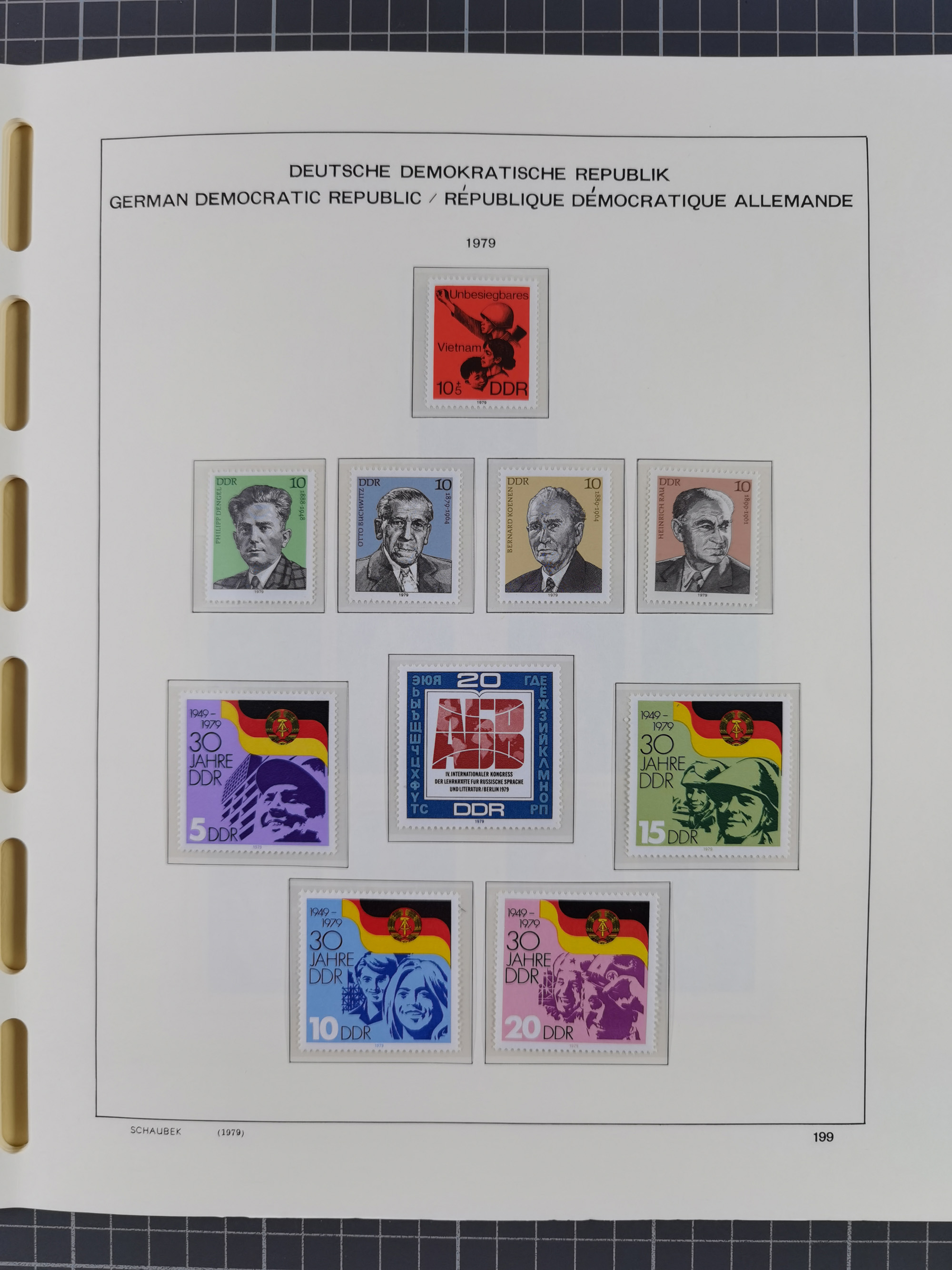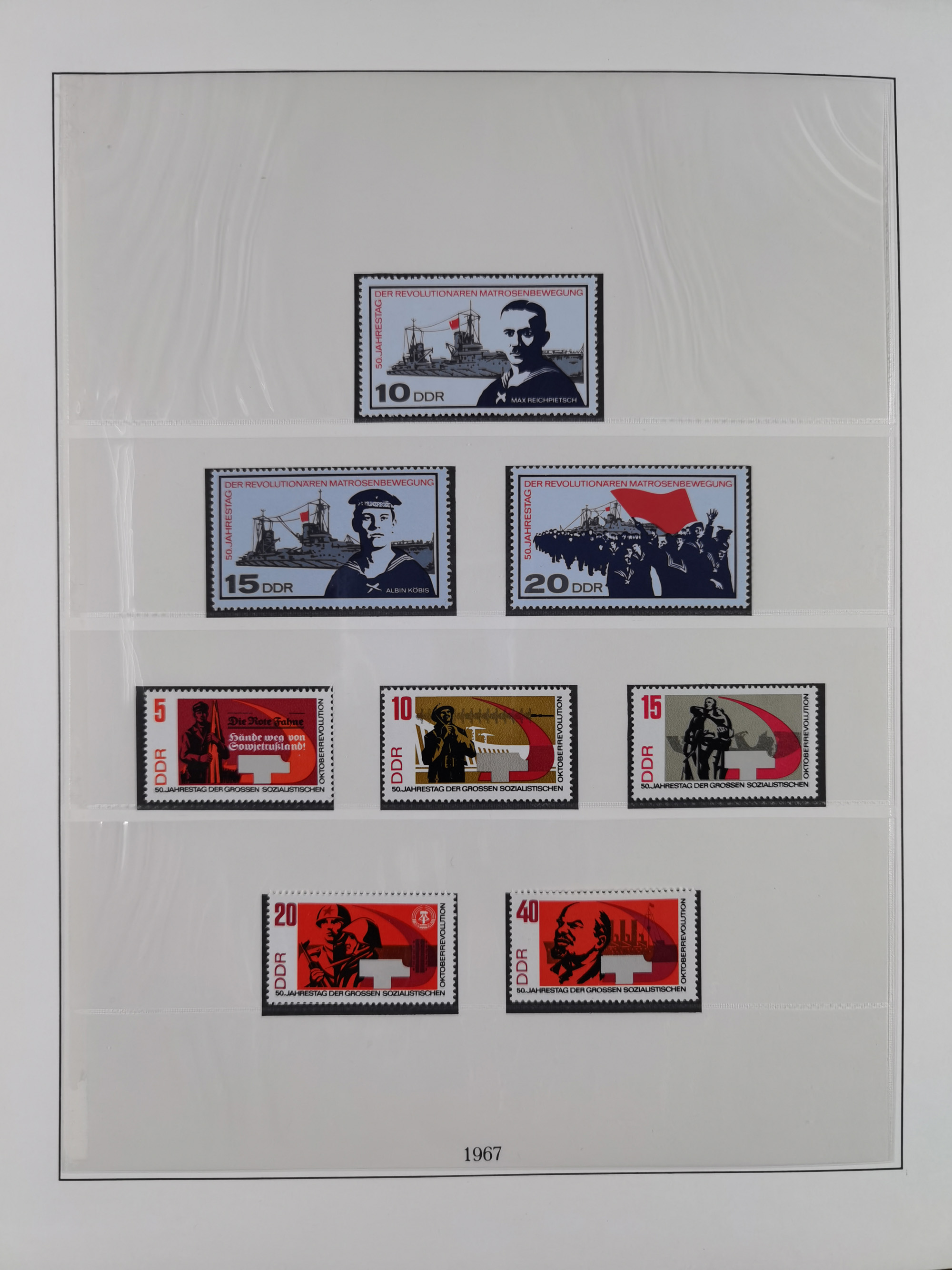 1948/90, in den Hauptnummern bis 1960 komplette postfrische Sammlungen Berlin 1948-90 inkl. Schwarzaufdruck, Rotaufdruck sign. Dub und Block 1, Bundesrepublik 1949-72 inkl. Posthornsatz, sowie DDR 1949-71 inkl. ausgiebigen Teilen Zusammendrucke, es fehlen bei den späten modernen Ausgaben teils einzelne Werte oder Sätze, gute Erhaltung, Alben mit Lagerspuren, in 11 Vordruckalben