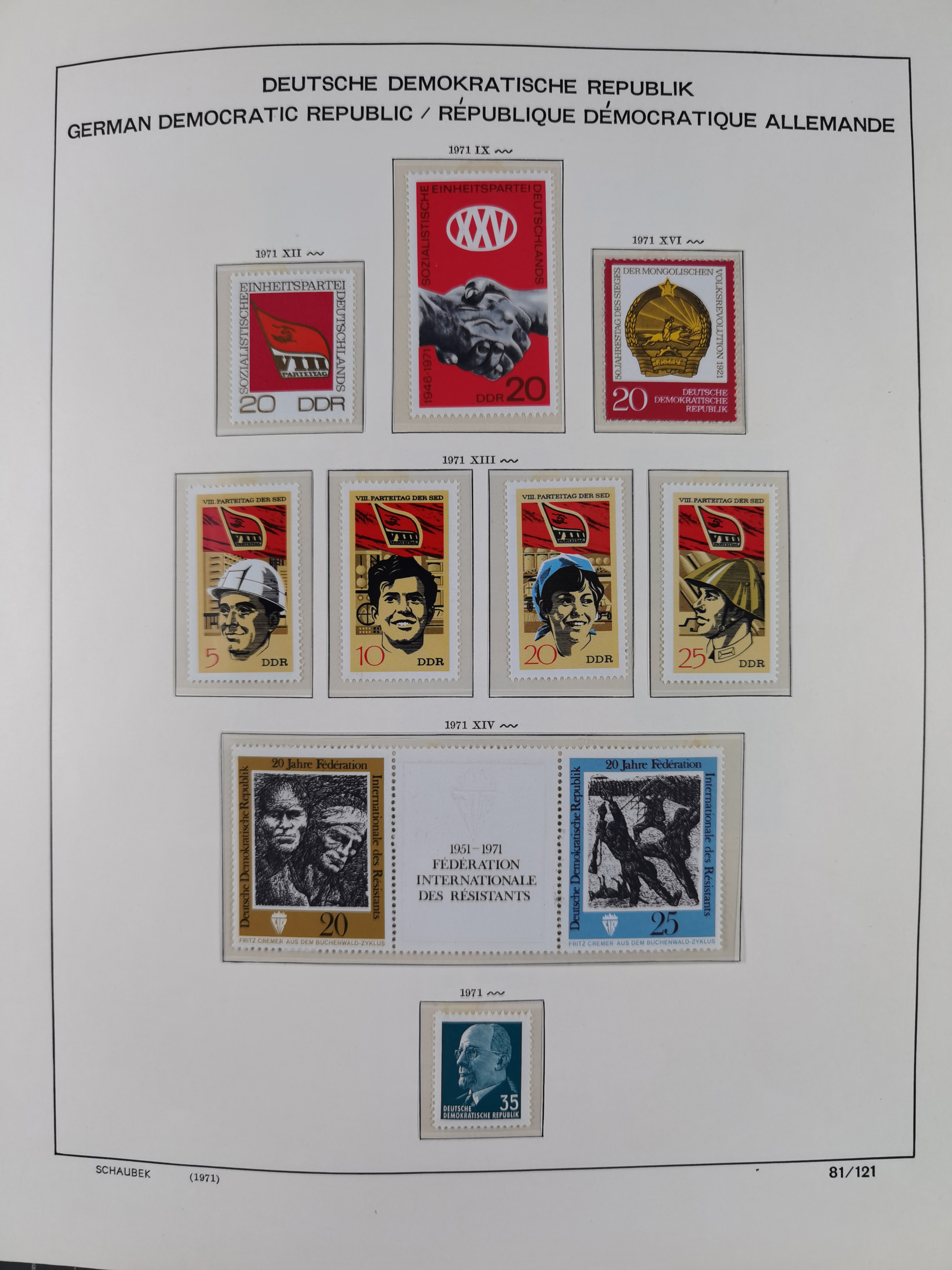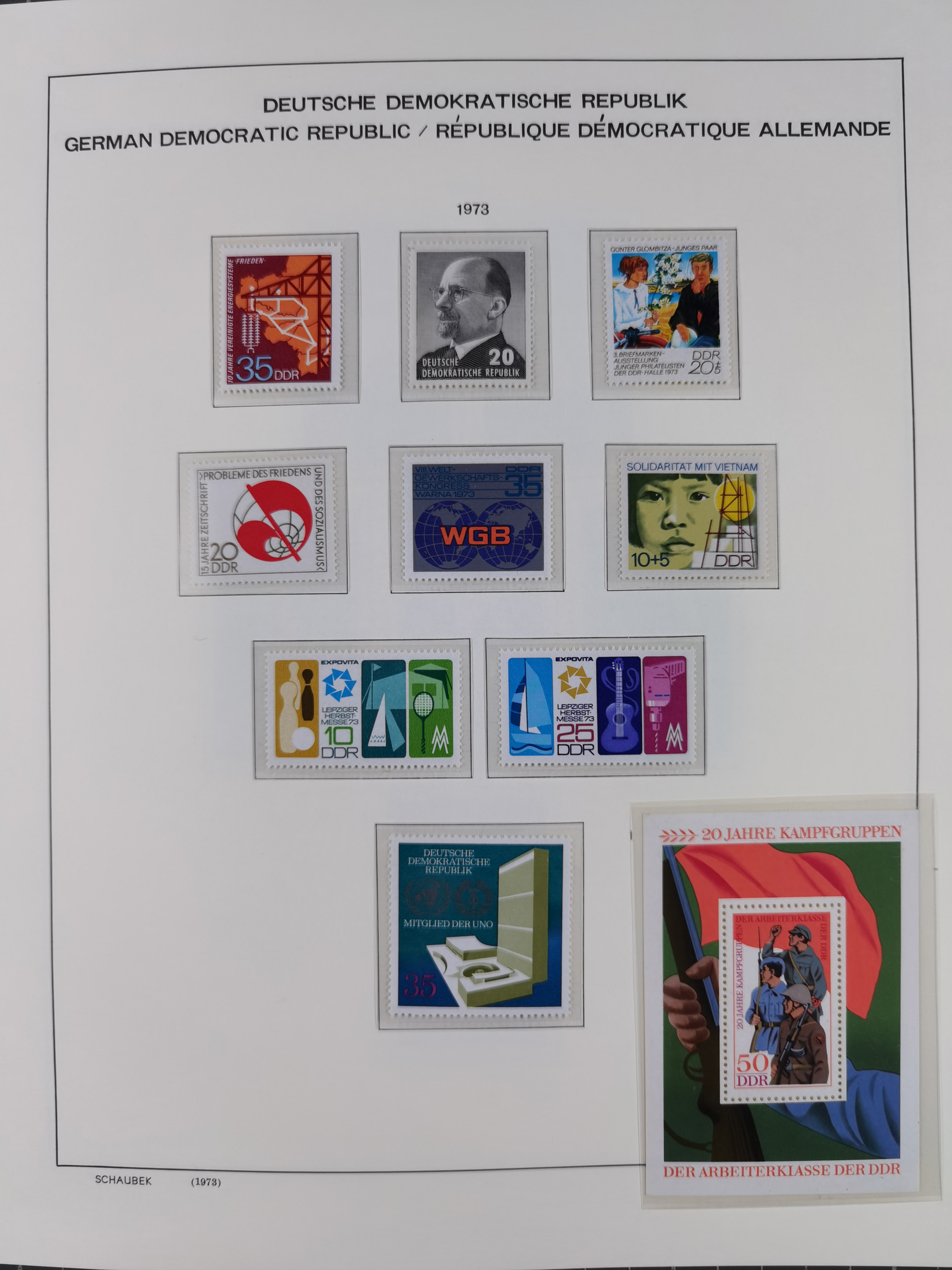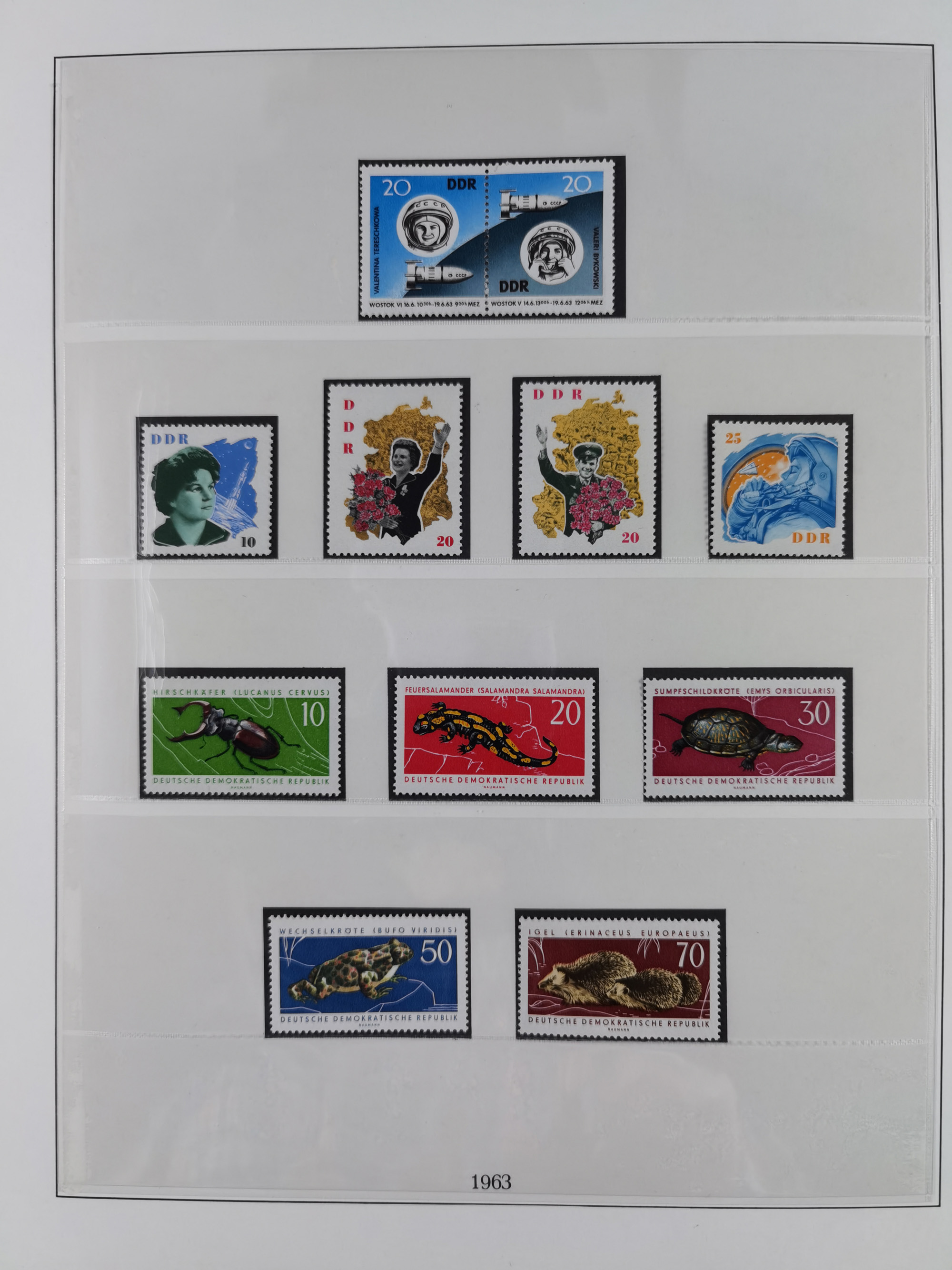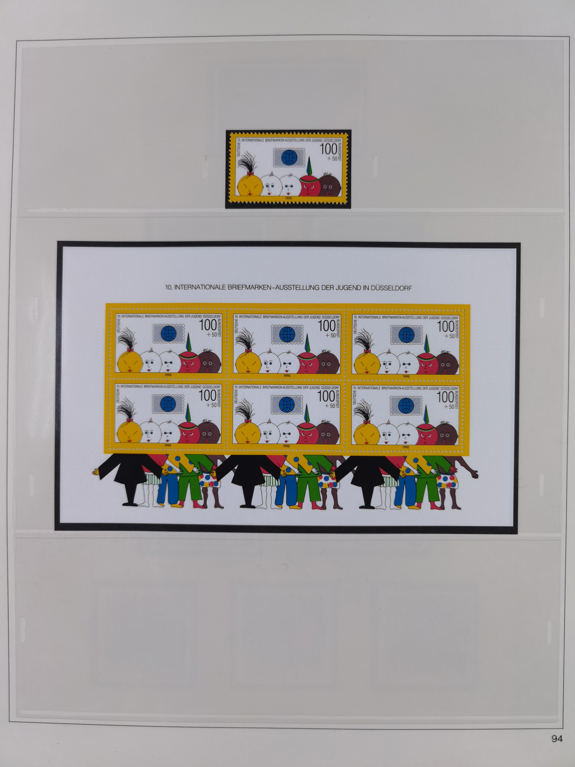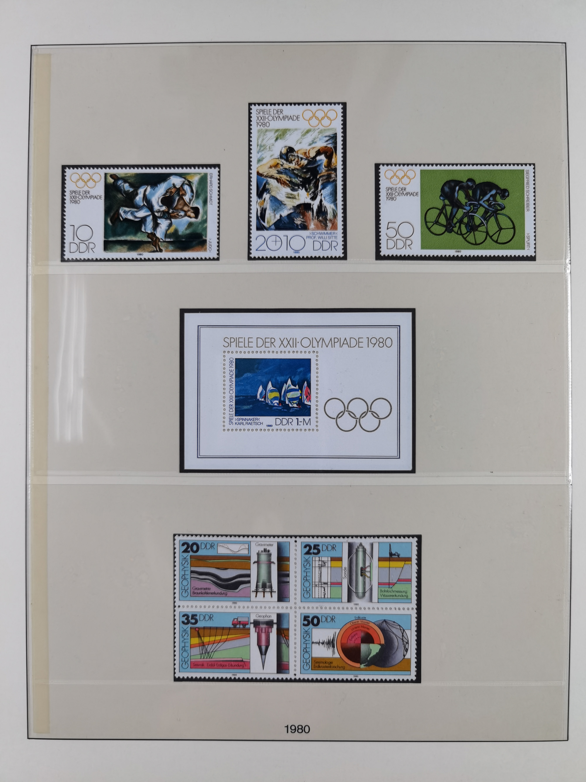 1948/90, in den Hauptnummern bis 1960 komplette postfrische Sammlungen Berlin 1948-90 inkl. Schwarzaufdruck, Rotaufdruck sign. Dub und Block 1, Bundesrepublik 1949-72 inkl. Posthornsatz, sowie DDR 1949-71 inkl. ausgiebigen Teilen Zusammendrucke, es fehlen bei den späten modernen Ausgaben teils einzelne Werte oder Sätze, gute Erhaltung, Alben mit Lagerspuren, in 11 Vordruckalben