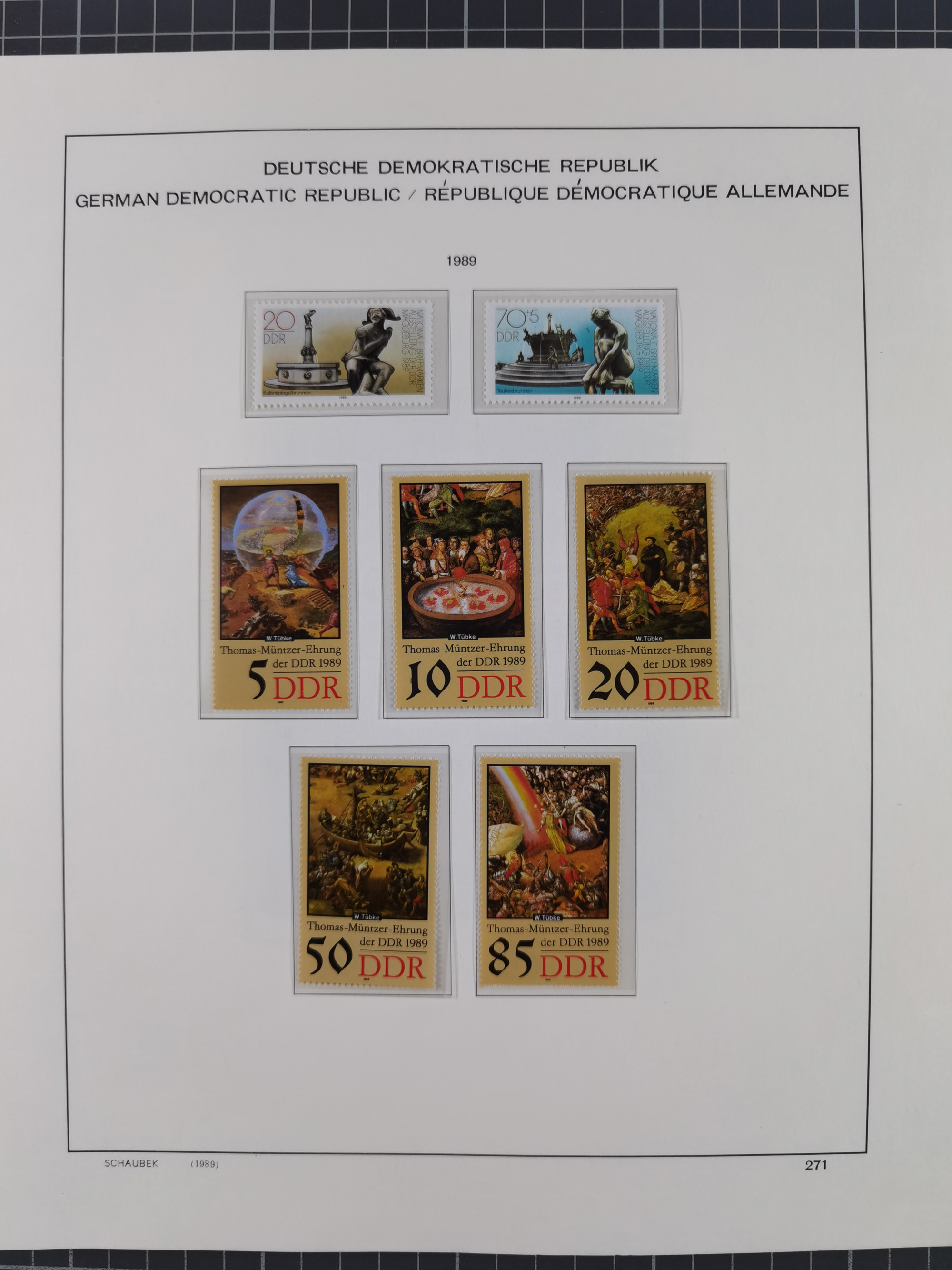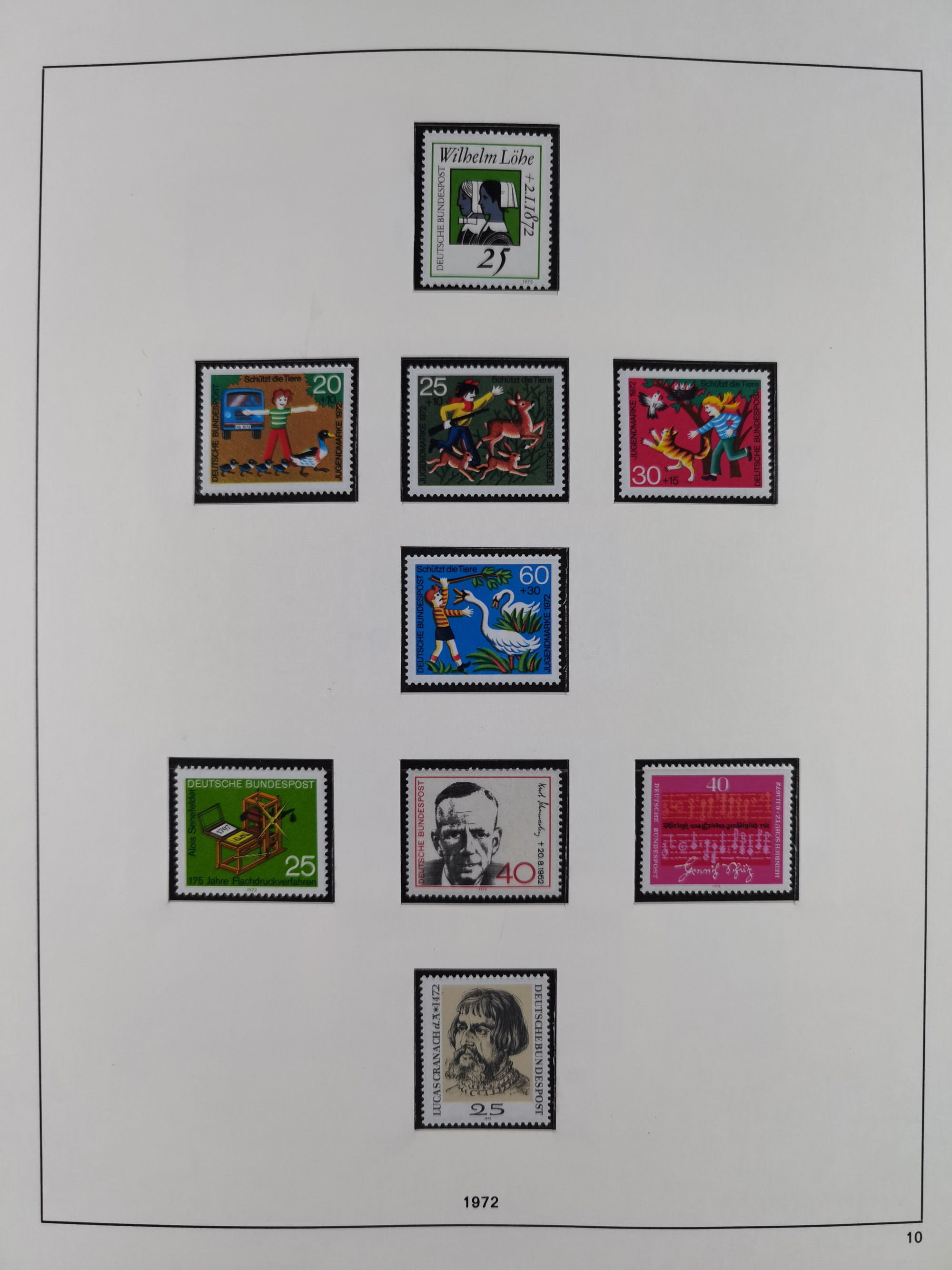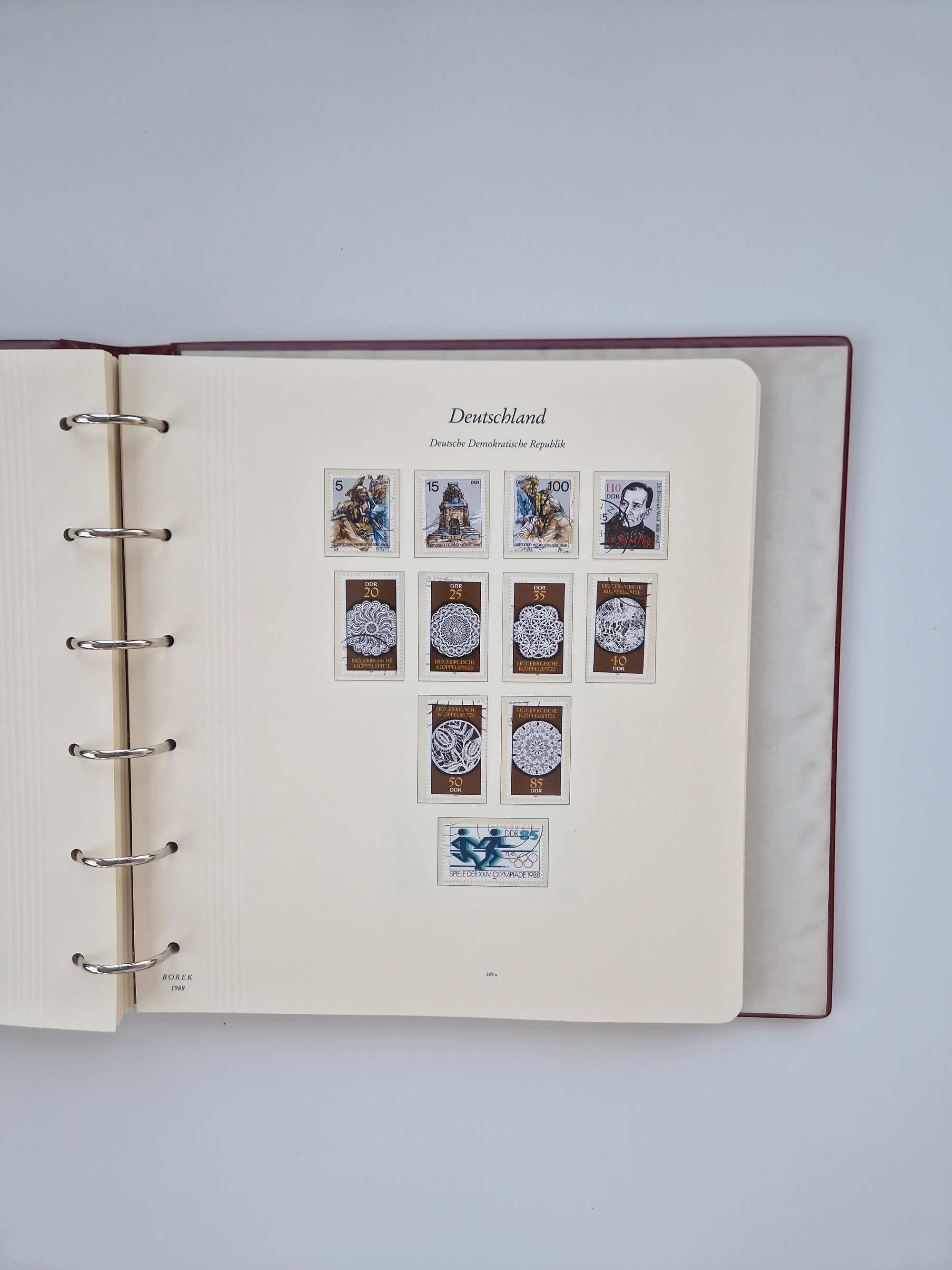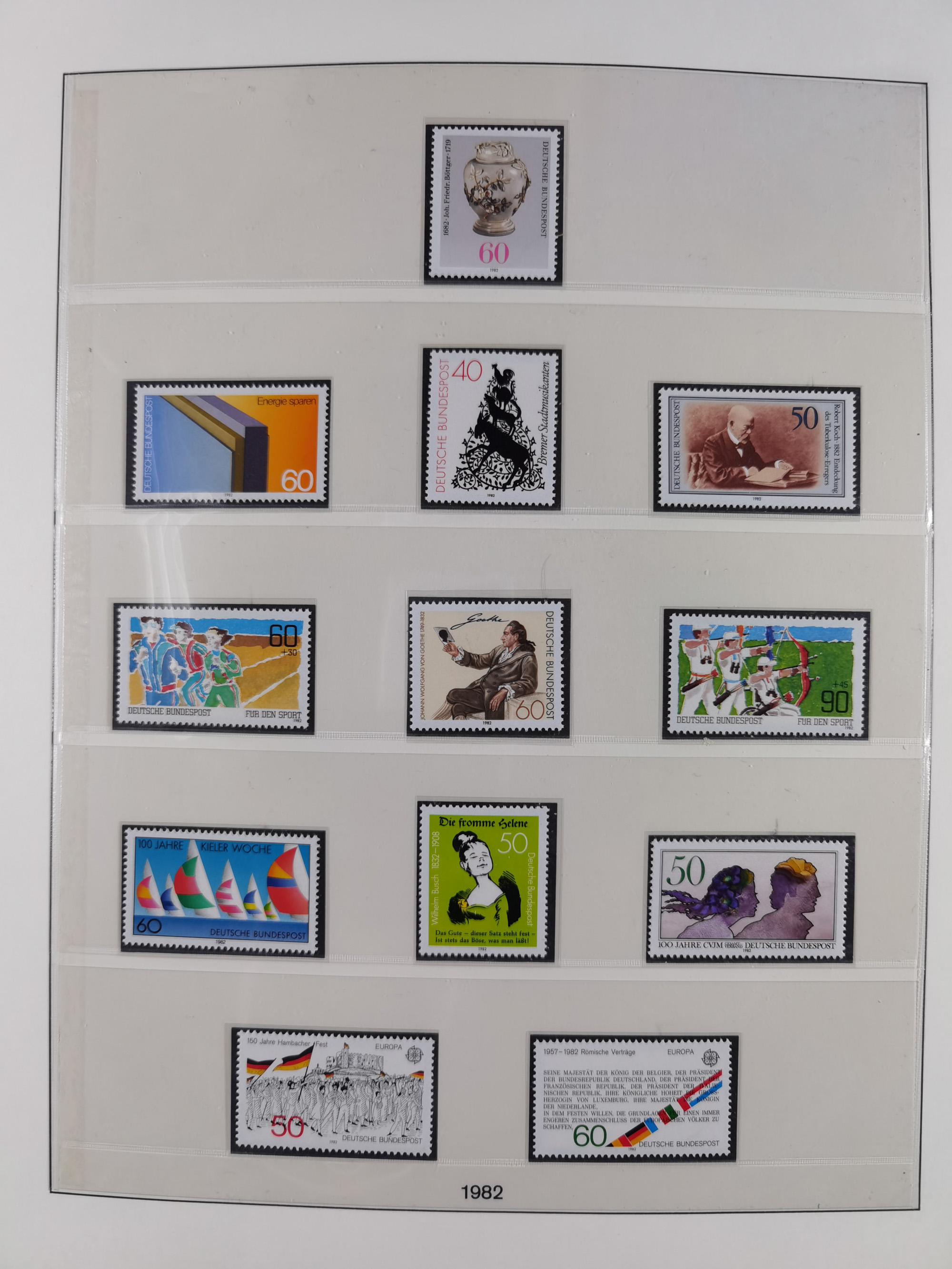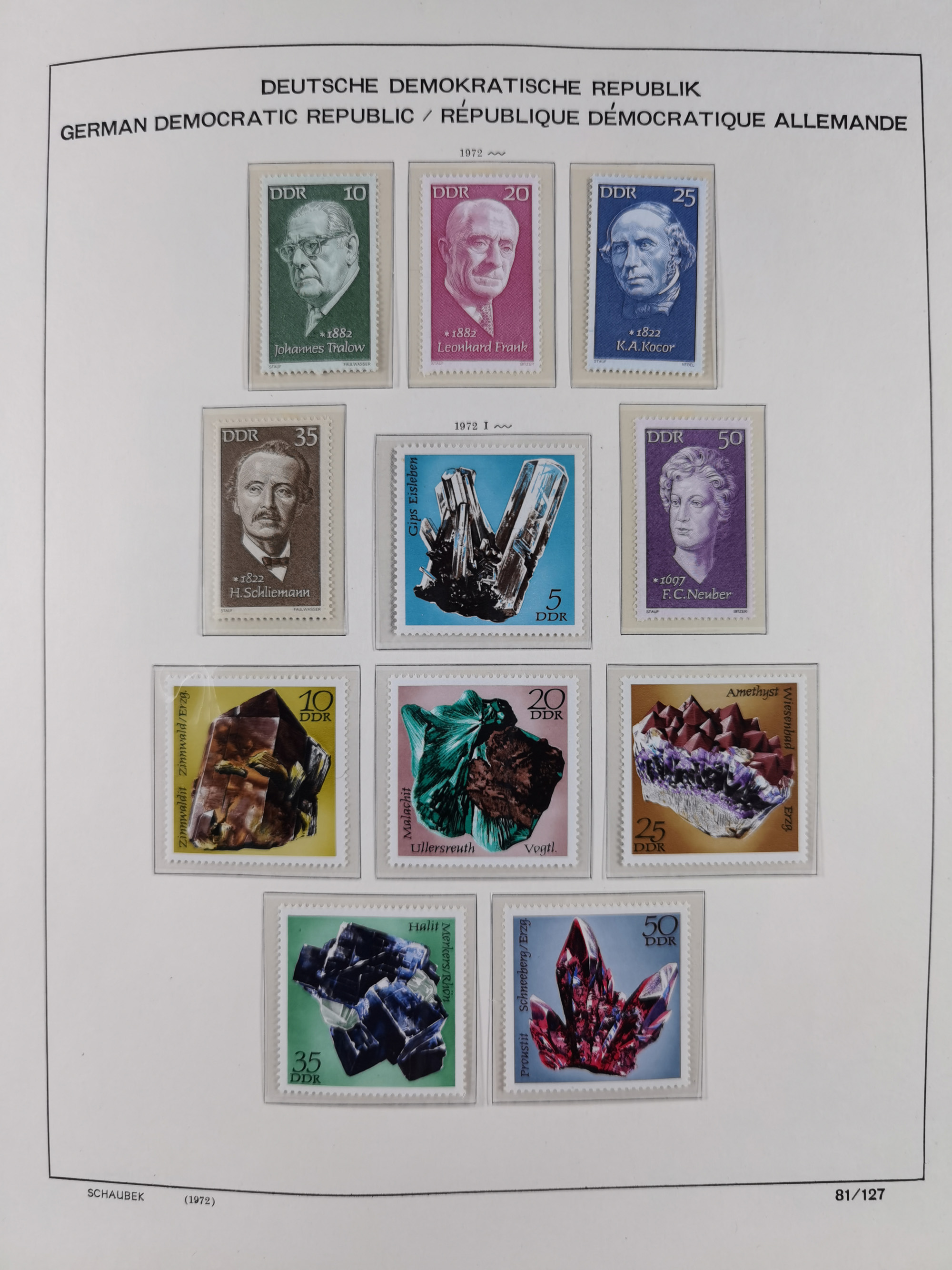 1948/90, in den Hauptnummern bis 1960 komplette postfrische Sammlungen Berlin 1948-90 inkl. Schwarzaufdruck, Rotaufdruck sign. Dub und Block 1, Bundesrepublik 1949-72 inkl. Posthornsatz, sowie DDR 1949-71 inkl. ausgiebigen Teilen Zusammendrucke, es fehlen bei den späten modernen Ausgaben teils einzelne Werte oder Sätze, gute Erhaltung, Alben mit Lagerspuren, in 11 Vordruckalben