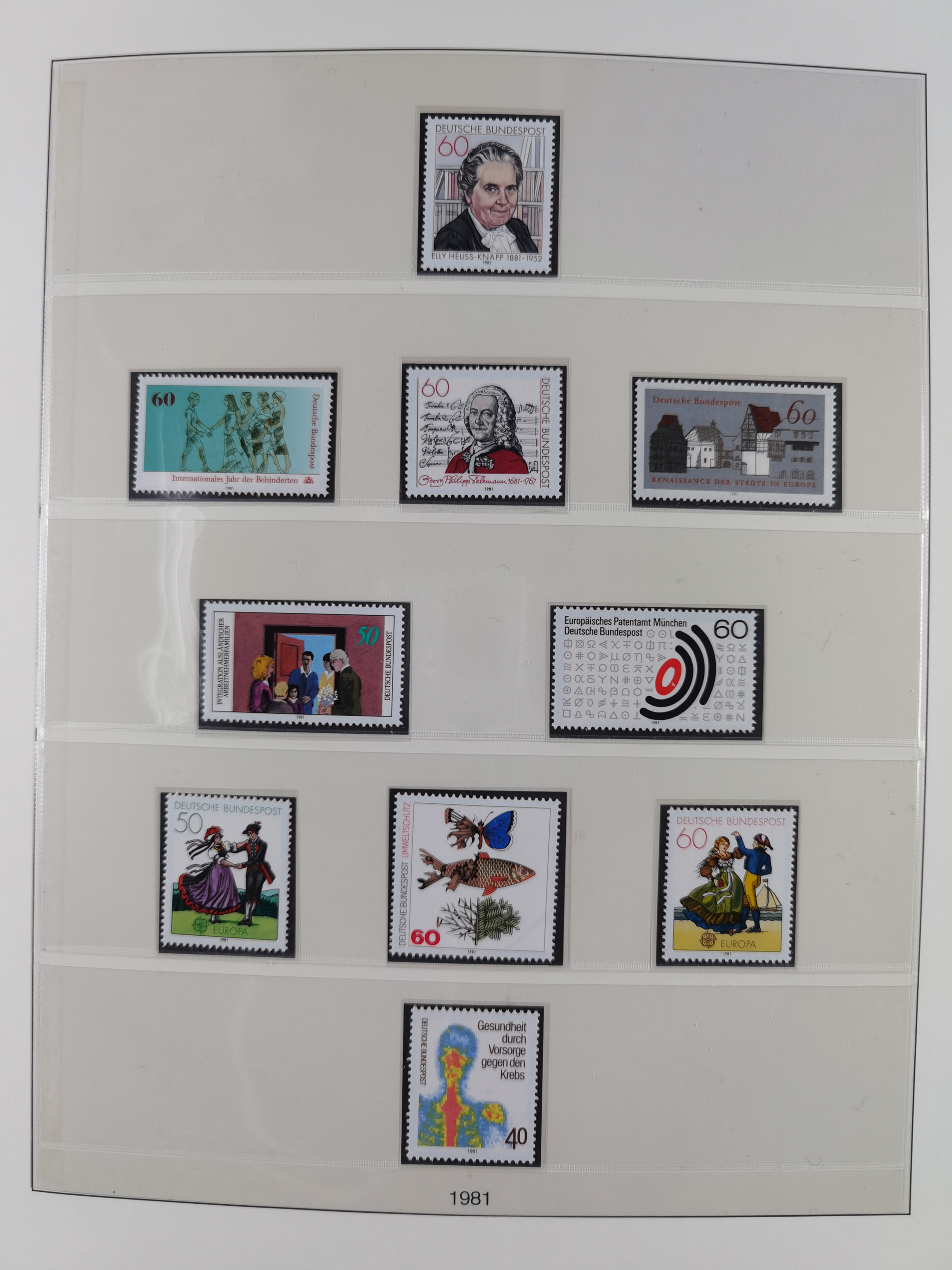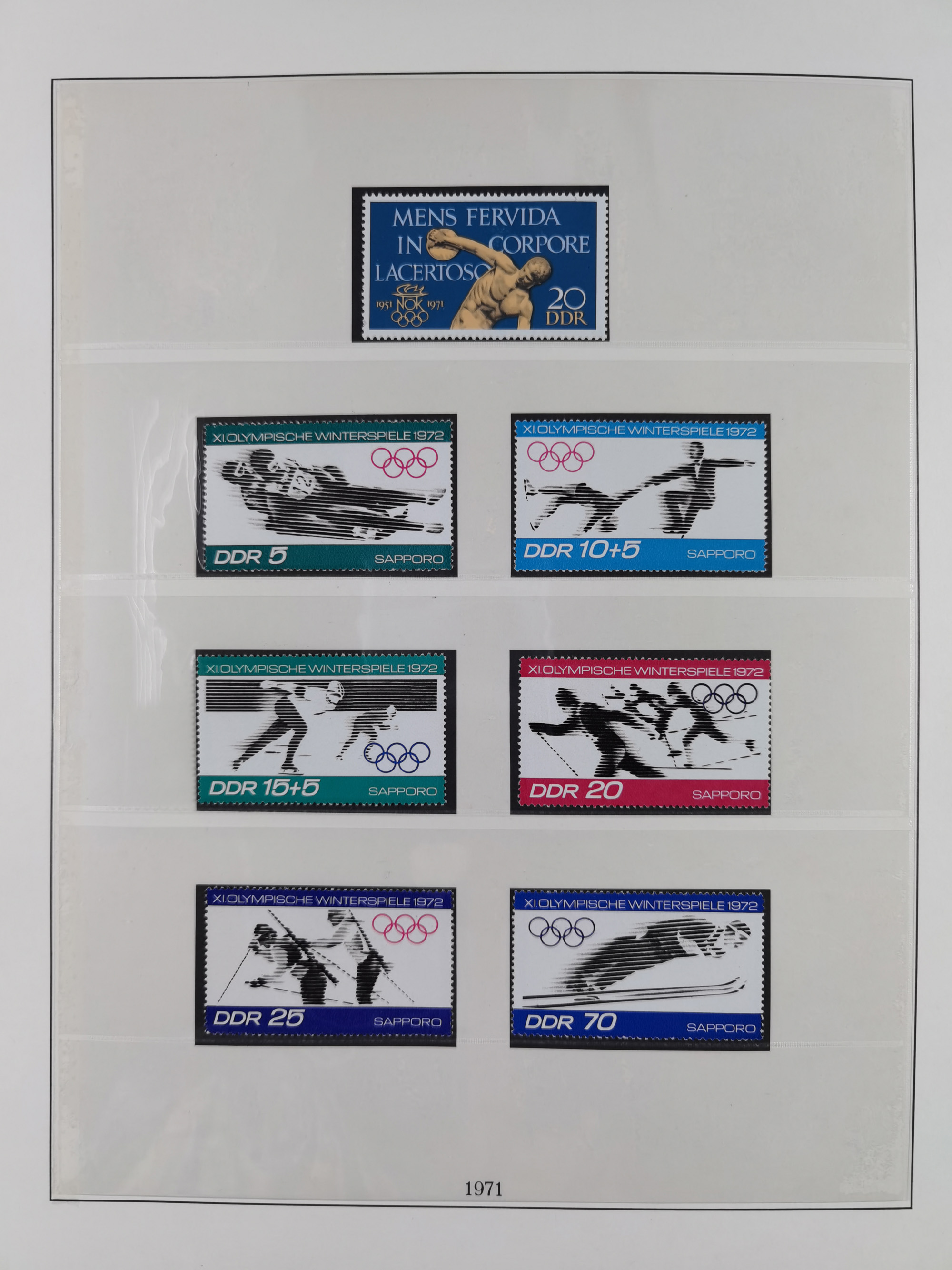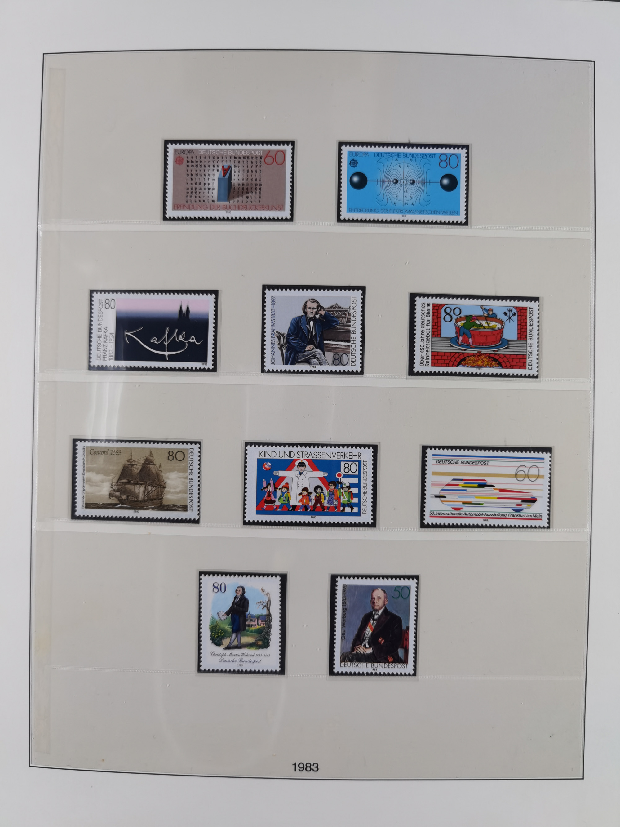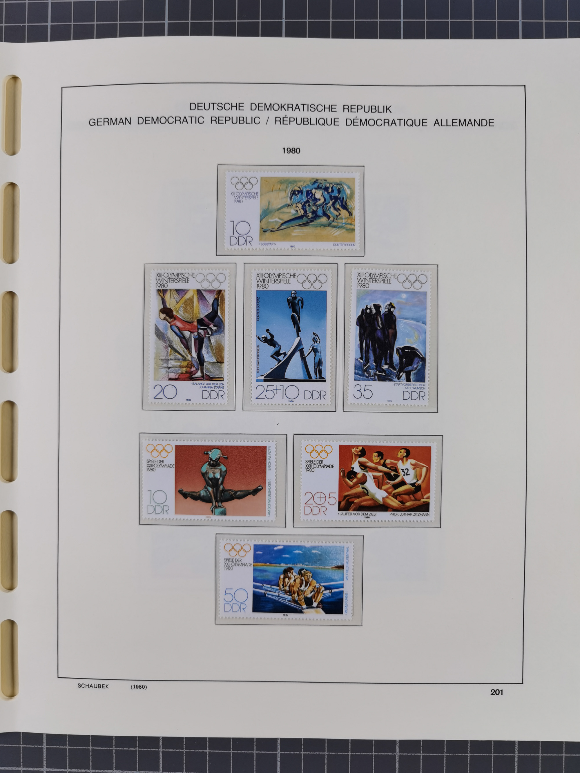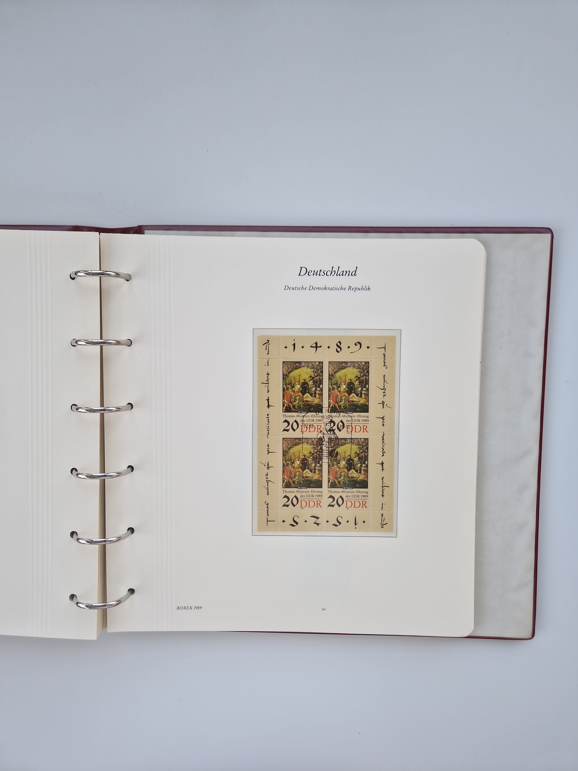 1948/90, in den Hauptnummern bis 1960 komplette postfrische Sammlungen Berlin 1948-90 inkl. Schwarzaufdruck, Rotaufdruck sign. Dub und Block 1, Bundesrepublik 1949-72 inkl. Posthornsatz, sowie DDR 1949-71 inkl. ausgiebigen Teilen Zusammendrucke, es fehlen bei den späten modernen Ausgaben teils einzelne Werte oder Sätze, gute Erhaltung, Alben mit Lagerspuren, in 11 Vordruckalben