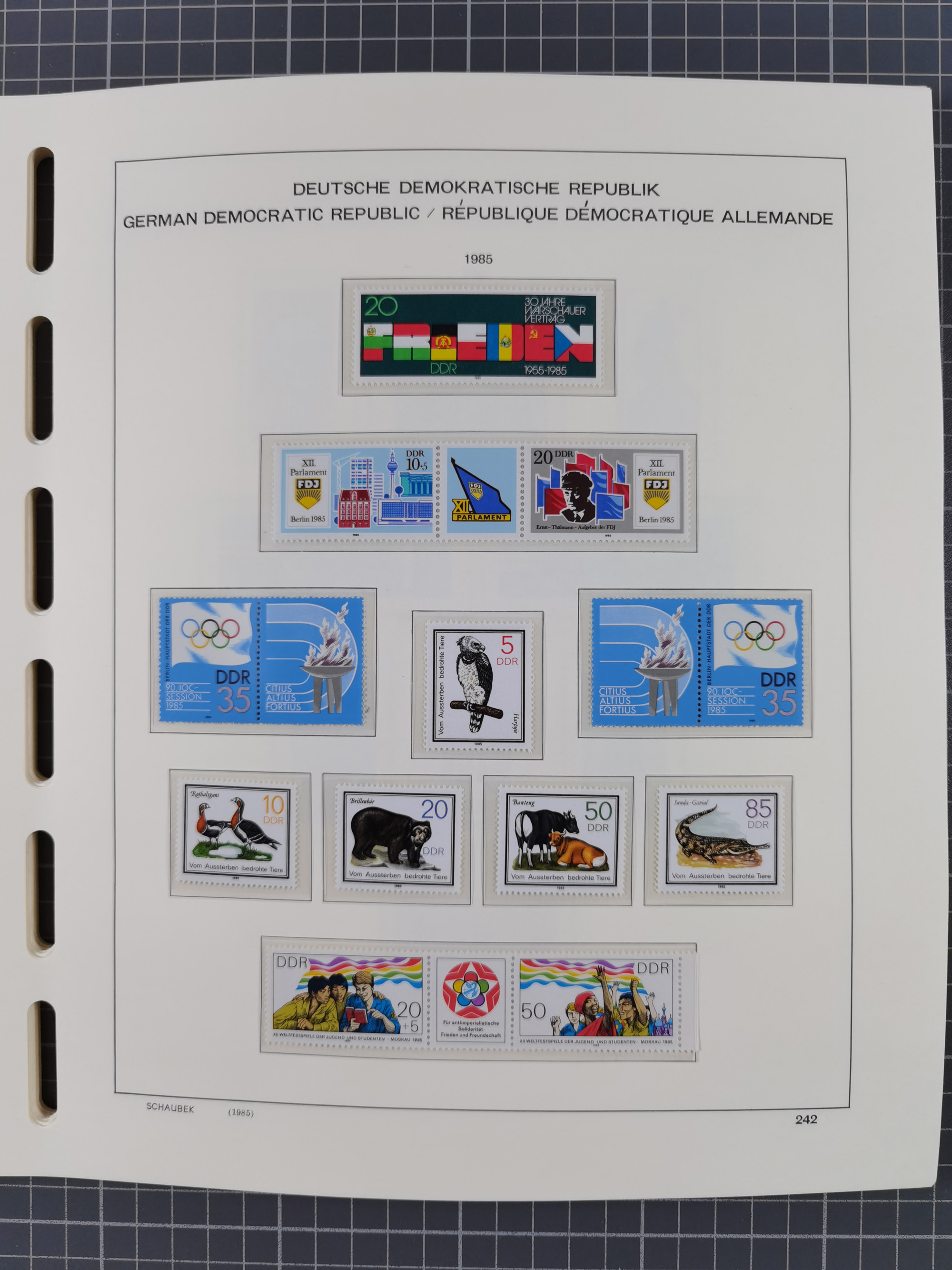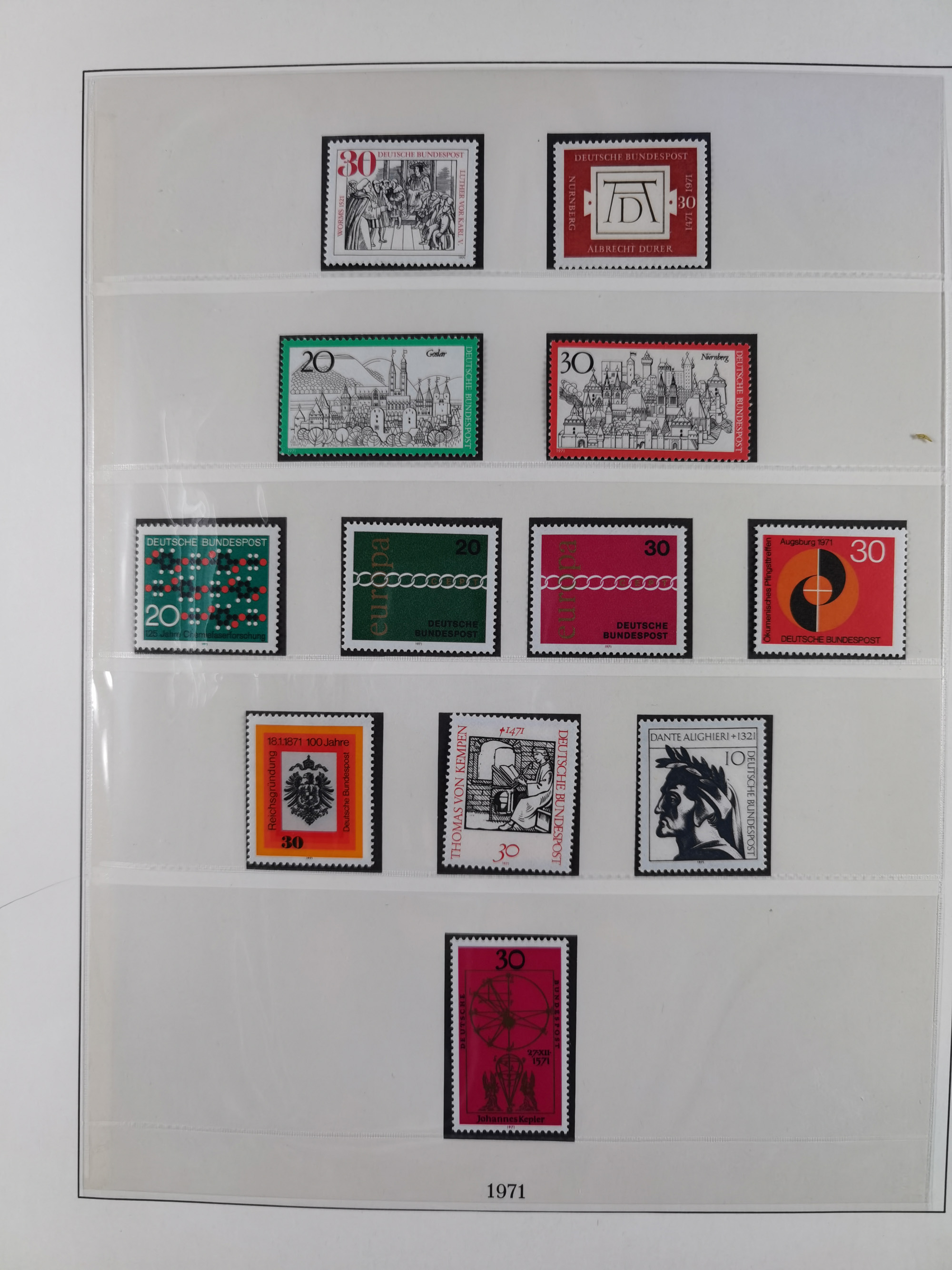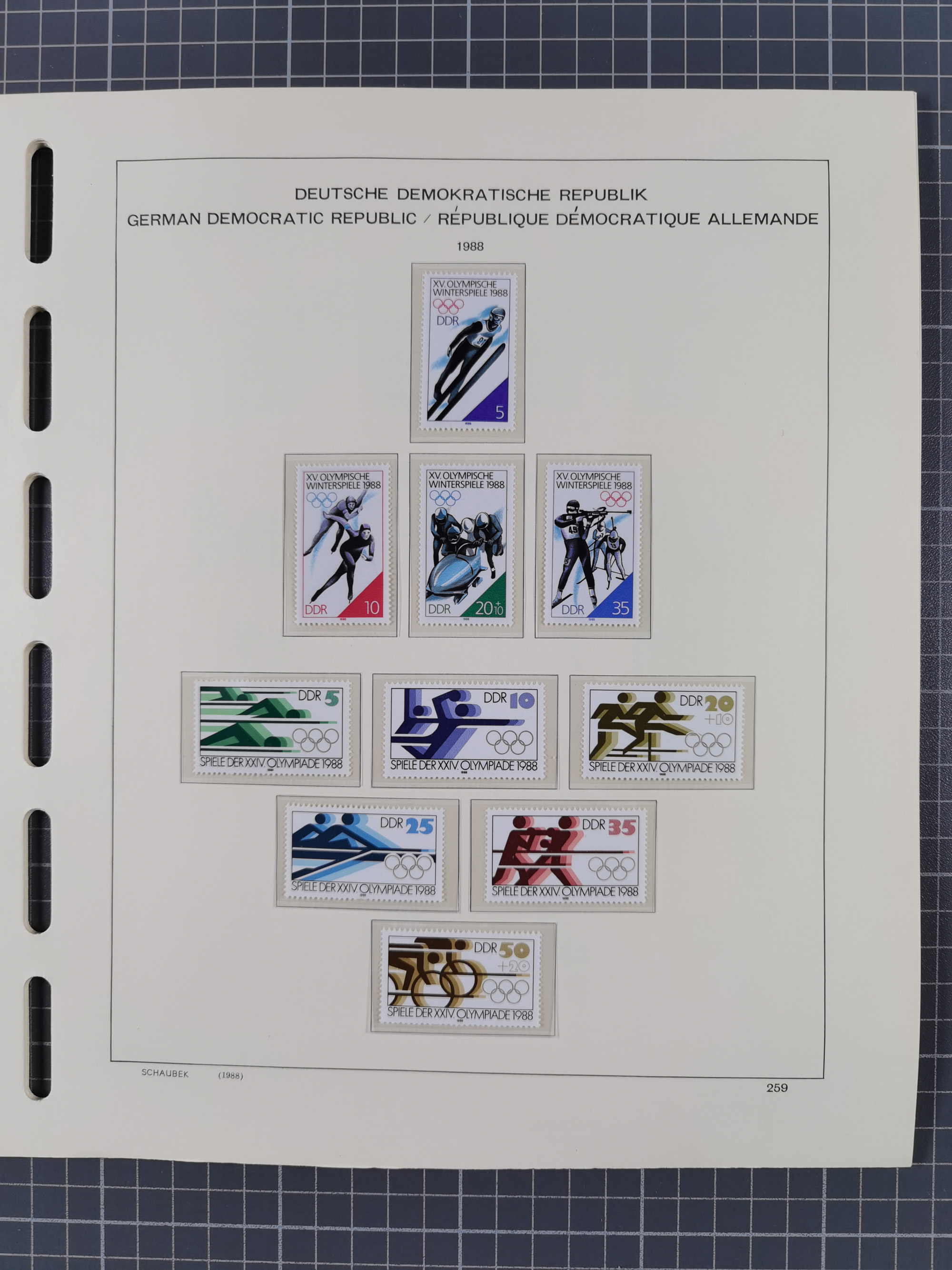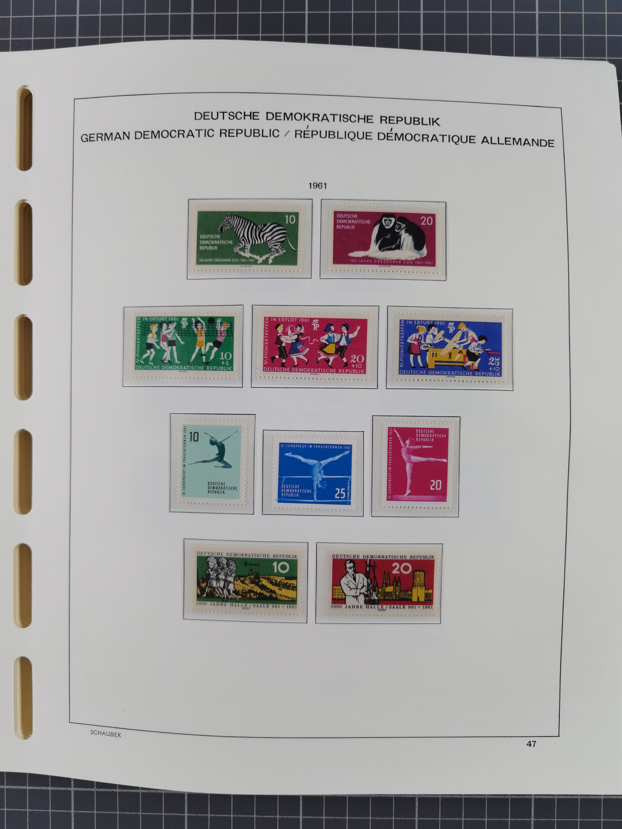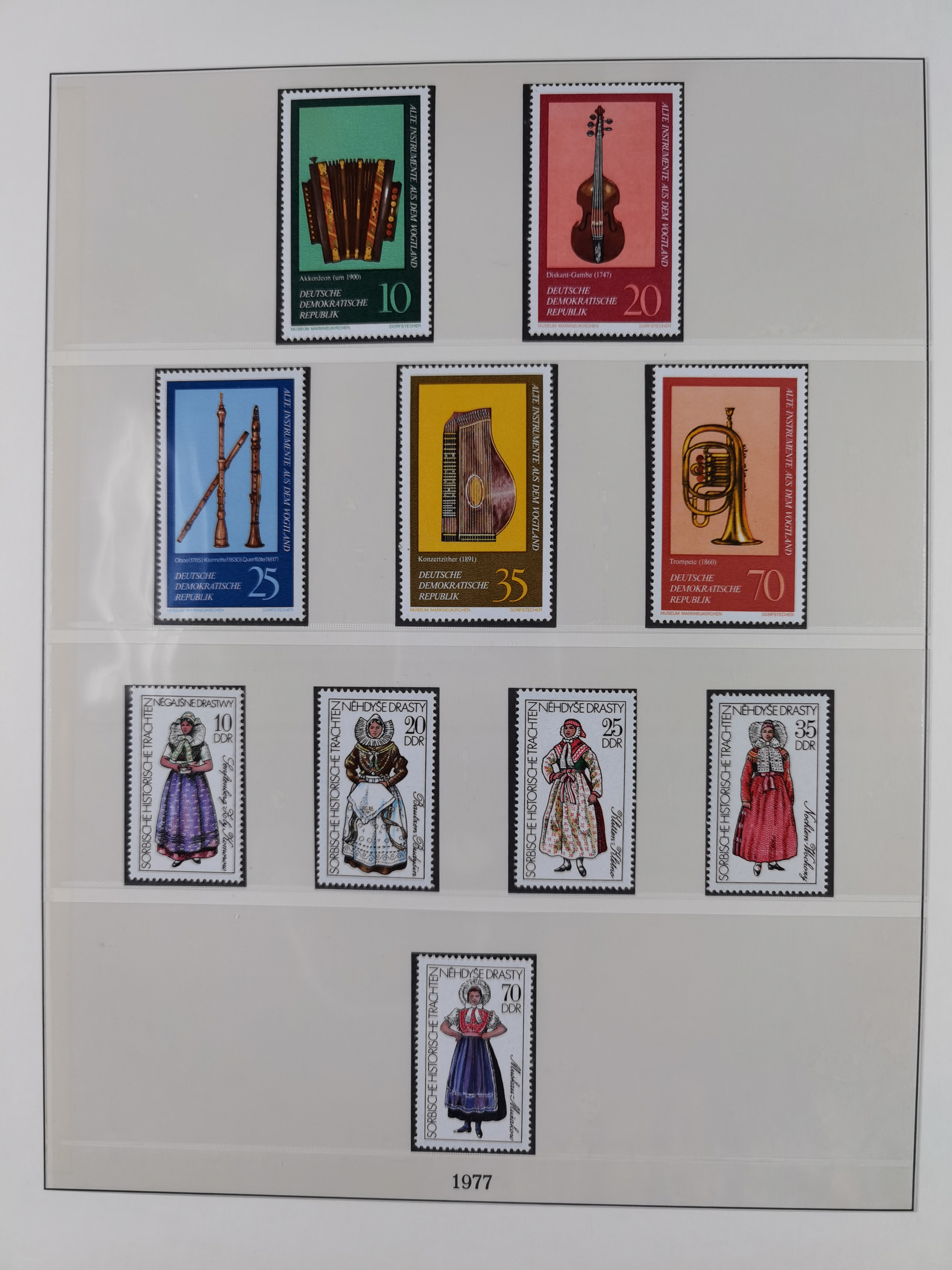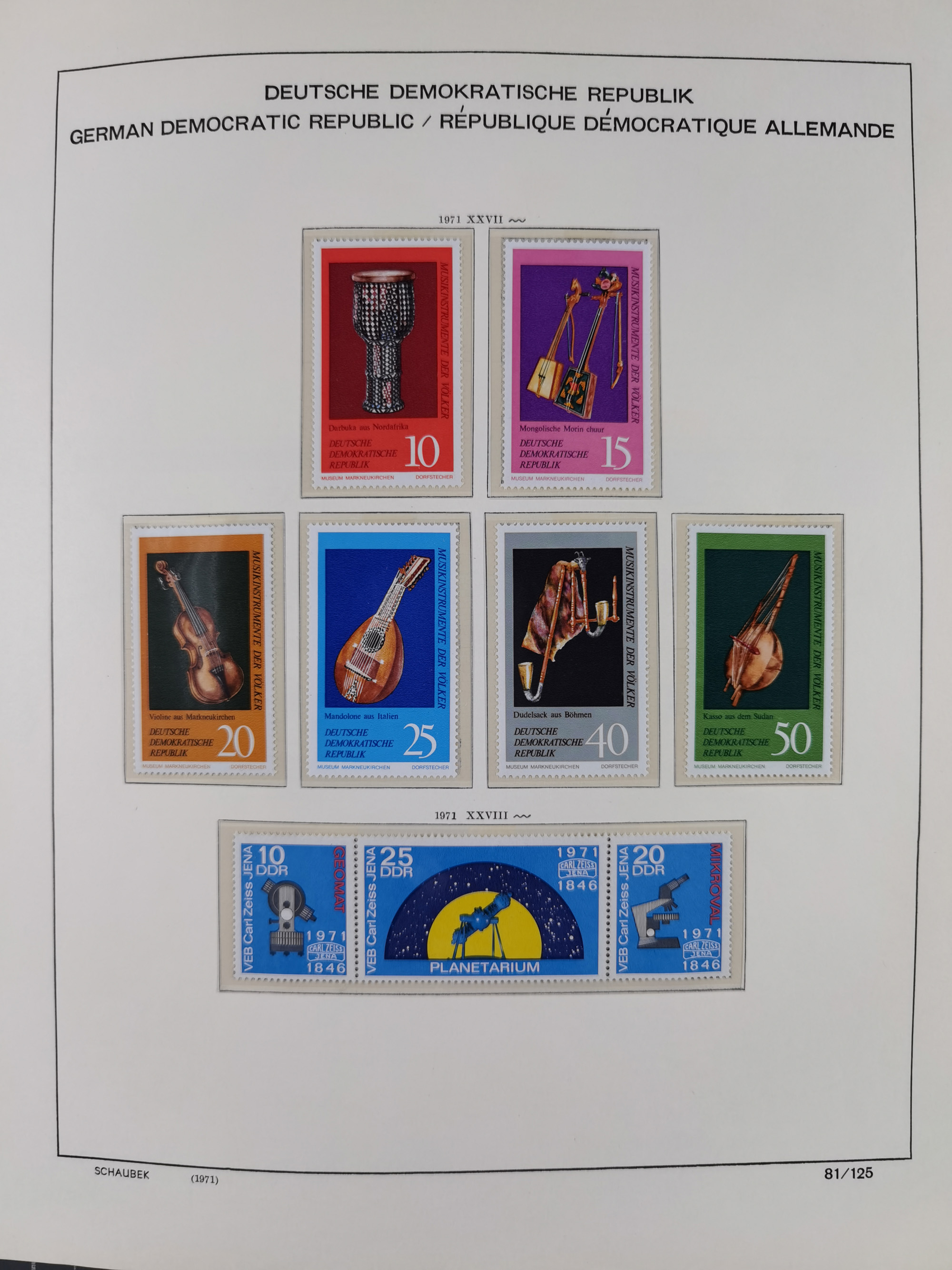 1948/90, in den Hauptnummern bis 1960 komplette postfrische Sammlungen Berlin 1948-90 inkl. Schwarzaufdruck, Rotaufdruck sign. Dub und Block 1, Bundesrepublik 1949-72 inkl. Posthornsatz, sowie DDR 1949-71 inkl. ausgiebigen Teilen Zusammendrucke, es fehlen bei den späten modernen Ausgaben teils einzelne Werte oder Sätze, gute Erhaltung, Alben mit Lagerspuren, in 11 Vordruckalben