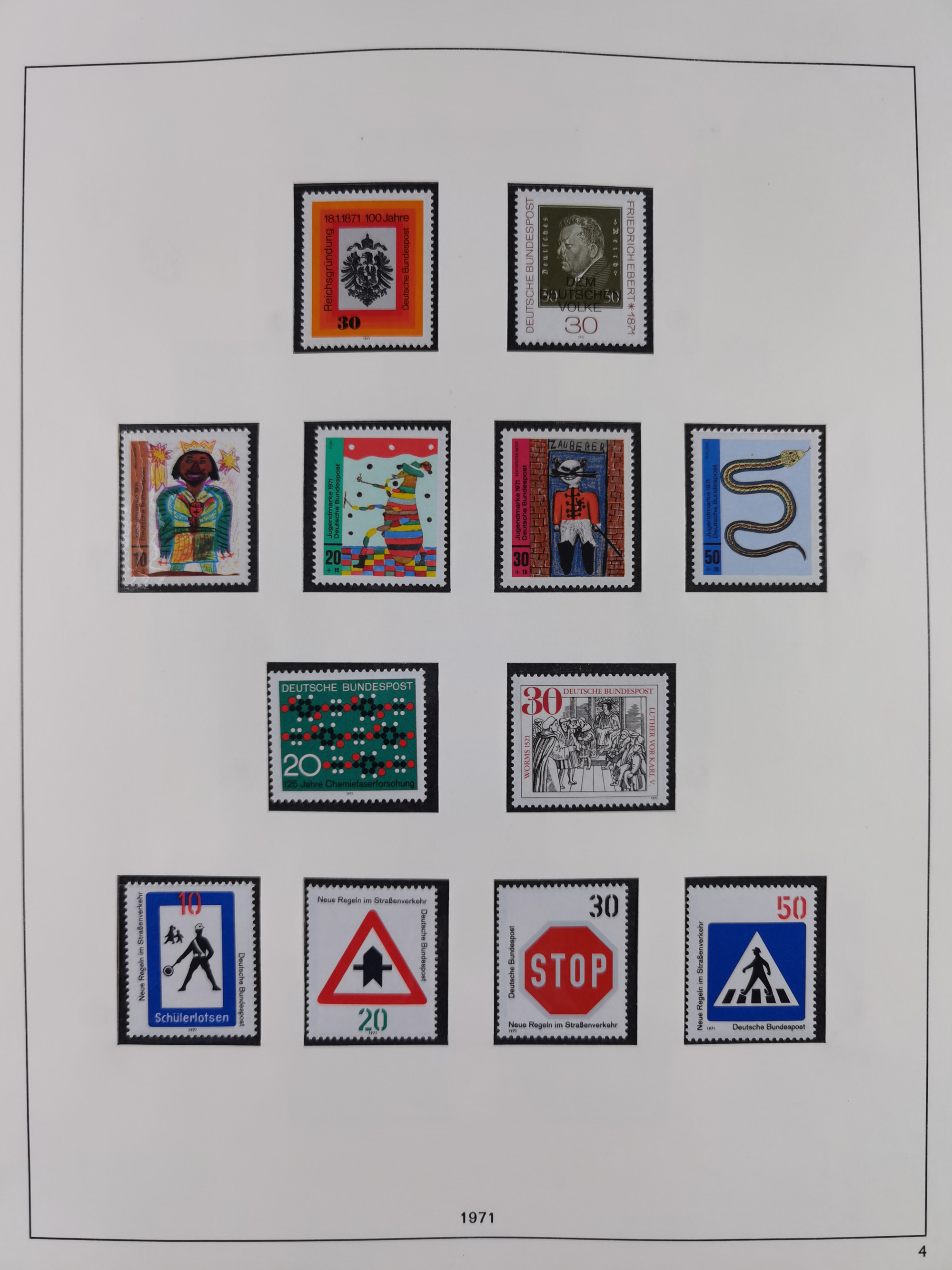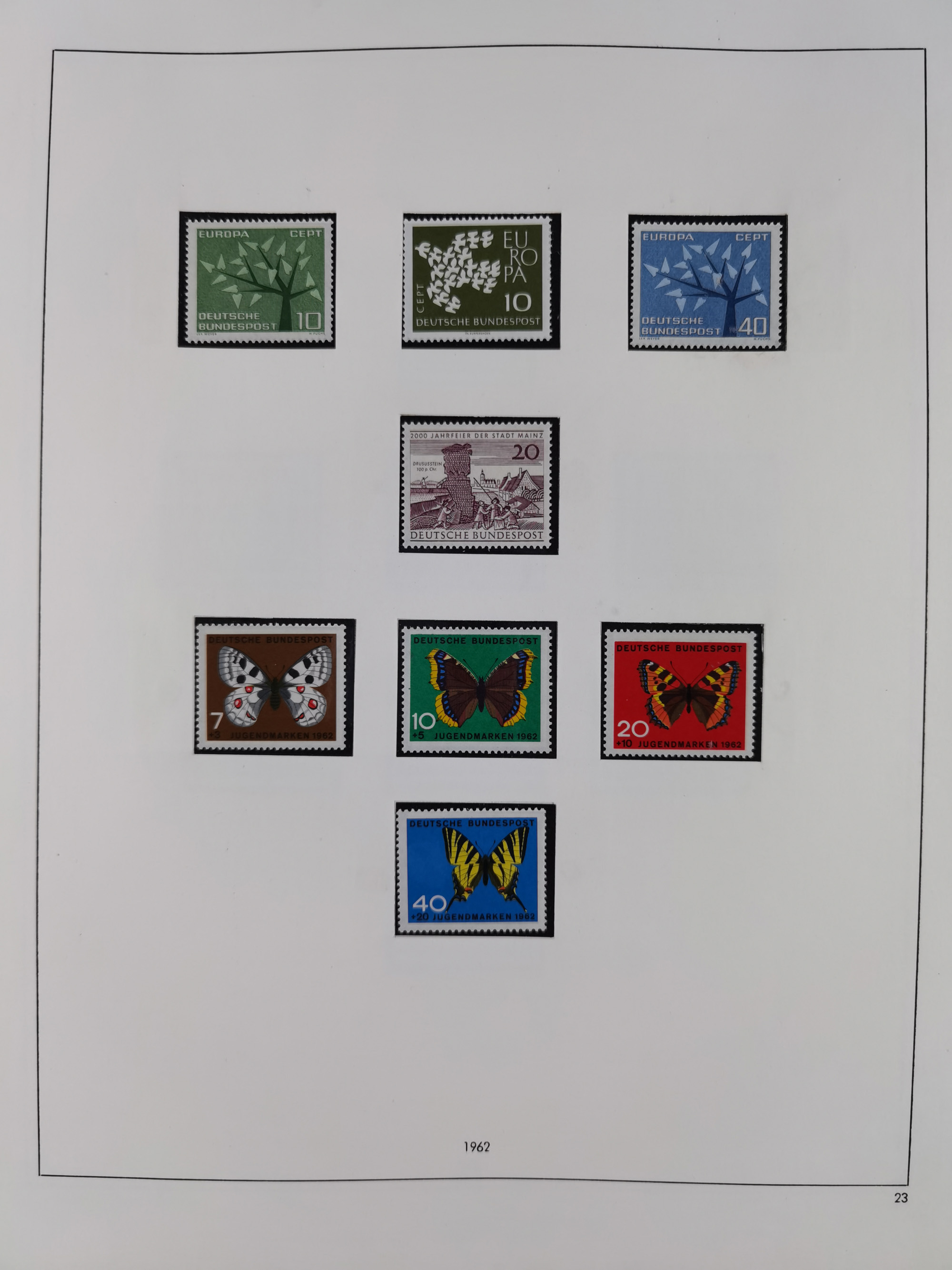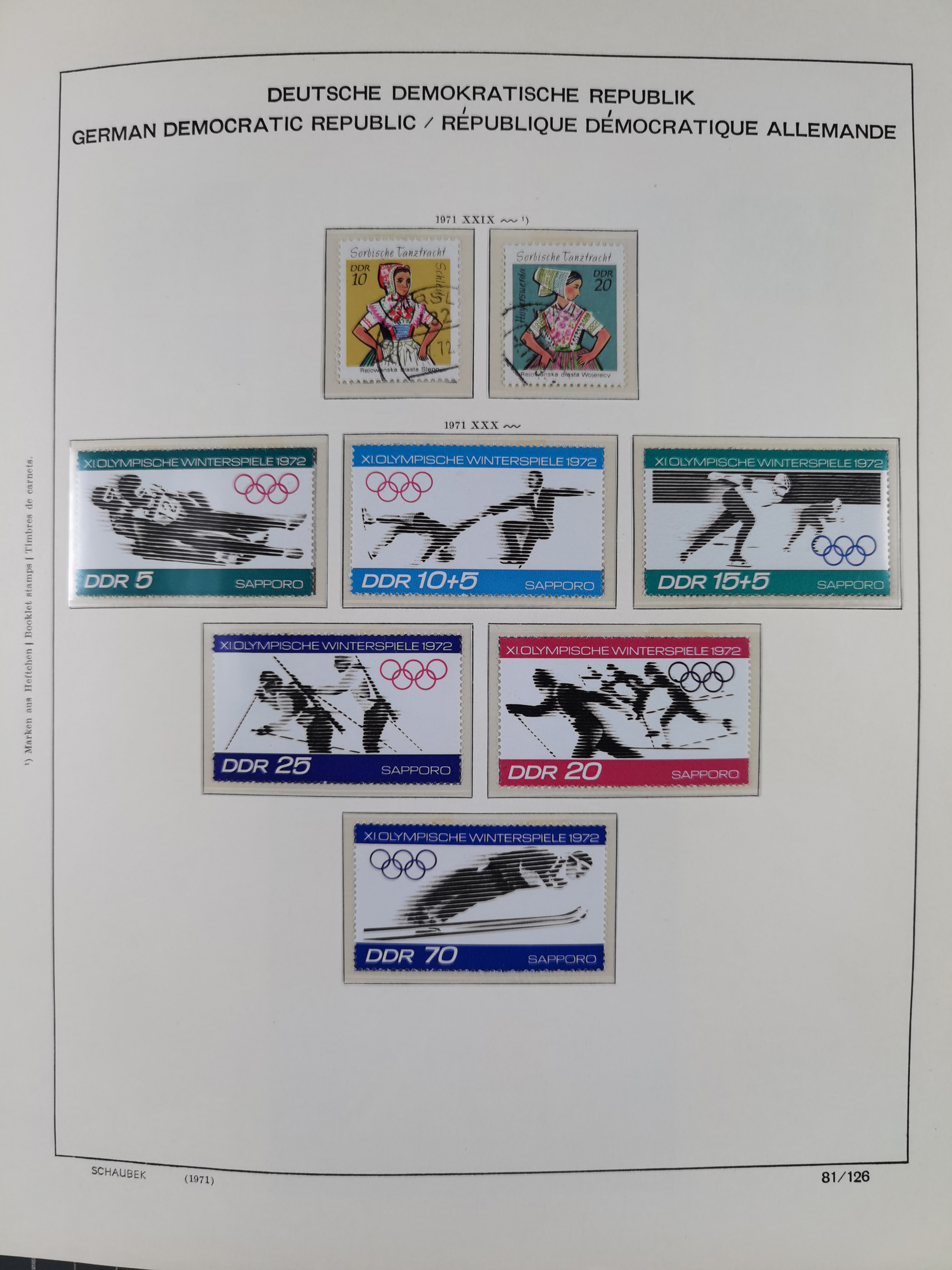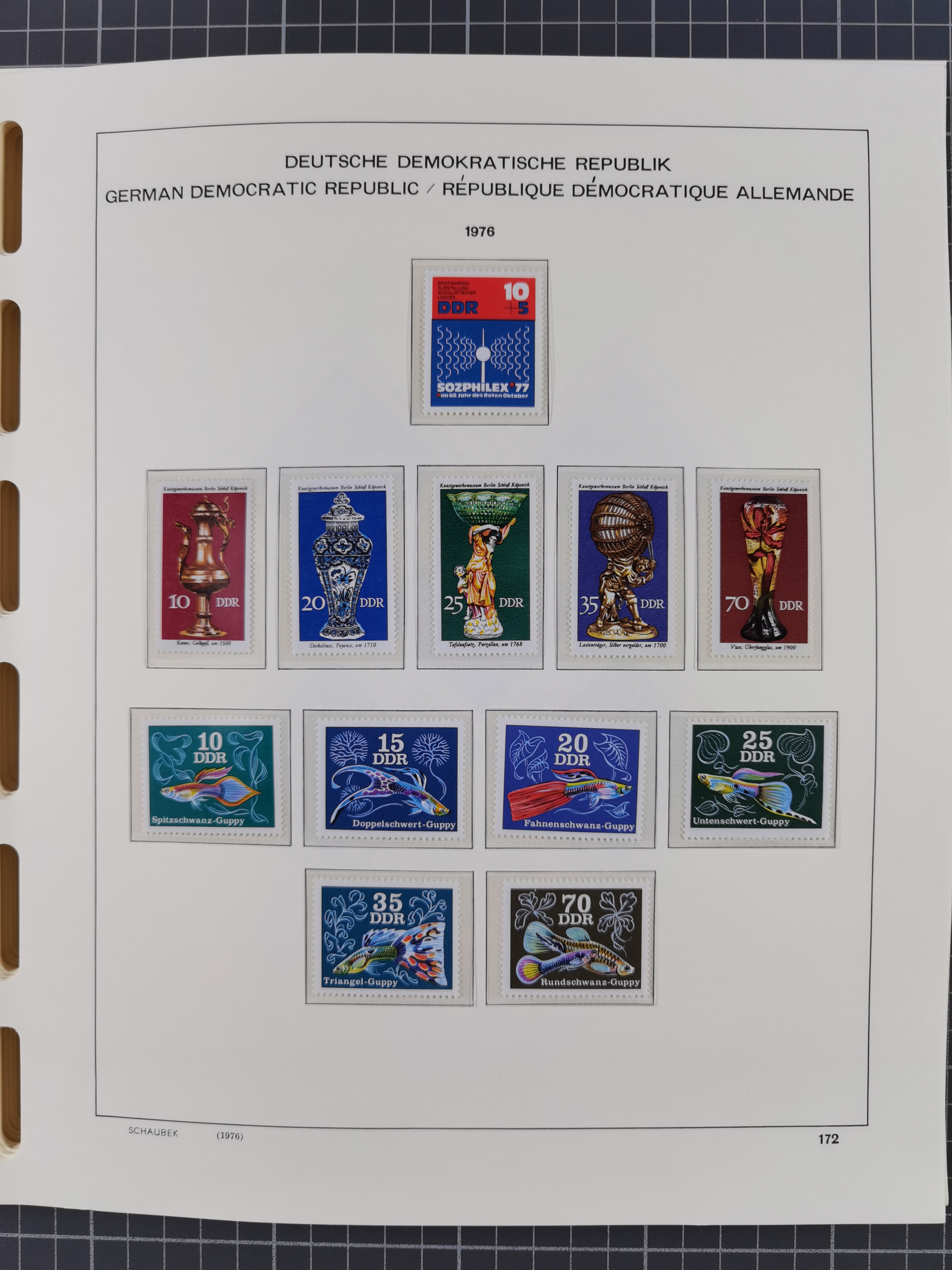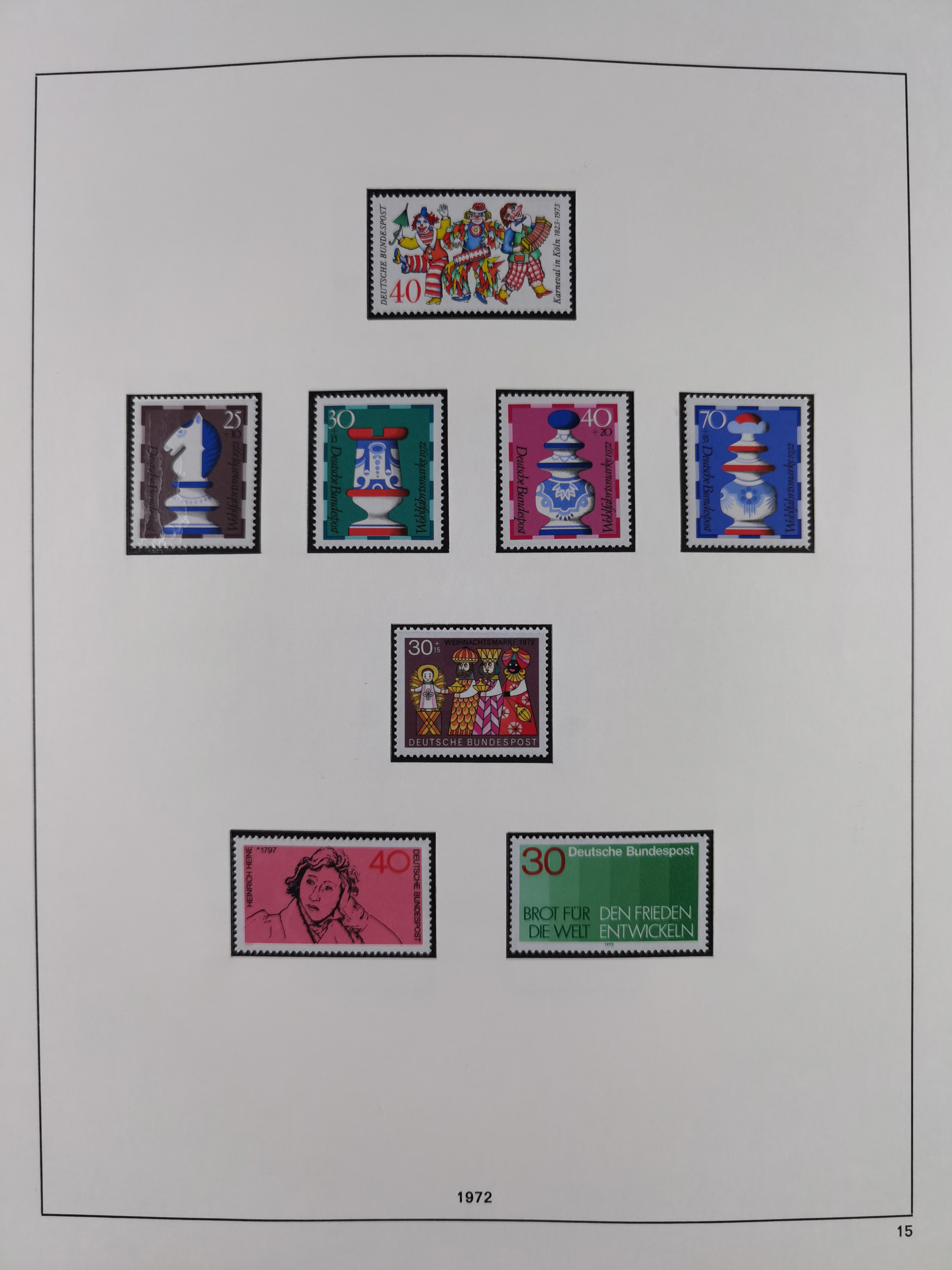 1948/90, in den Hauptnummern bis 1960 komplette postfrische Sammlungen Berlin 1948-90 inkl. Schwarzaufdruck, Rotaufdruck sign. Dub und Block 1, Bundesrepublik 1949-72 inkl. Posthornsatz, sowie DDR 1949-71 inkl. ausgiebigen Teilen Zusammendrucke, es fehlen bei den späten modernen Ausgaben teils einzelne Werte oder Sätze, gute Erhaltung, Alben mit Lagerspuren, in 11 Vordruckalben