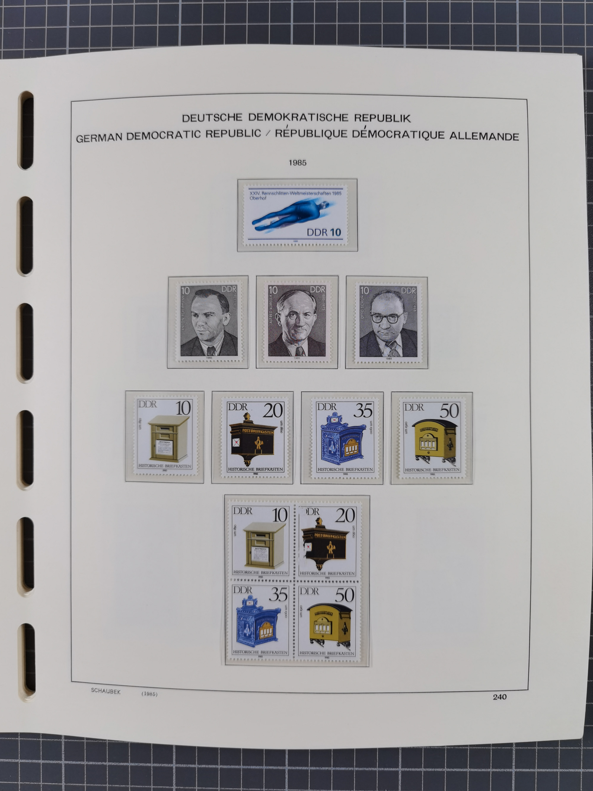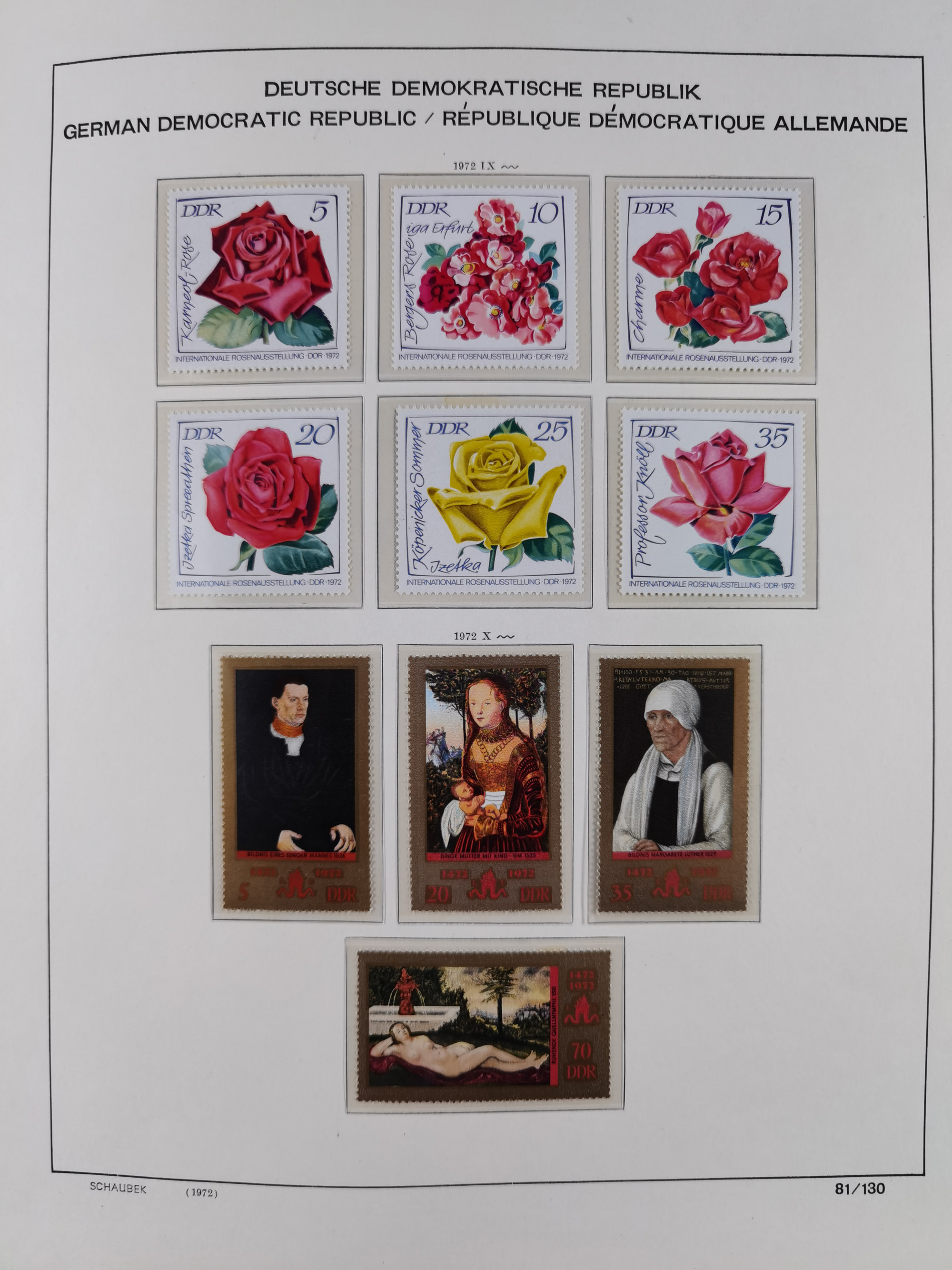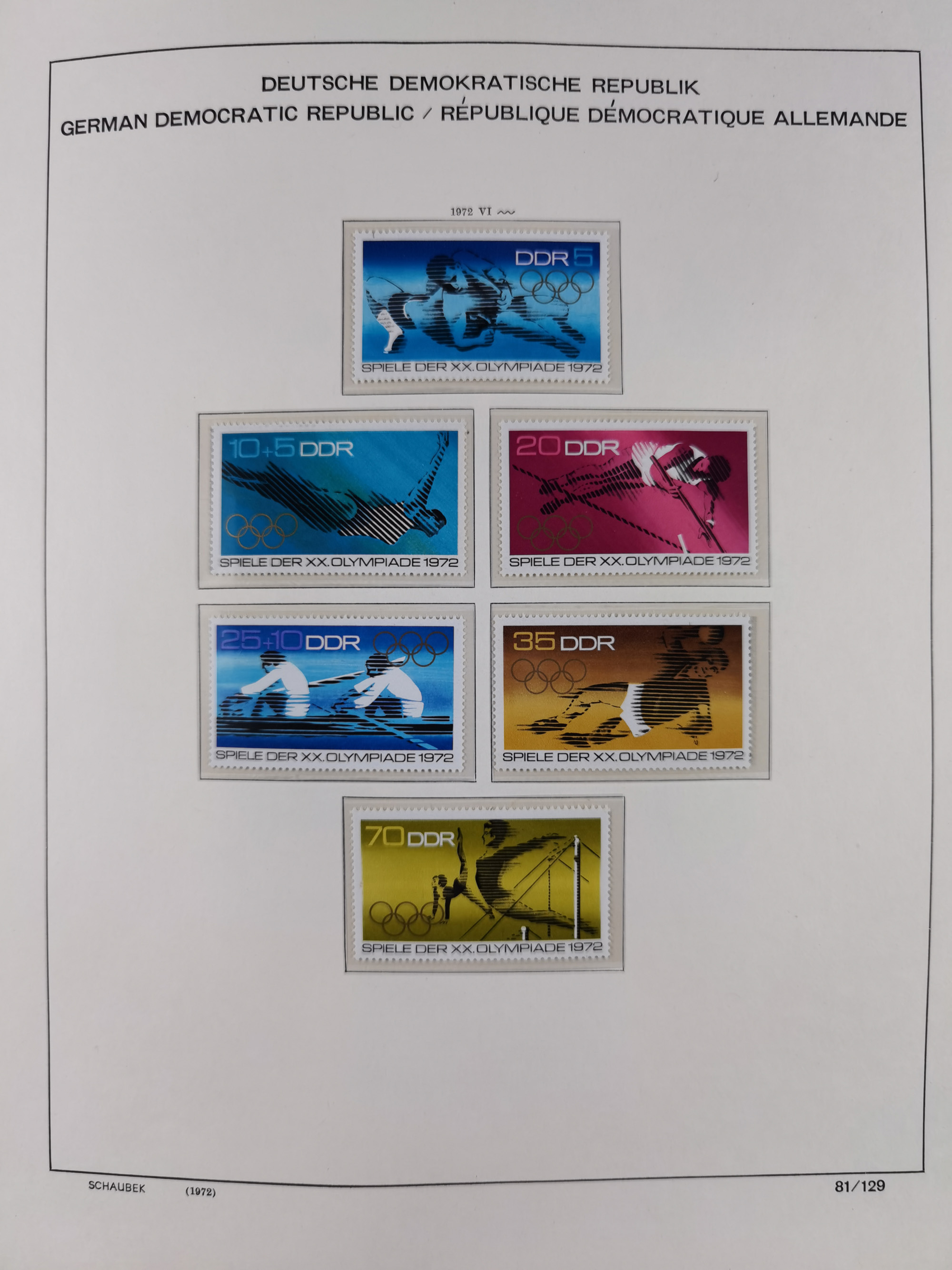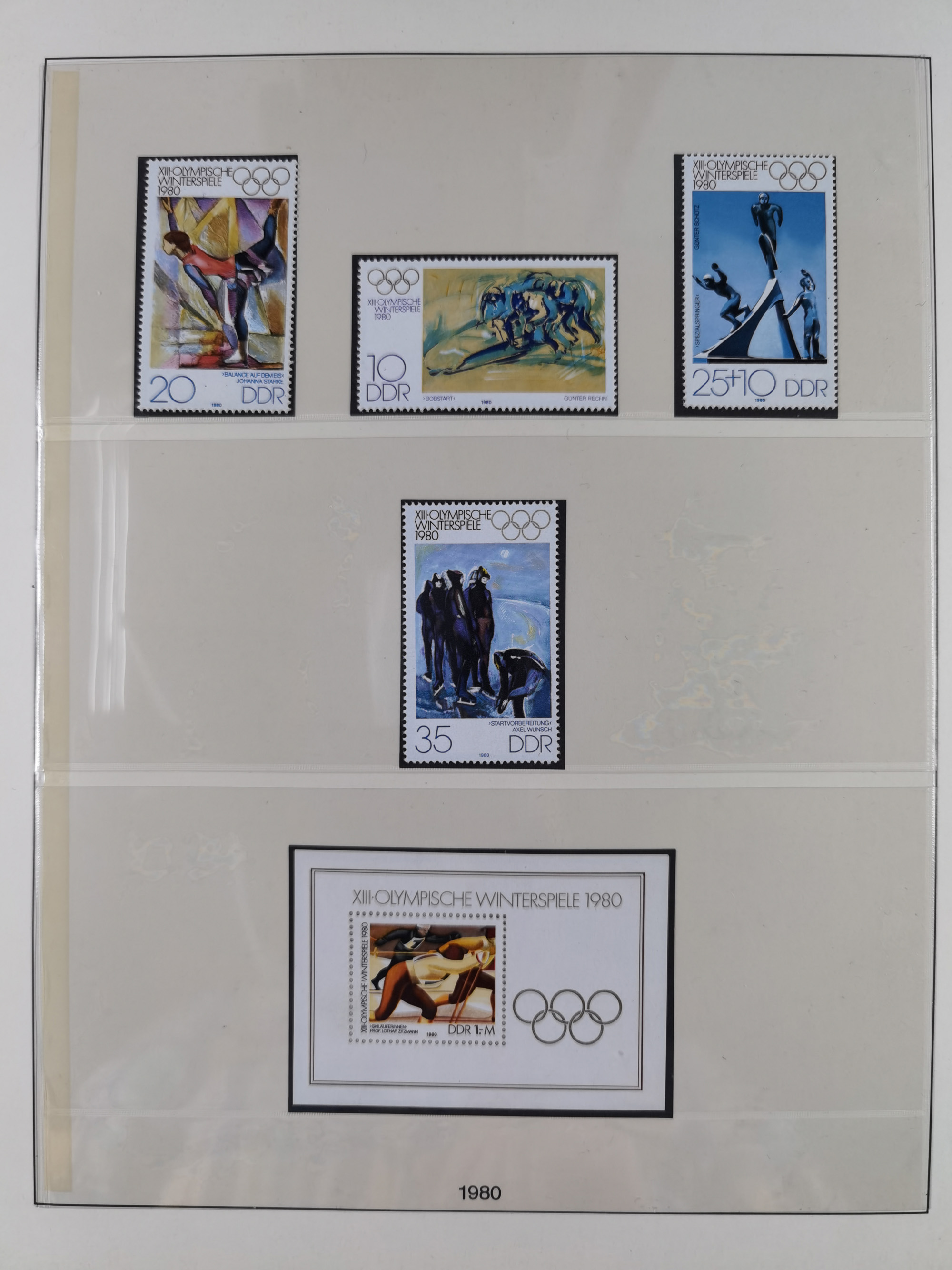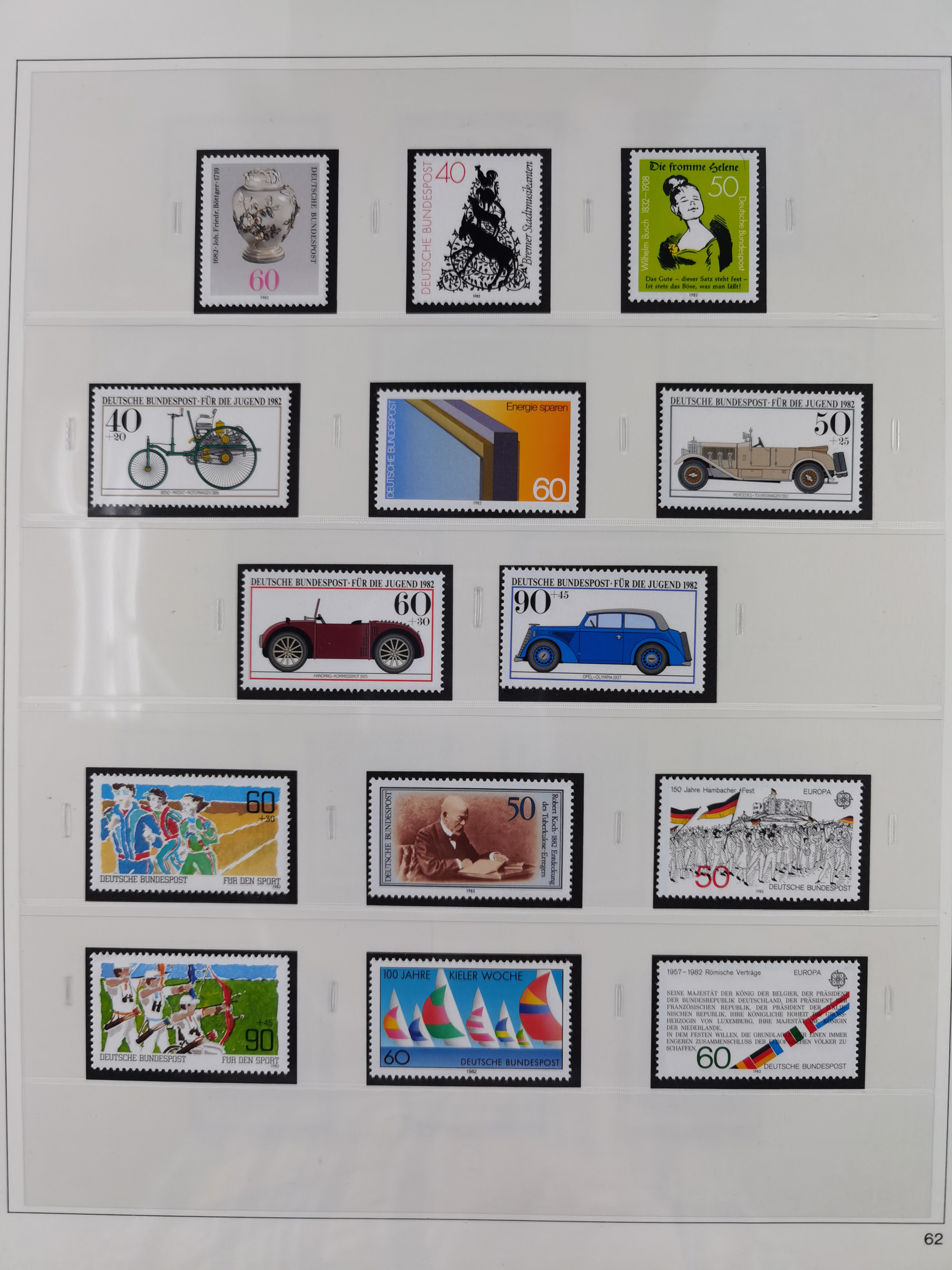1948/90, in den Hauptnummern bis 1960 komplette postfrische Sammlungen Berlin 1948-90 inkl. Schwarzaufdruck, Rotaufdruck sign. Dub und Block 1, Bundesrepublik 1949-72 inkl. Posthornsatz, sowie DDR 1949-71 inkl. ausgiebigen Teilen Zusammendrucke, es fehlen bei den späten modernen Ausgaben teils einzelne Werte oder Sätze, gute Erhaltung, Alben mit Lagerspuren, in 11 Vordruckalben
