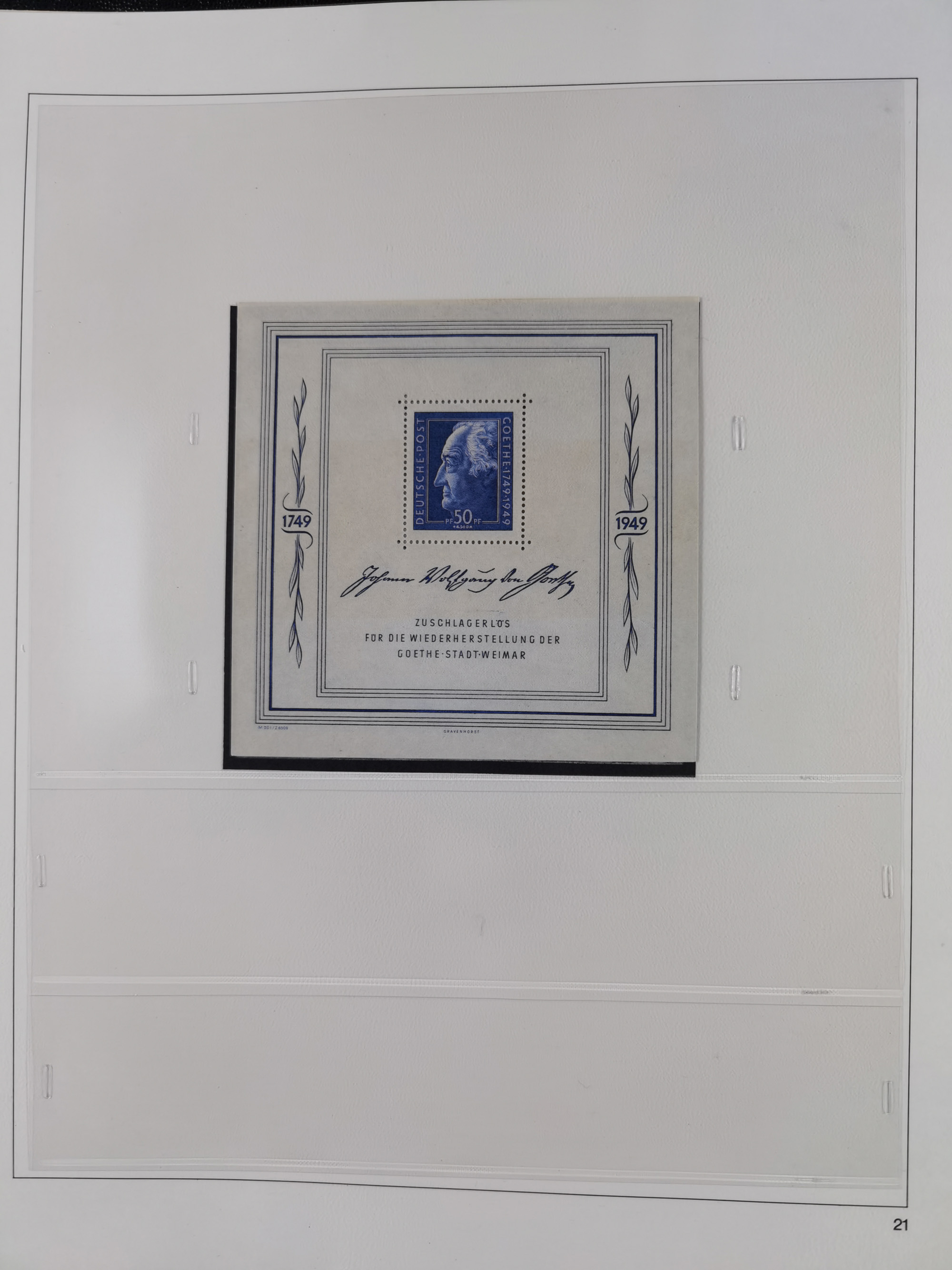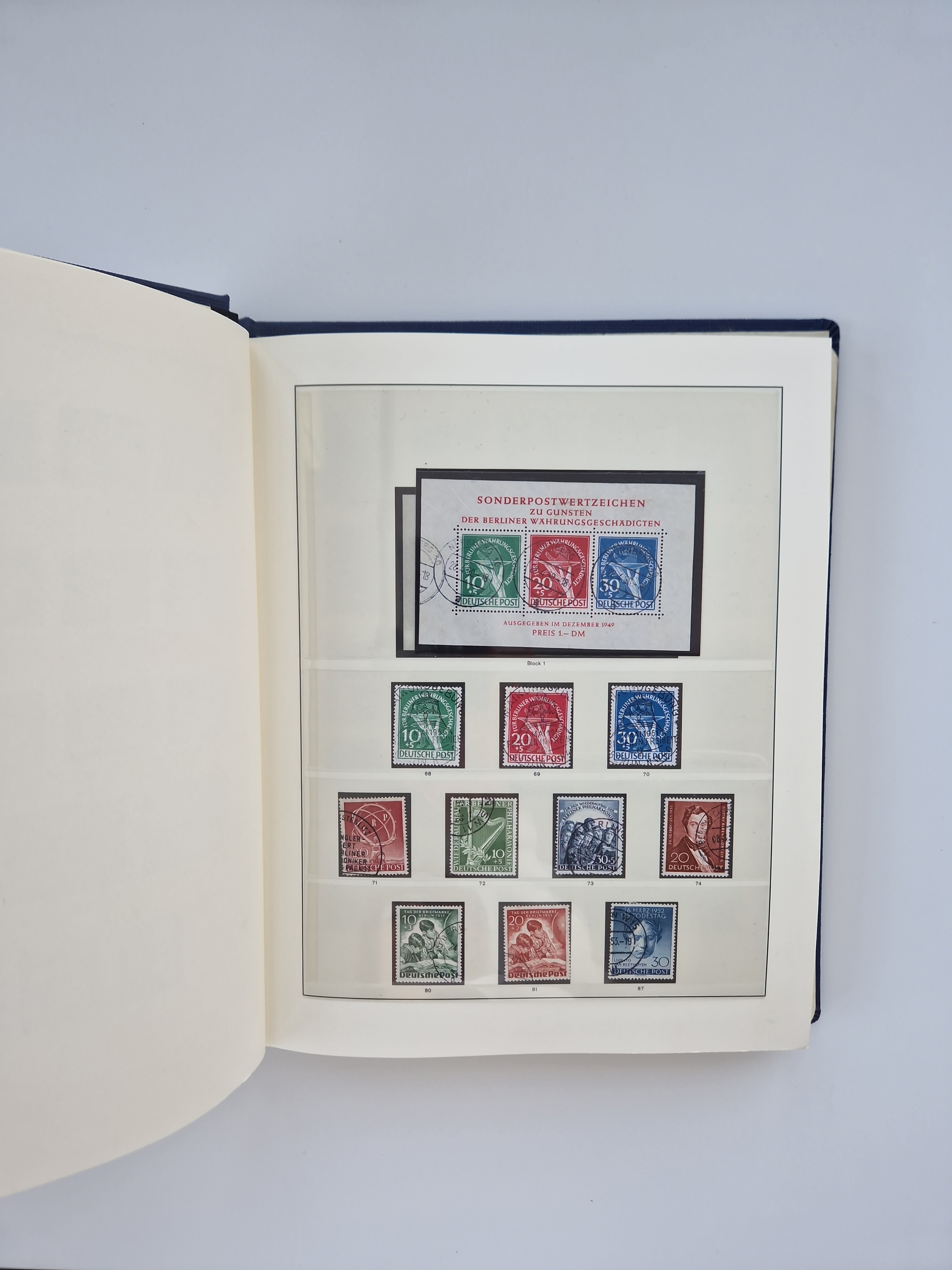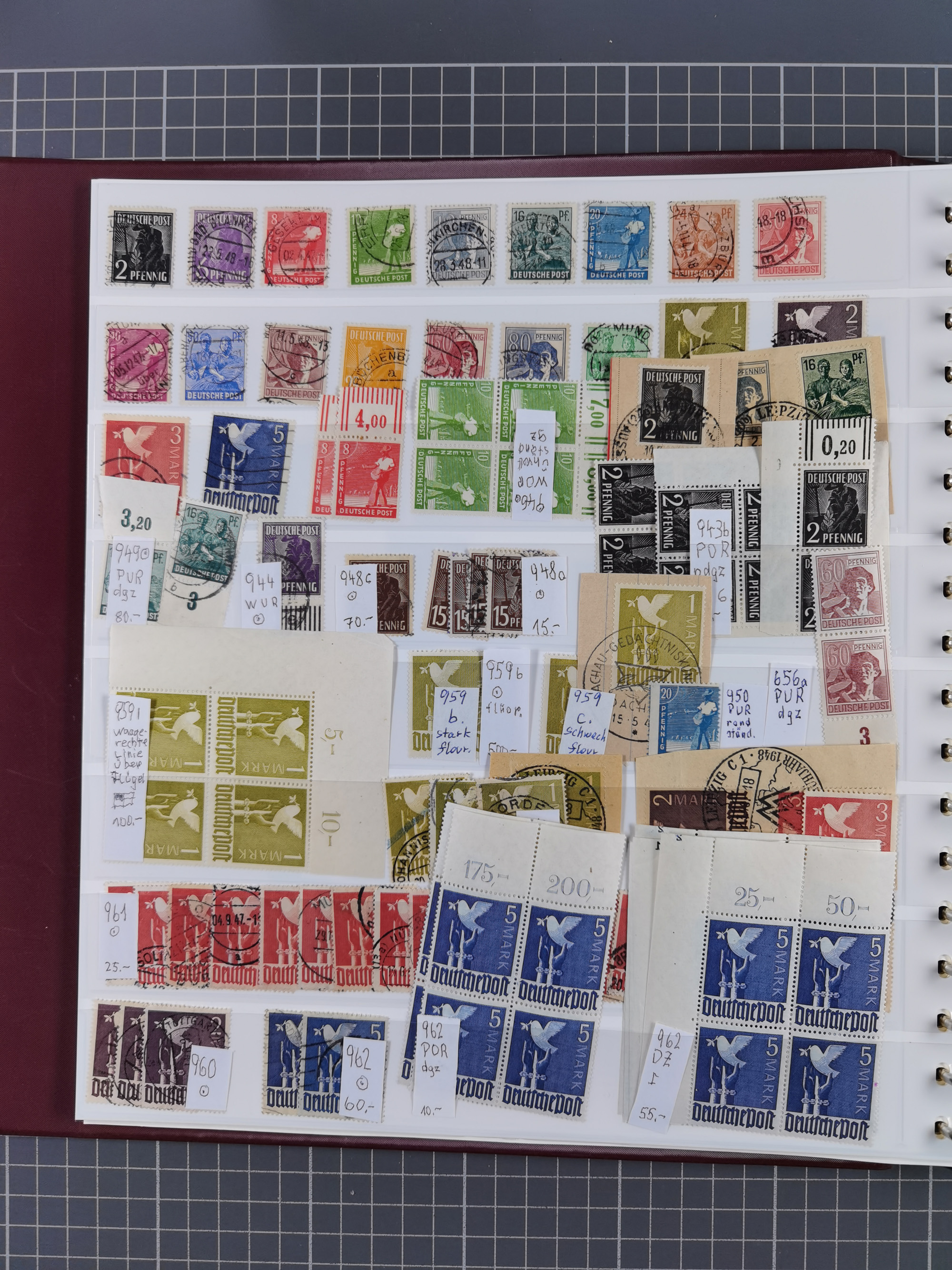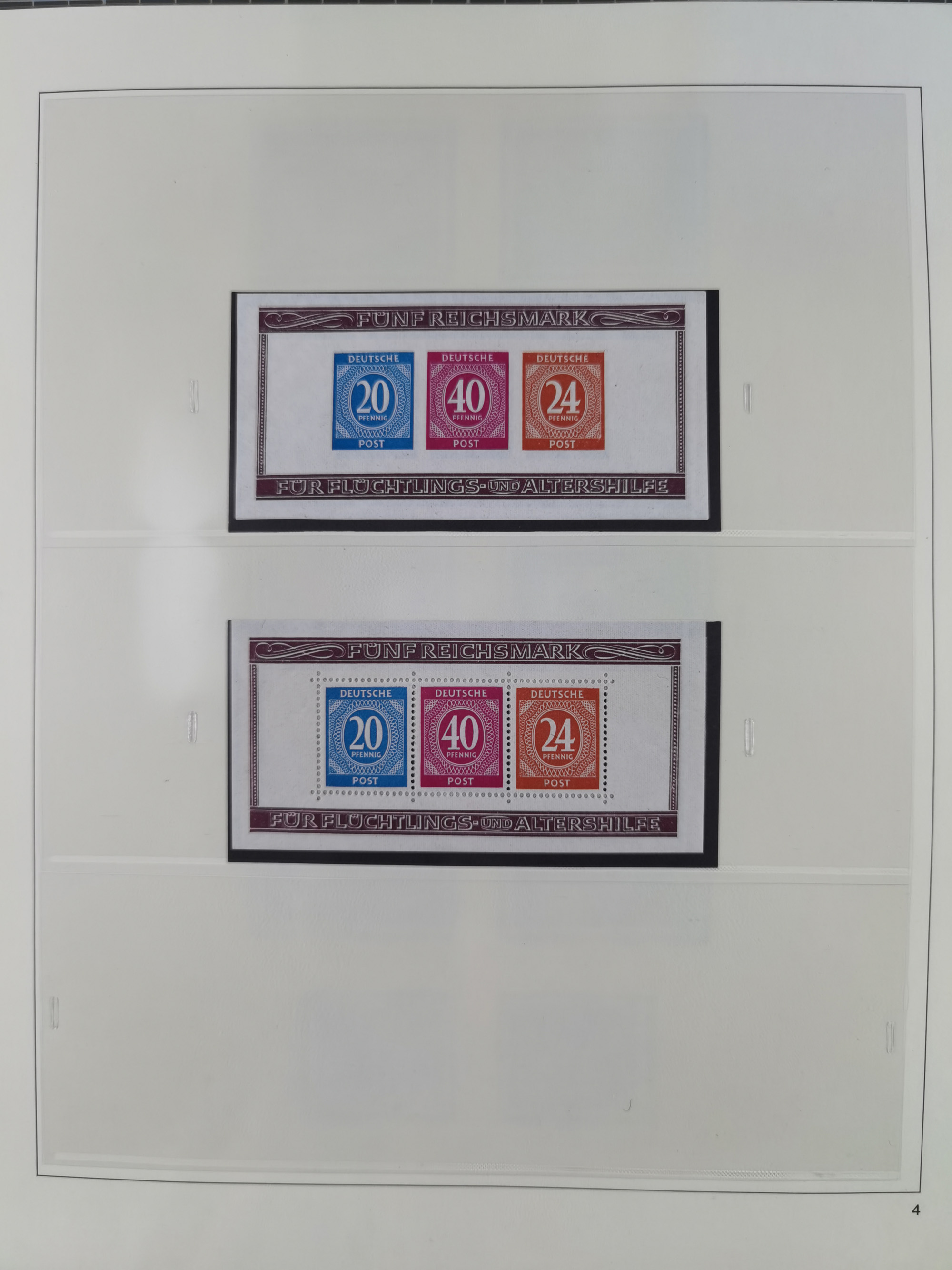 1945/50, interessanter Bestand mit fast nur besseren Sätzen, Block-Ausgaben und Briefen. Dabei u.a. SBZ Bl.1xa postfrisch (FA Ströh BPP), Bl.2t gestempelt (FA Dr. Jasch BPP) und Bl. 4ay gestempelt (FA Ströh BPP), Berlin Mi.-Nr. 1-20 gestempelt (sign. Schlegel BPP mit FA) und Bl. 1I gestempelt (FA D. Schlegel BPP), Saarland Bl.1-2 postfrisch (sign. Ney BPP), Baden Bl. 2 mit rotem SST (sign. Schlegel BPP) und Bund mit besseren Anfangsausgaben und Briefen mit u.a. Mi.-Nr. 116 Br.