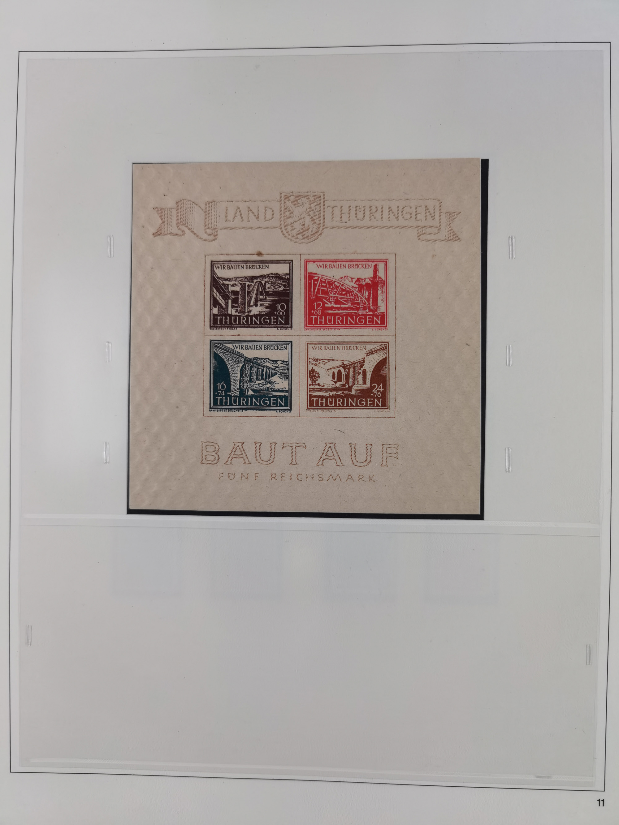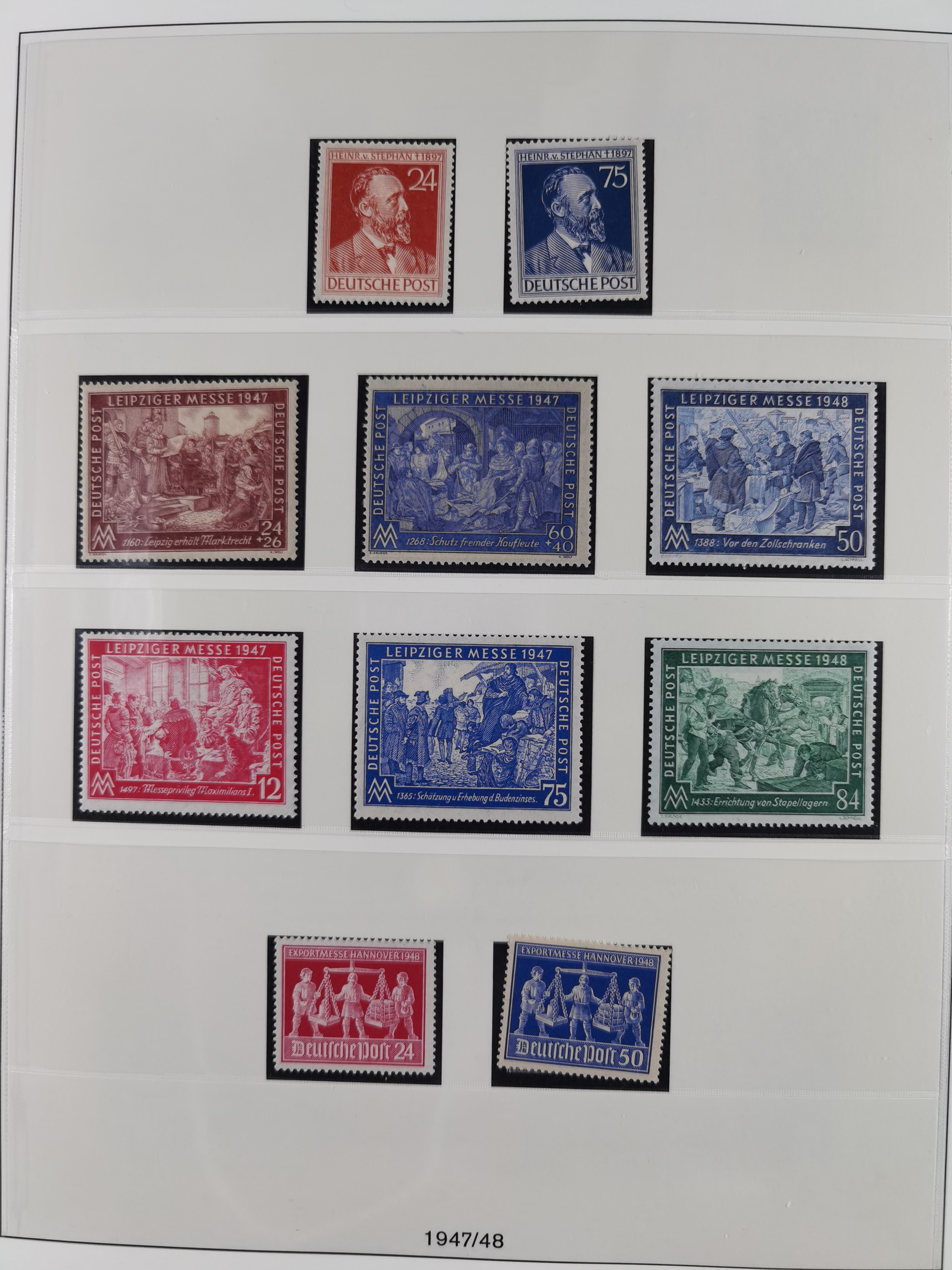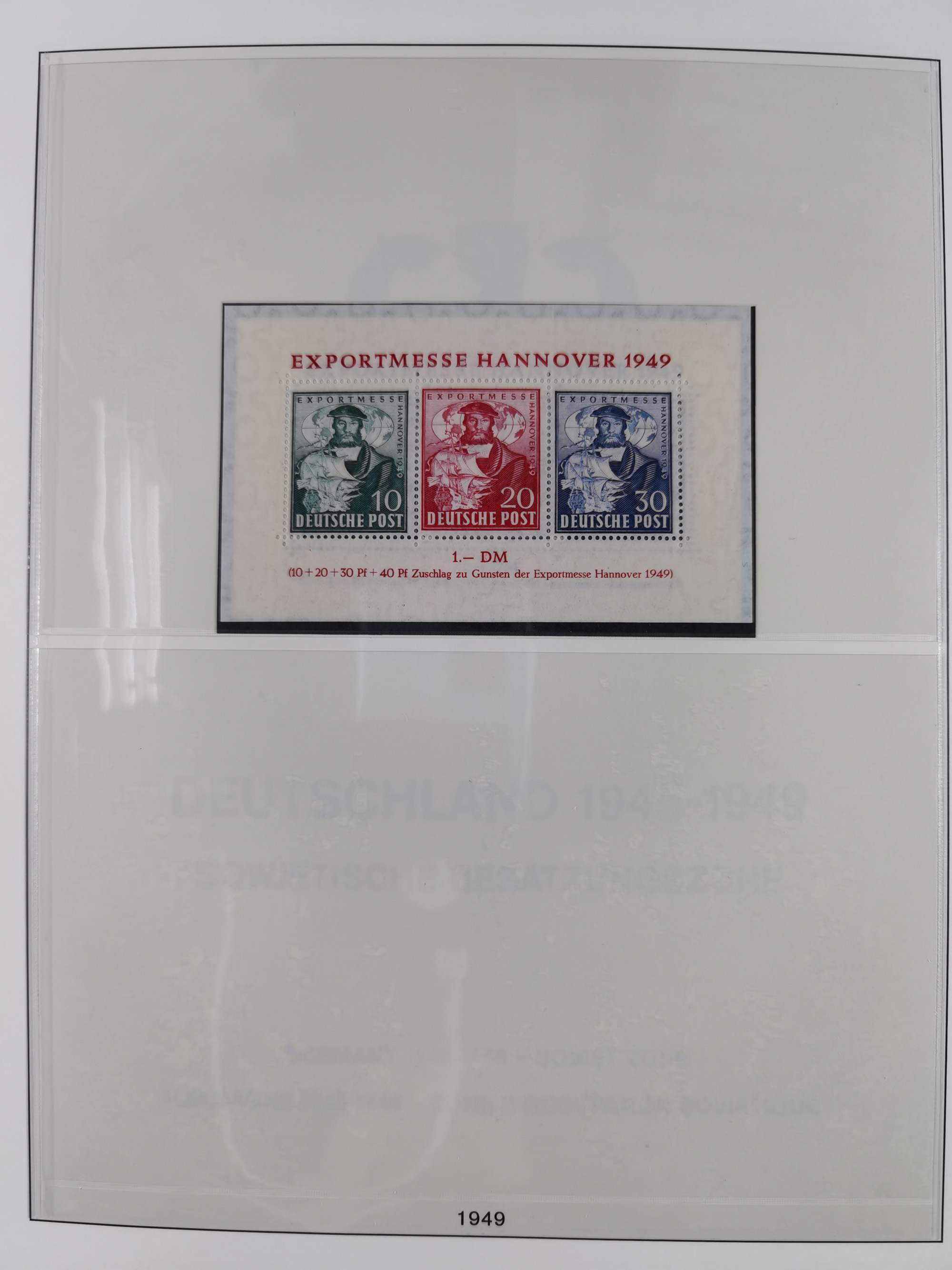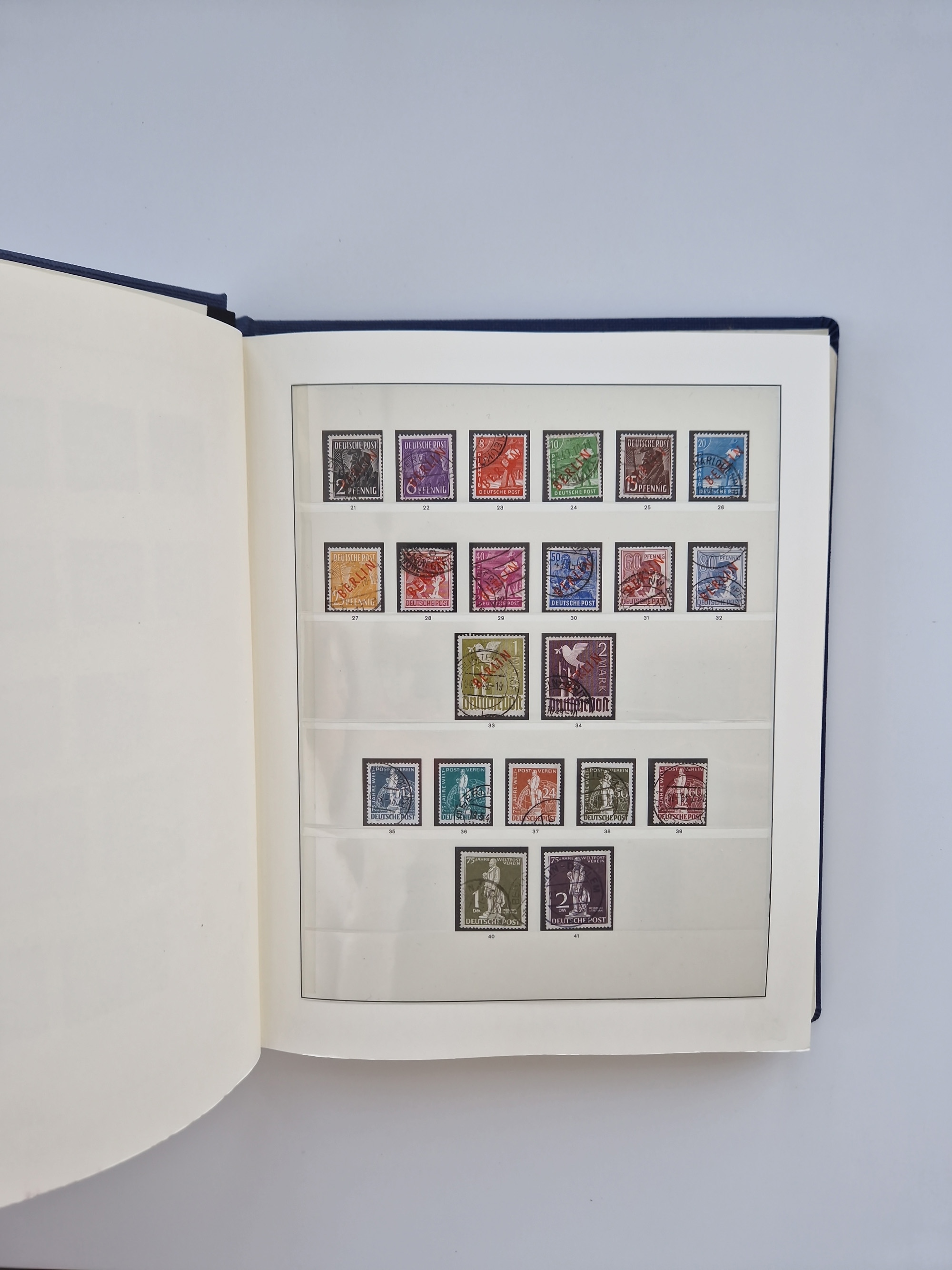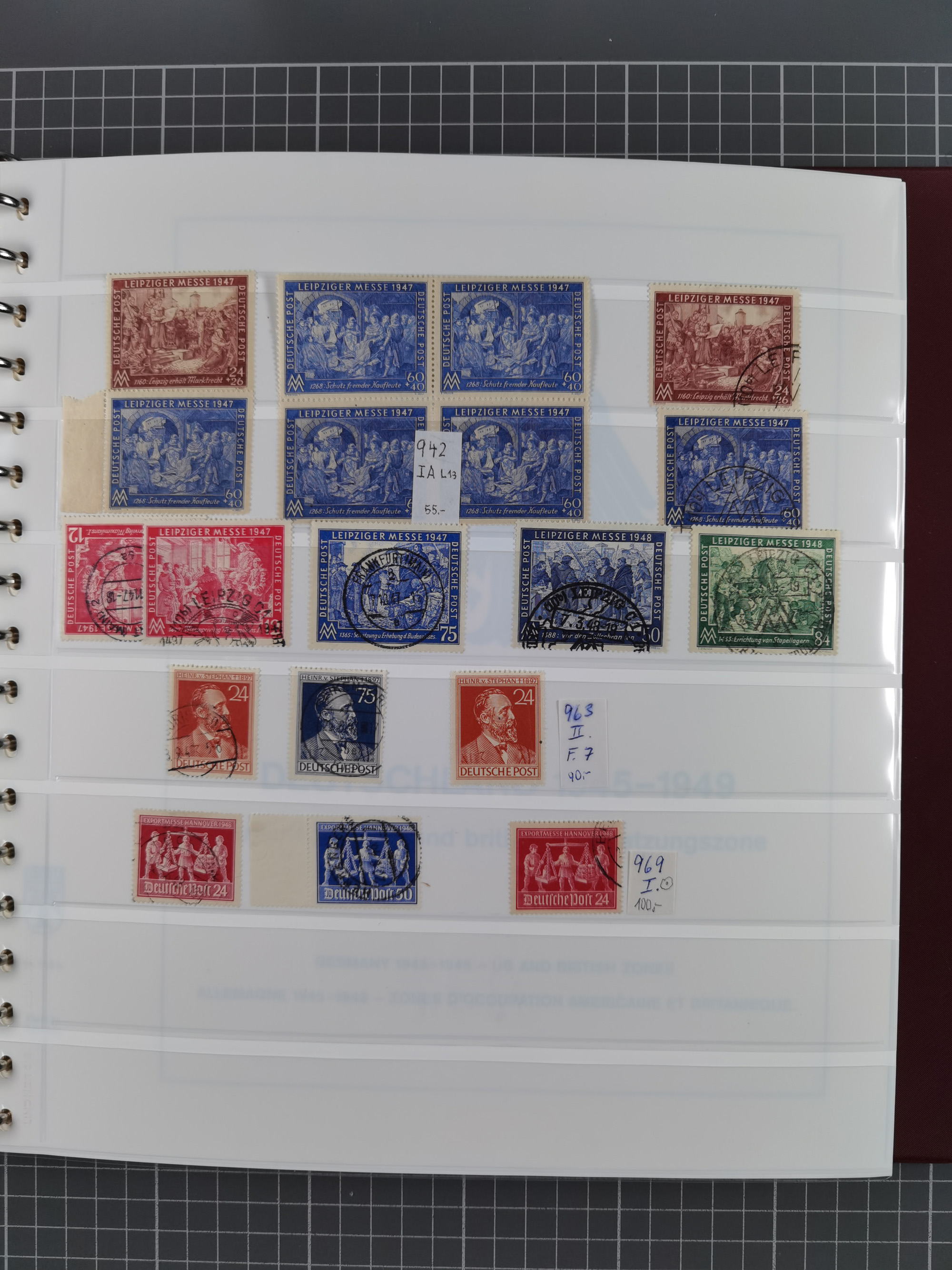 1945/50, interessanter Bestand mit fast nur besseren Sätzen, Block-Ausgaben und Briefen. Dabei u.a. SBZ Bl.1xa postfrisch (FA Ströh BPP), Bl.2t gestempelt (FA Dr. Jasch BPP) und Bl. 4ay gestempelt (FA Ströh BPP), Berlin Mi.-Nr. 1-20 gestempelt (sign. Schlegel BPP mit FA) und Bl. 1I gestempelt (FA D. Schlegel BPP), Saarland Bl.1-2 postfrisch (sign. Ney BPP), Baden Bl. 2 mit rotem SST (sign. Schlegel BPP) und Bund mit besseren Anfangsausgaben und Briefen mit u.a. Mi.-Nr. 116 Br.