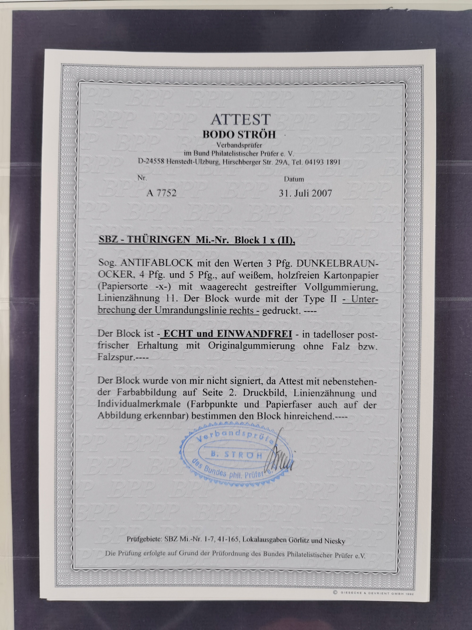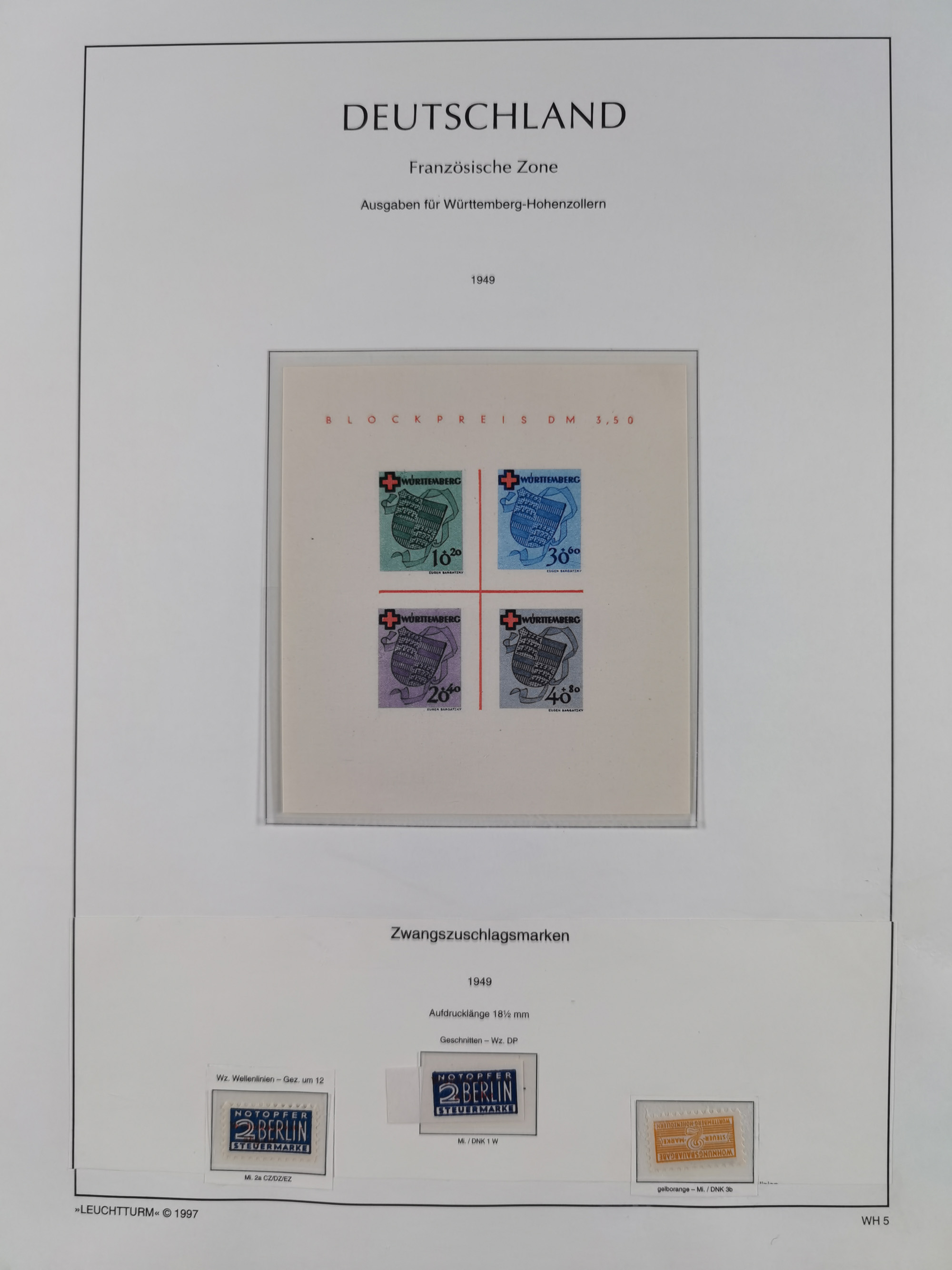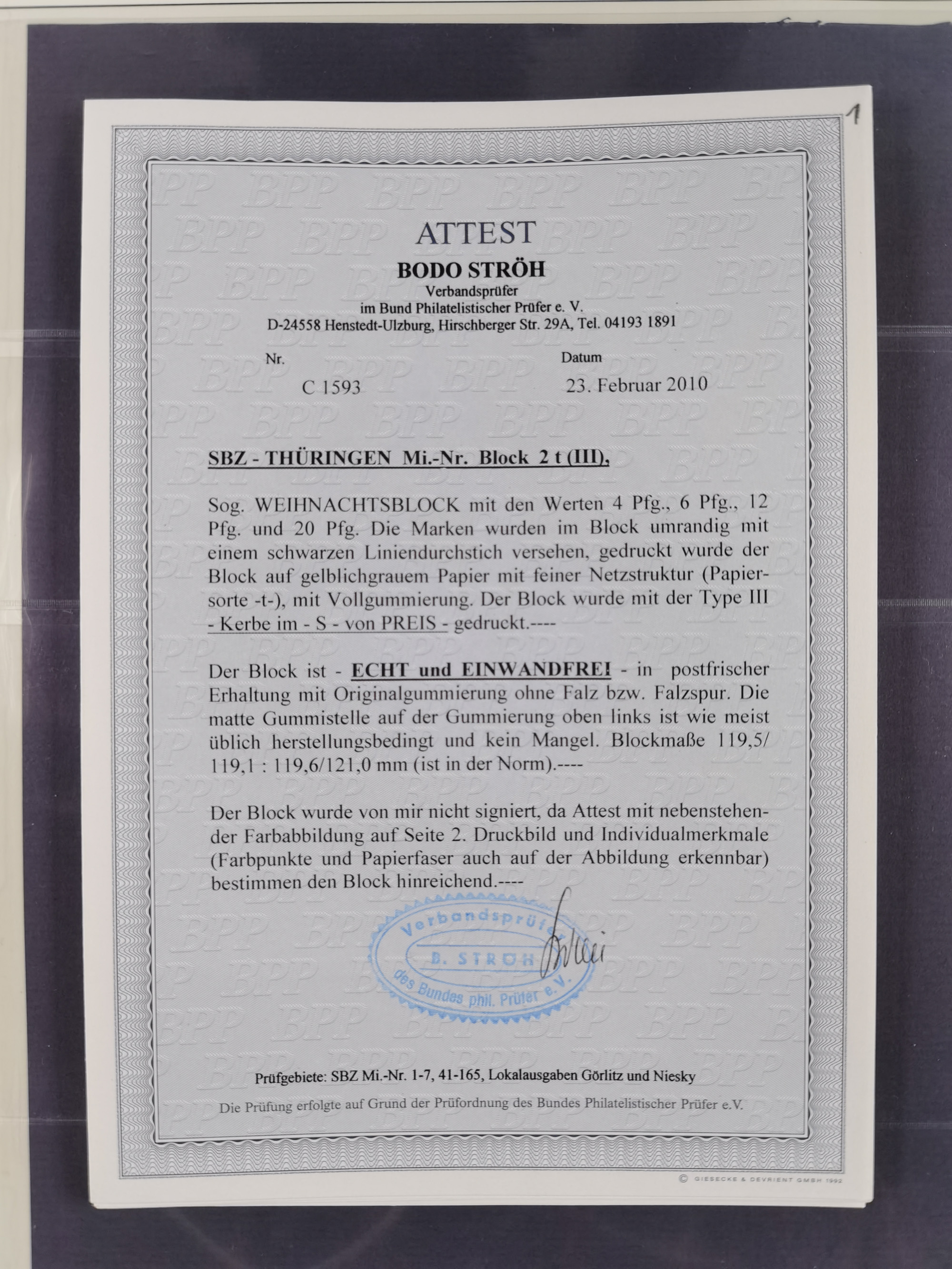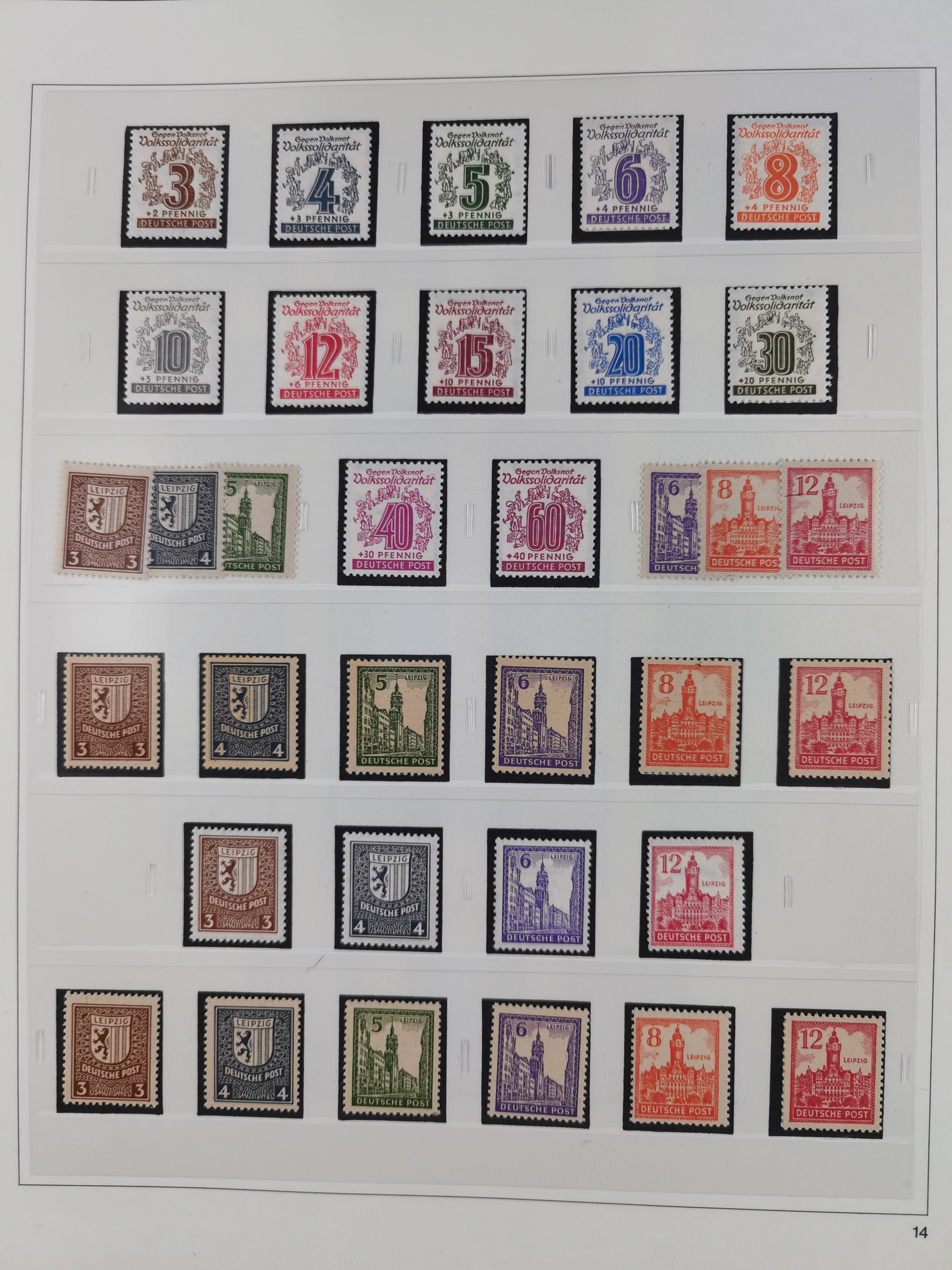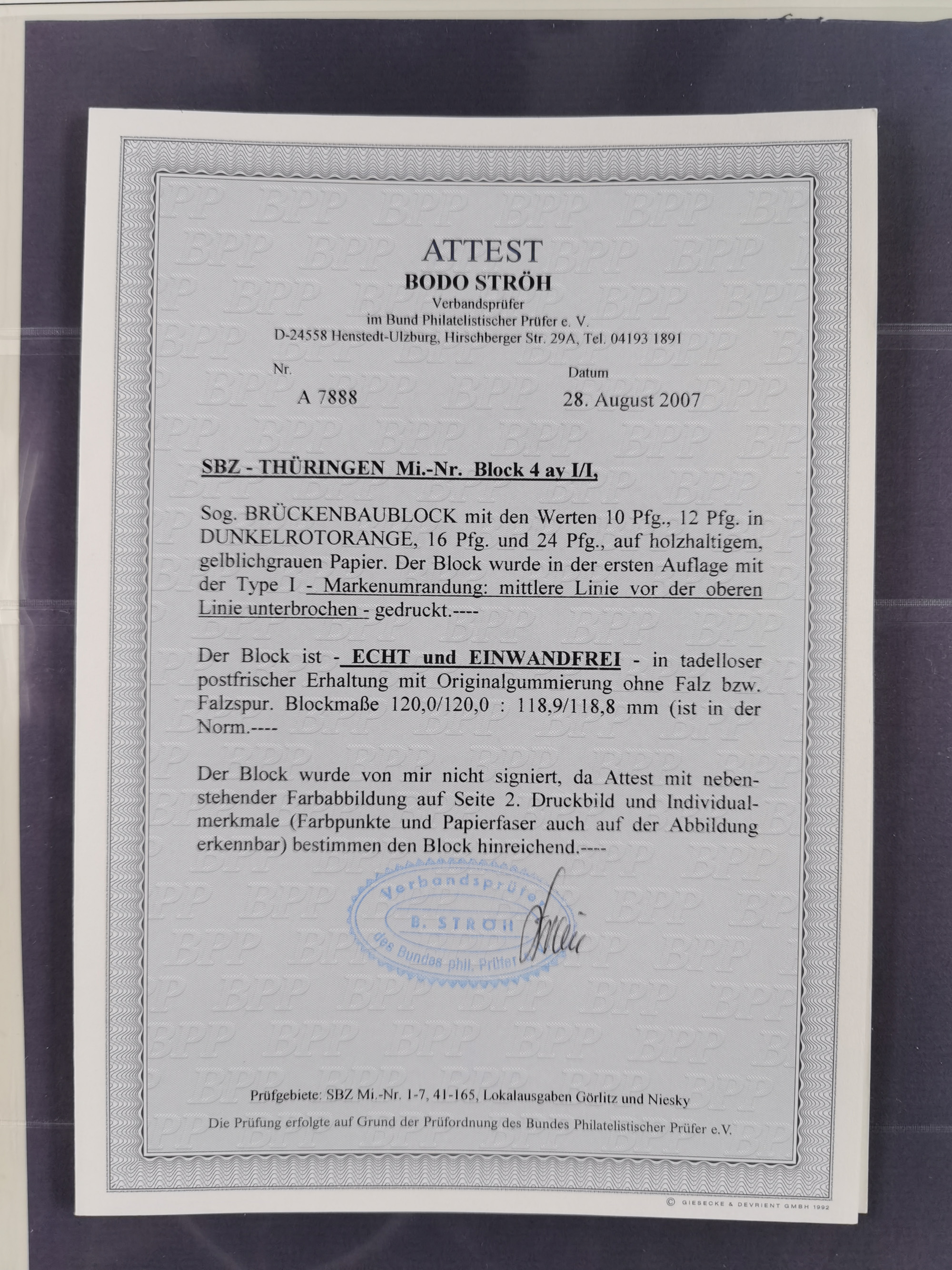 1945/50, interessanter Bestand mit fast nur besseren Sätzen, Block-Ausgaben und Briefen. Dabei u.a. SBZ Bl.1xa postfrisch (FA Ströh BPP), Bl.2t gestempelt (FA Dr. Jasch BPP) und Bl. 4ay gestempelt (FA Ströh BPP), Berlin Mi.-Nr. 1-20 gestempelt (sign. Schlegel BPP mit FA) und Bl. 1I gestempelt (FA D. Schlegel BPP), Saarland Bl.1-2 postfrisch (sign. Ney BPP), Baden Bl. 2 mit rotem SST (sign. Schlegel BPP) und Bund mit besseren Anfangsausgaben und Briefen mit u.a. Mi.-Nr. 116 Br.