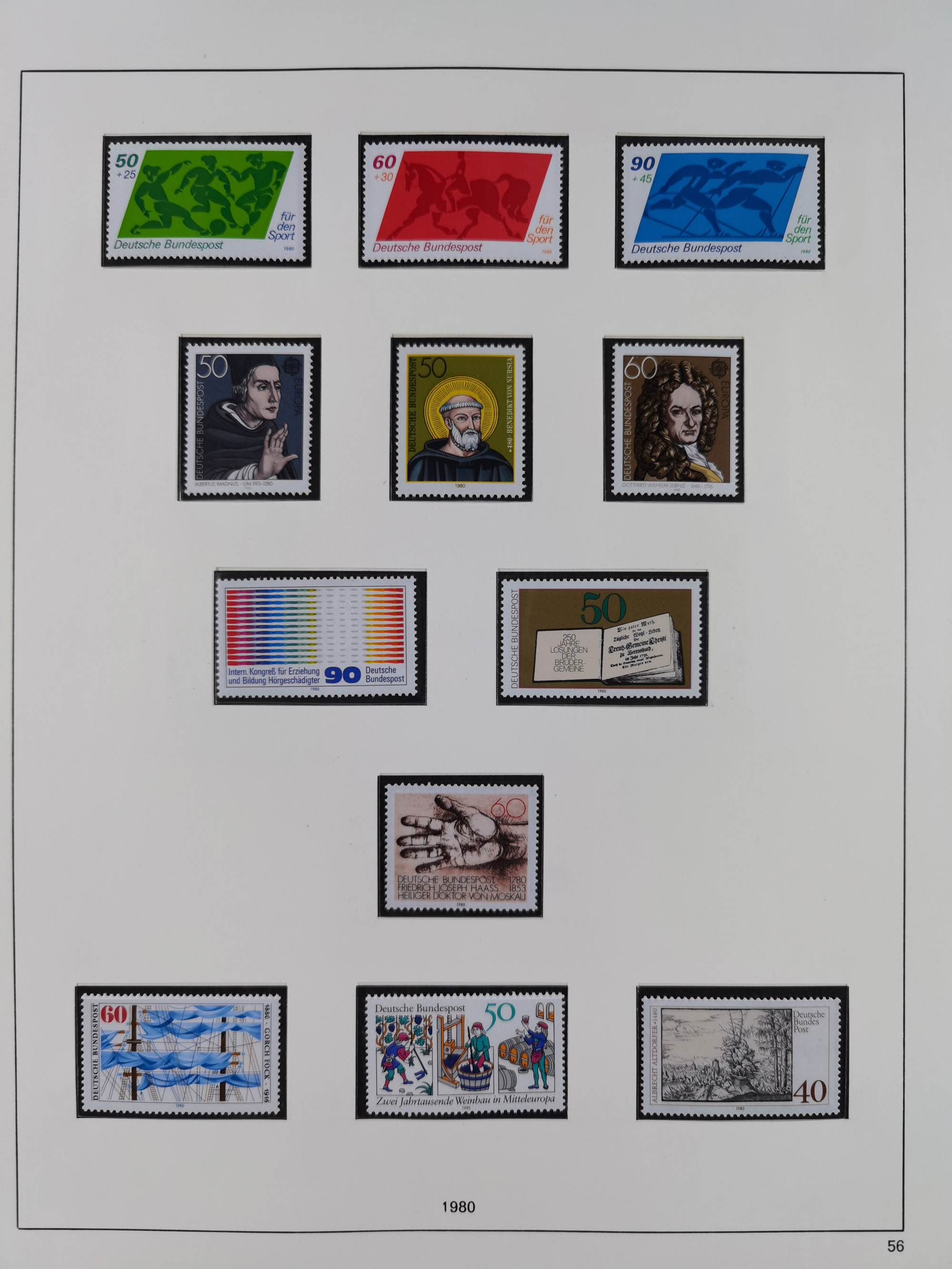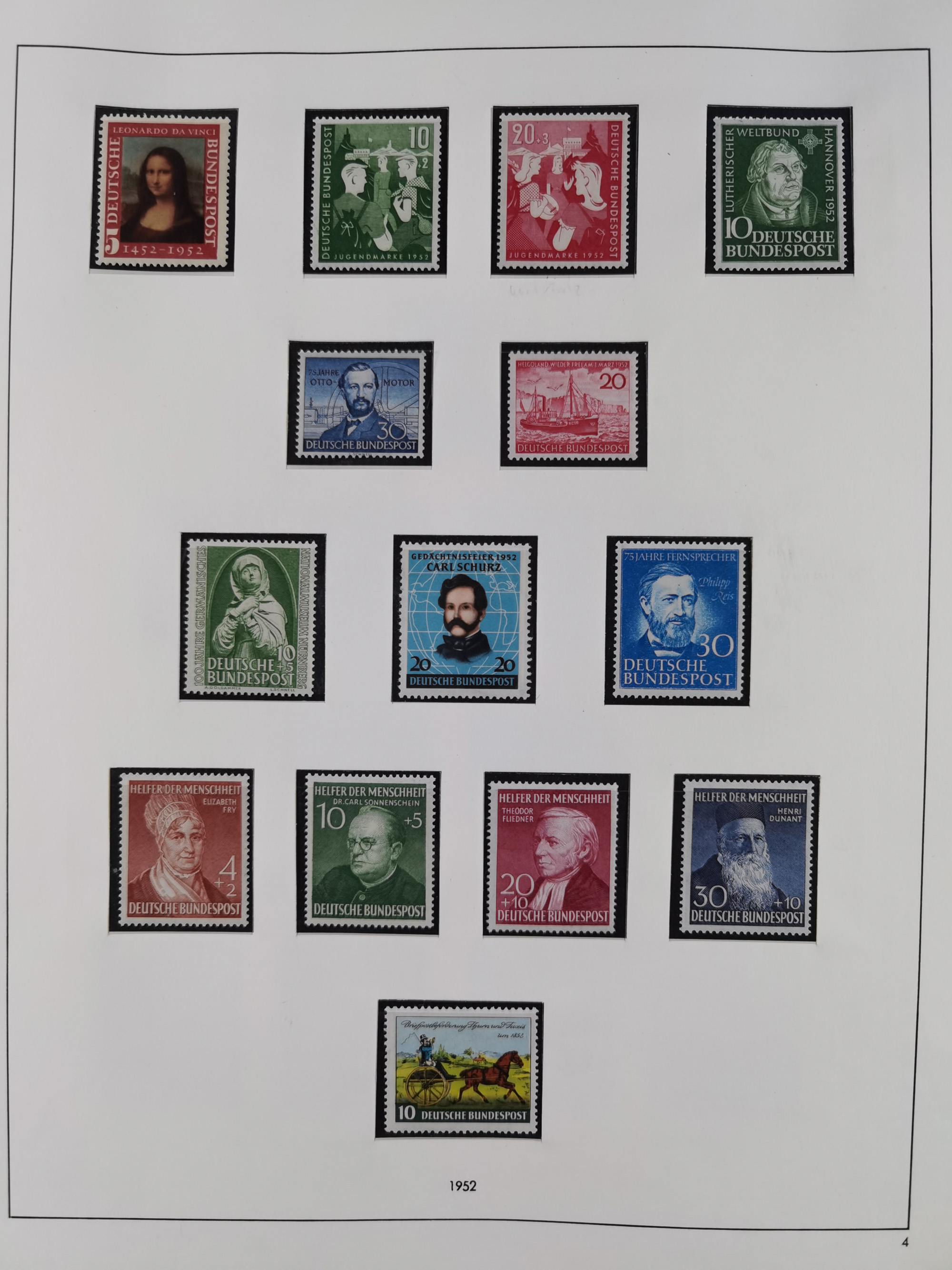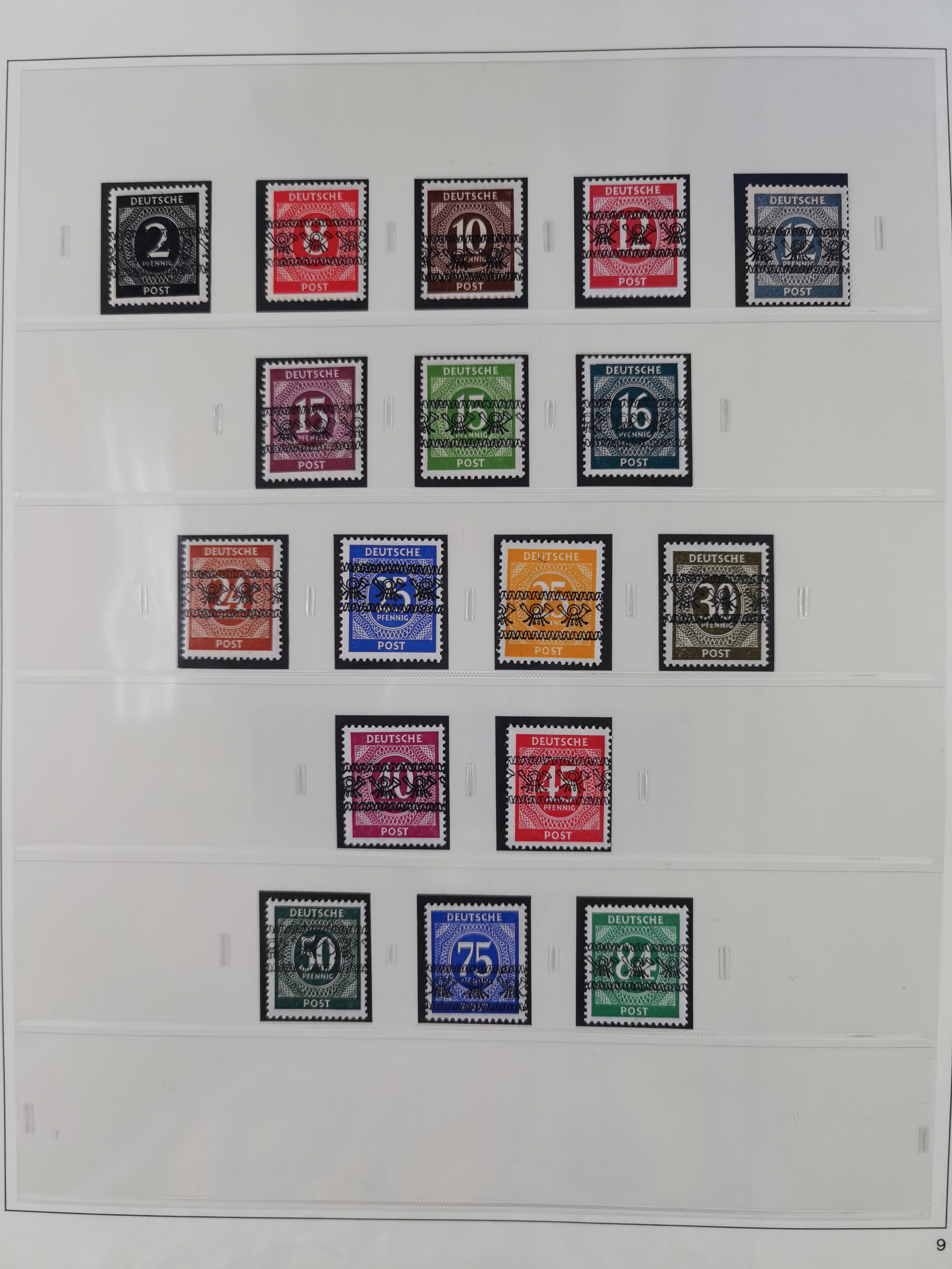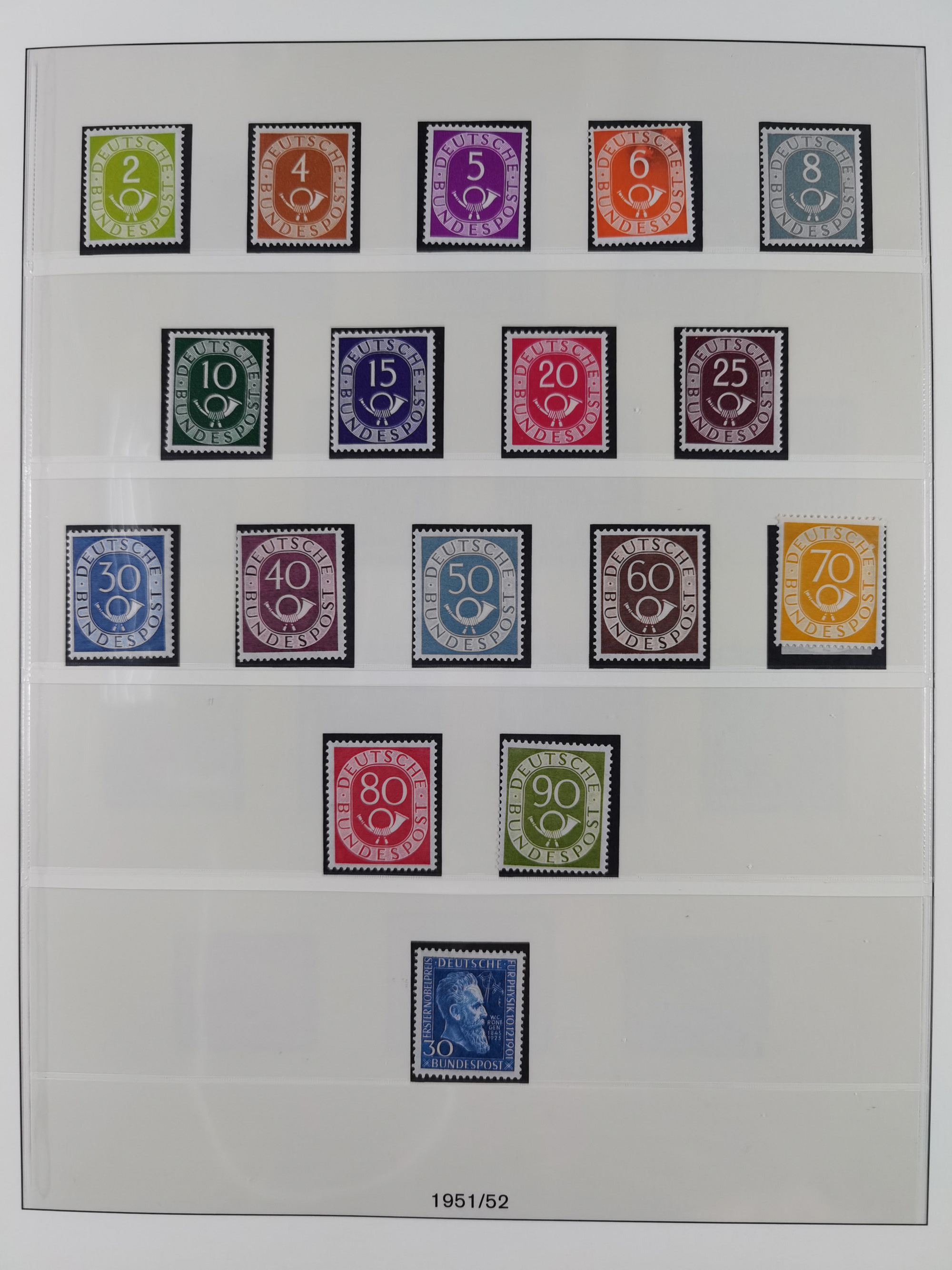 1945/80 (ca.), postfrischer, ungebrauchter und gestempelter Sammlungsbestand in 9 Alben, dabei Bizone mit Mi. 52-68 I+II und Bl. 1c, Bund mit Posthorn und Berlin mit Bl. 1 (2, einmal mit Sstpl.)