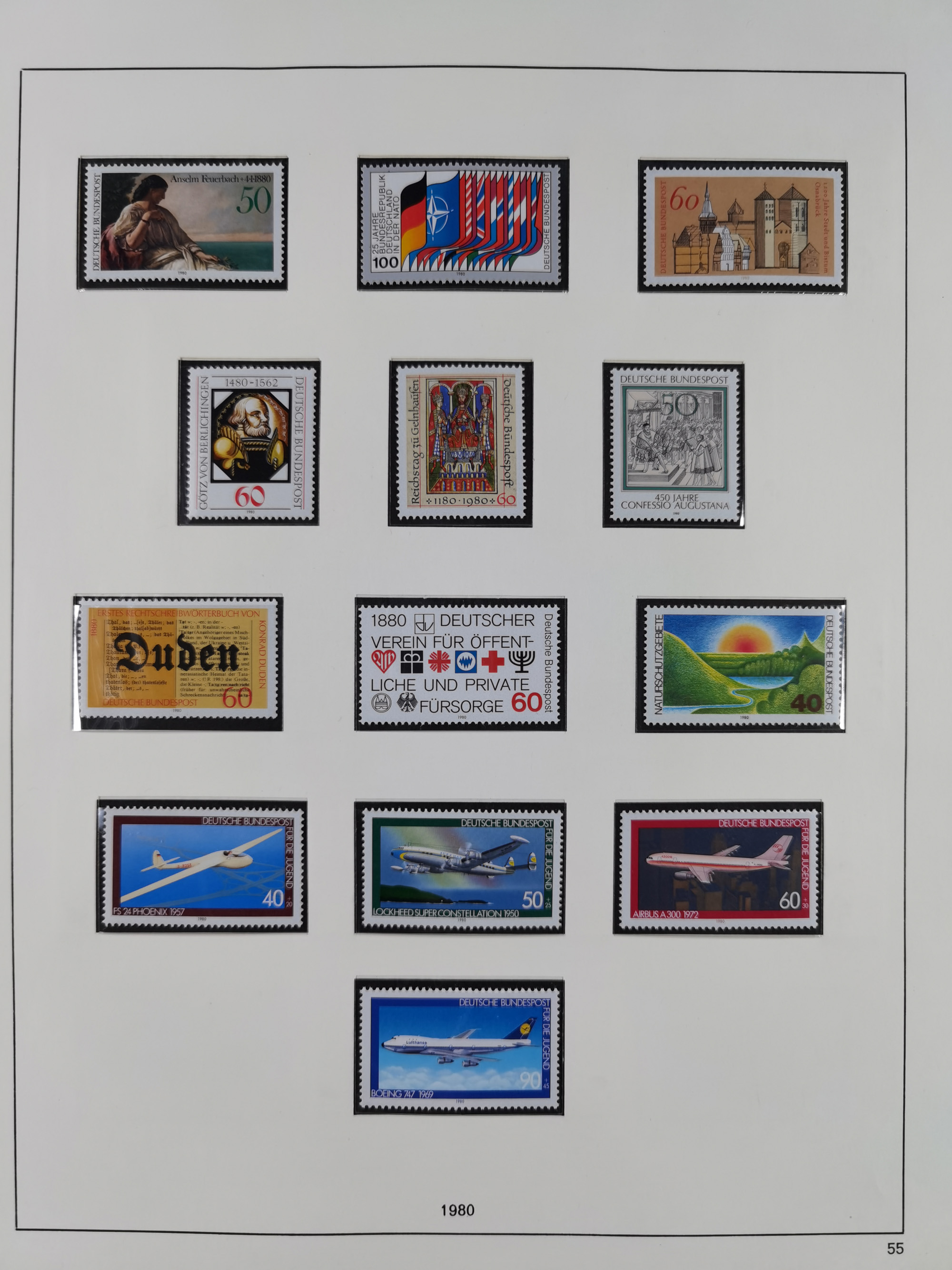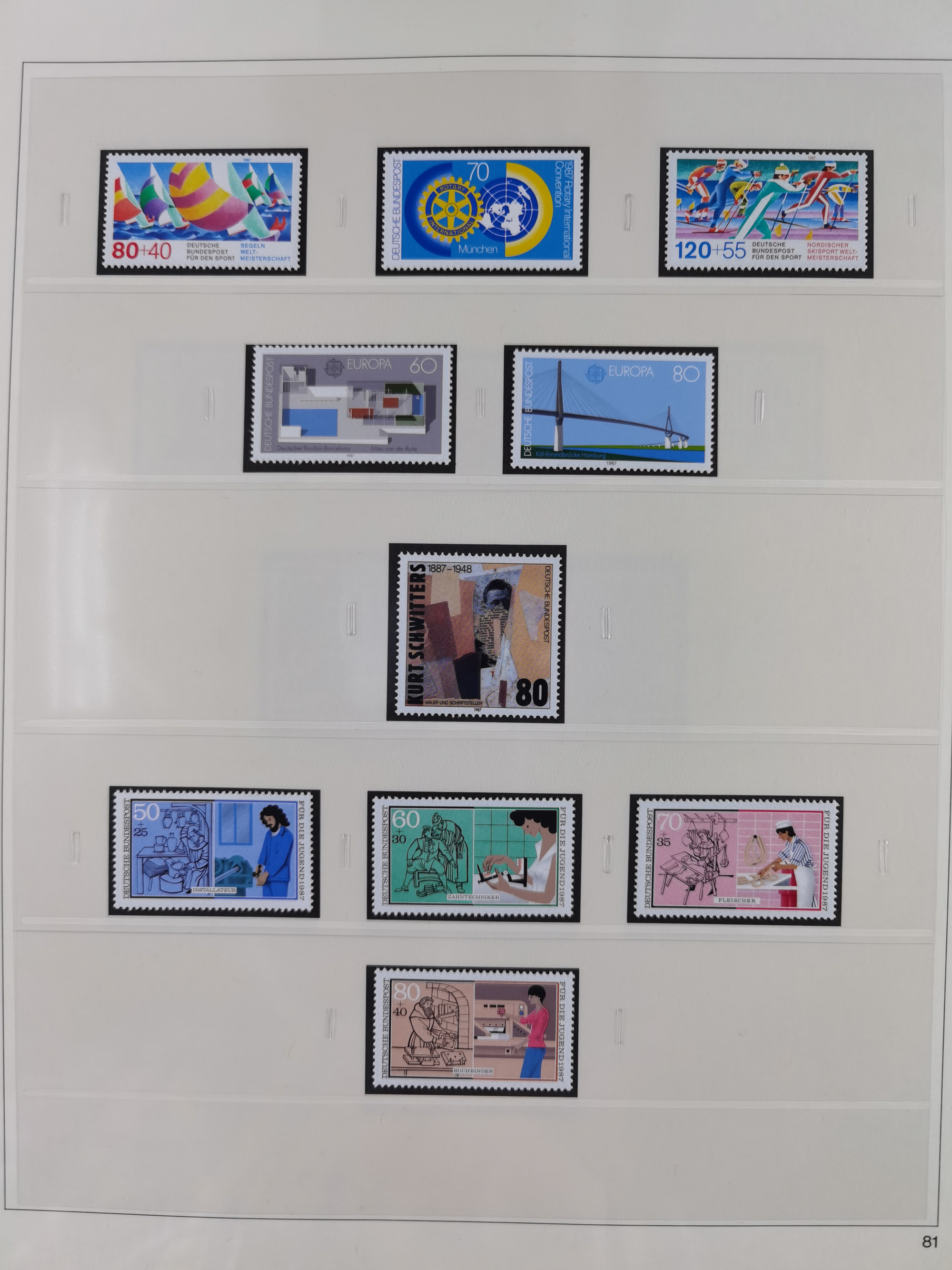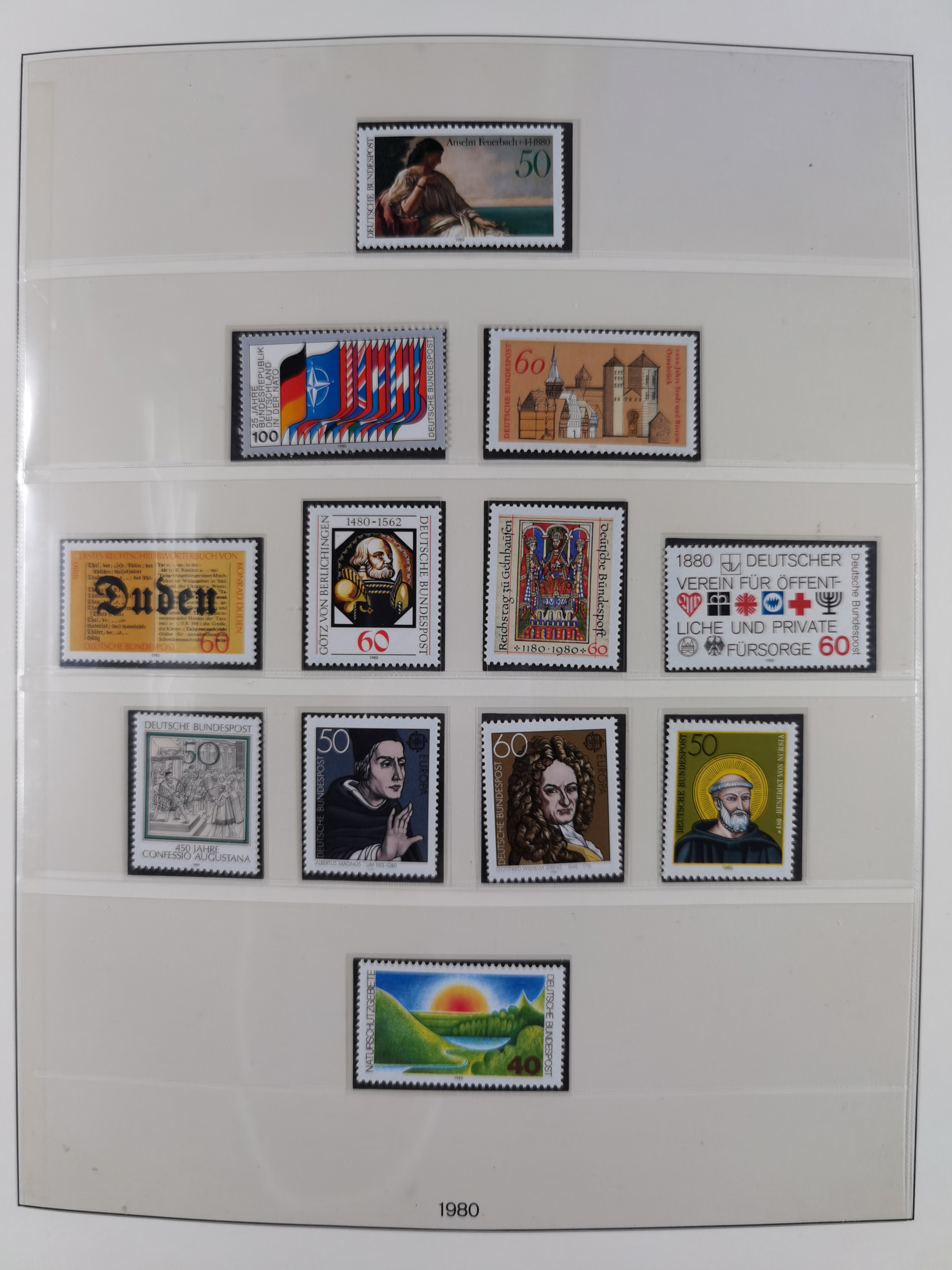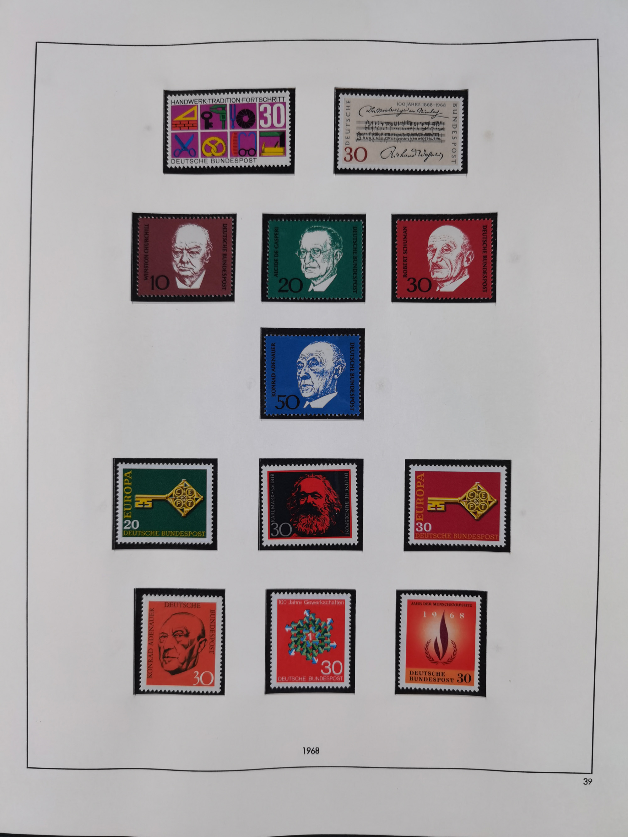 1945/80 (ca.), postfrischer, ungebrauchter und gestempelter Sammlungsbestand in 9 Alben, dabei Bizone mit Mi. 52-68 I+II und Bl. 1c, Bund mit Posthorn und Berlin mit Bl. 1 (2, einmal mit Sstpl.)