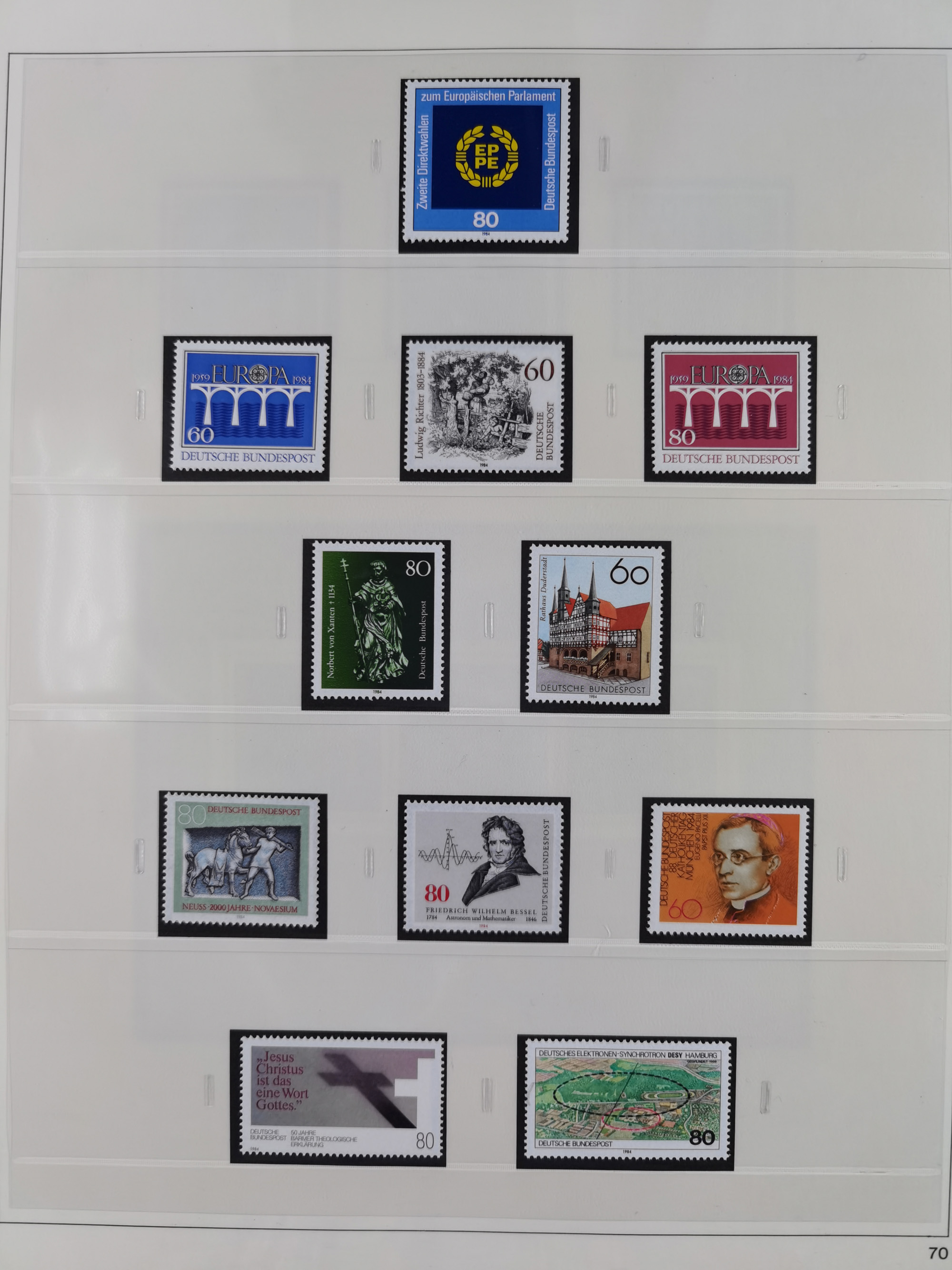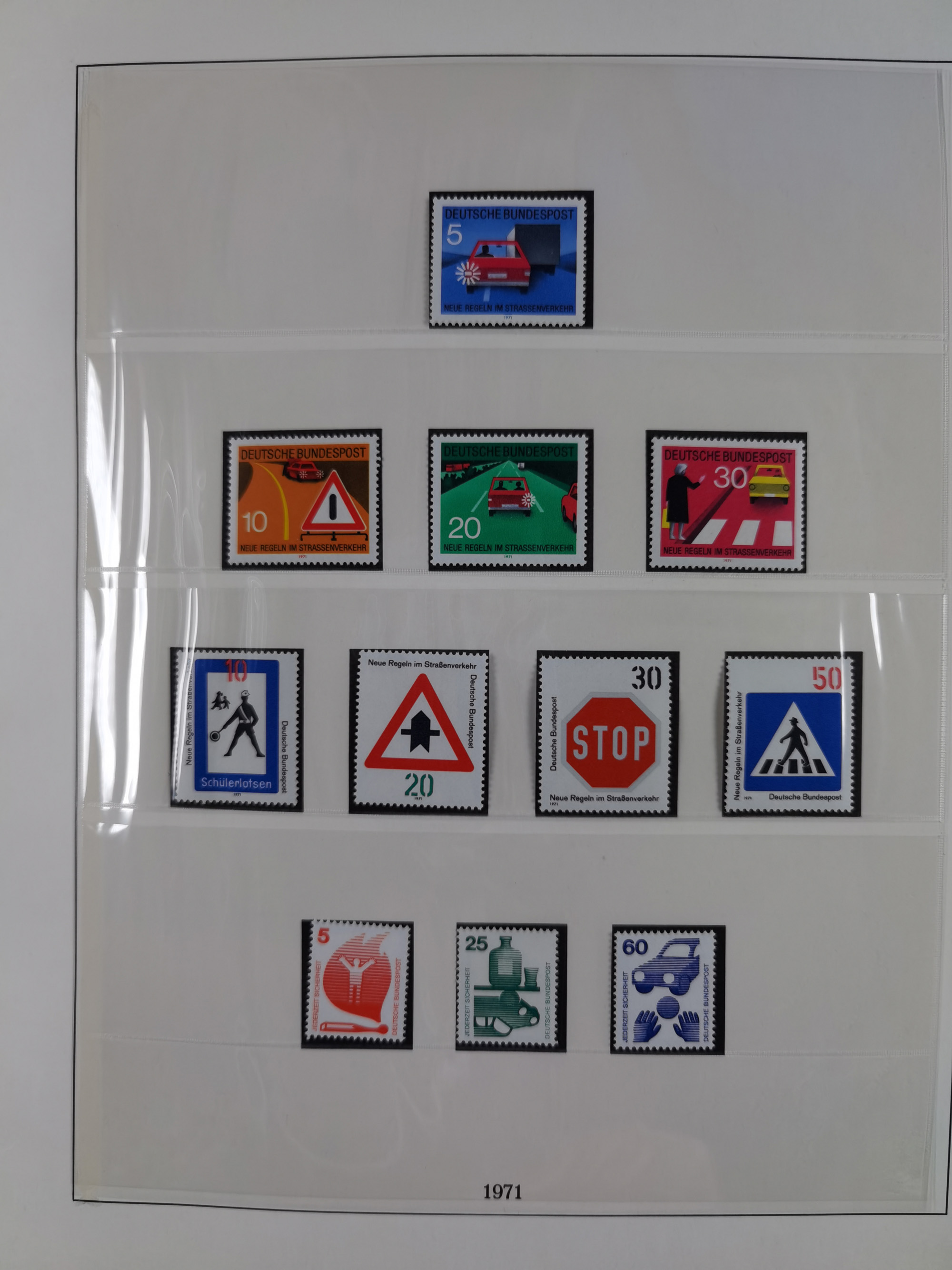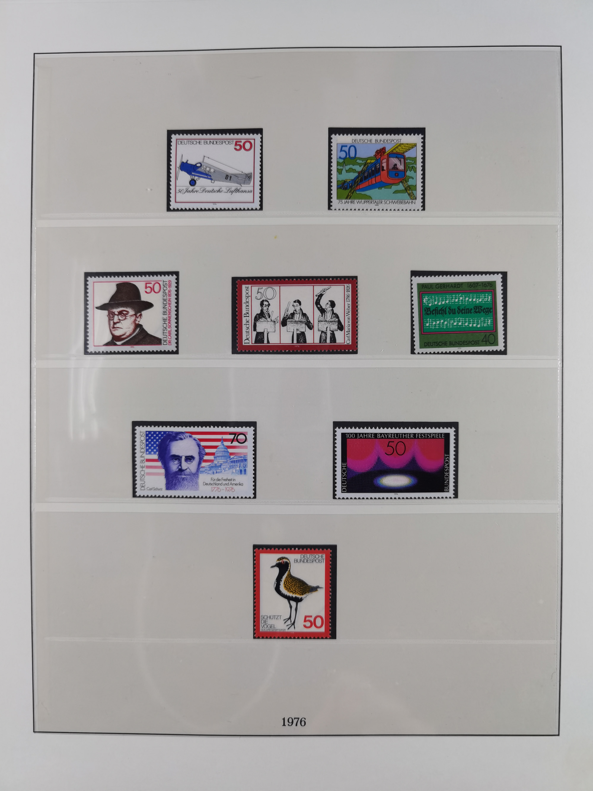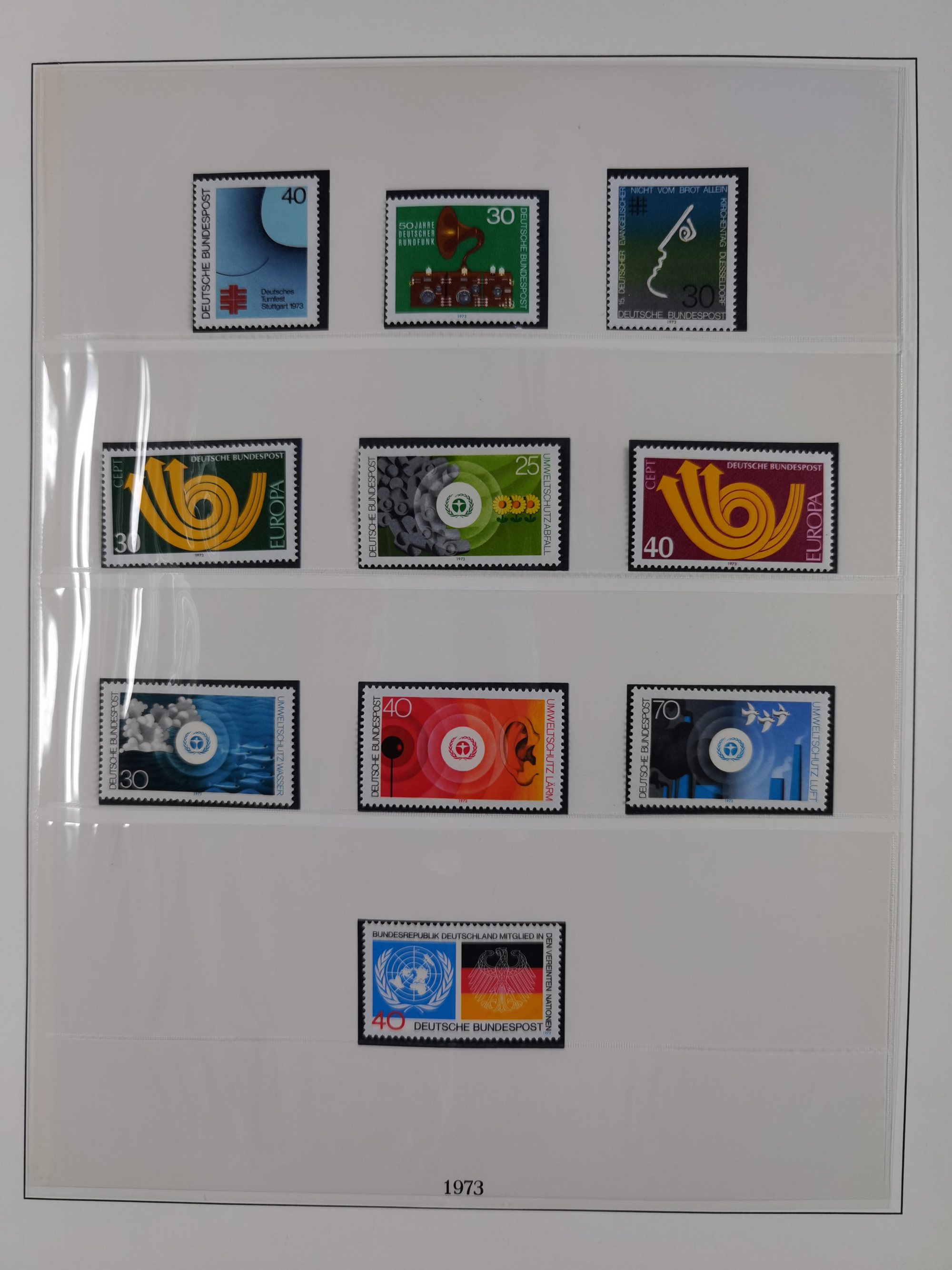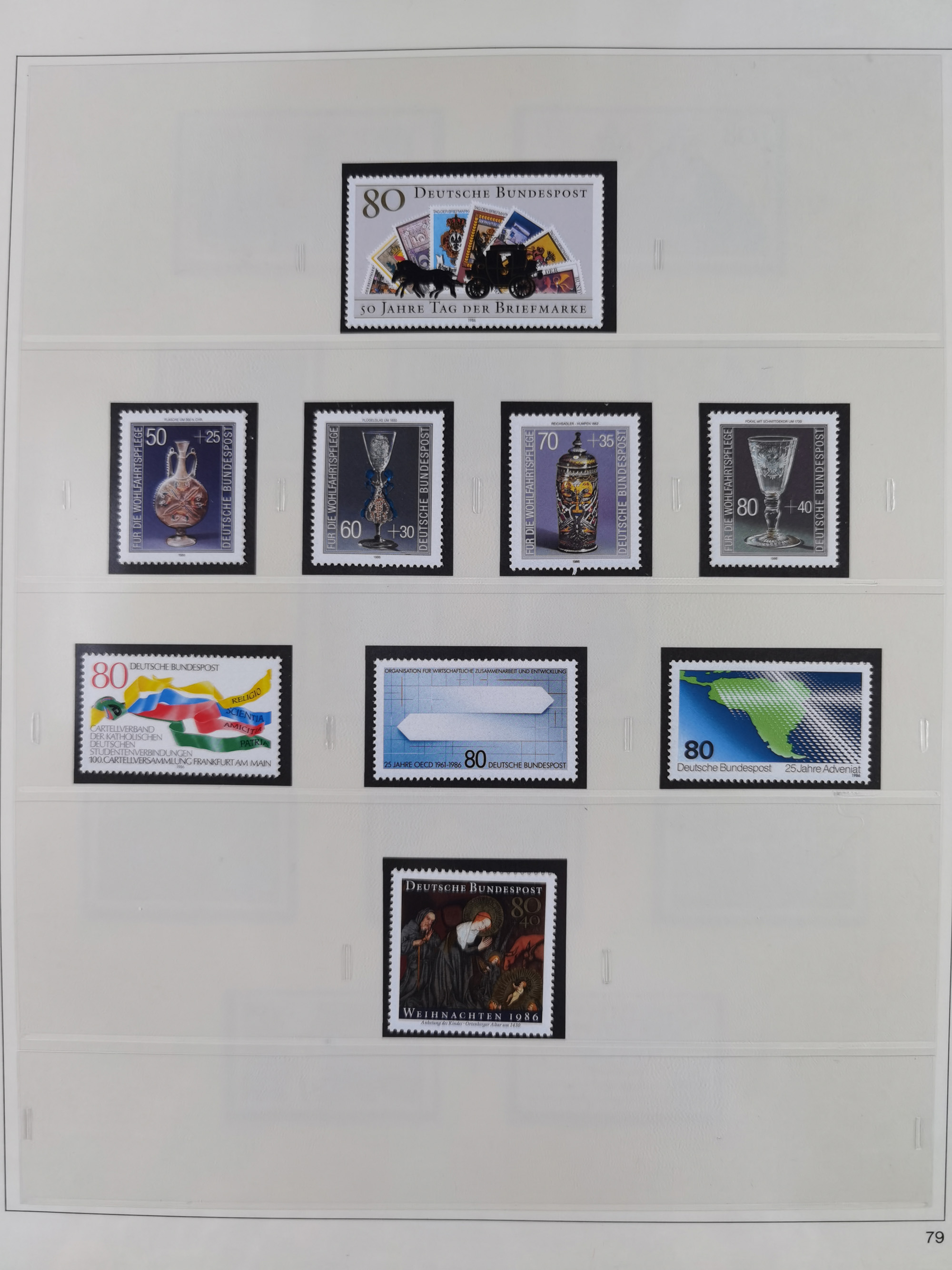1945/80 (ca.), postfrischer, ungebrauchter und gestempelter Sammlungsbestand in 9 Alben, dabei Bizone mit Mi. 52-68 I+II und Bl. 1c, Bund mit Posthorn und Berlin mit Bl. 1 (2, einmal mit Sstpl.)