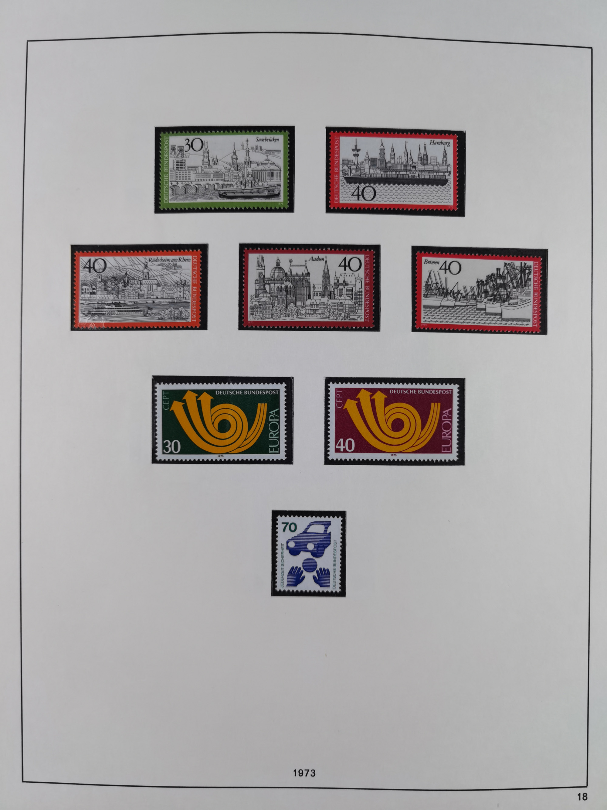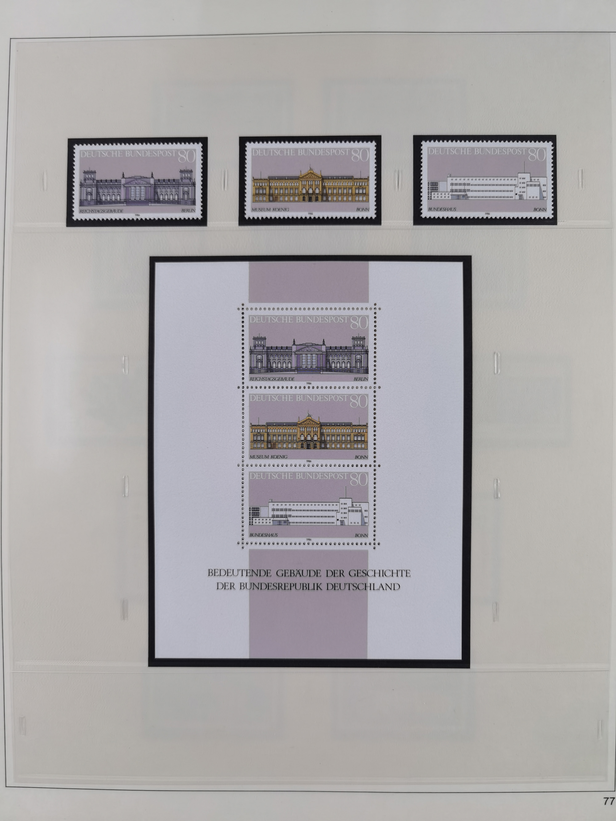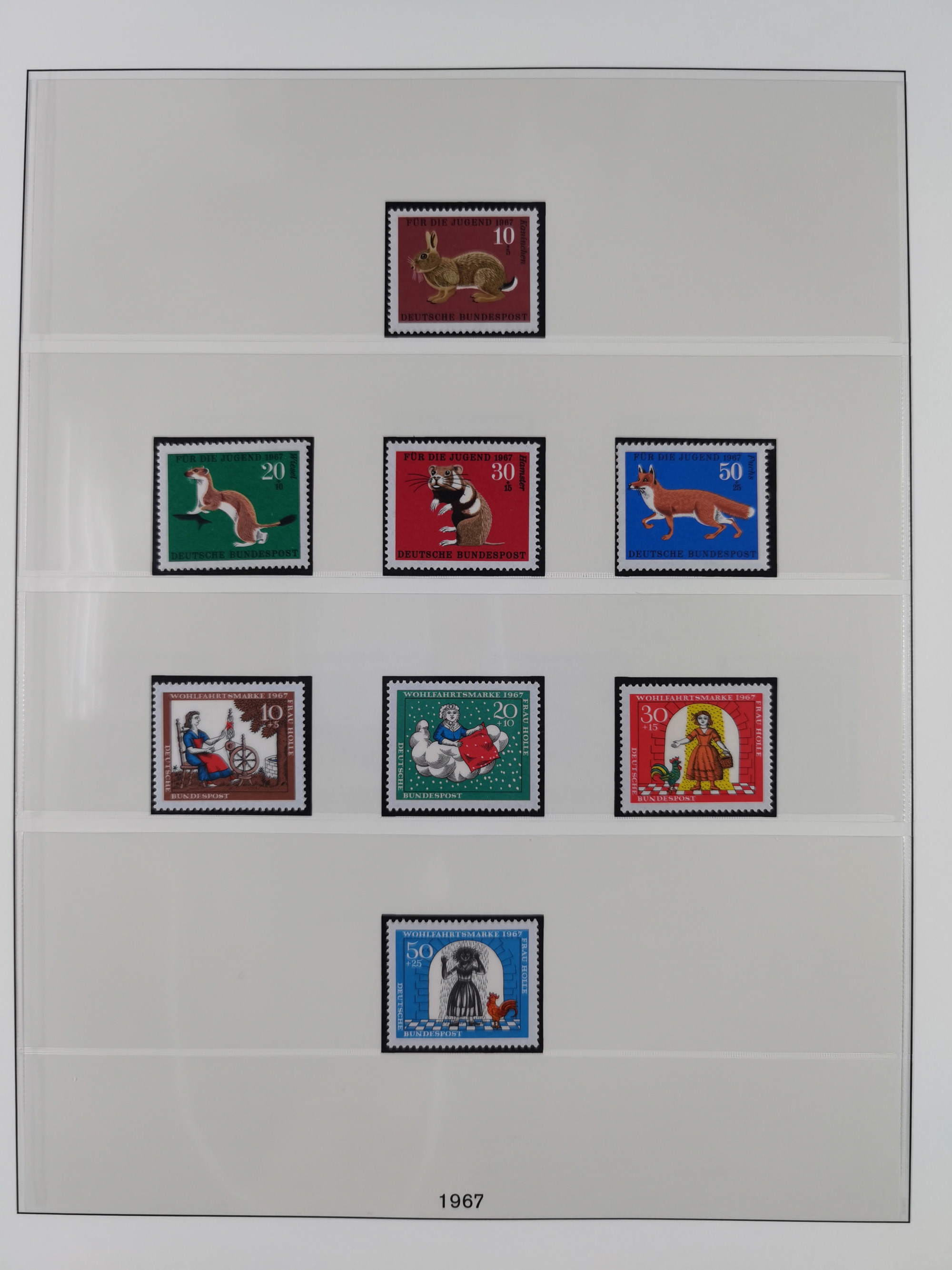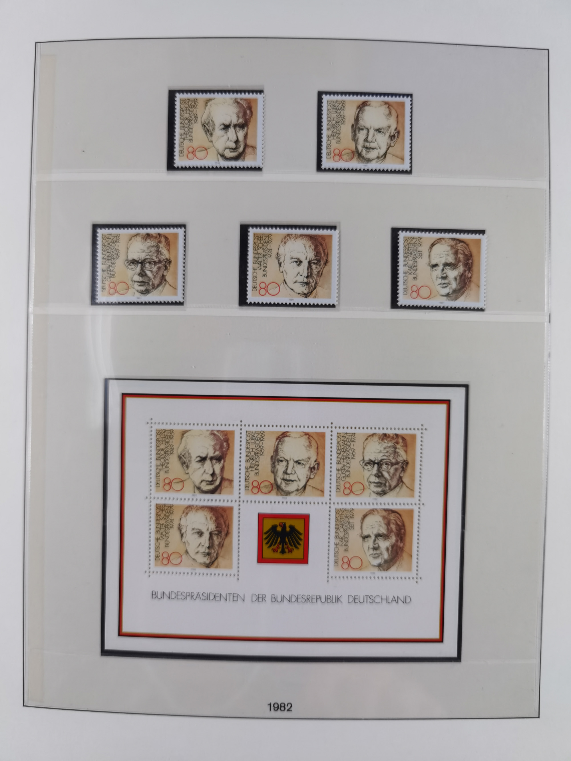 1945/80 (ca.), postfrischer, ungebrauchter und gestempelter Sammlungsbestand in 9 Alben, dabei Bizone mit Mi. 52-68 I+II und Bl. 1c, Bund mit Posthorn und Berlin mit Bl. 1 (2, einmal mit Sstpl.)