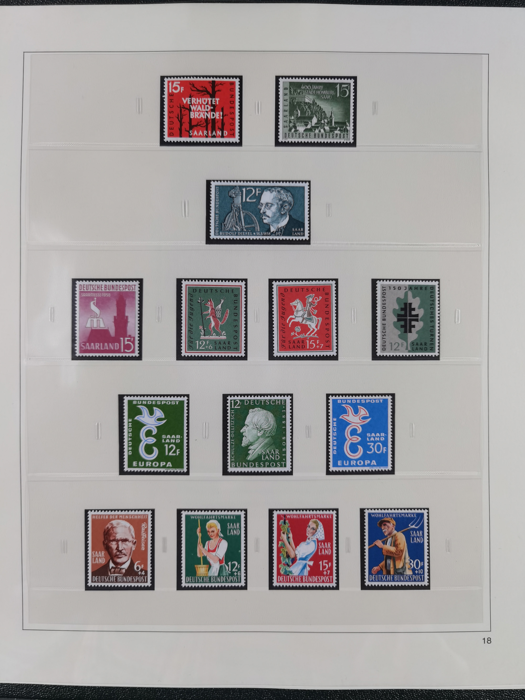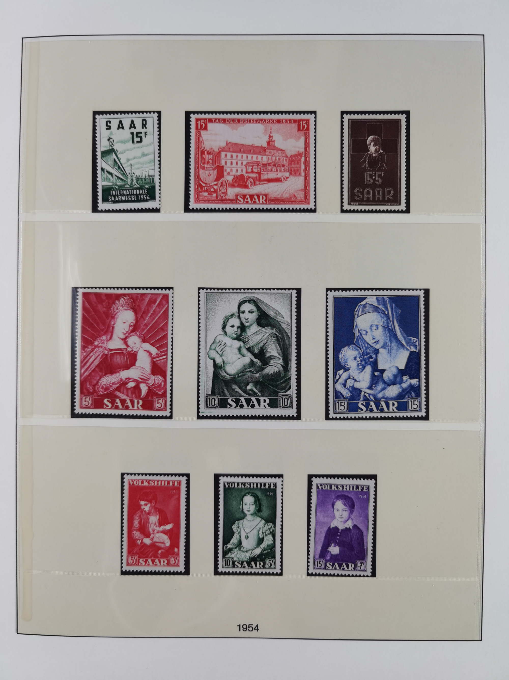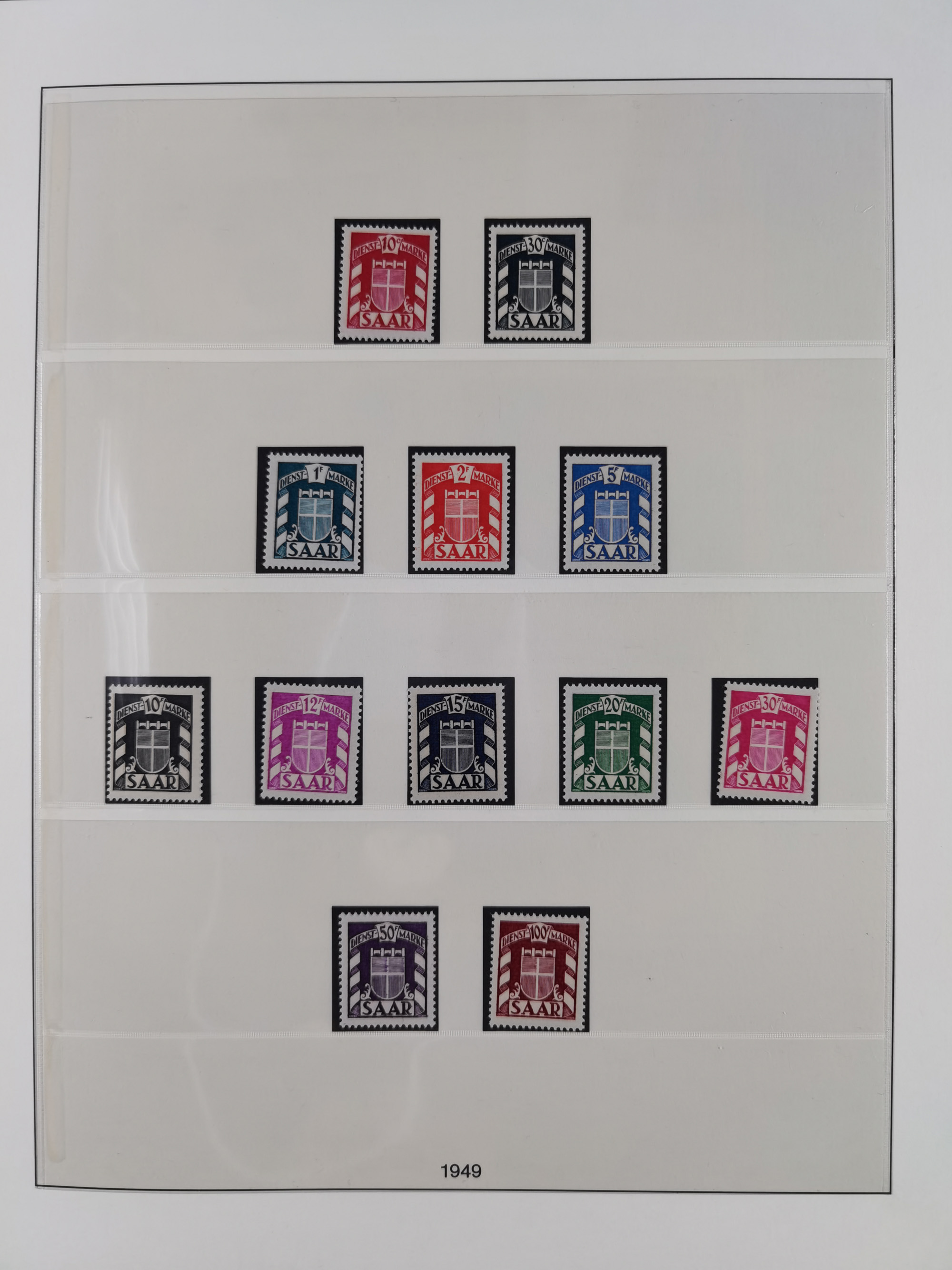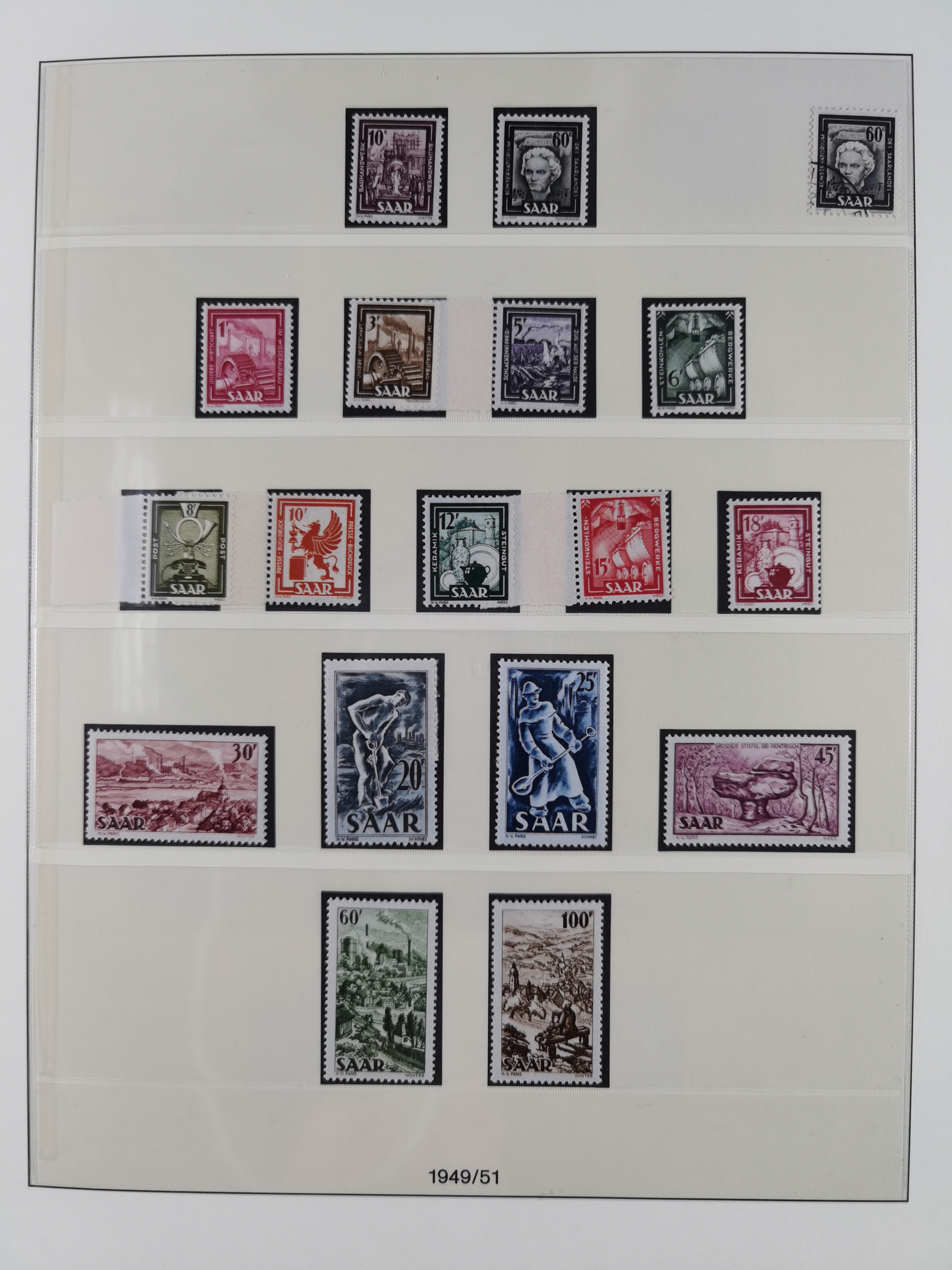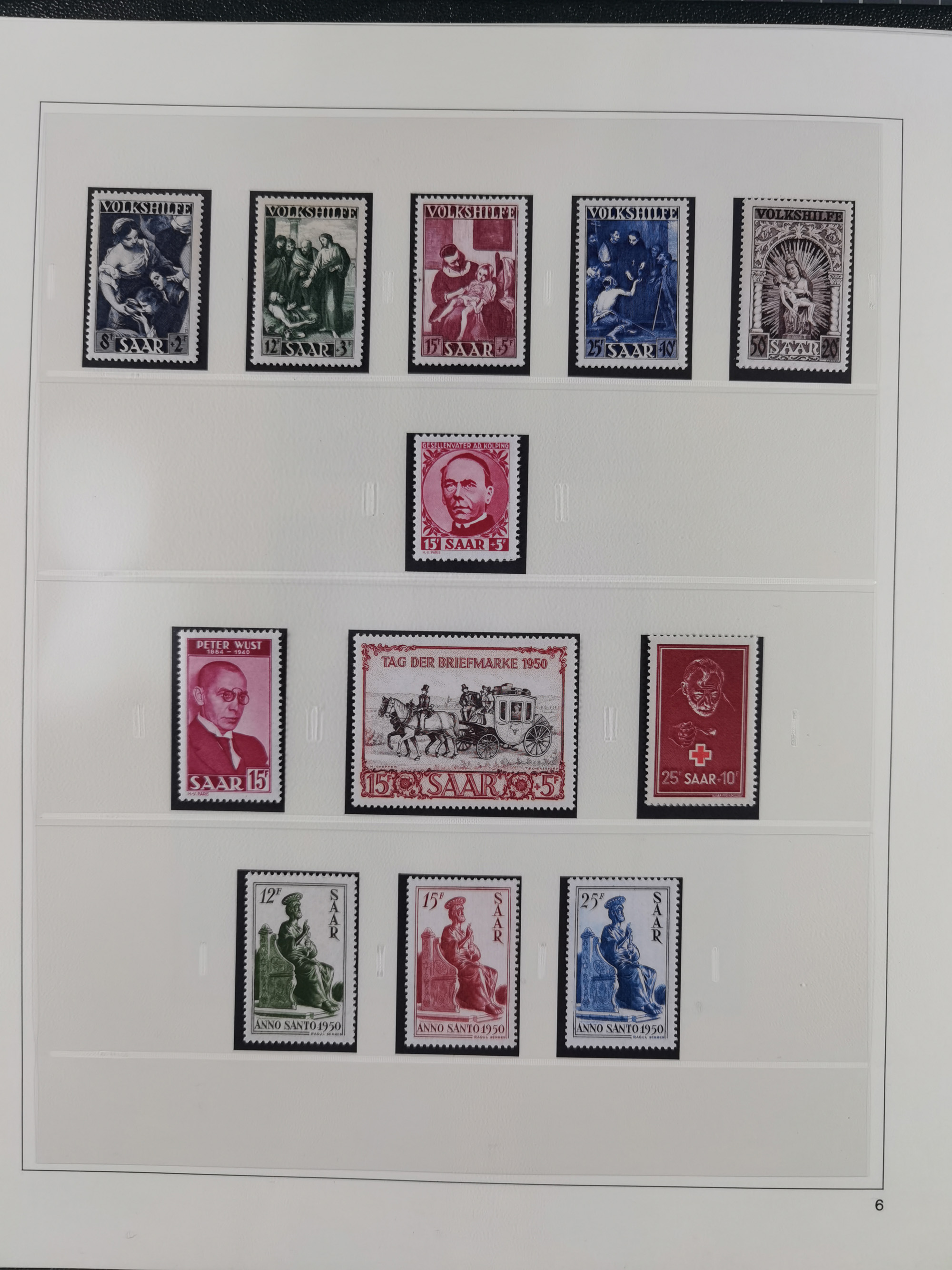 1920/59, in den Hauptnummern stark überkomplette fast ausnahmslos postfrische Sammlung inkl. Dienstmarken, dabei Mi.-Nr. 1-17, 1-17IA inkl. Farben mit 14aIA, Type II 7 Werte kpl., zusätzlich diese auch mit PF A (ohne 2aIIA), 1-17III mit 16IIIOR, 18-31 mit 30L und 31L, A31-C31 (B31 ungebraucht), ferner alle Volkshilfen inkl. Madonna mit Bogenrand, sowie Saarland mit unsigniertem Urdrucksatz, Hochwasserhilfe-Blockspaar, einigen Klbg., zusätzlich gestempelt 380-83 und 409-28 OR auf Briefstücken und MH1 postfrisch/ungebraucht (etwas fleckig), gute Erhaltung, 23 (Kurz-)Befunde und Atteste Ney, Geigle, Burger und Bernhard BPP, in zwei Vordruckalben