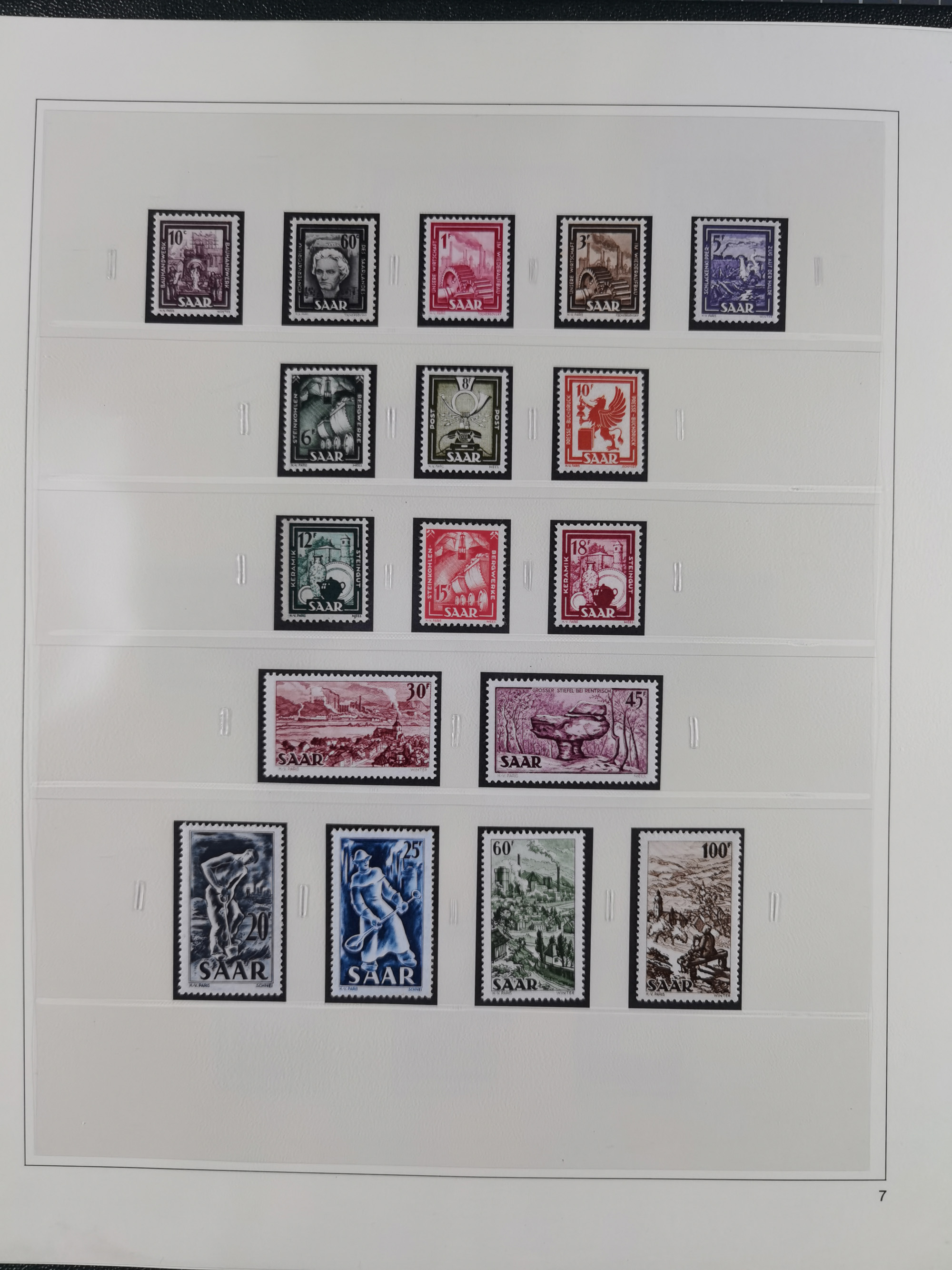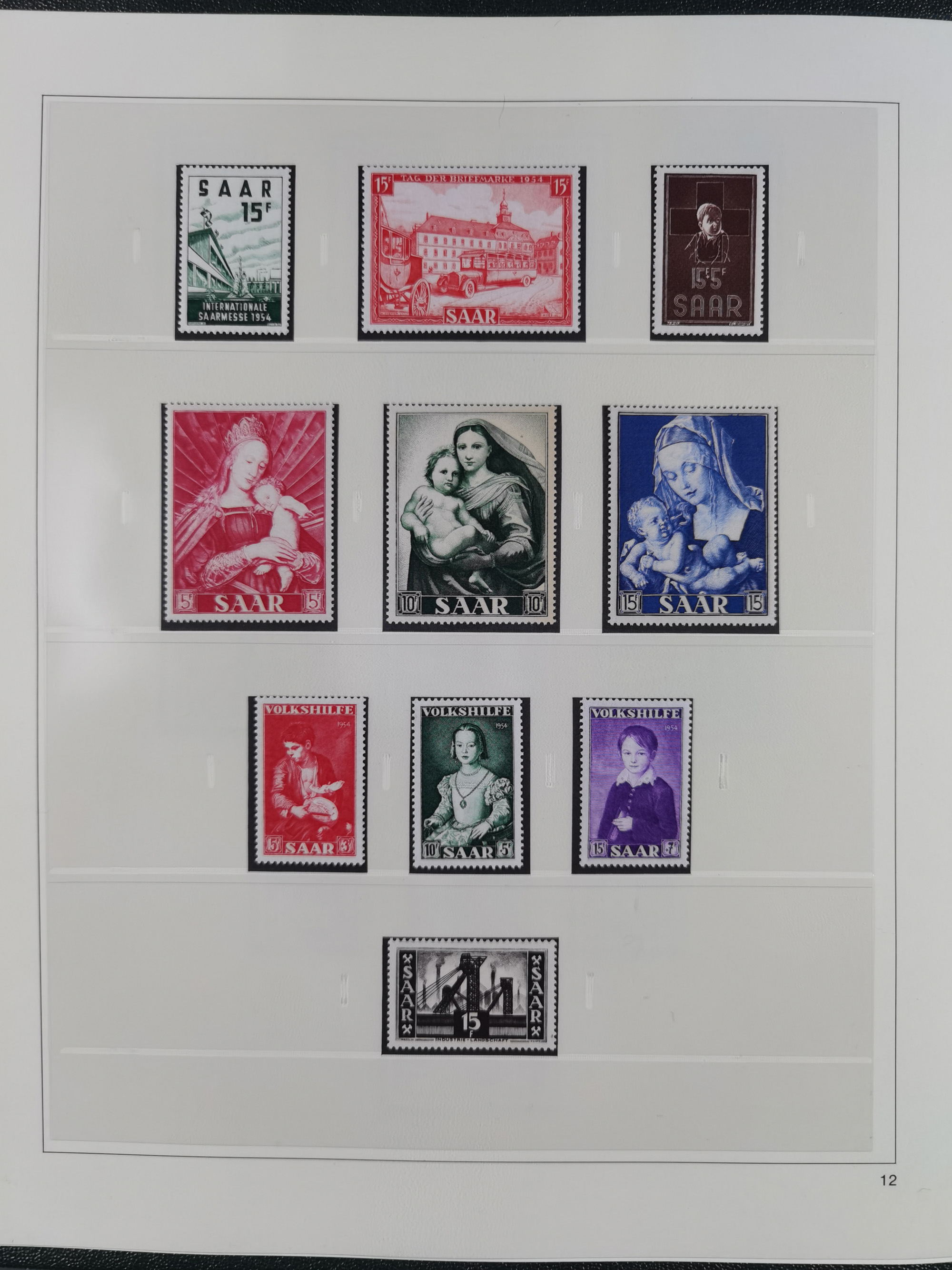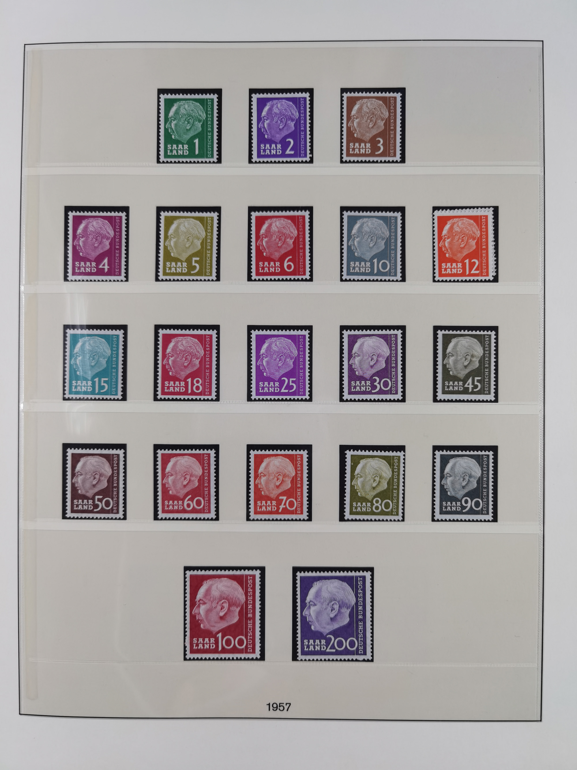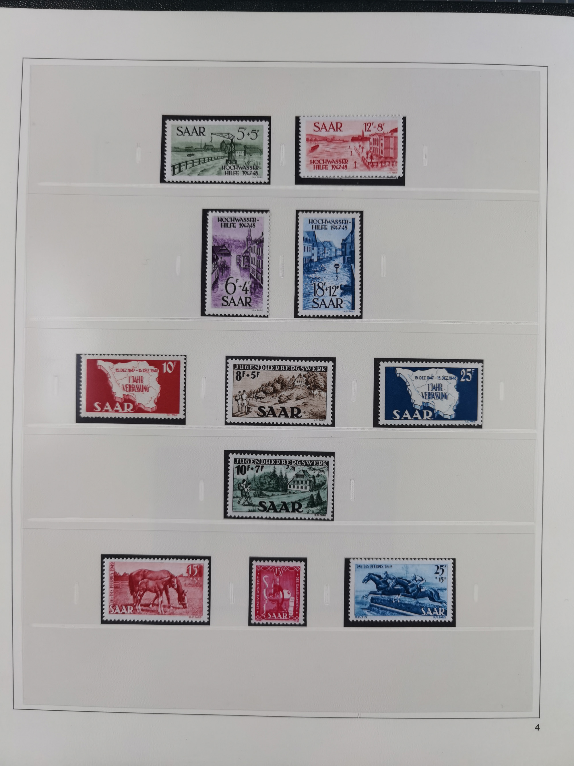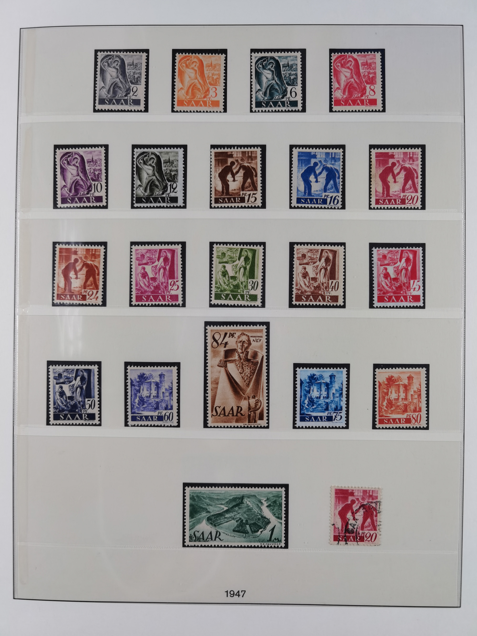 1920/59, in den Hauptnummern stark überkomplette fast ausnahmslos postfrische Sammlung inkl. Dienstmarken, dabei Mi.-Nr. 1-17, 1-17IA inkl. Farben mit 14aIA, Type II 7 Werte kpl., zusätzlich diese auch mit PF A (ohne 2aIIA), 1-17III mit 16IIIOR, 18-31 mit 30L und 31L, A31-C31 (B31 ungebraucht), ferner alle Volkshilfen inkl. Madonna mit Bogenrand, sowie Saarland mit unsigniertem Urdrucksatz, Hochwasserhilfe-Blockspaar, einigen Klbg., zusätzlich gestempelt 380-83 und 409-28 OR auf Briefstücken und MH1 postfrisch/ungebraucht (etwas fleckig), gute Erhaltung, 23 (Kurz-)Befunde und Atteste Ney, Geigle, Burger und Bernhard BPP, in zwei Vordruckalben