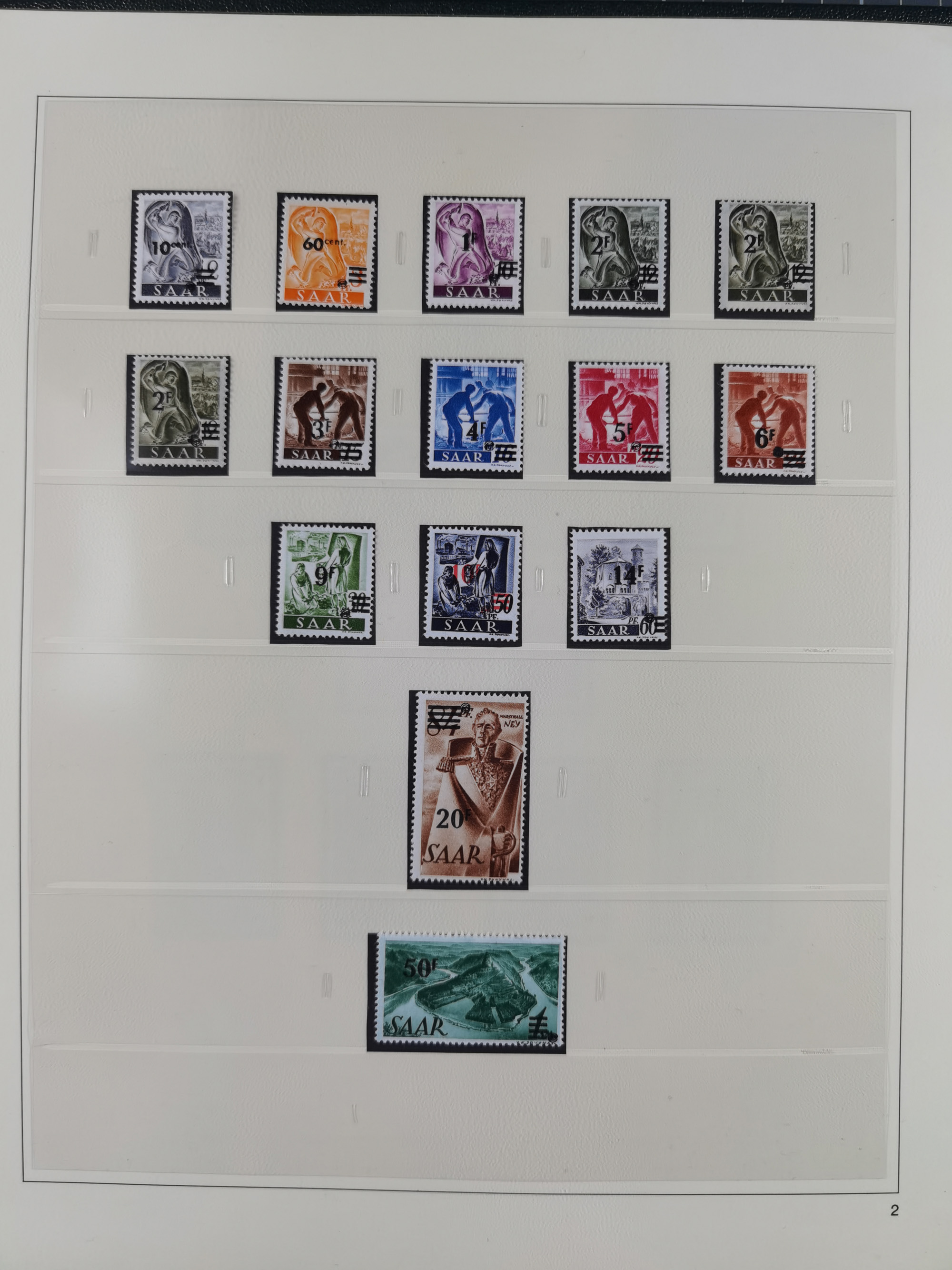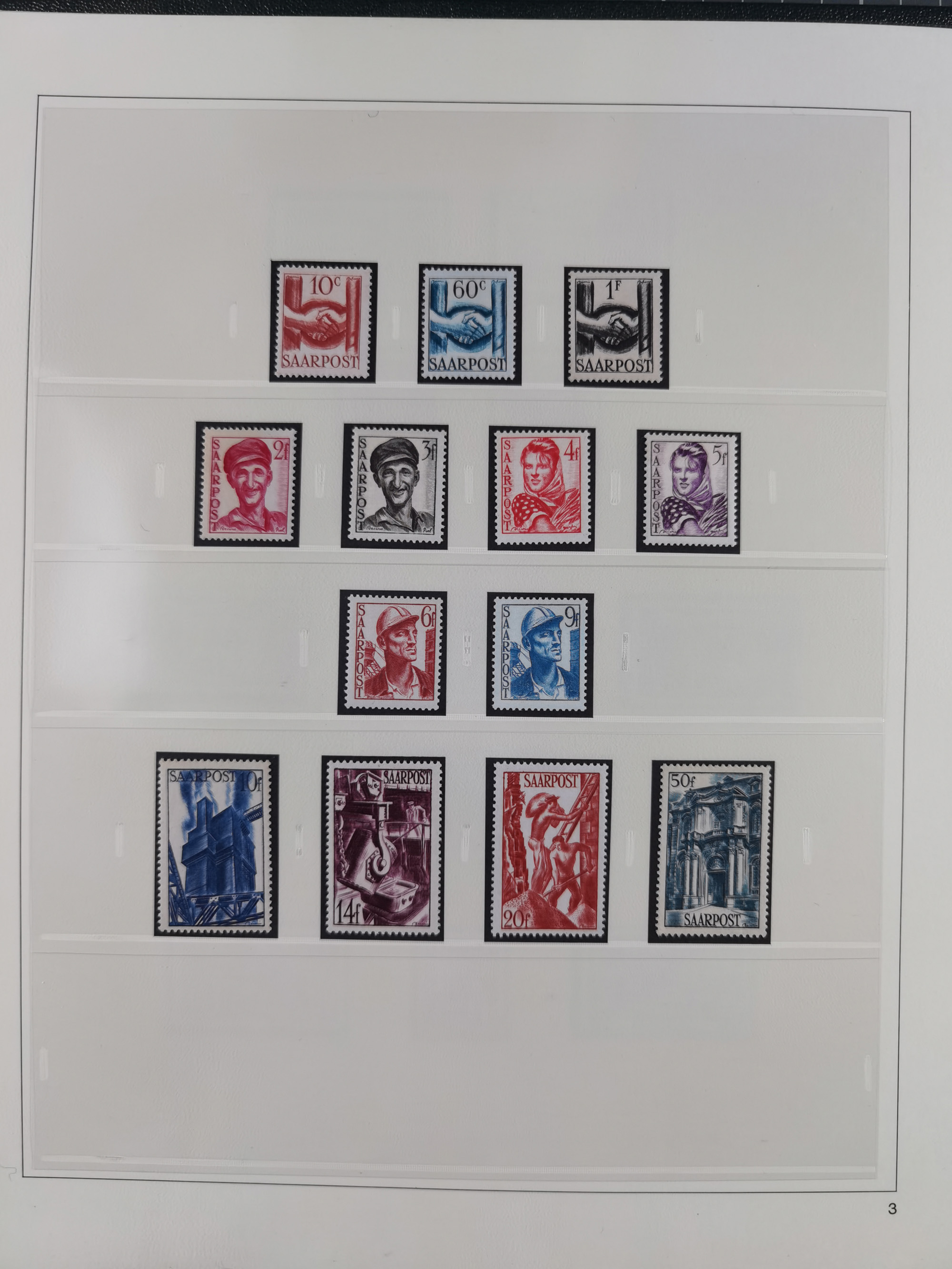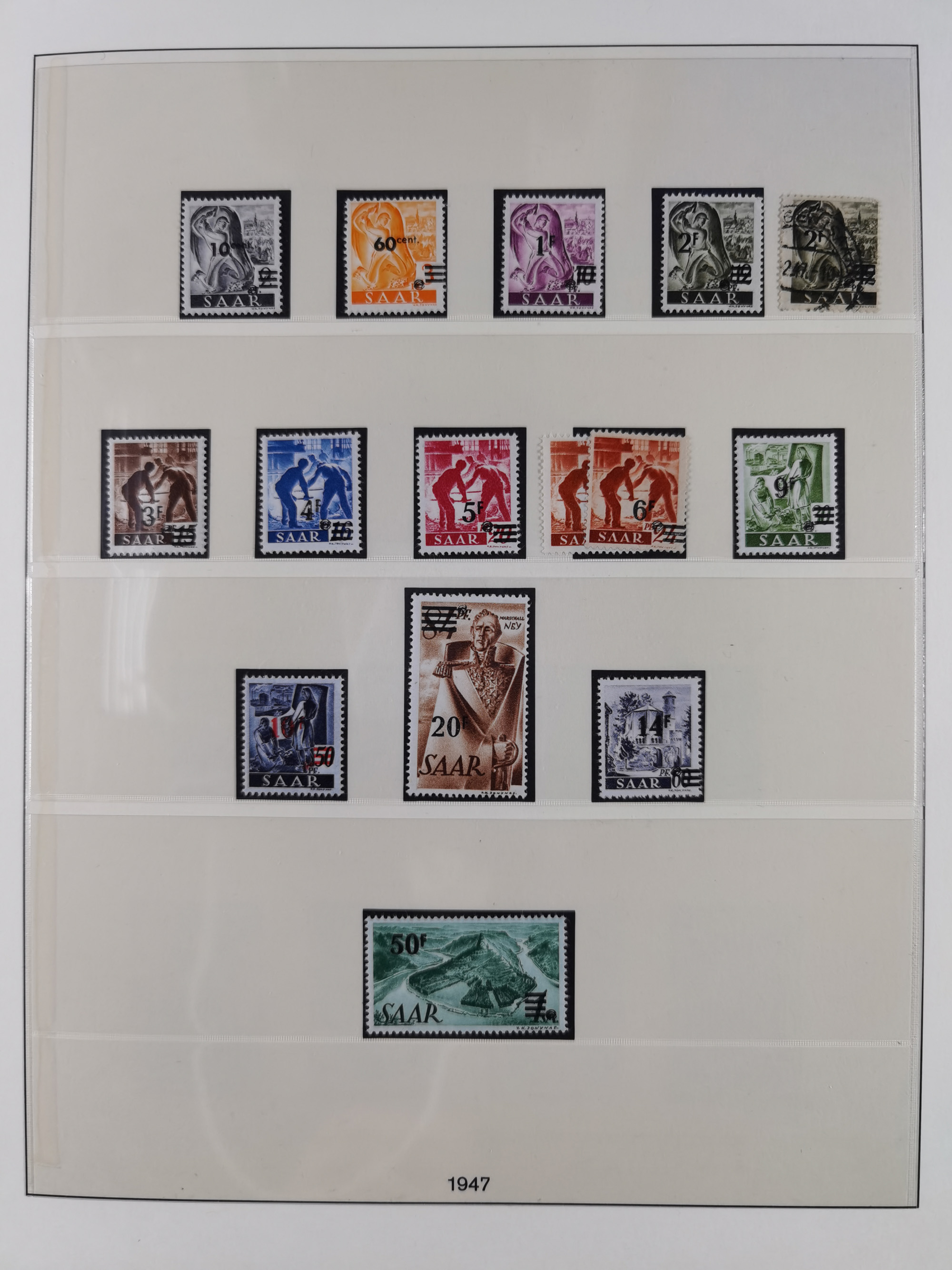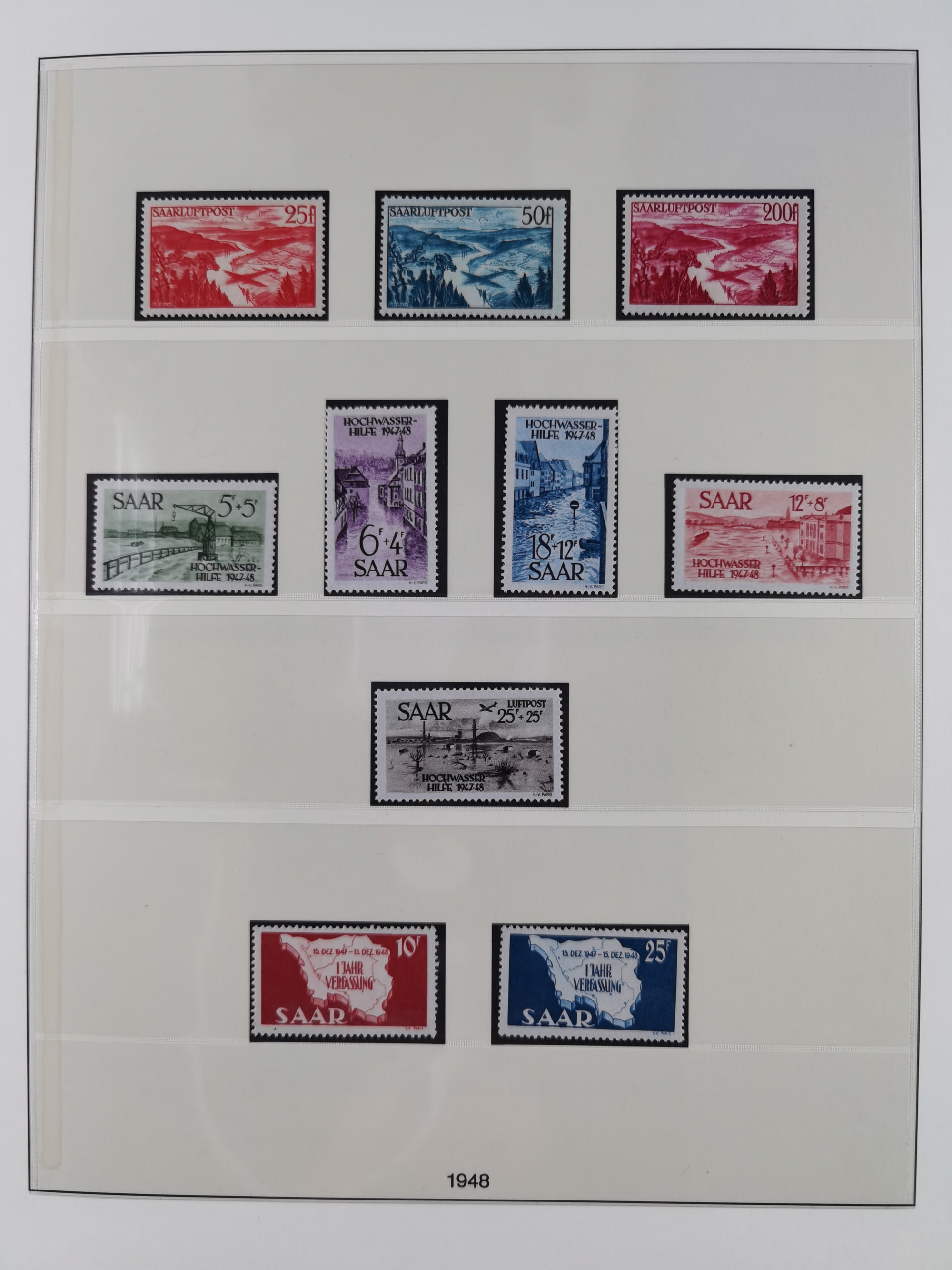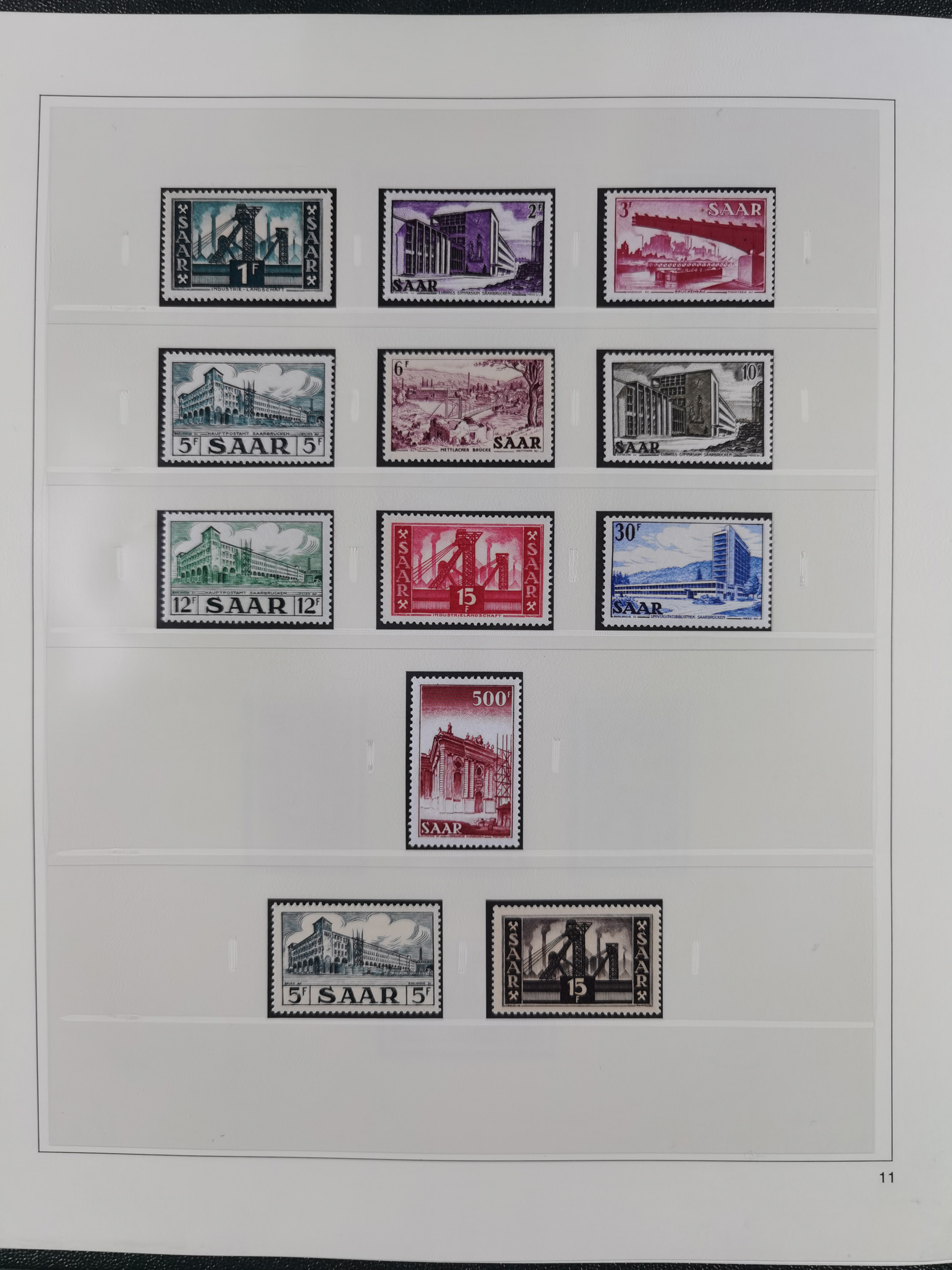 1920/59, in den Hauptnummern stark überkomplette fast ausnahmslos postfrische Sammlung inkl. Dienstmarken, dabei Mi.-Nr. 1-17, 1-17IA inkl. Farben mit 14aIA, Type II 7 Werte kpl., zusätzlich diese auch mit PF A (ohne 2aIIA), 1-17III mit 16IIIOR, 18-31 mit 30L und 31L, A31-C31 (B31 ungebraucht), ferner alle Volkshilfen inkl. Madonna mit Bogenrand, sowie Saarland mit unsigniertem Urdrucksatz, Hochwasserhilfe-Blockspaar, einigen Klbg., zusätzlich gestempelt 380-83 und 409-28 OR auf Briefstücken und MH1 postfrisch/ungebraucht (etwas fleckig), gute Erhaltung, 23 (Kurz-)Befunde und Atteste Ney, Geigle, Burger und Bernhard BPP, in zwei Vordruckalben