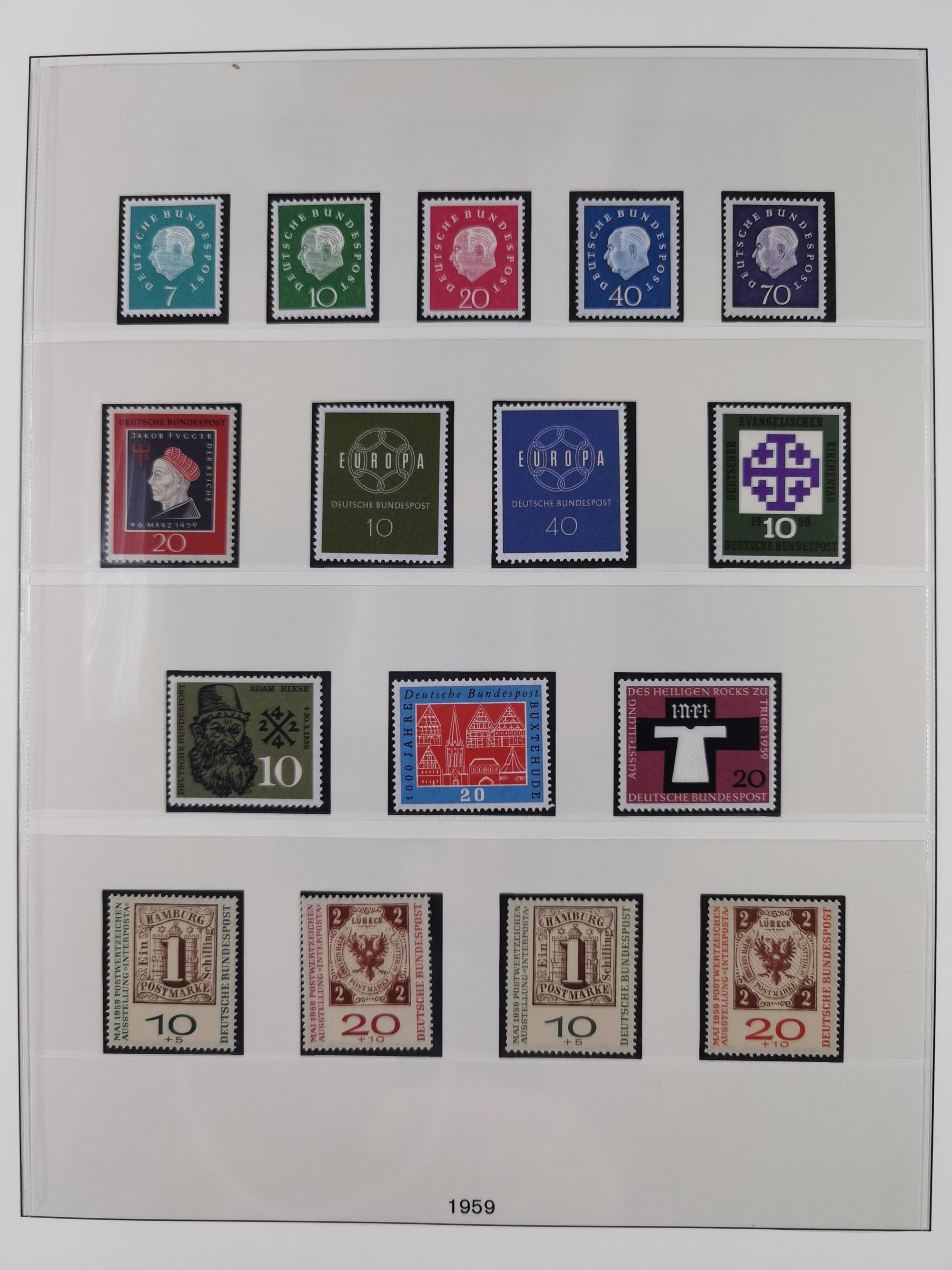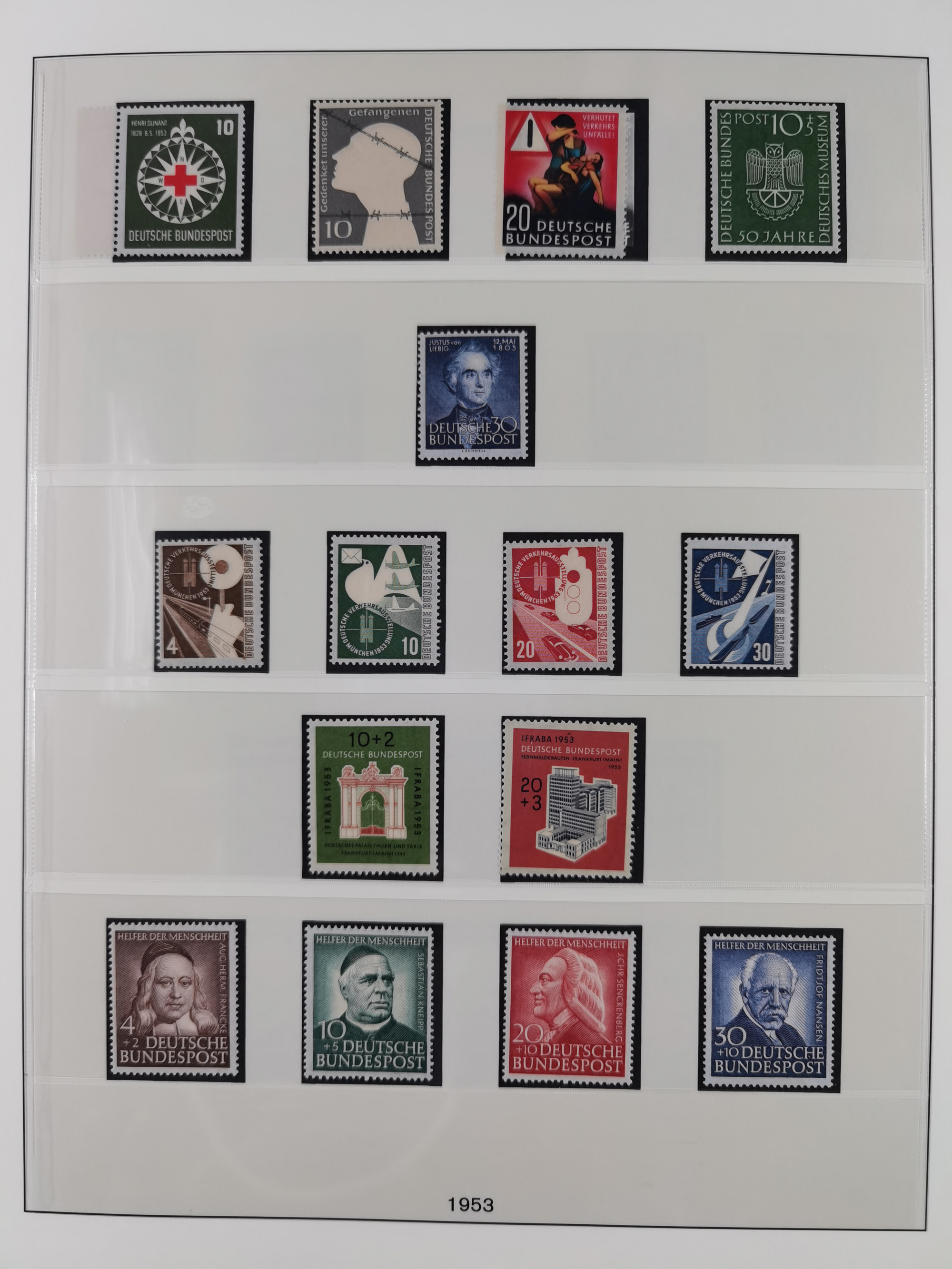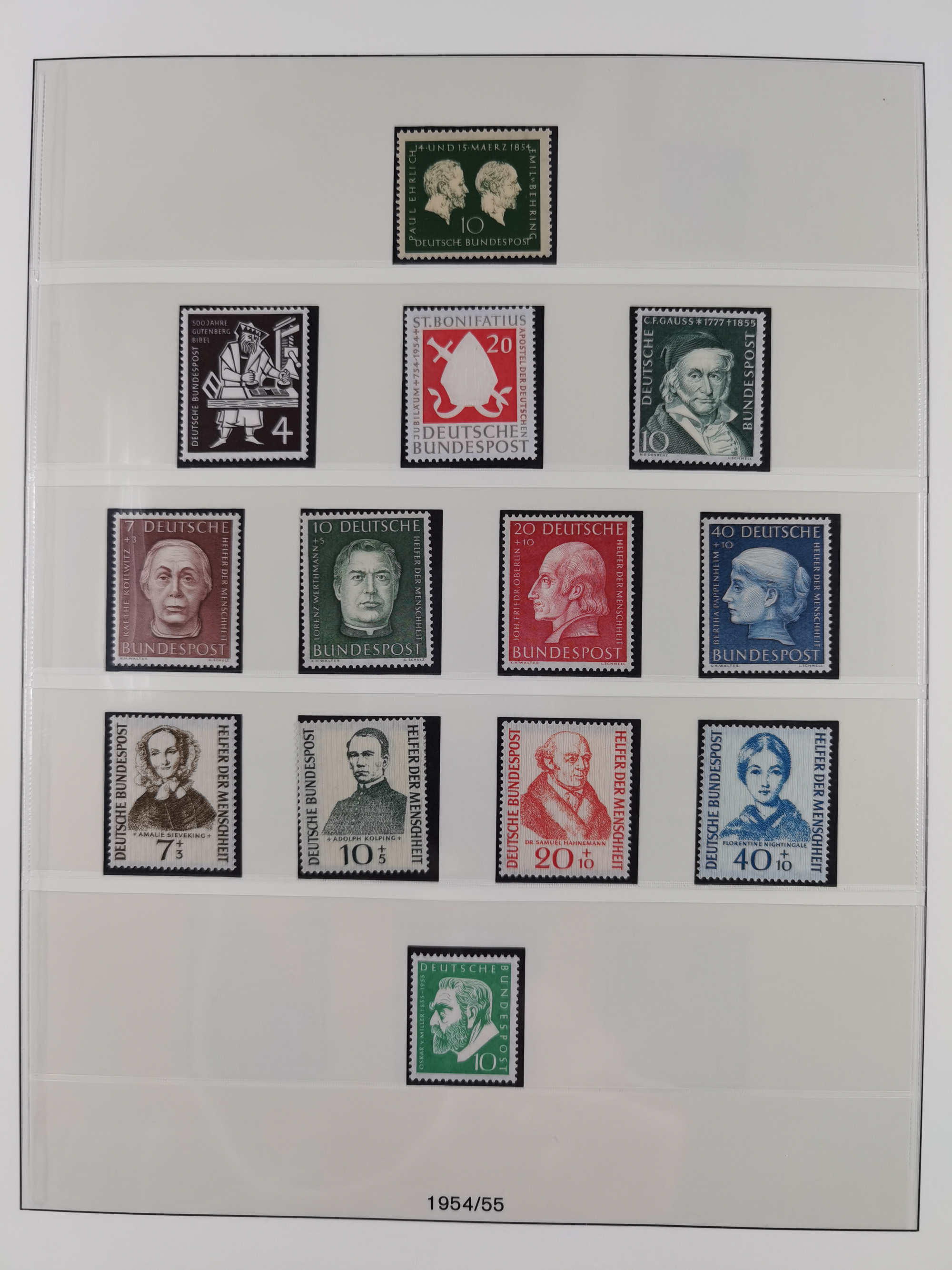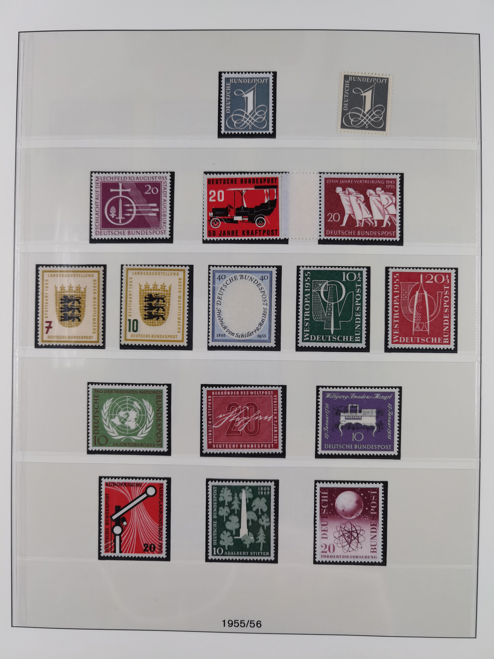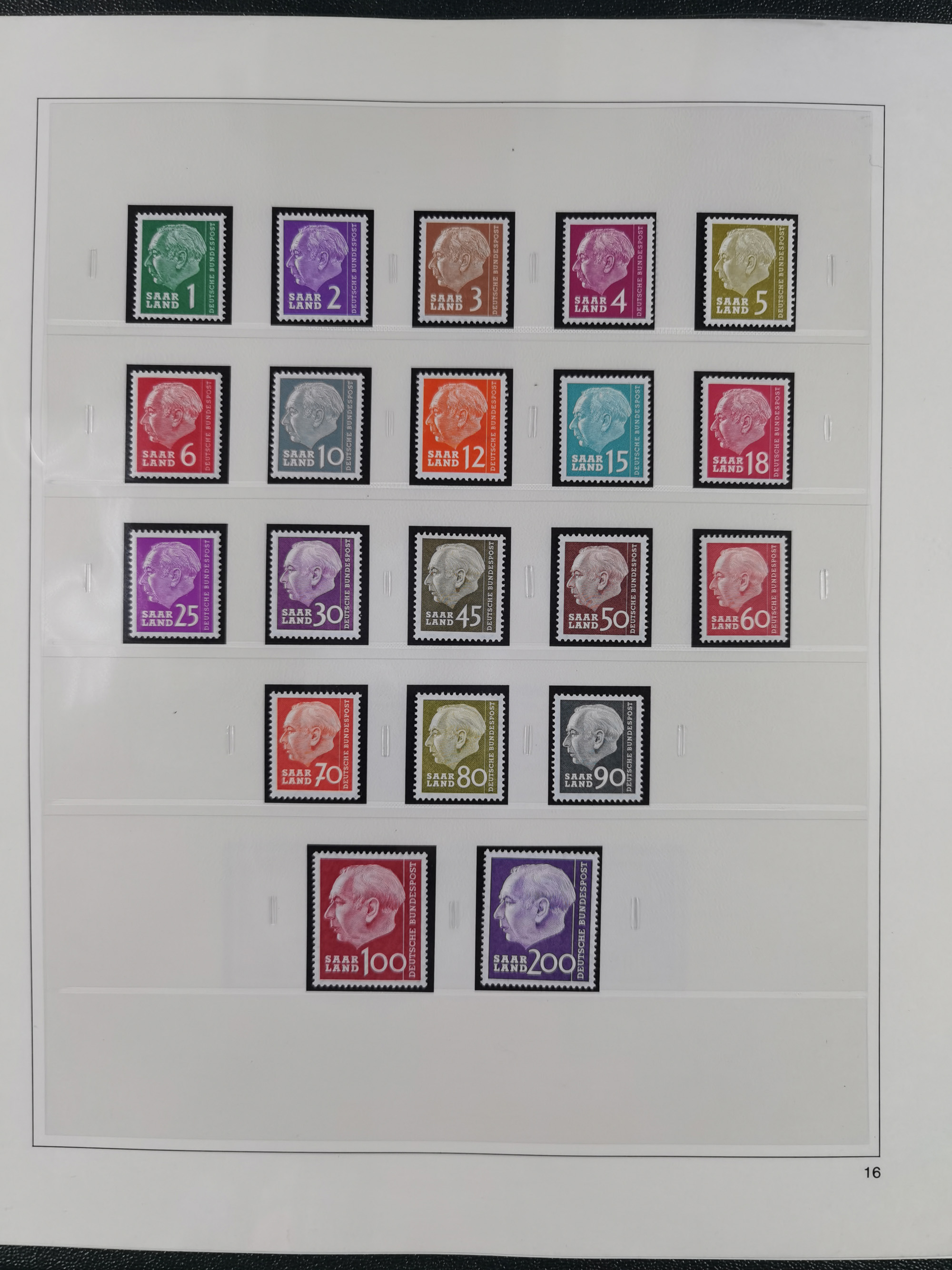 1920/59, in den Hauptnummern stark überkomplette fast ausnahmslos postfrische Sammlung inkl. Dienstmarken, dabei Mi.-Nr. 1-17, 1-17IA inkl. Farben mit 14aIA, Type II 7 Werte kpl., zusätzlich diese auch mit PF A (ohne 2aIIA), 1-17III mit 16IIIOR, 18-31 mit 30L und 31L, A31-C31 (B31 ungebraucht), ferner alle Volkshilfen inkl. Madonna mit Bogenrand, sowie Saarland mit unsigniertem Urdrucksatz, Hochwasserhilfe-Blockspaar, einigen Klbg., zusätzlich gestempelt 380-83 und 409-28 OR auf Briefstücken und MH1 postfrisch/ungebraucht (etwas fleckig), gute Erhaltung, 23 (Kurz-)Befunde und Atteste Ney, Geigle, Burger und Bernhard BPP, in zwei Vordruckalben