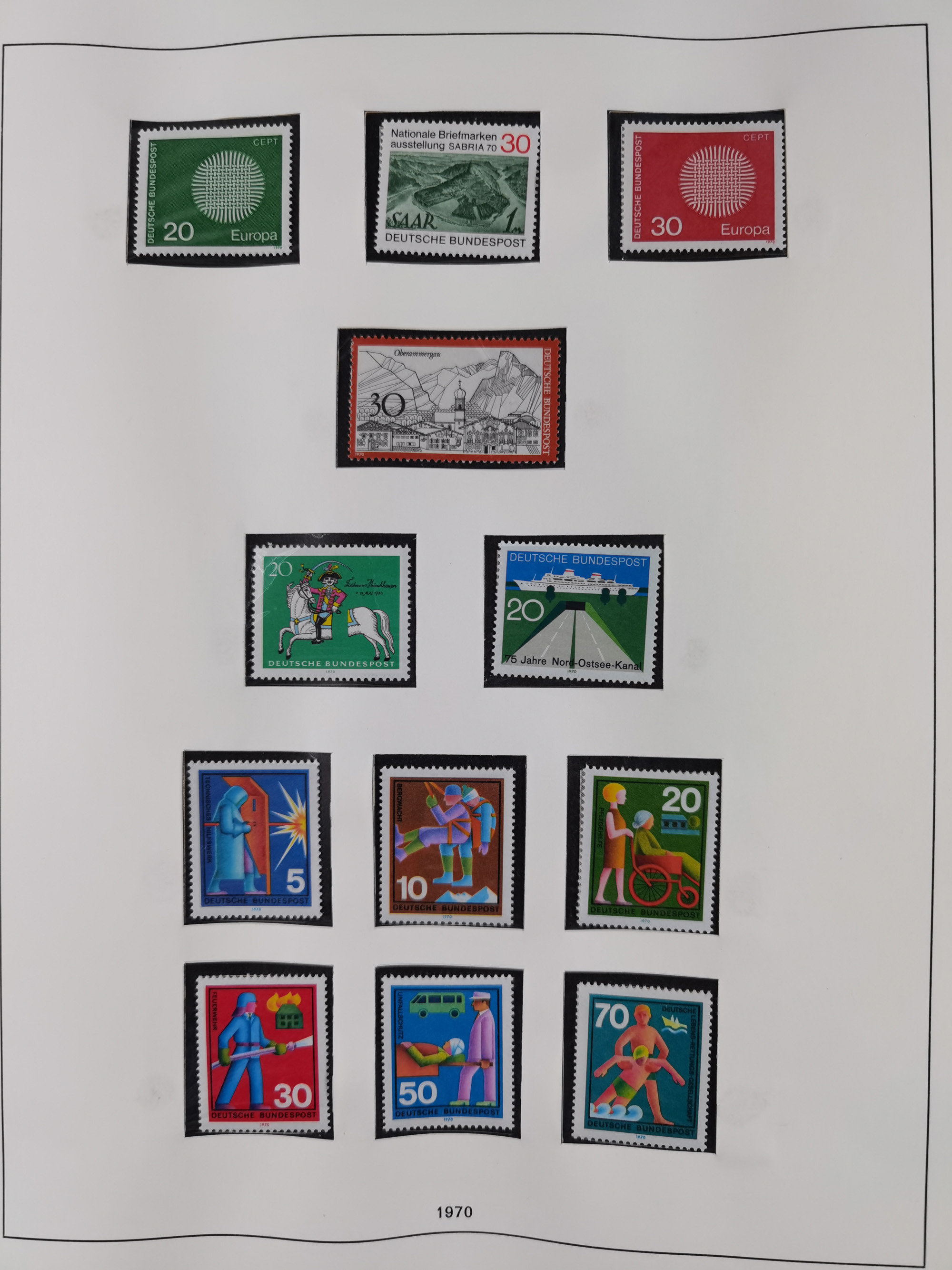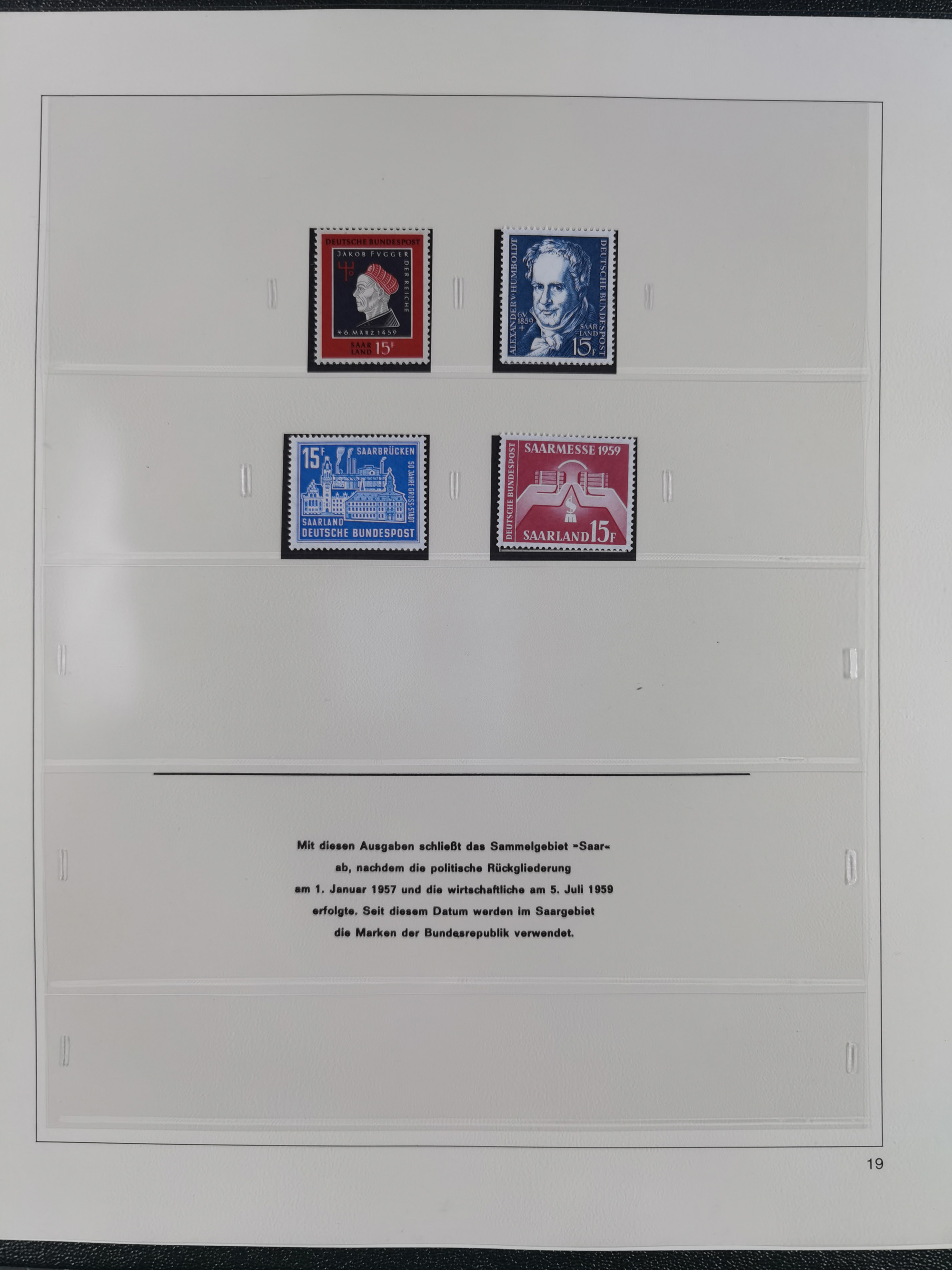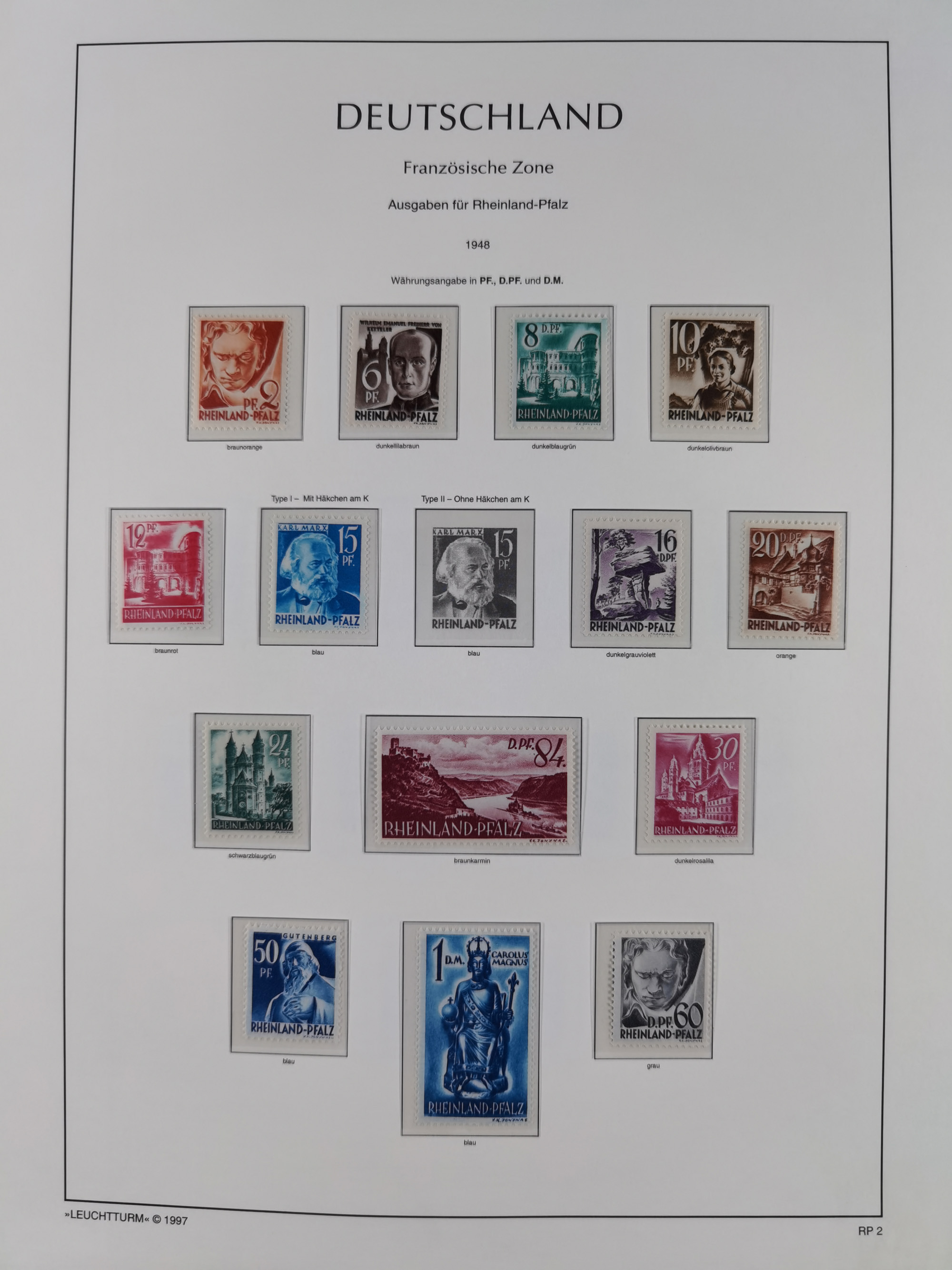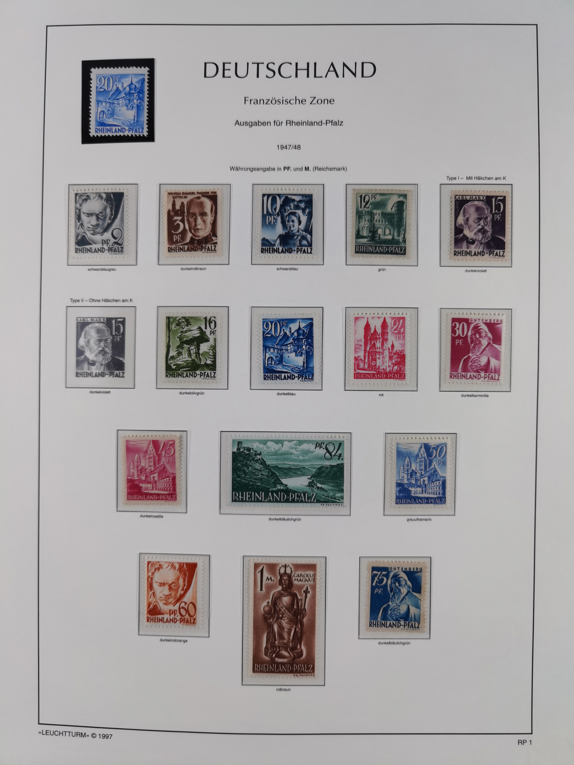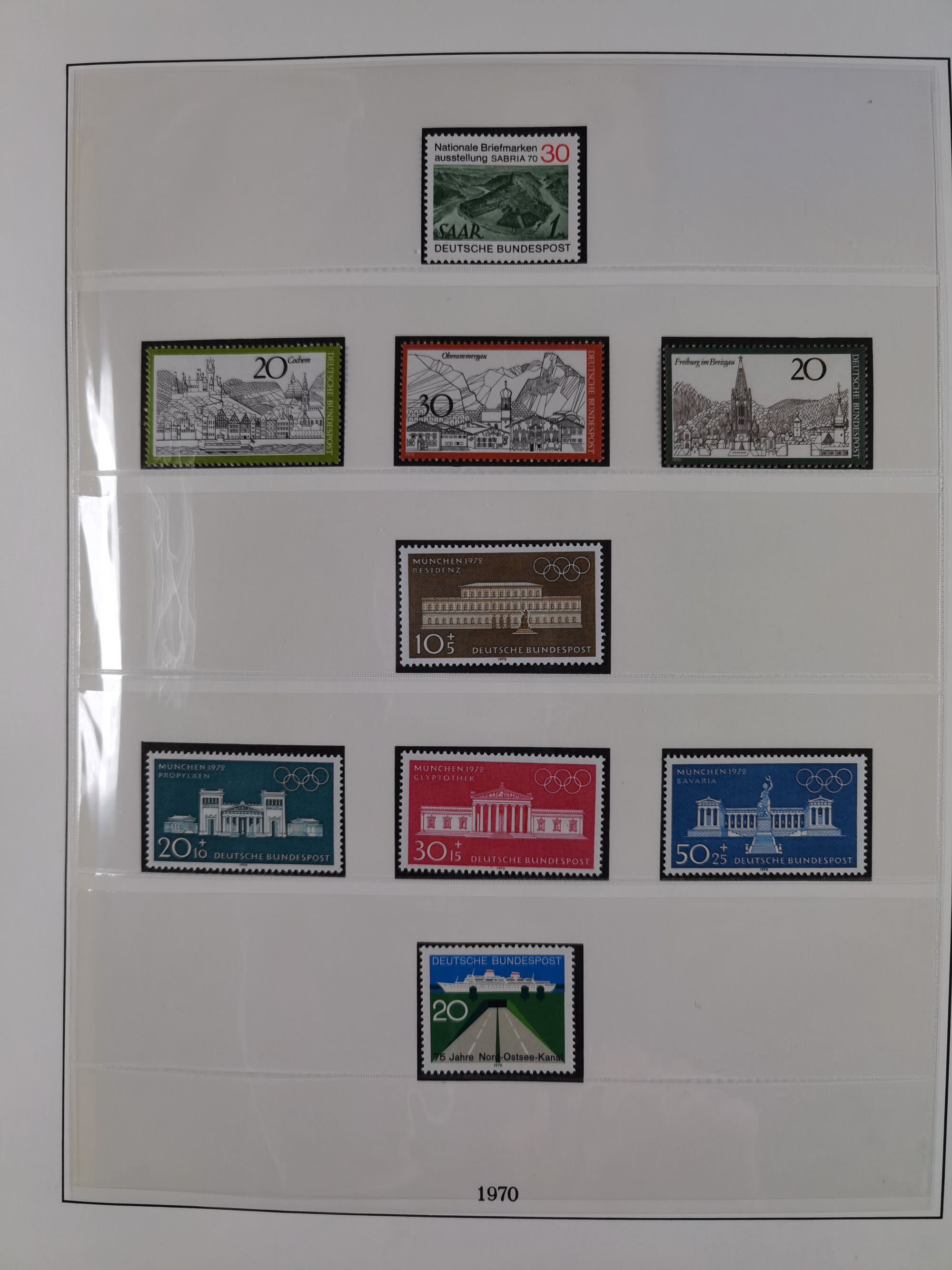 1920/59, in den Hauptnummern stark überkomplette fast ausnahmslos postfrische Sammlung inkl. Dienstmarken, dabei Mi.-Nr. 1-17, 1-17IA inkl. Farben mit 14aIA, Type II 7 Werte kpl., zusätzlich diese auch mit PF A (ohne 2aIIA), 1-17III mit 16IIIOR, 18-31 mit 30L und 31L, A31-C31 (B31 ungebraucht), ferner alle Volkshilfen inkl. Madonna mit Bogenrand, sowie Saarland mit unsigniertem Urdrucksatz, Hochwasserhilfe-Blockspaar, einigen Klbg., zusätzlich gestempelt 380-83 und 409-28 OR auf Briefstücken und MH1 postfrisch/ungebraucht (etwas fleckig), gute Erhaltung, 23 (Kurz-)Befunde und Atteste Ney, Geigle, Burger und Bernhard BPP, in zwei Vordruckalben