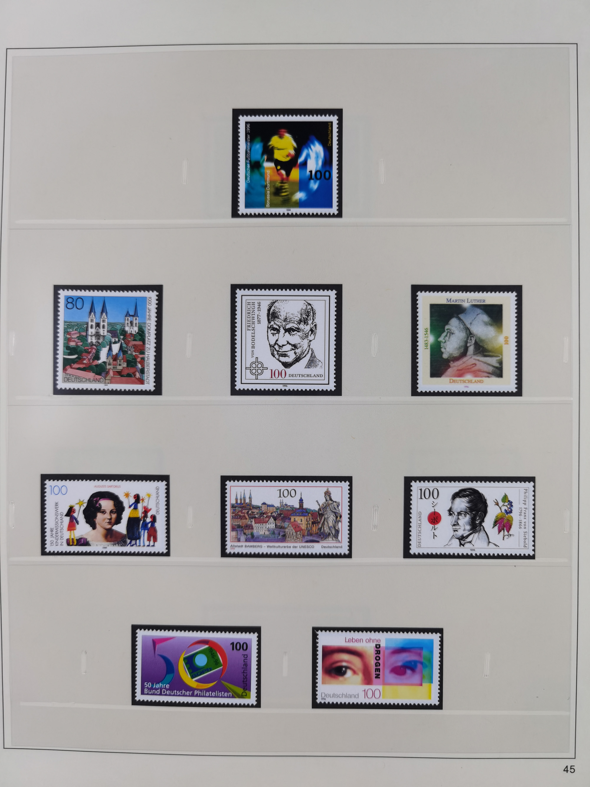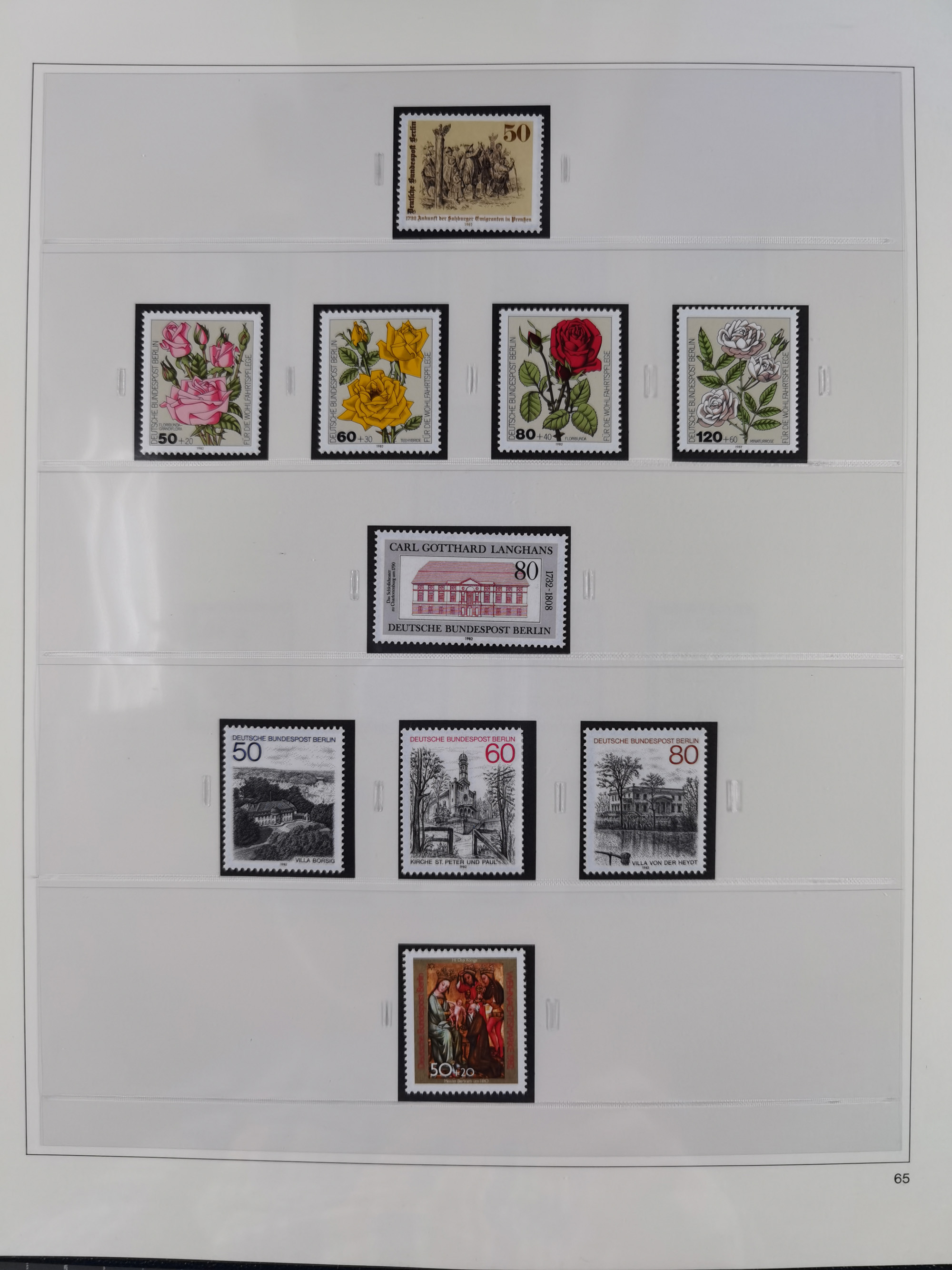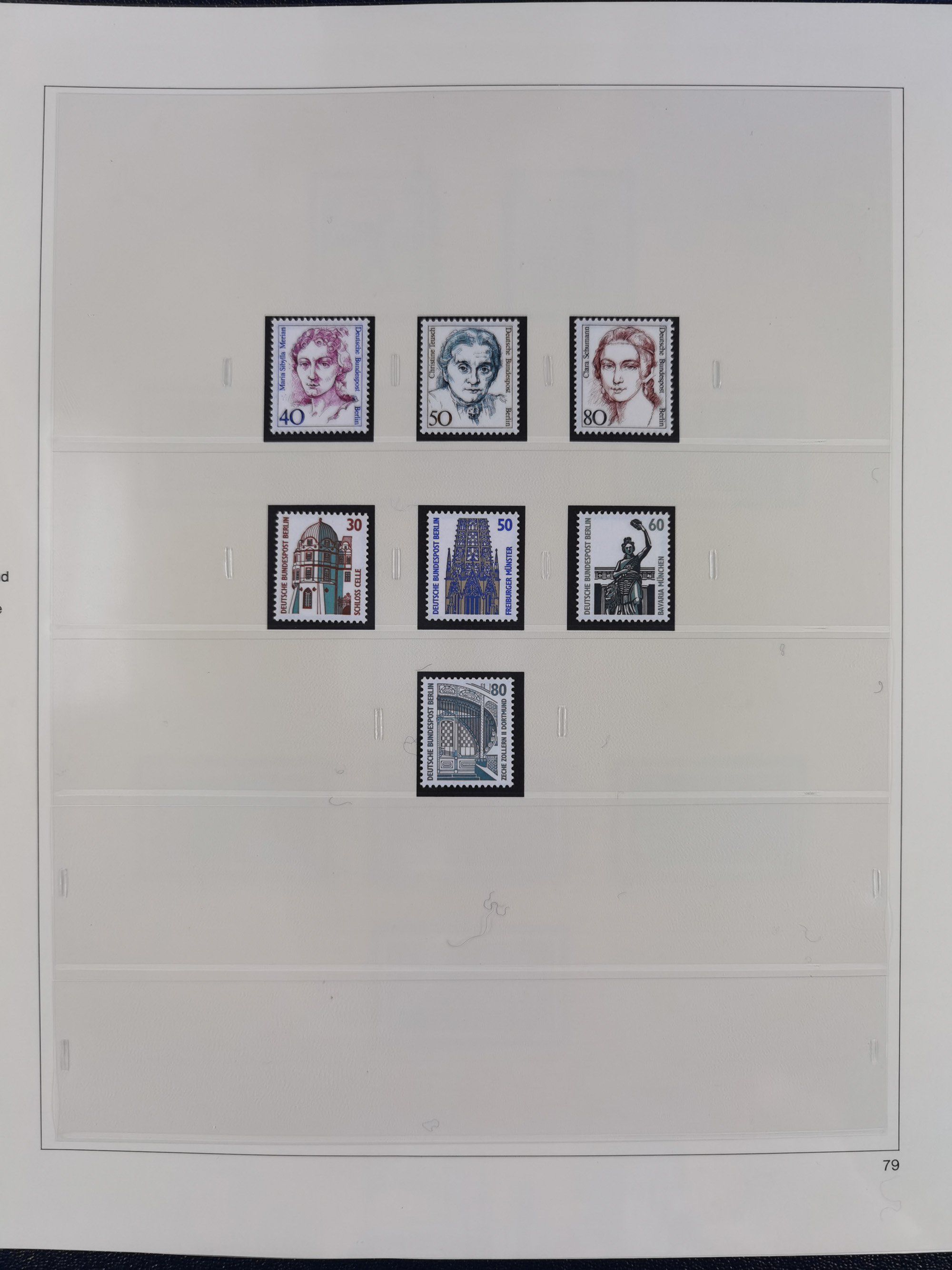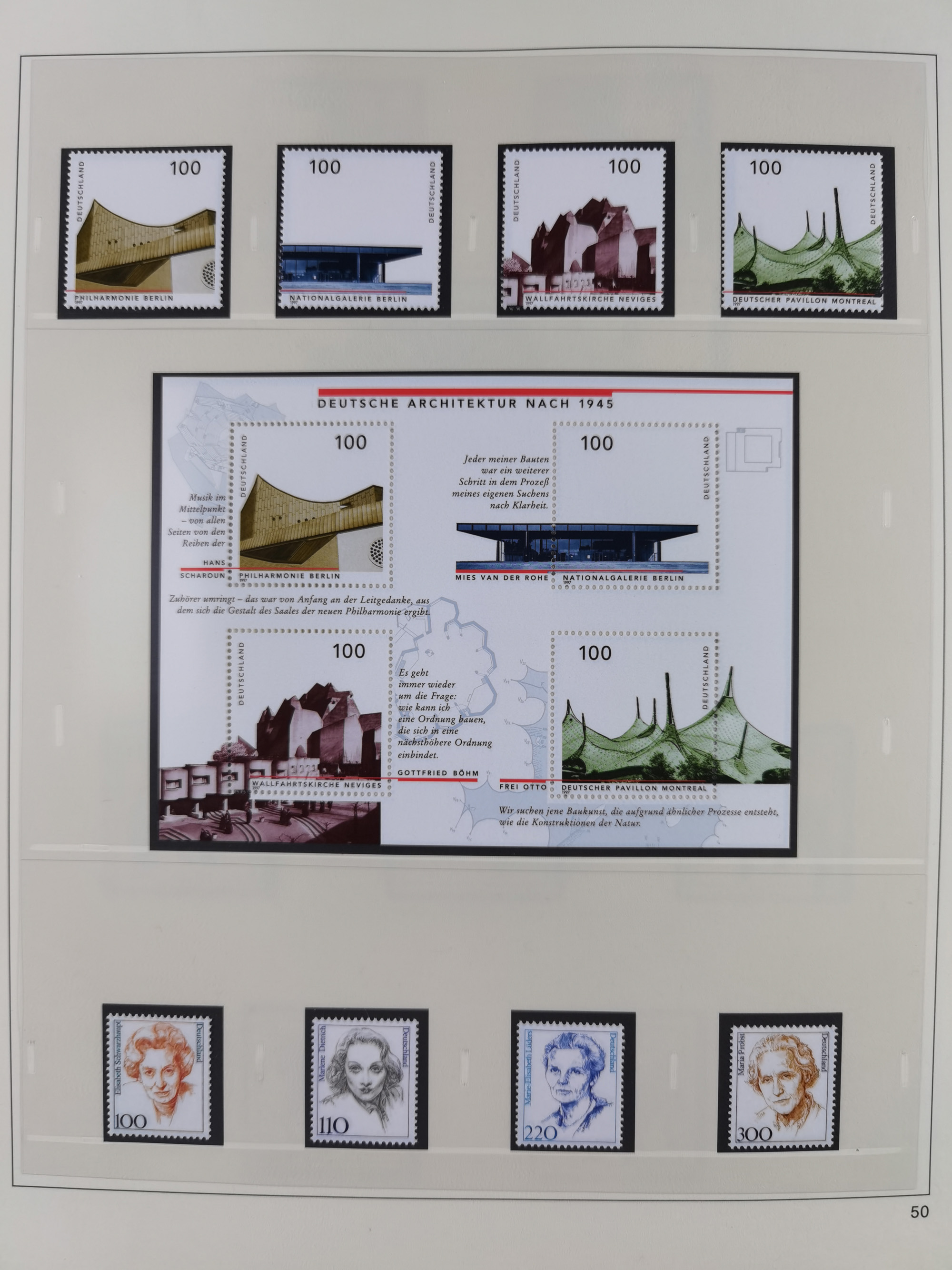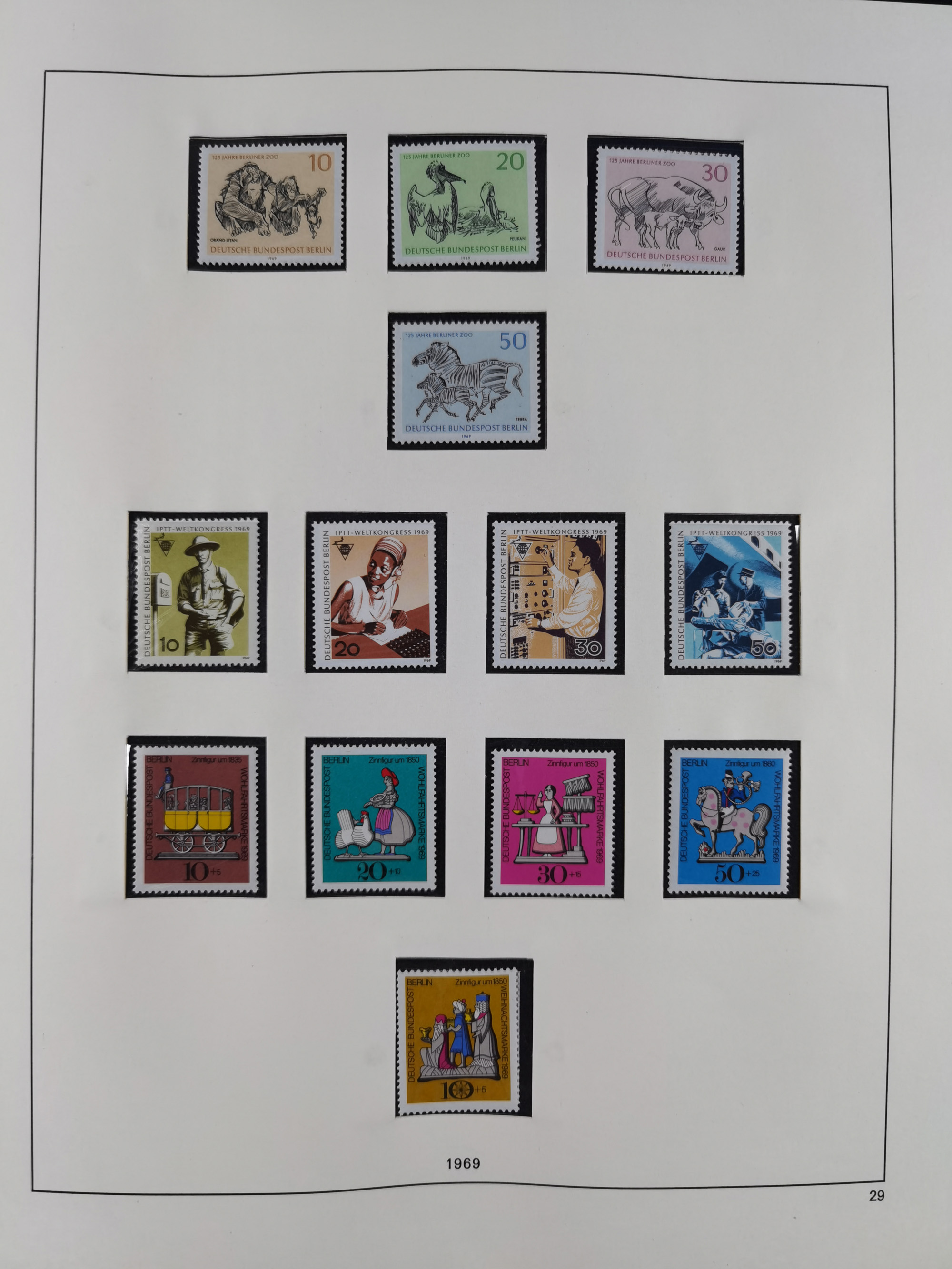 1948/2000, fast ausschließlich postfrischer Sammlungsbestand ab Berlin mit u.a. zwei Schwarzaufdruck-Sätzen, Bl. 1 je ungebraucht und nachgummiert, Bauten, Währungsgeschädigte, sowie besseren Ausgaben, Bundesrepublik 1951-2000 mit u.a. Posthorn 30, 50 und 70 Pfg. postfrisch, Heuss in großen Einheiten und mit Bogenrand, sowie einer fast kompletten Sammlung DDR, etliches mehrfach und mit Bogen- bzw. Eckrand, gute Erhaltung, in 17 Vordruckalben